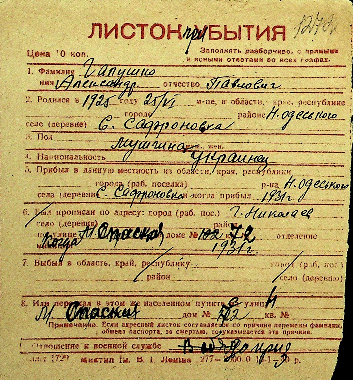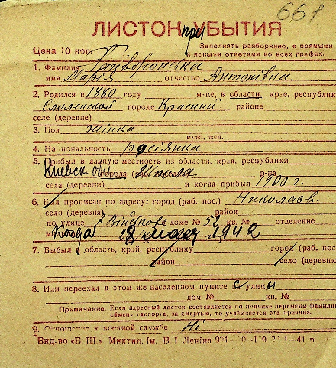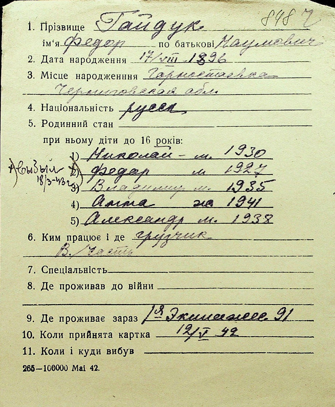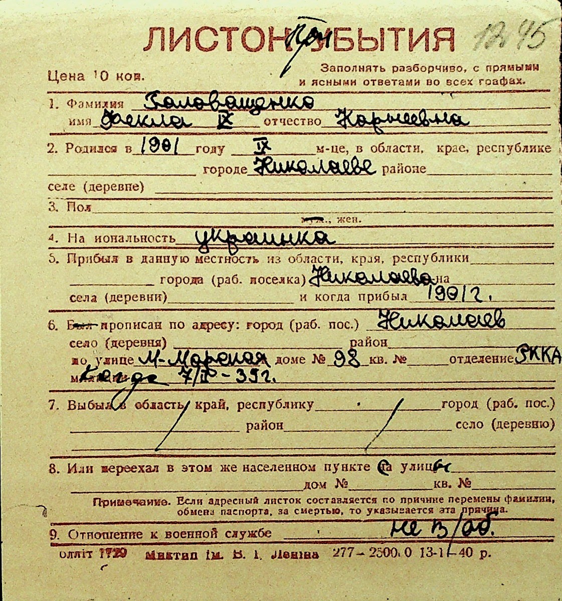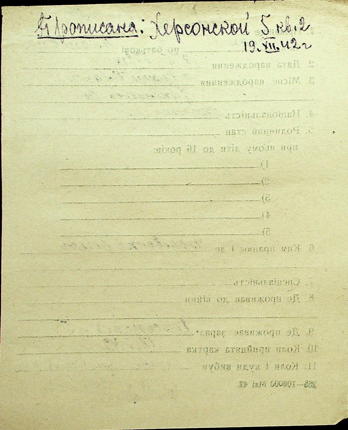 • • Перелік карток до фонду № Н-1016