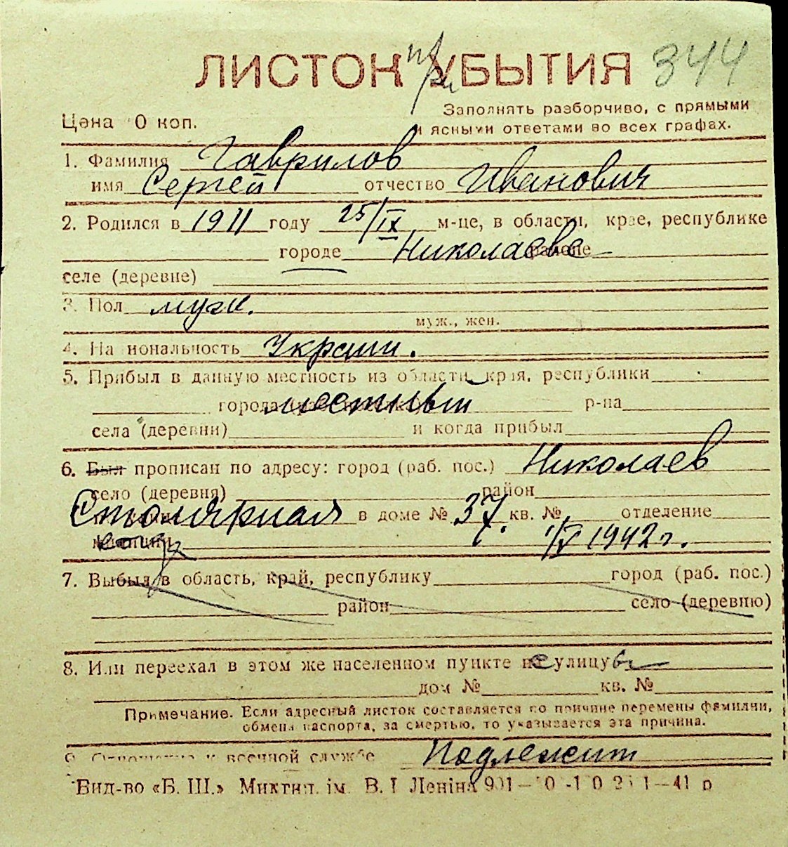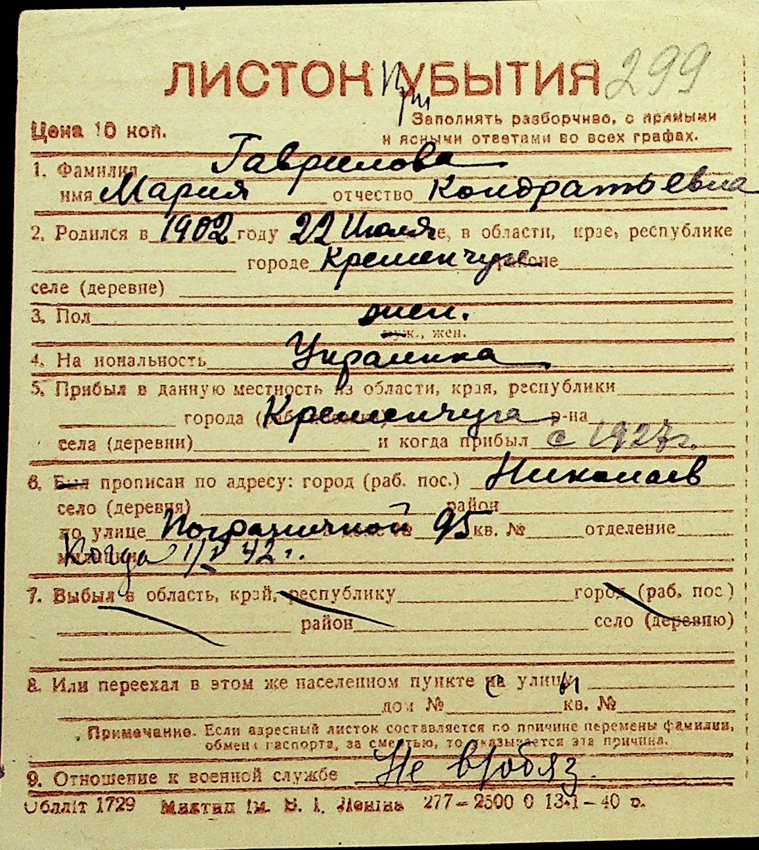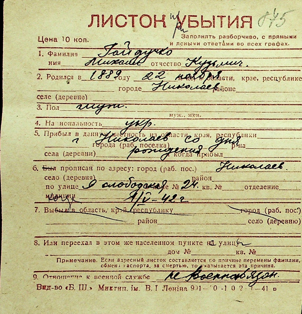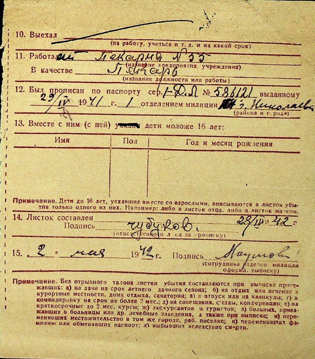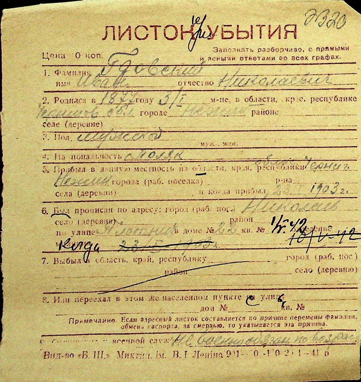 • • Перелік карток до фонду № Н-1016