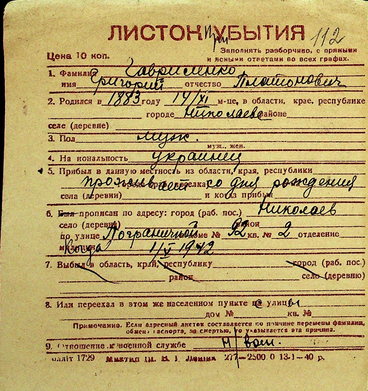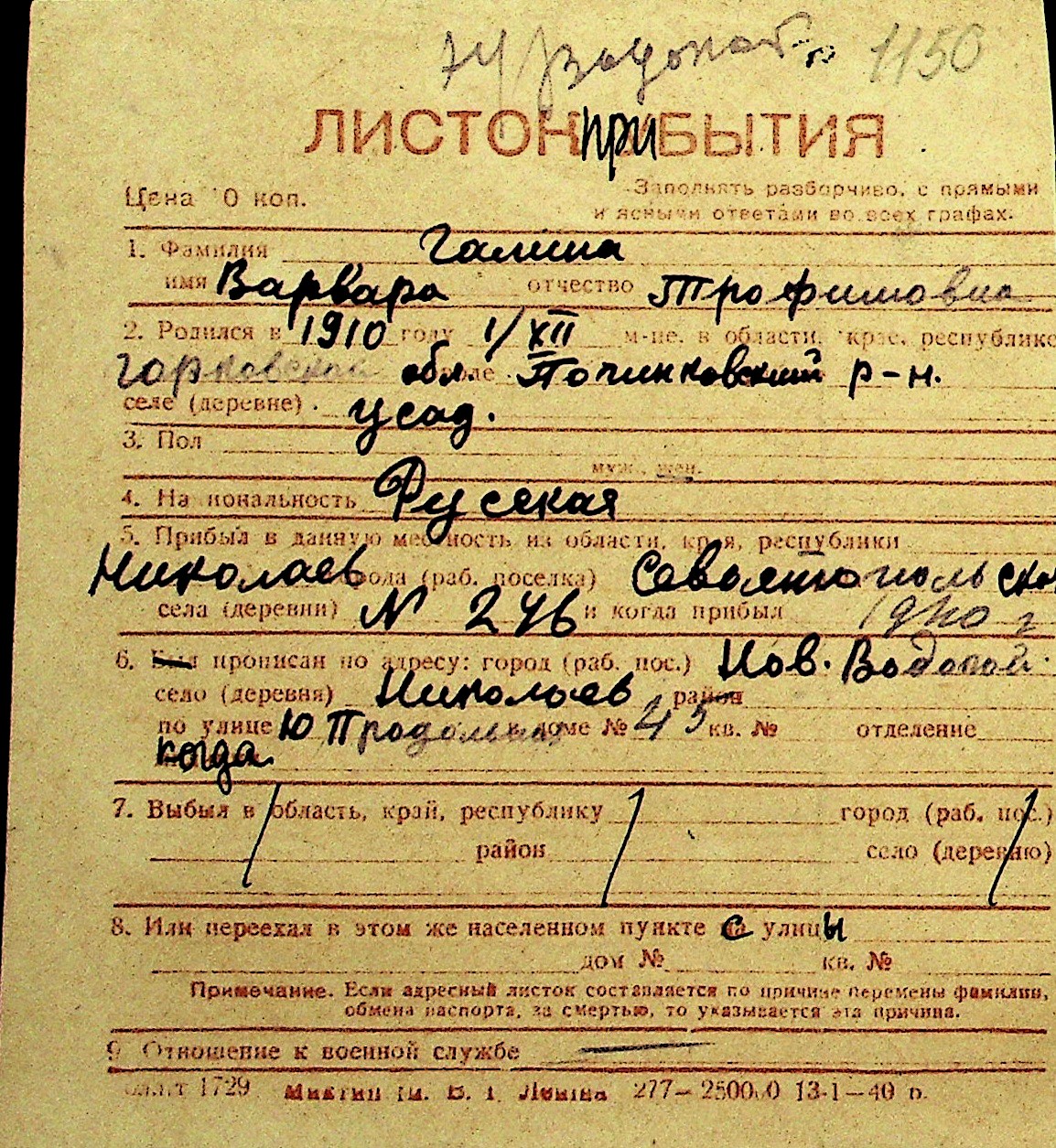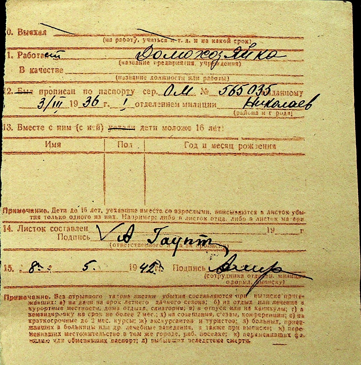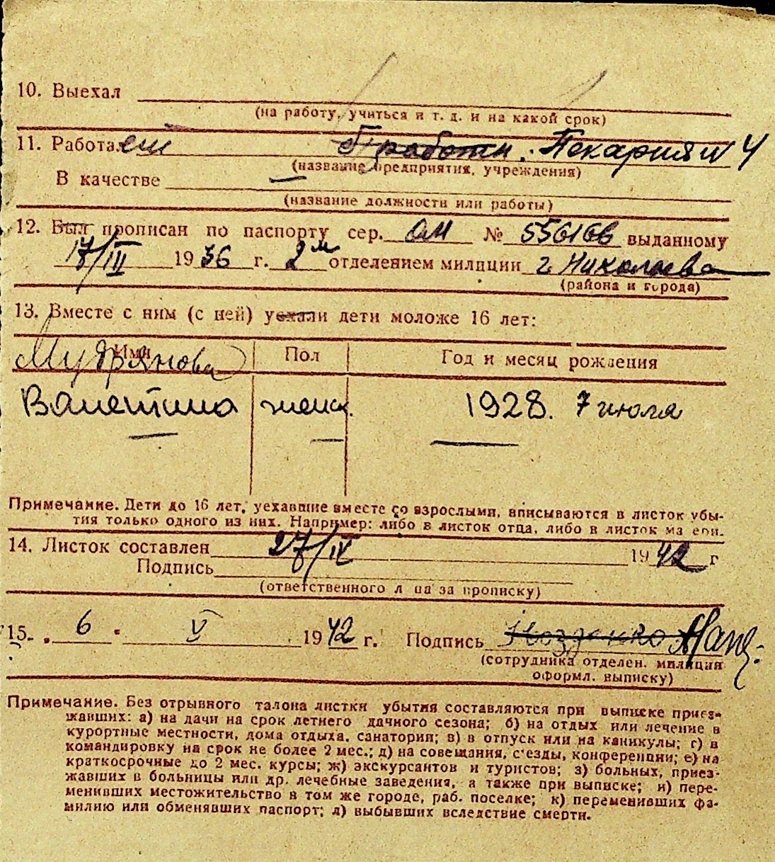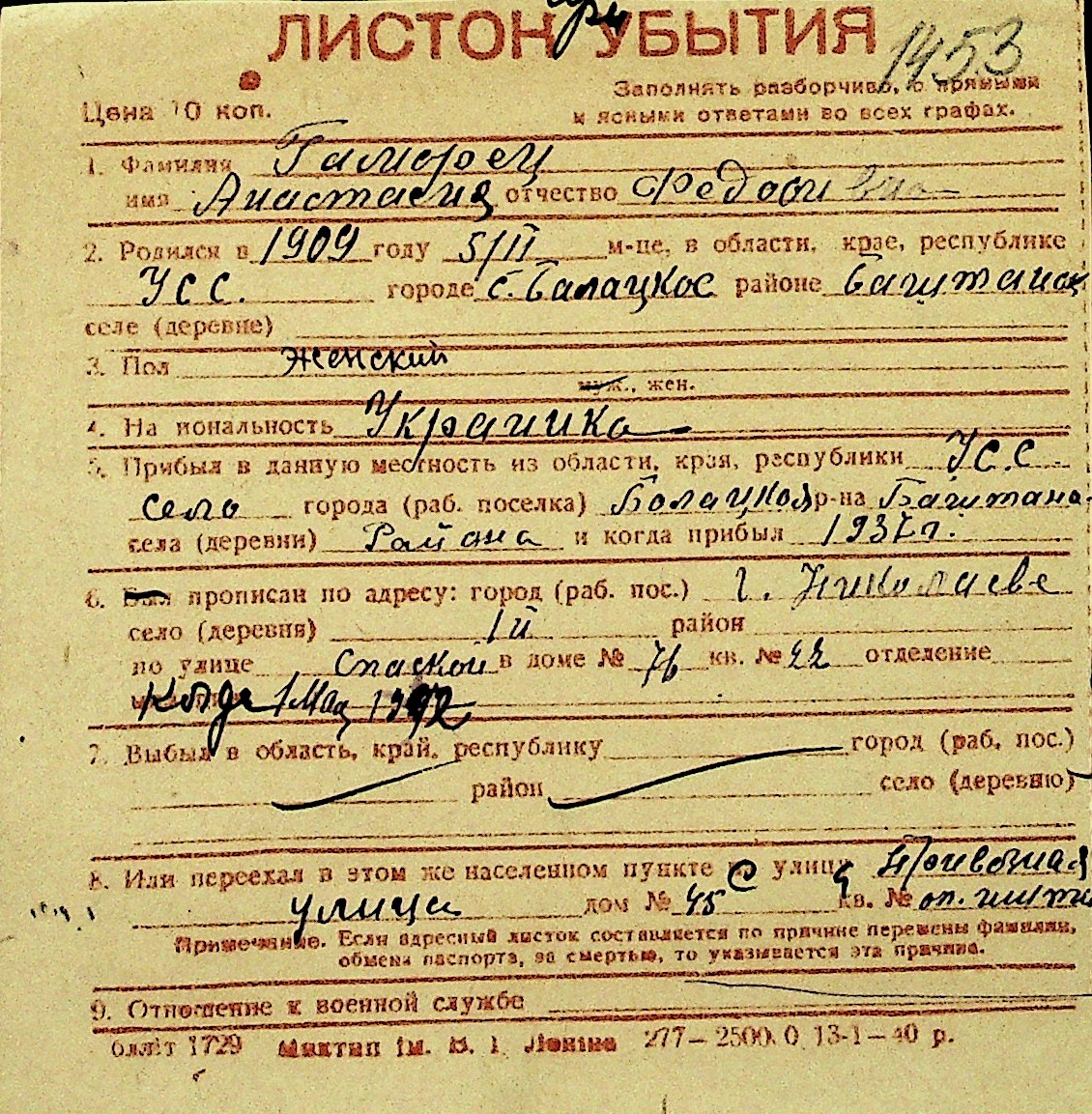 • • Перелік карток до фонду № Н-1016