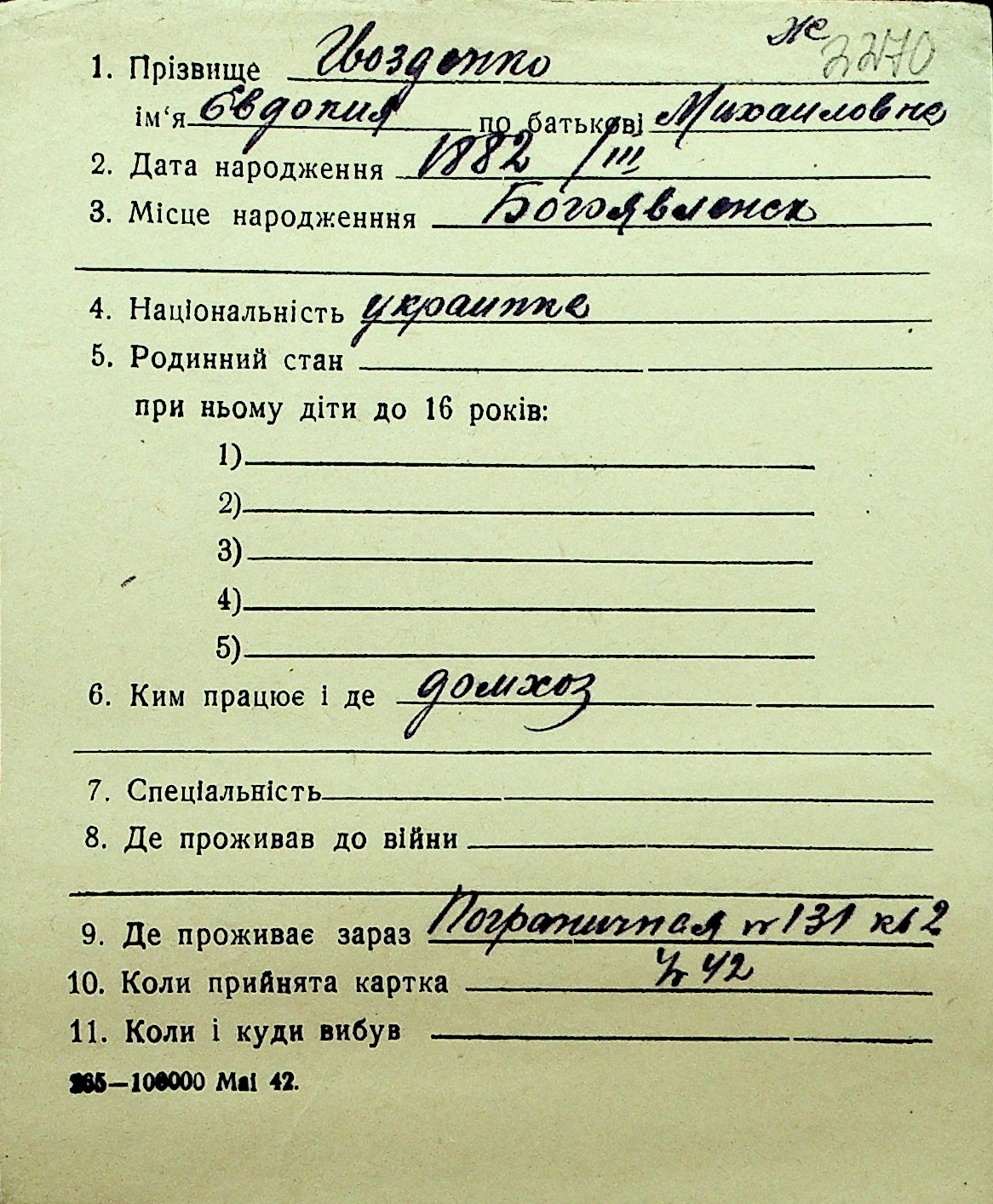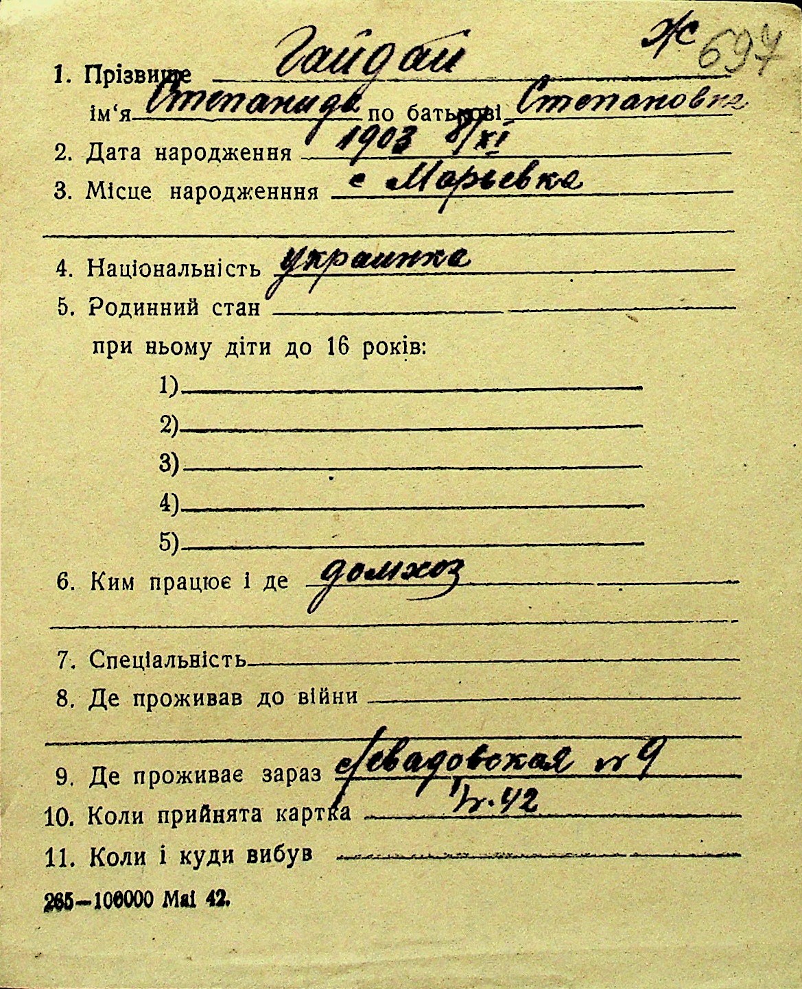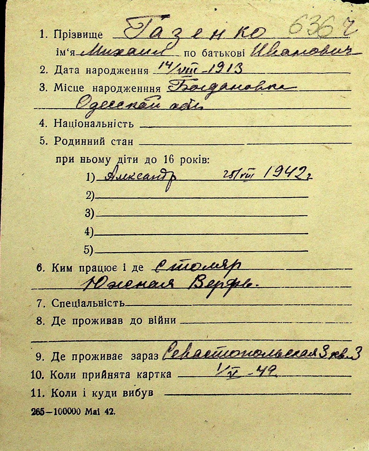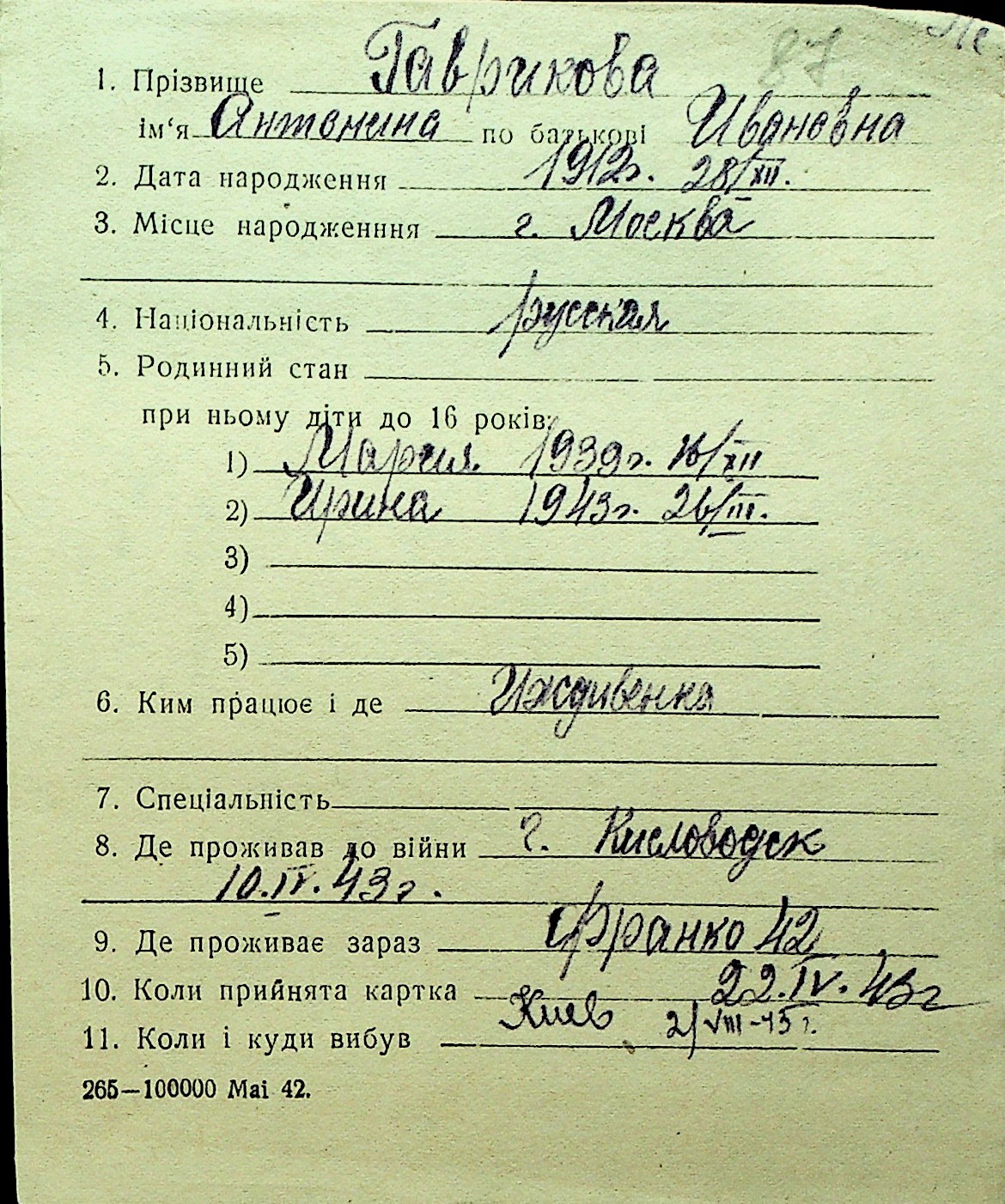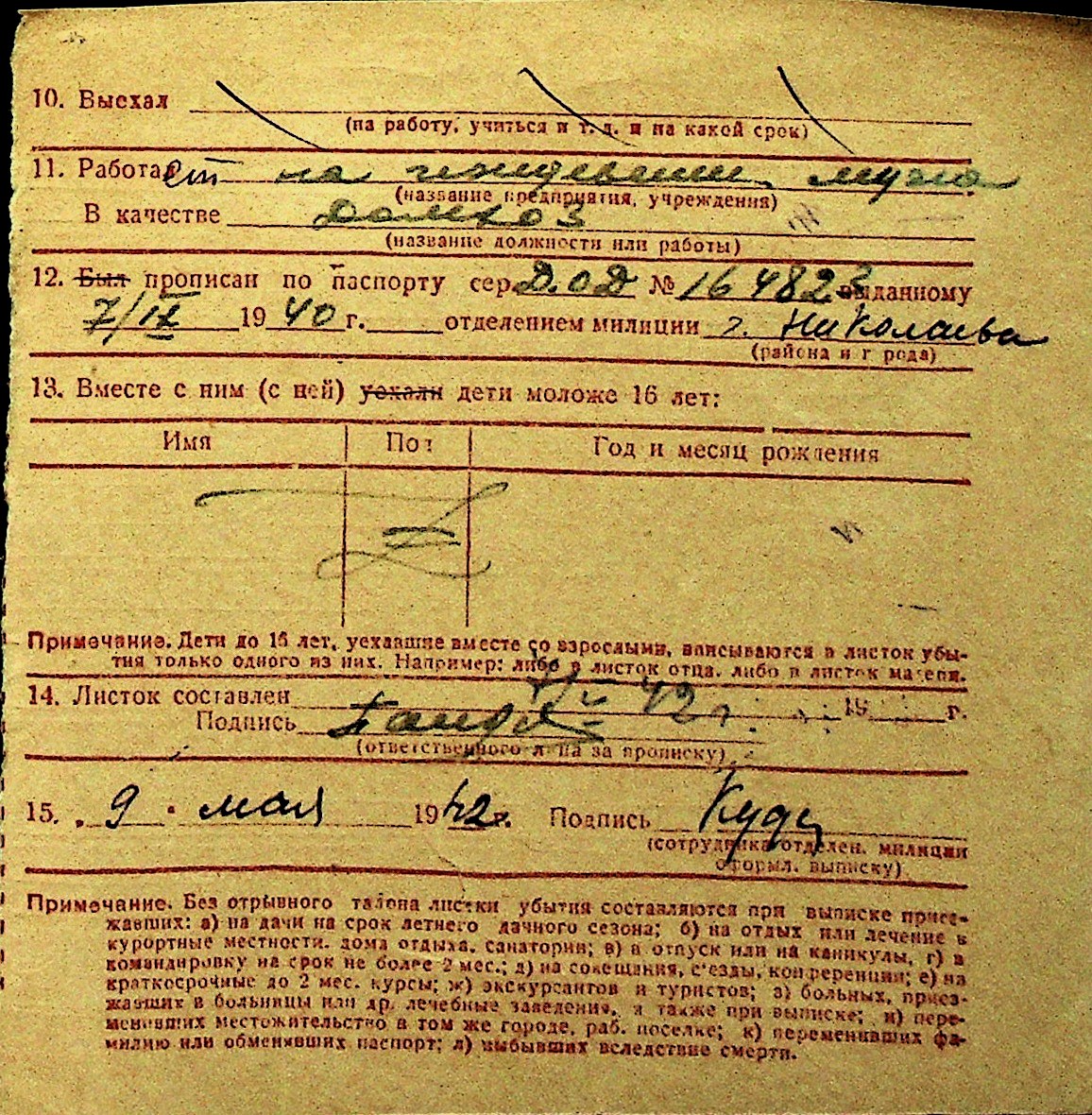 • • Перелік карток до фонду № Н-1016