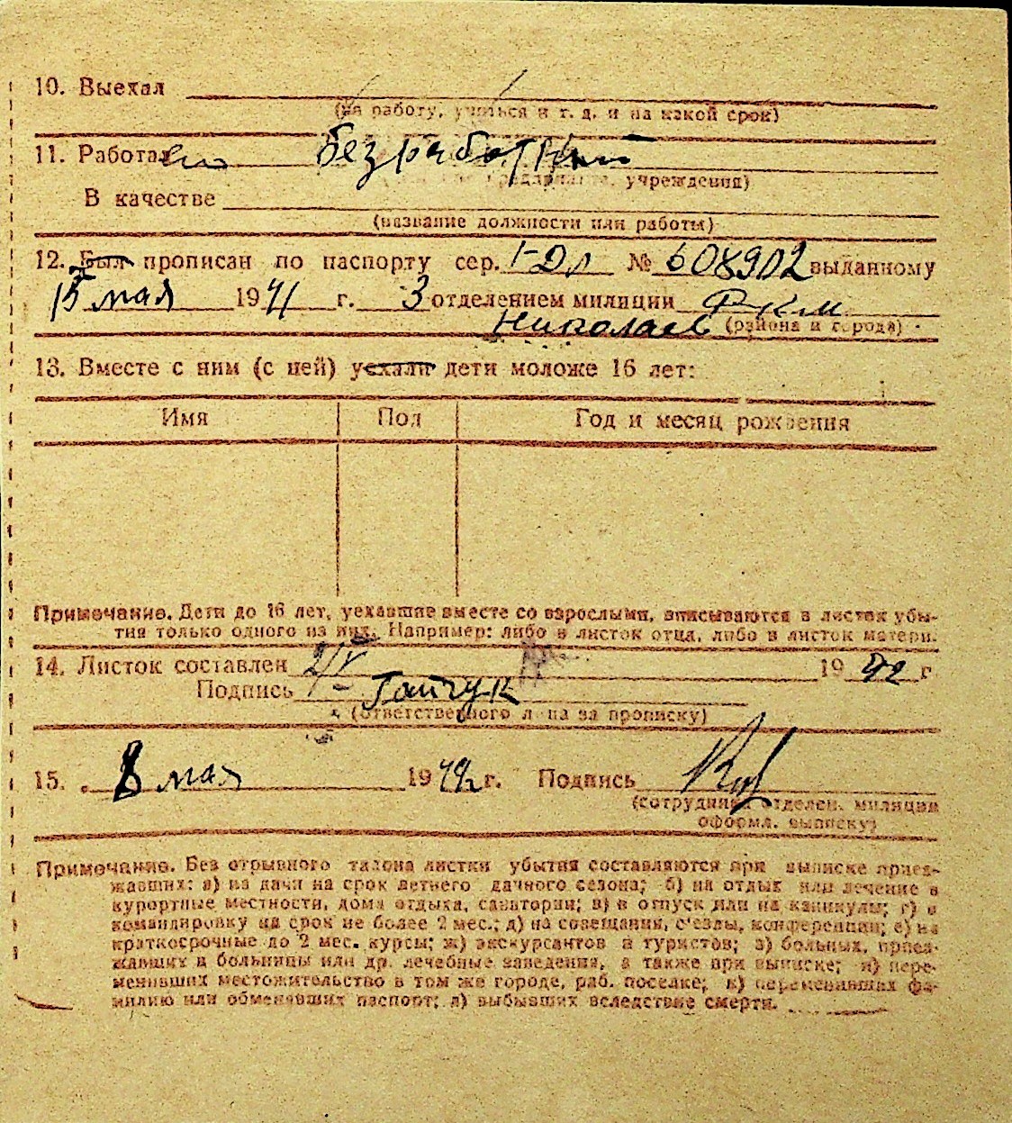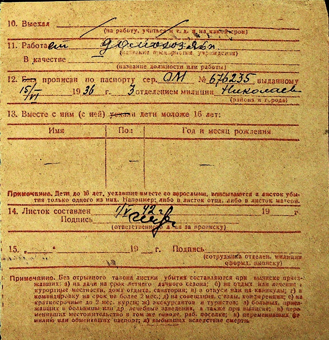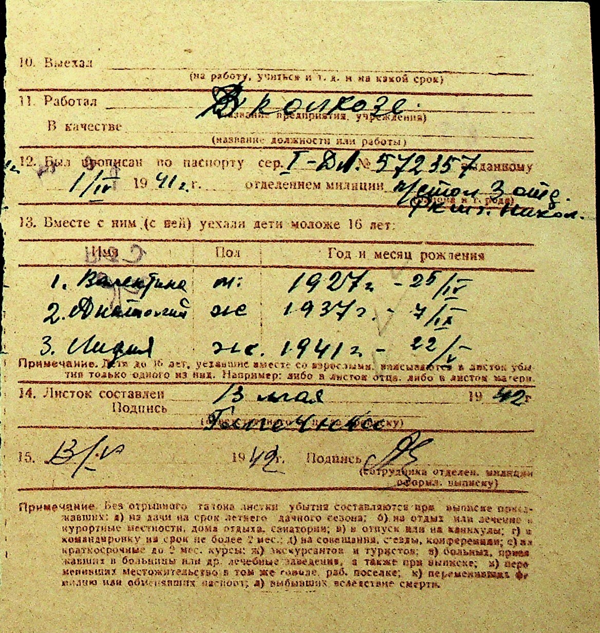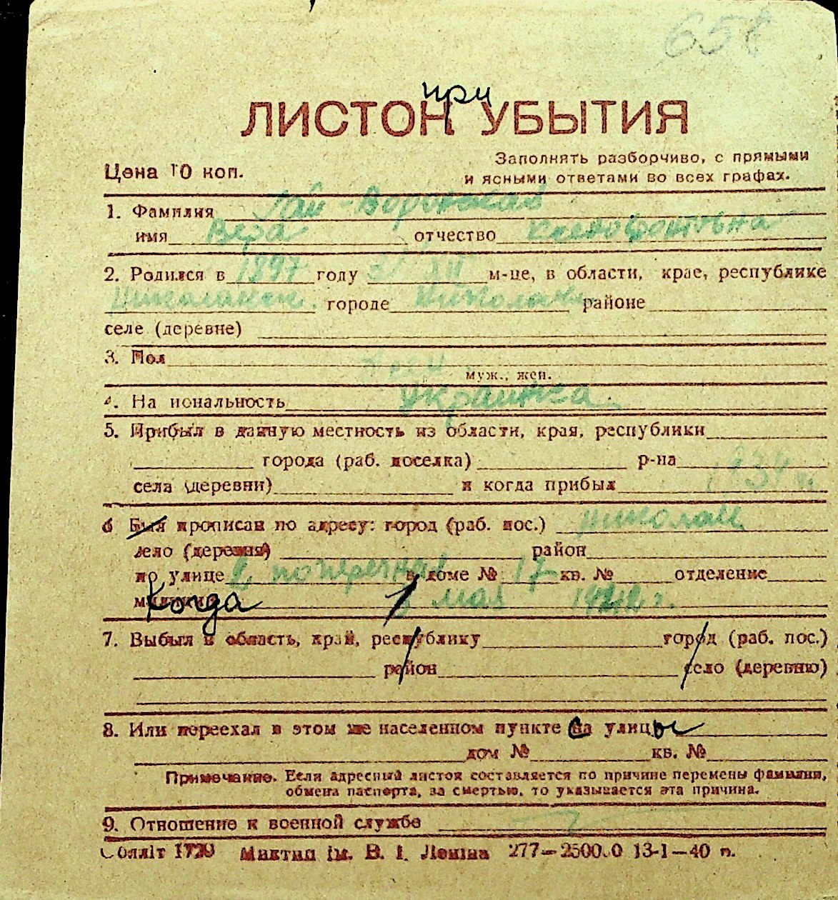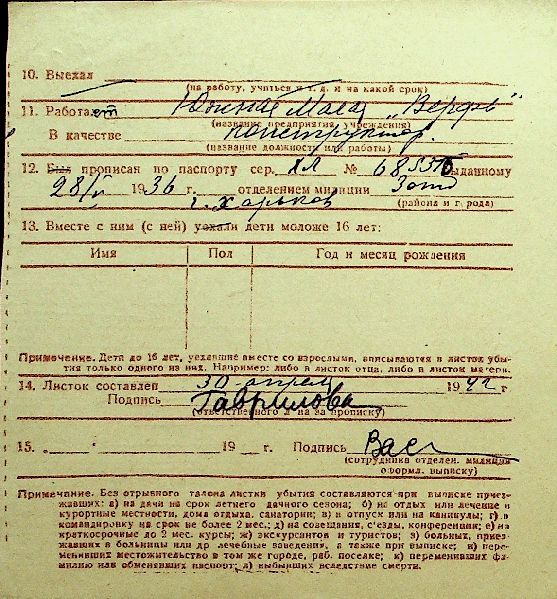 • • Перелік карток до фонду № Н-1016