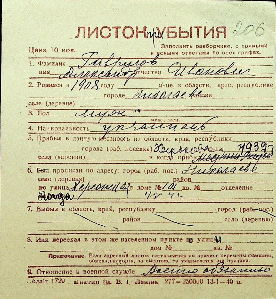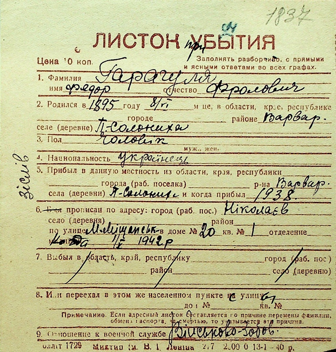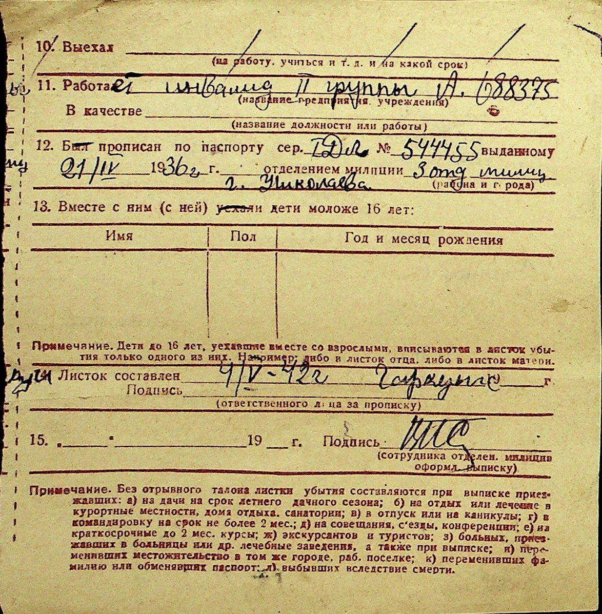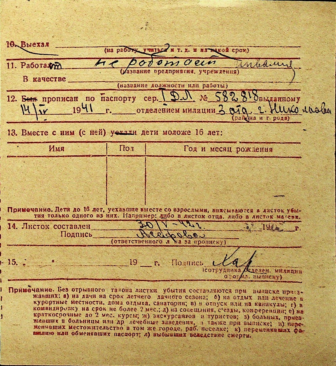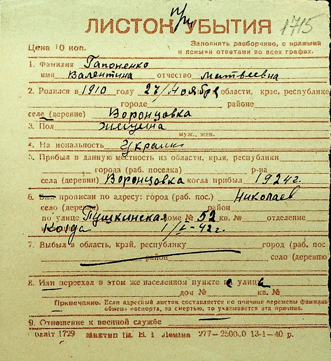 • • Перелік карток до фонду № Н-1016
