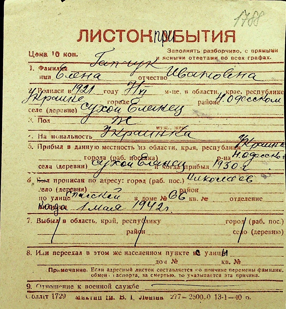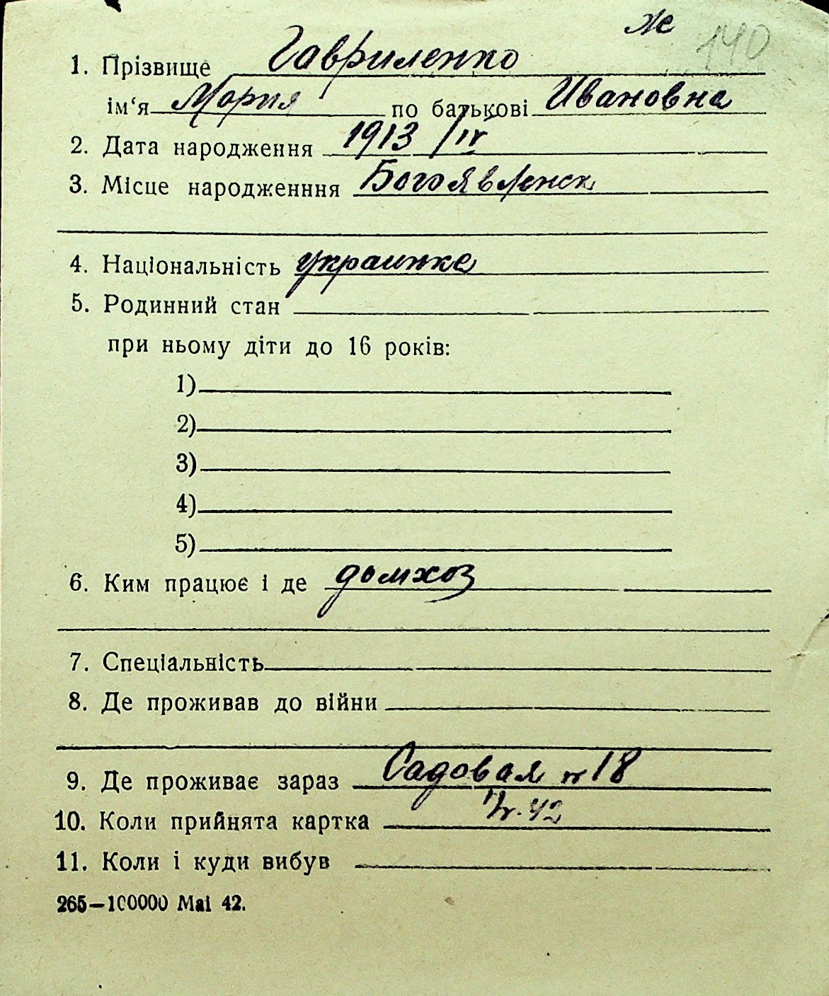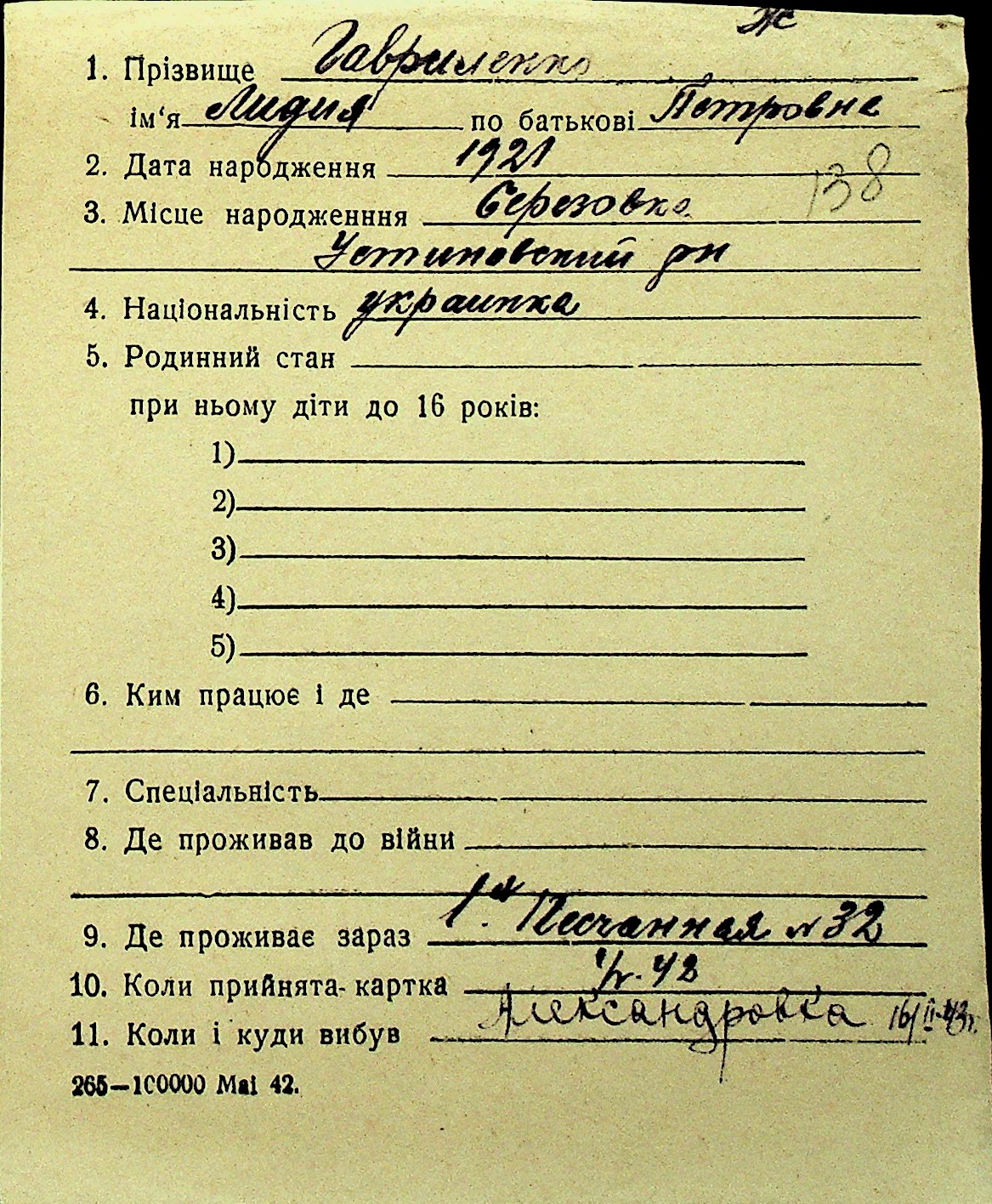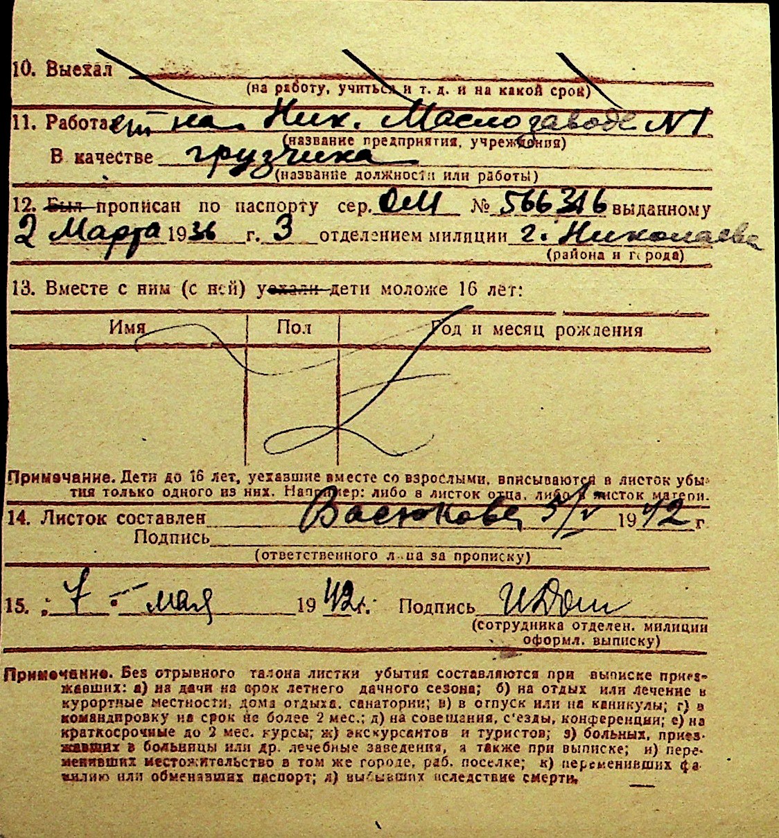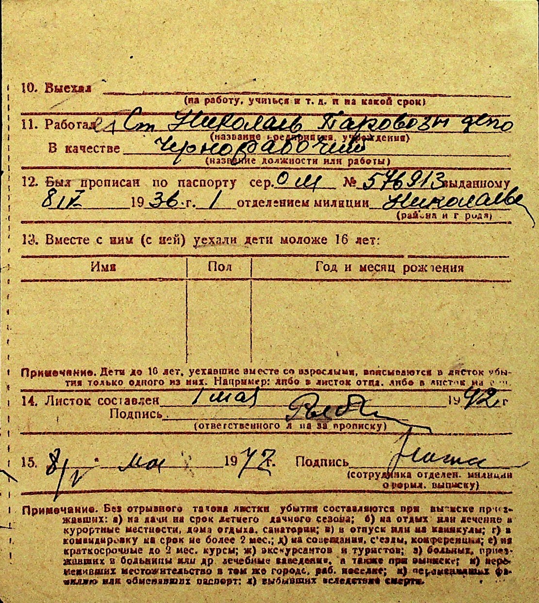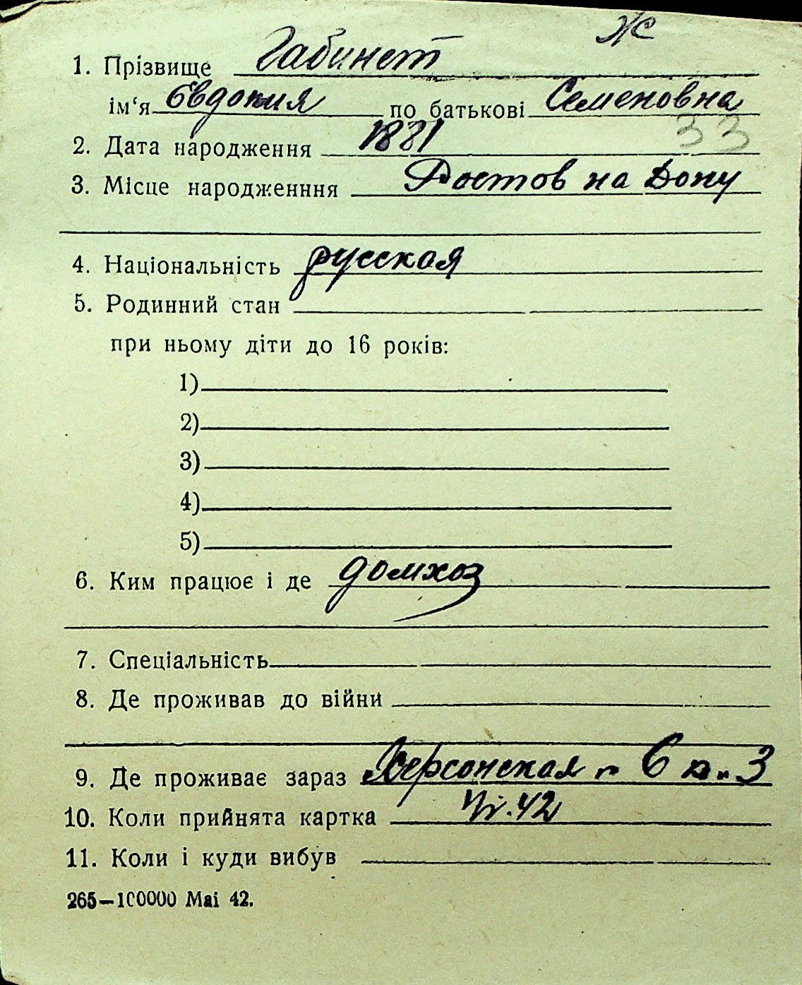 • • Перелік карток до фонду № Н-1016