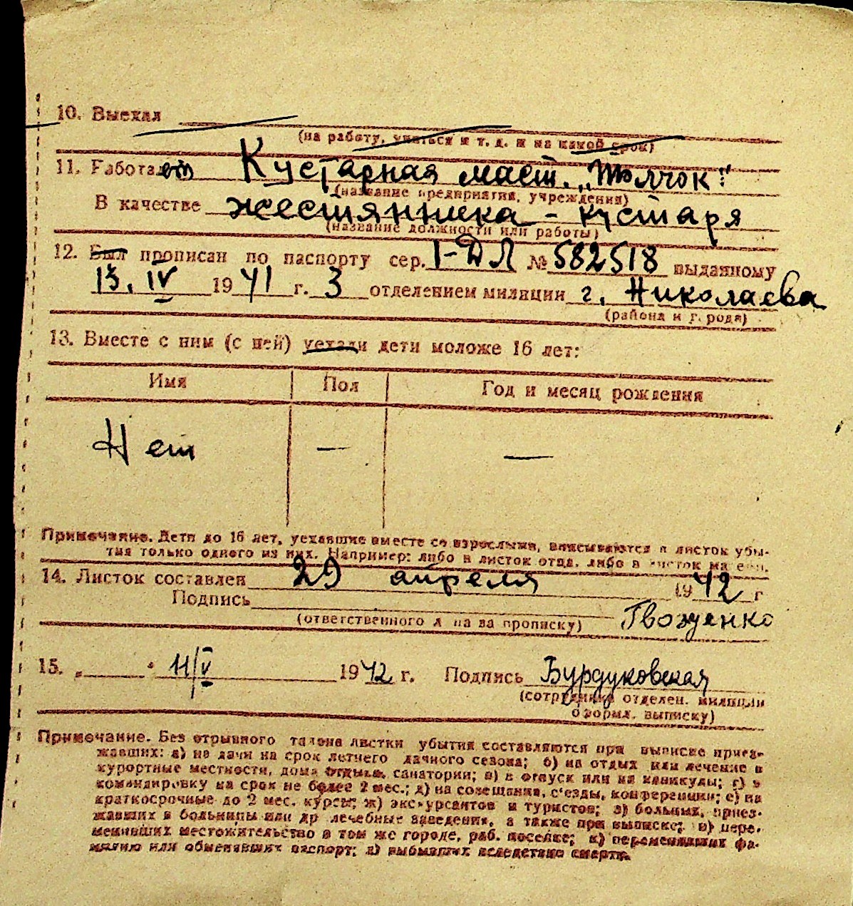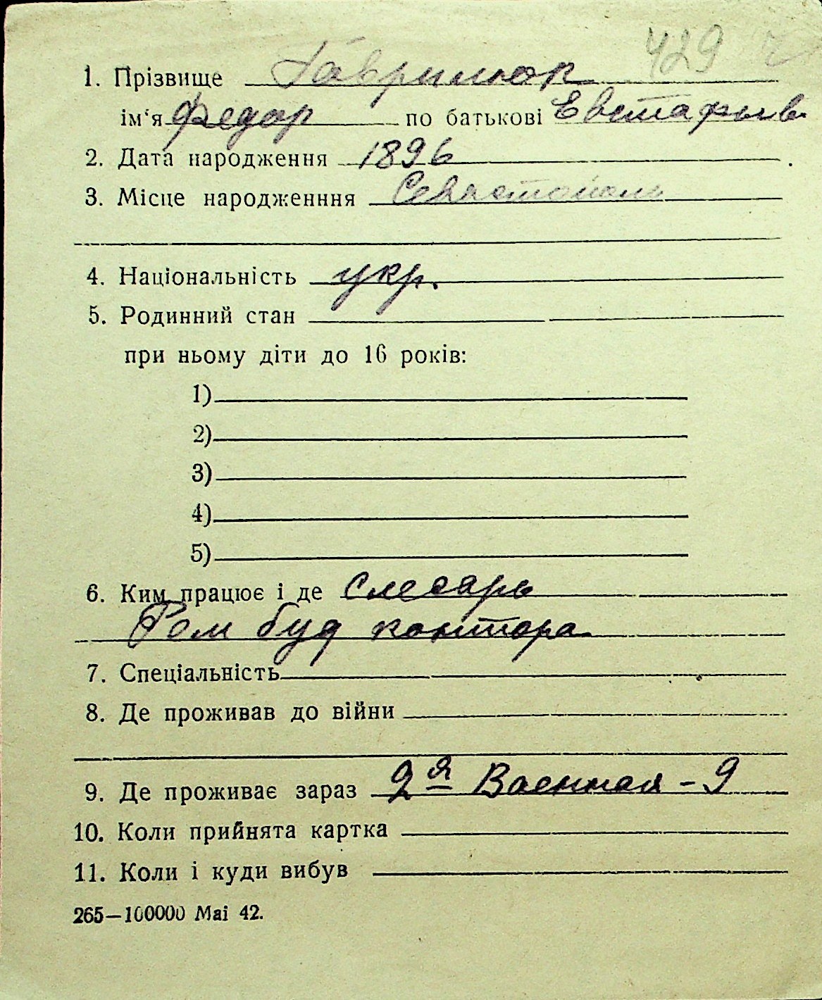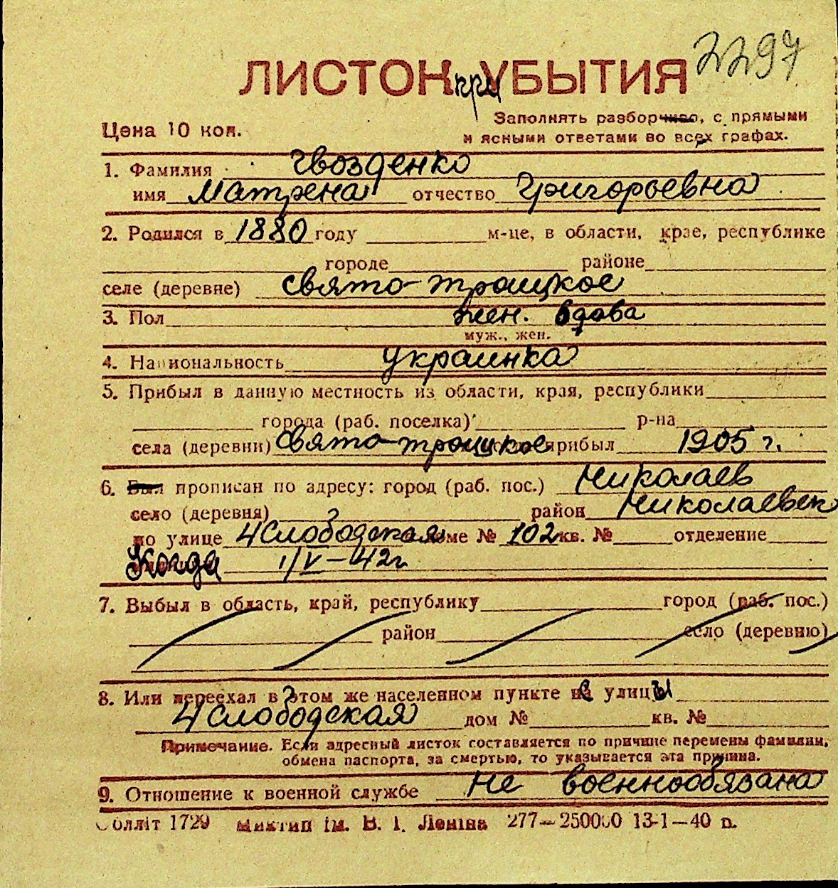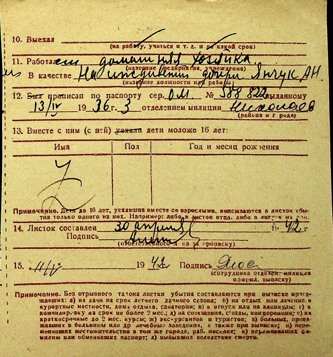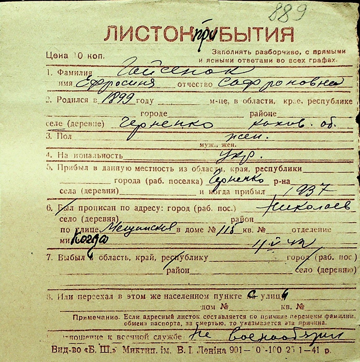 • • Перелік карток до фонду № Н-1016