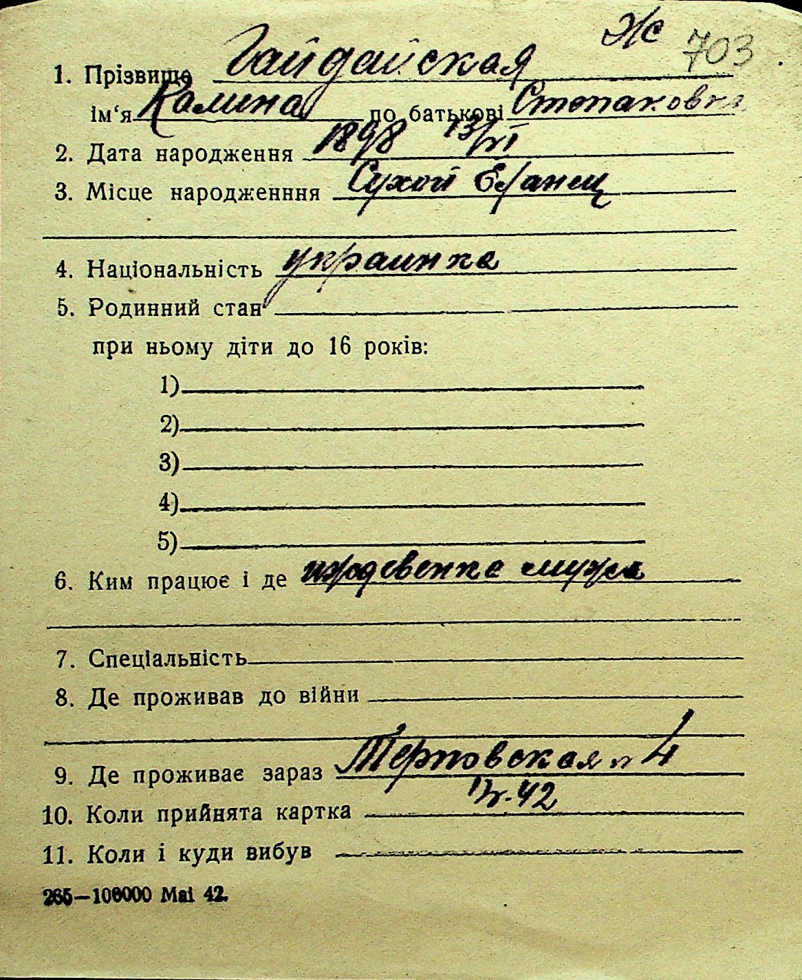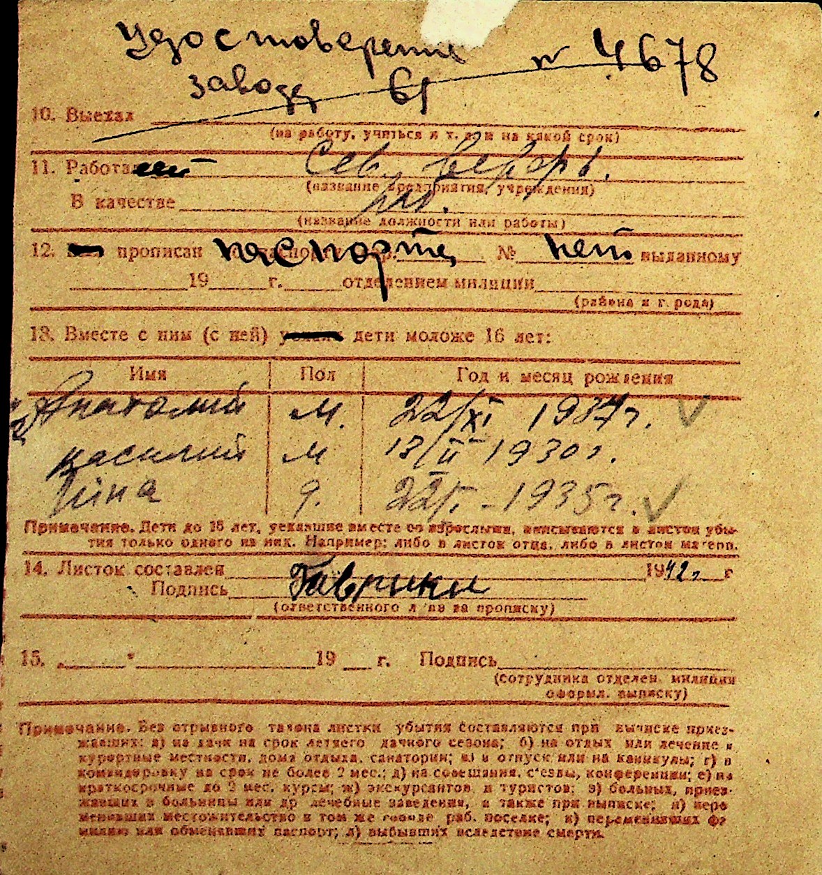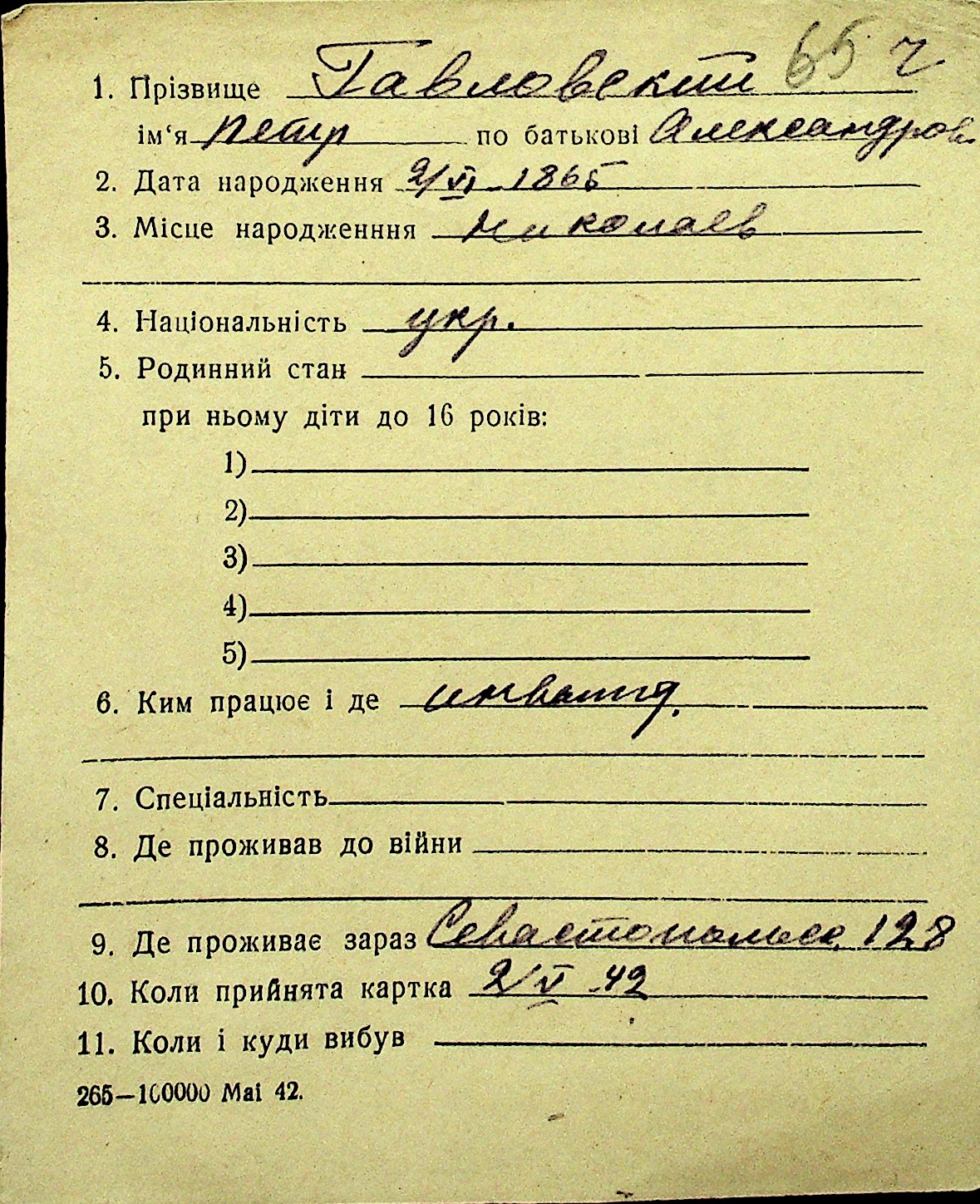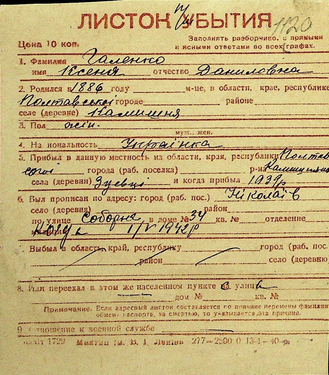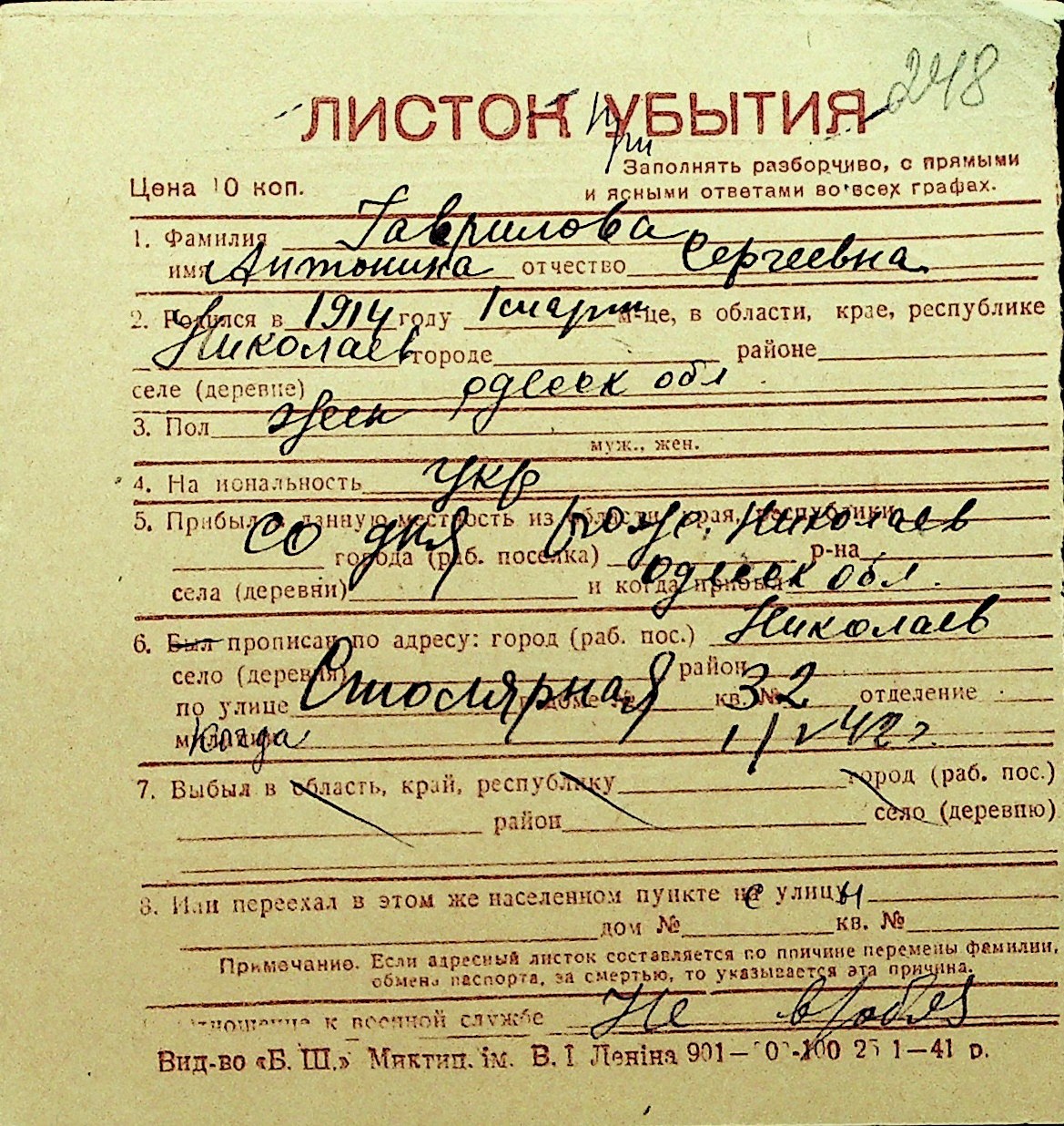 • • Перелік карток до фонду № Н-1016