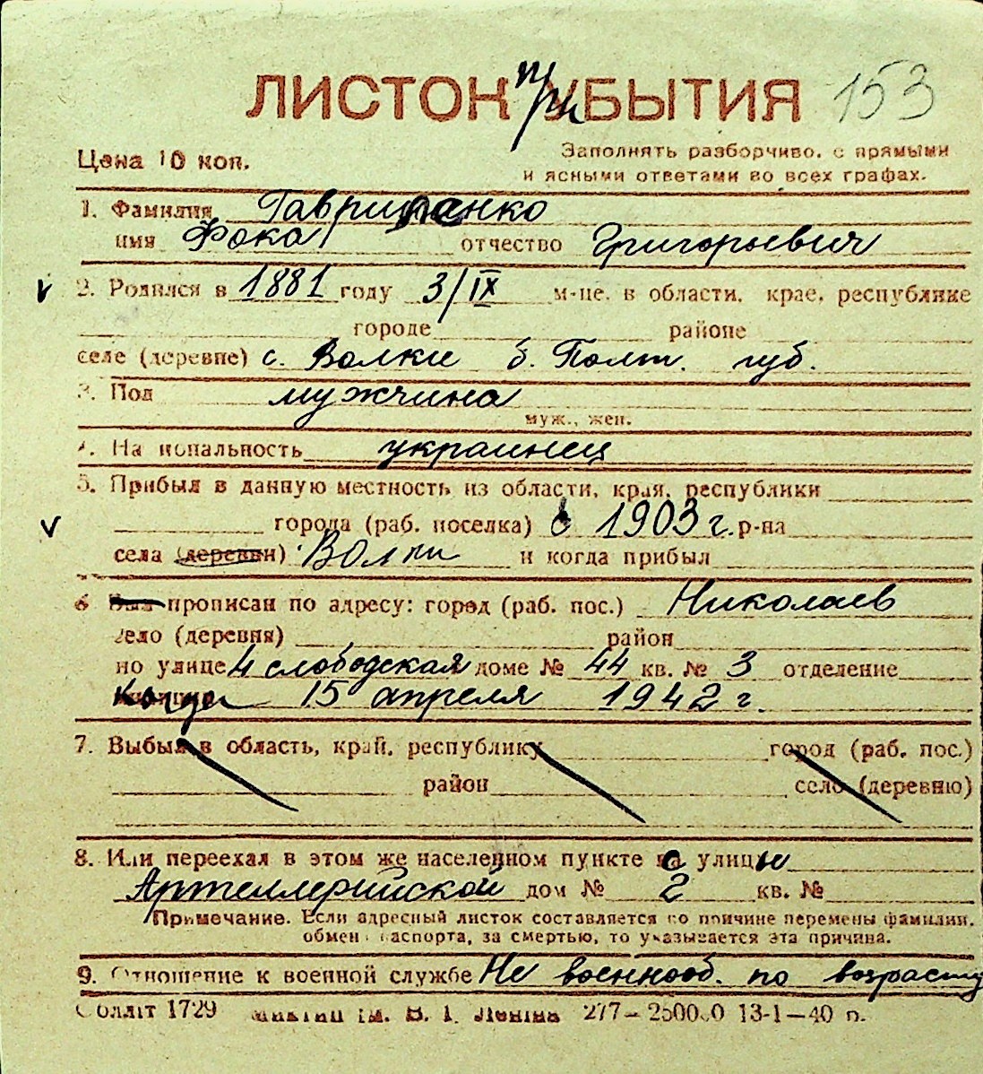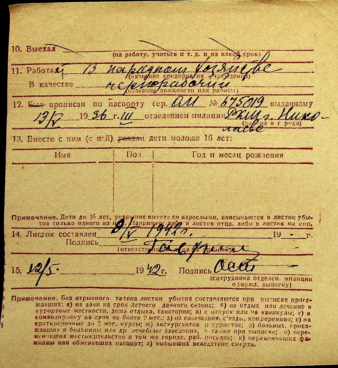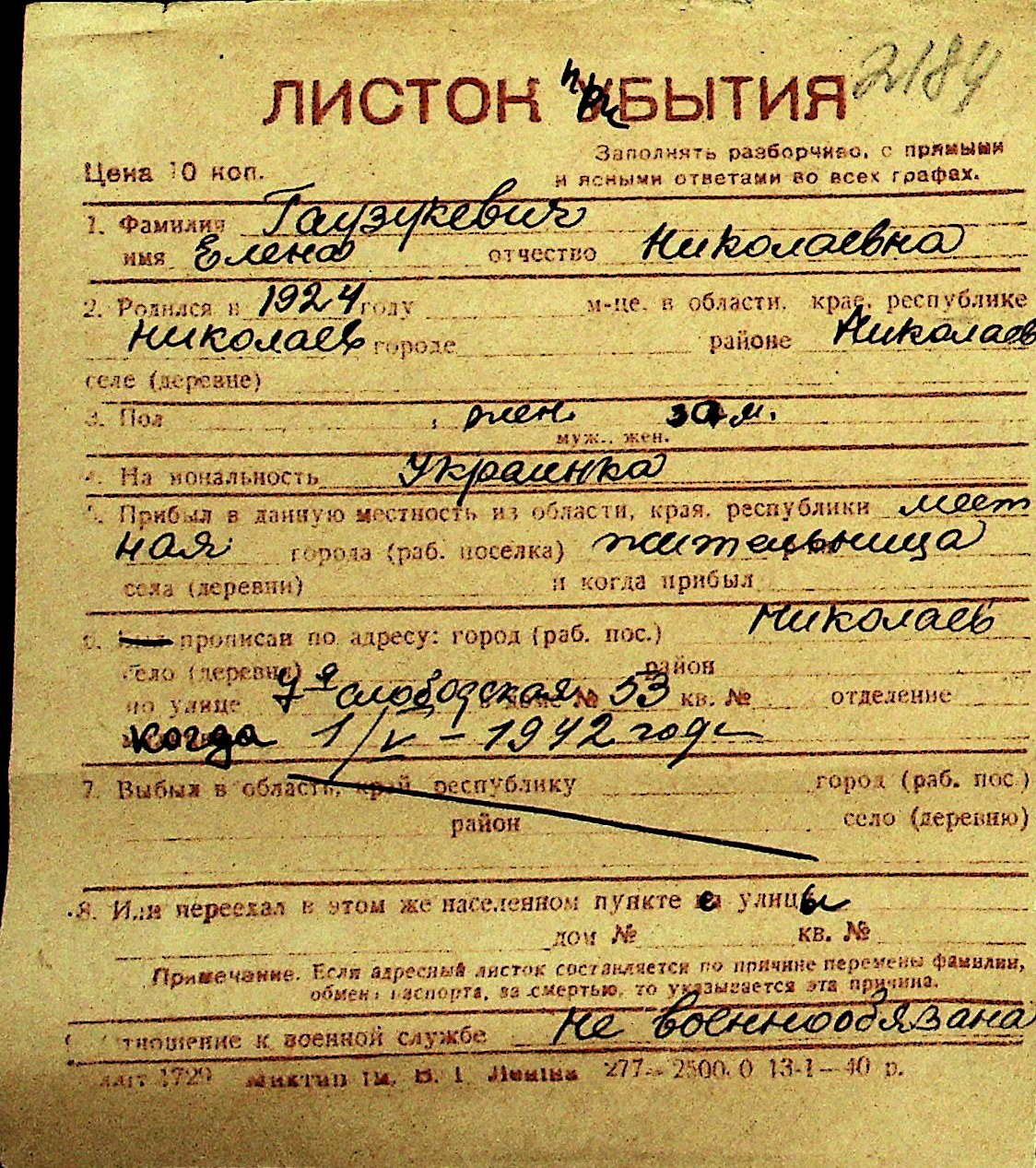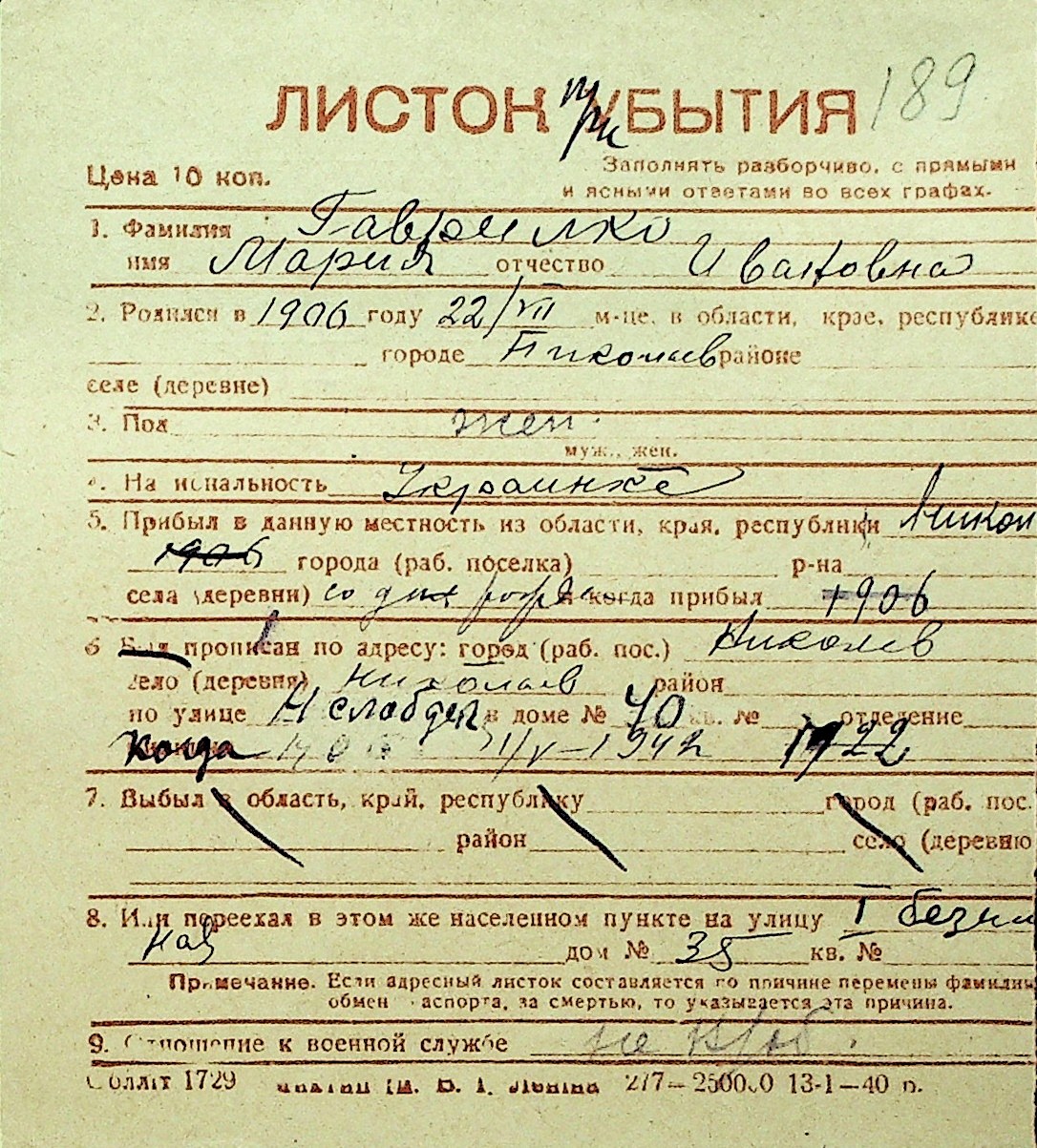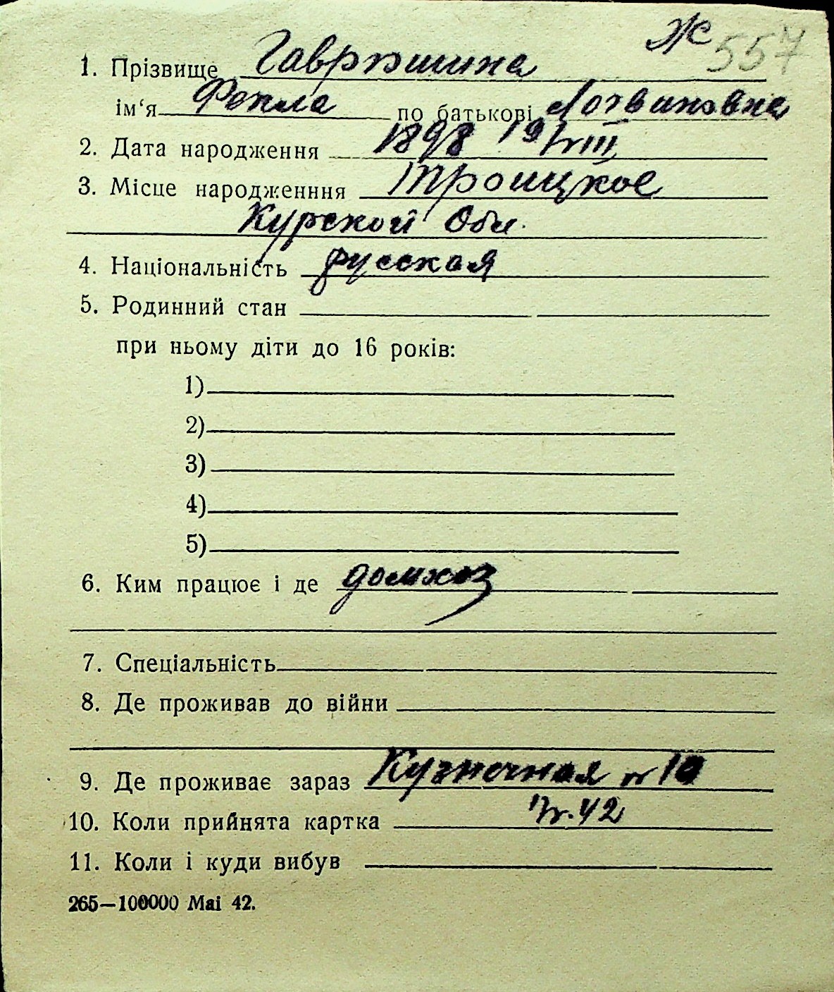 • • Перелік карток до фонду № Н-1016