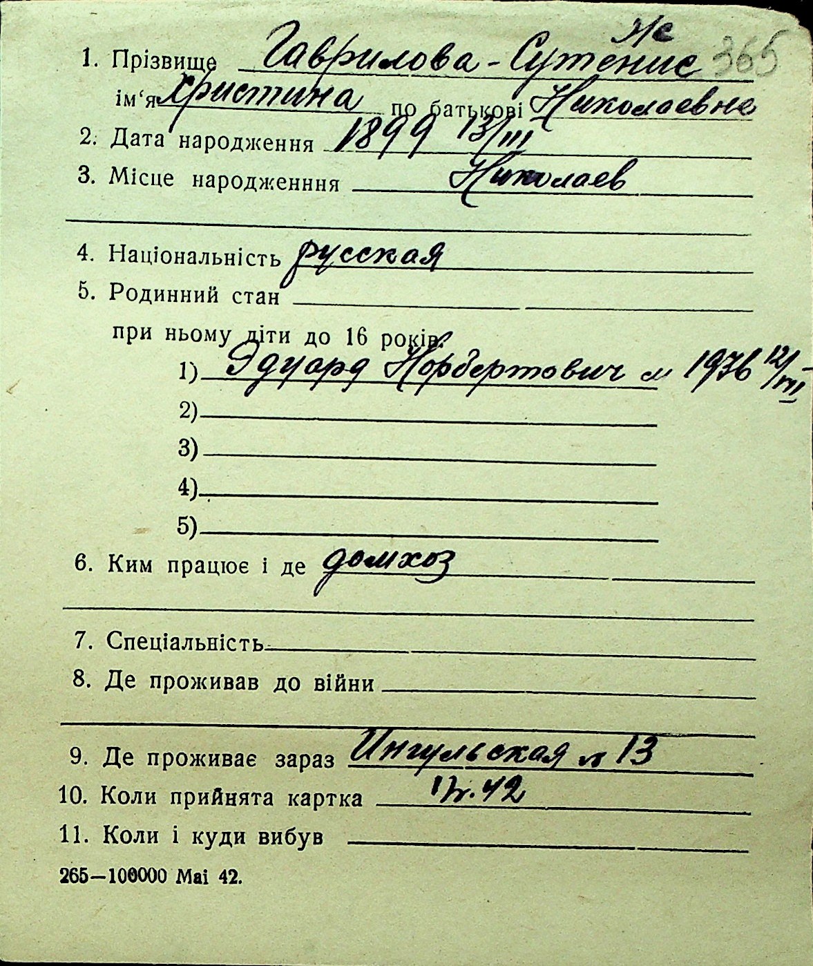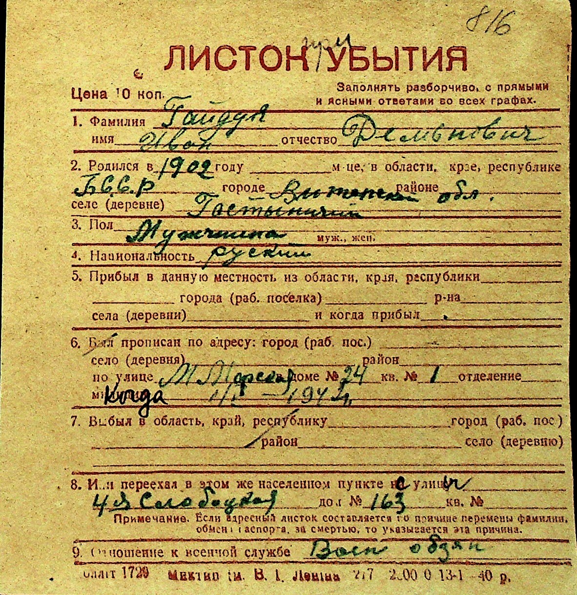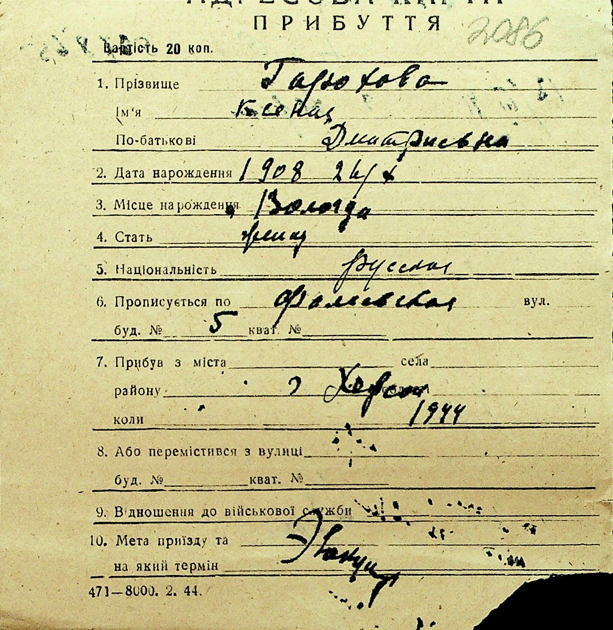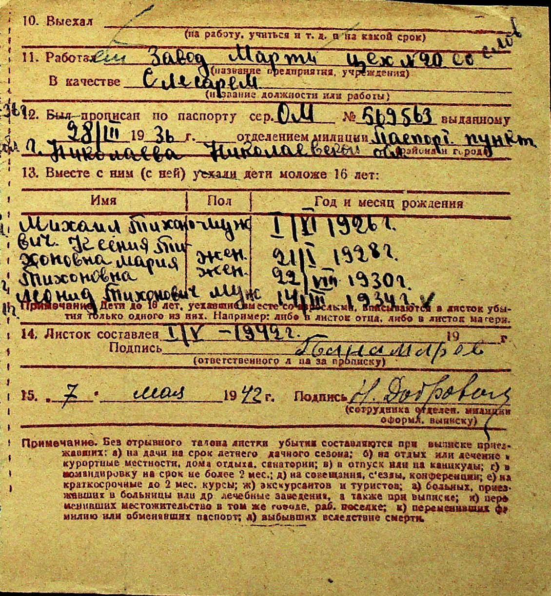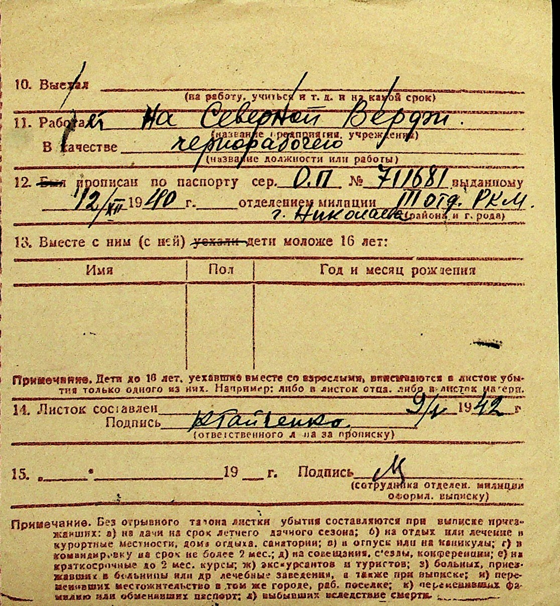 • • Перелік карток до фонду № Н-1016