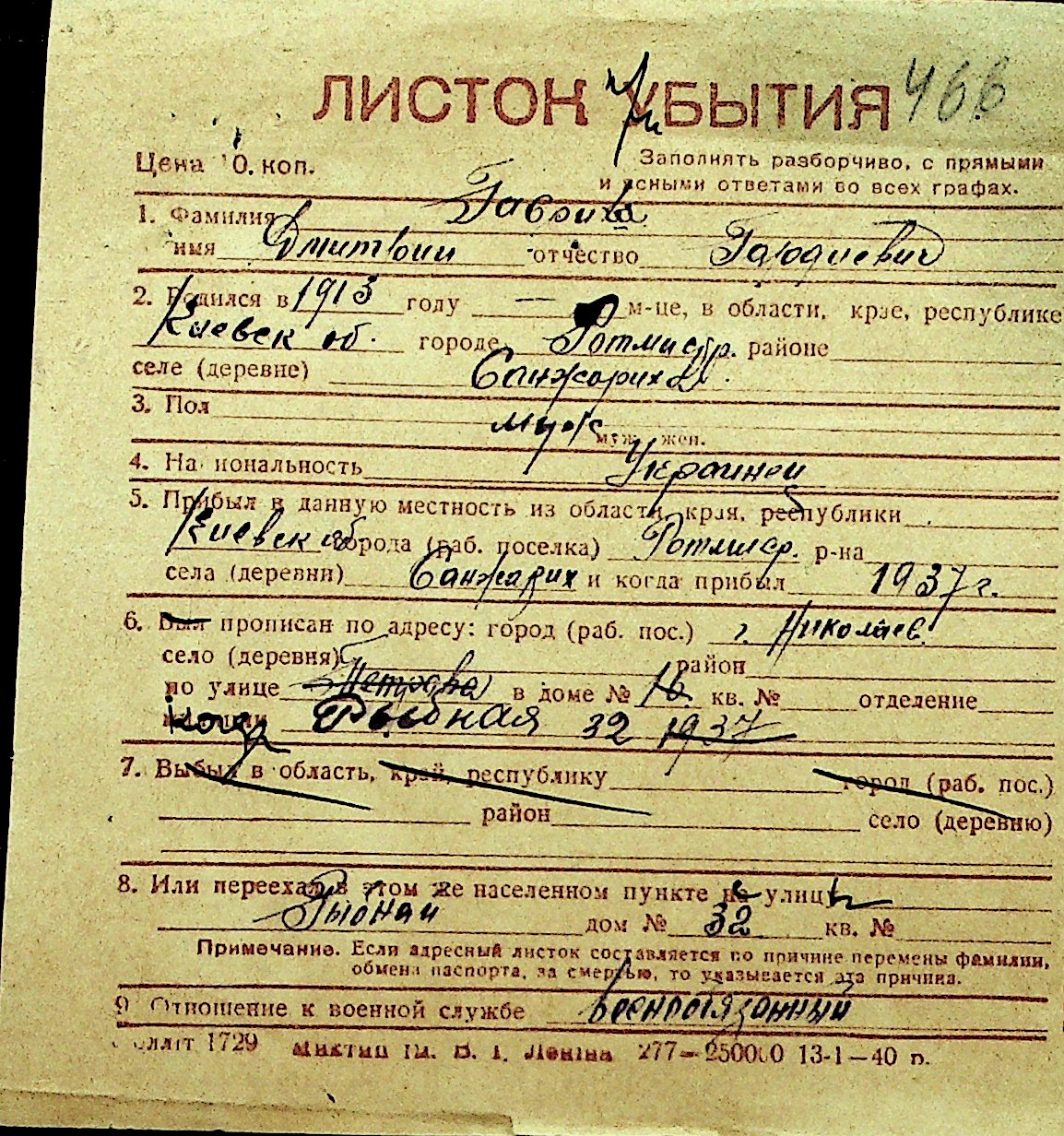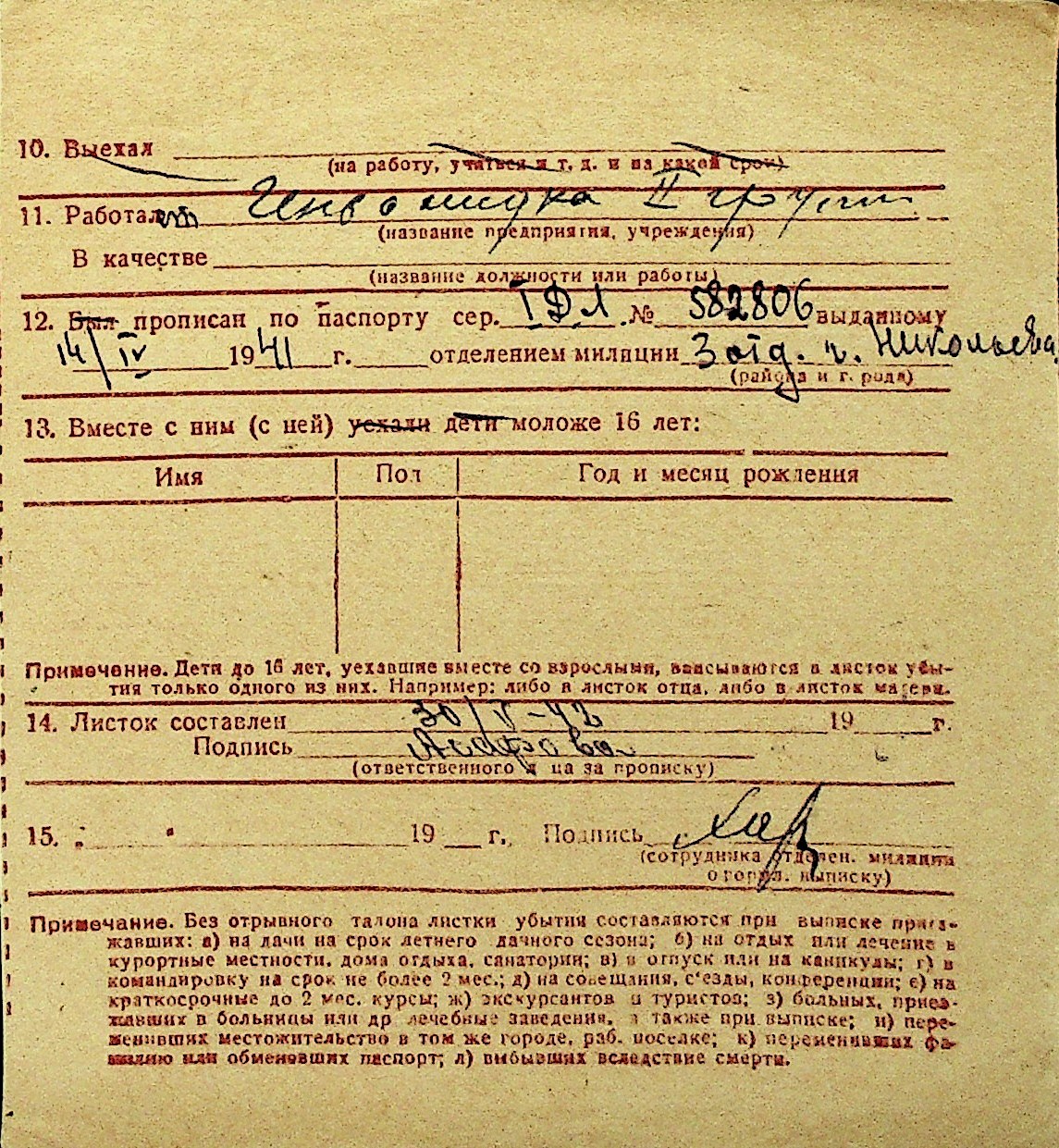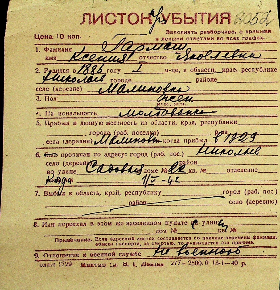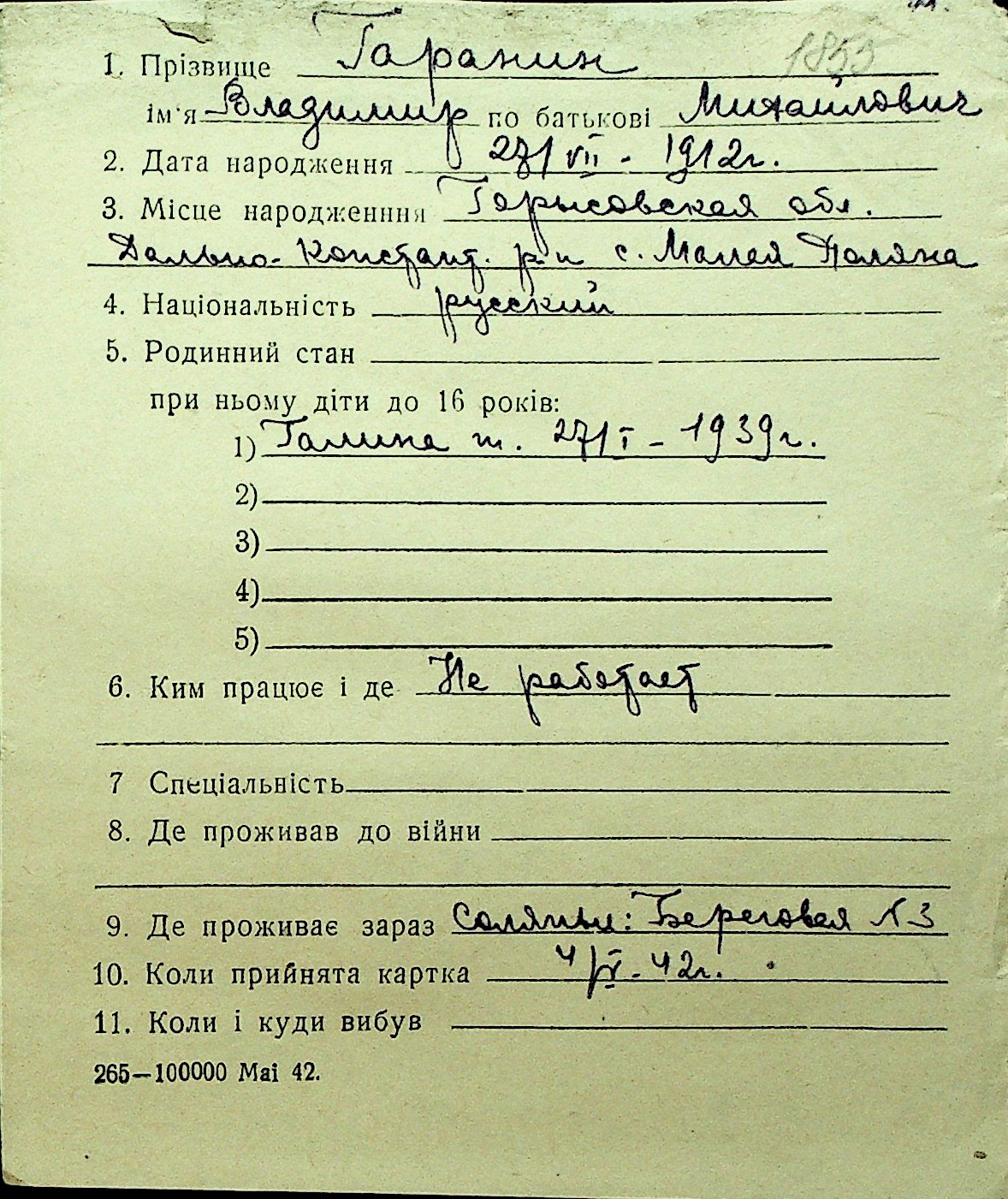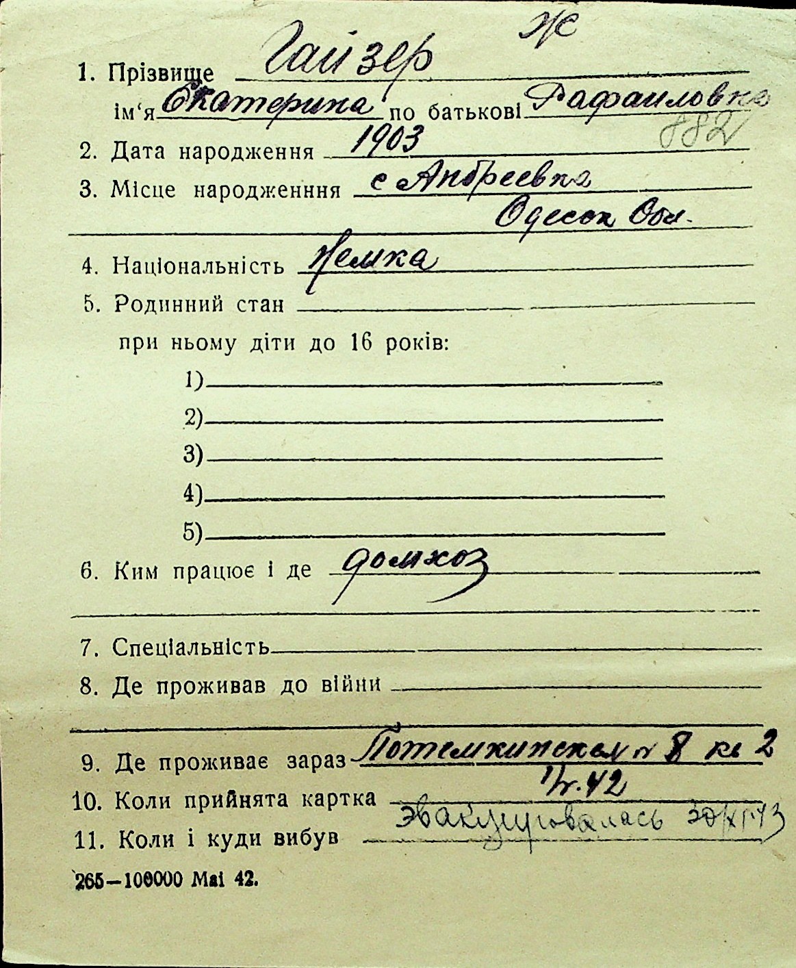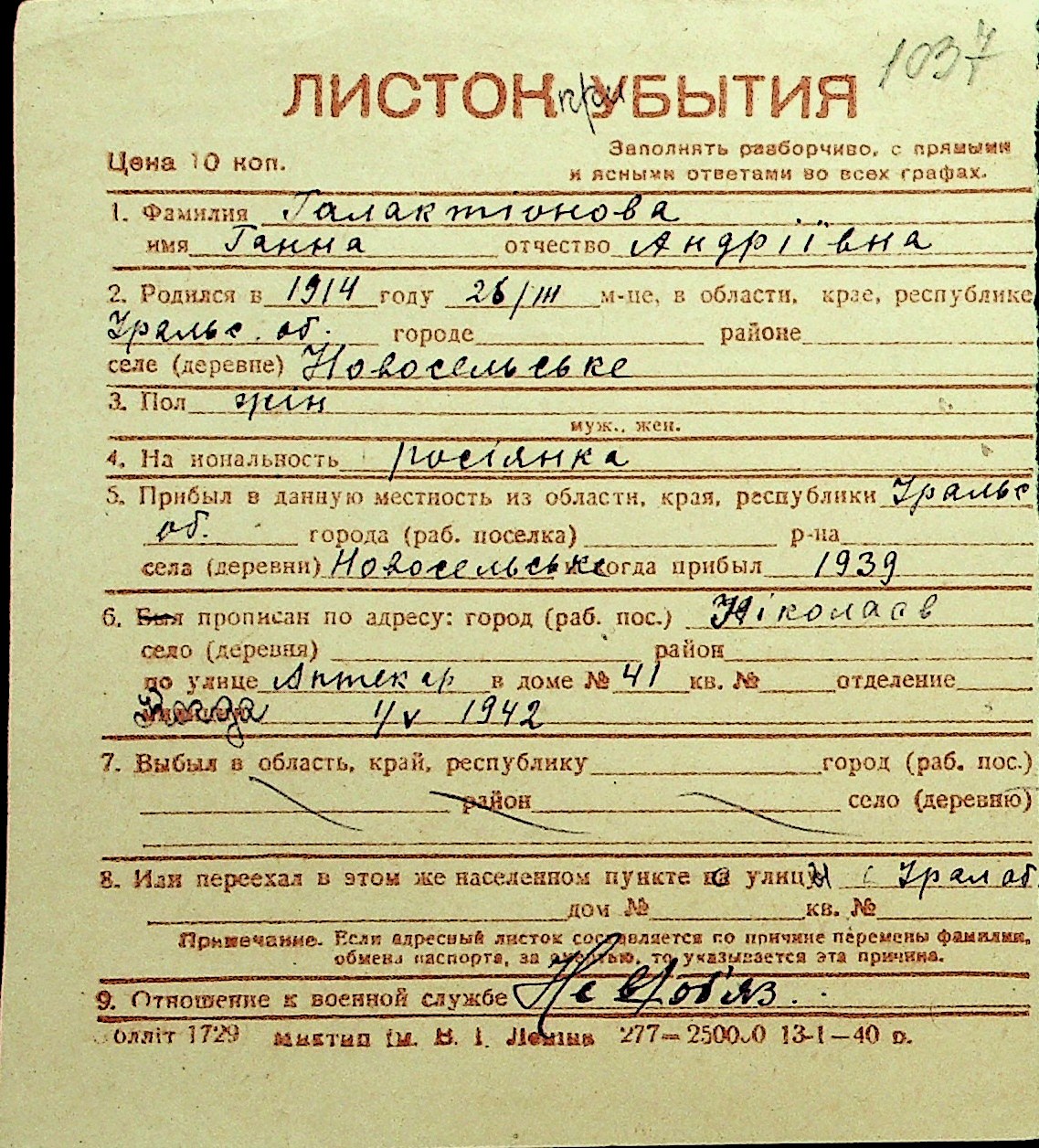 • • Перелік карток до фонду № Н-1016