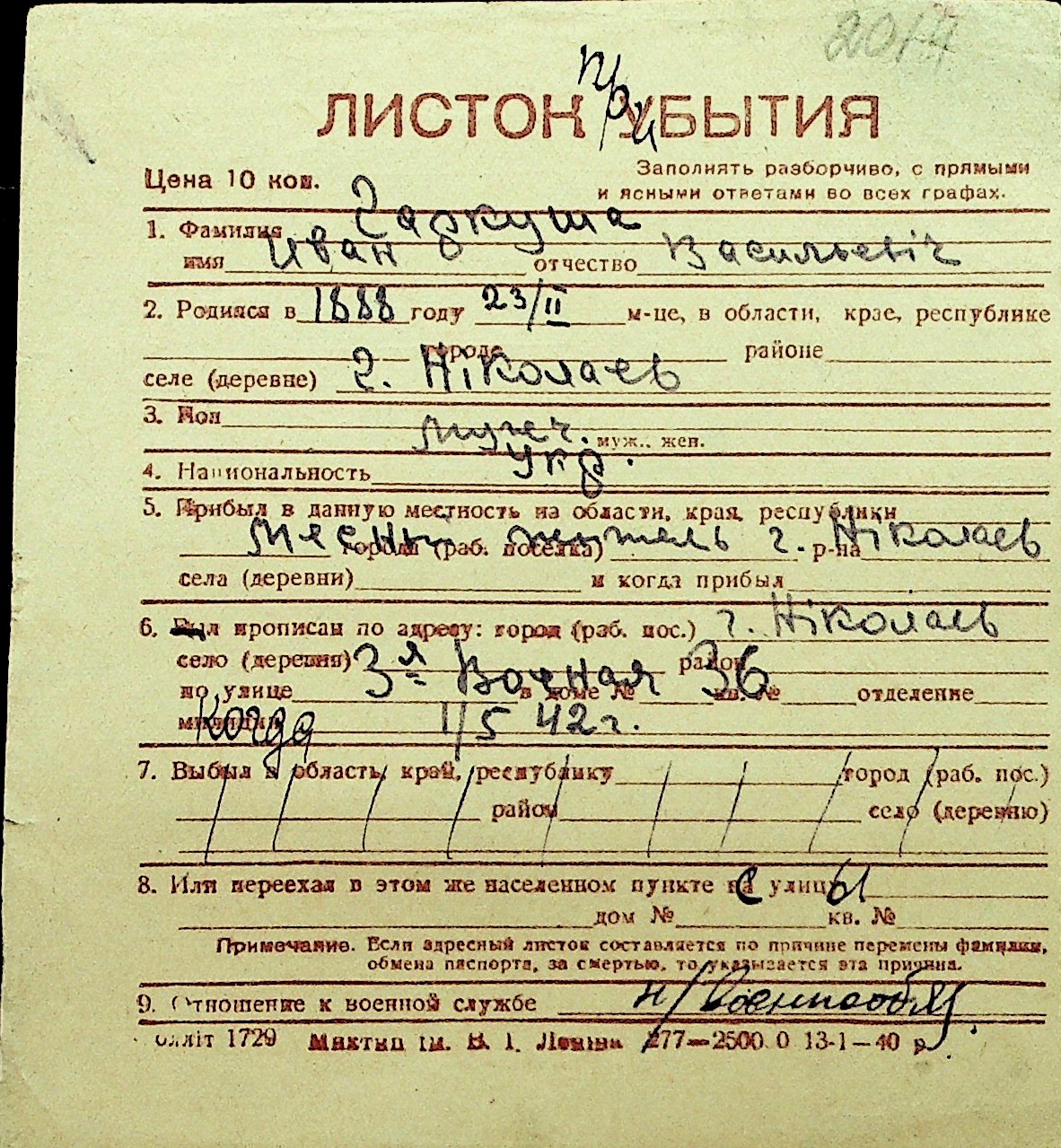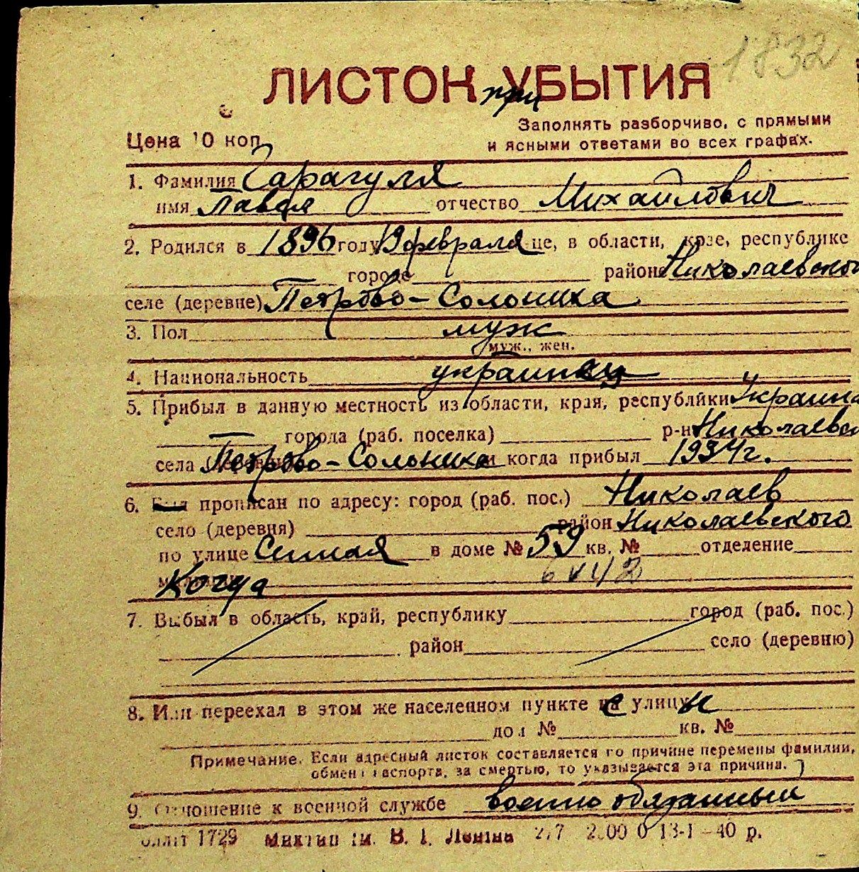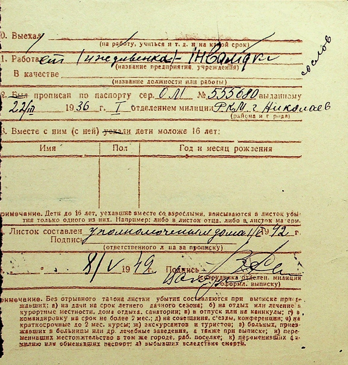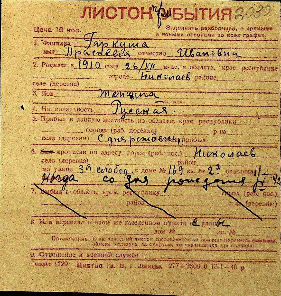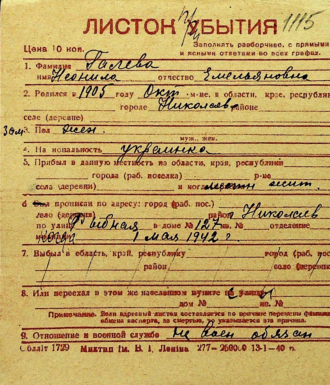 • • Перелік карток до фонду № Н-1016