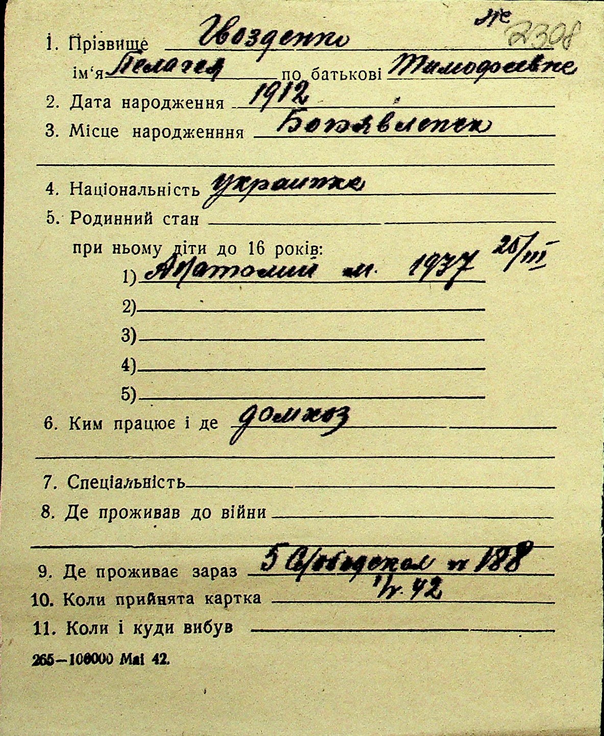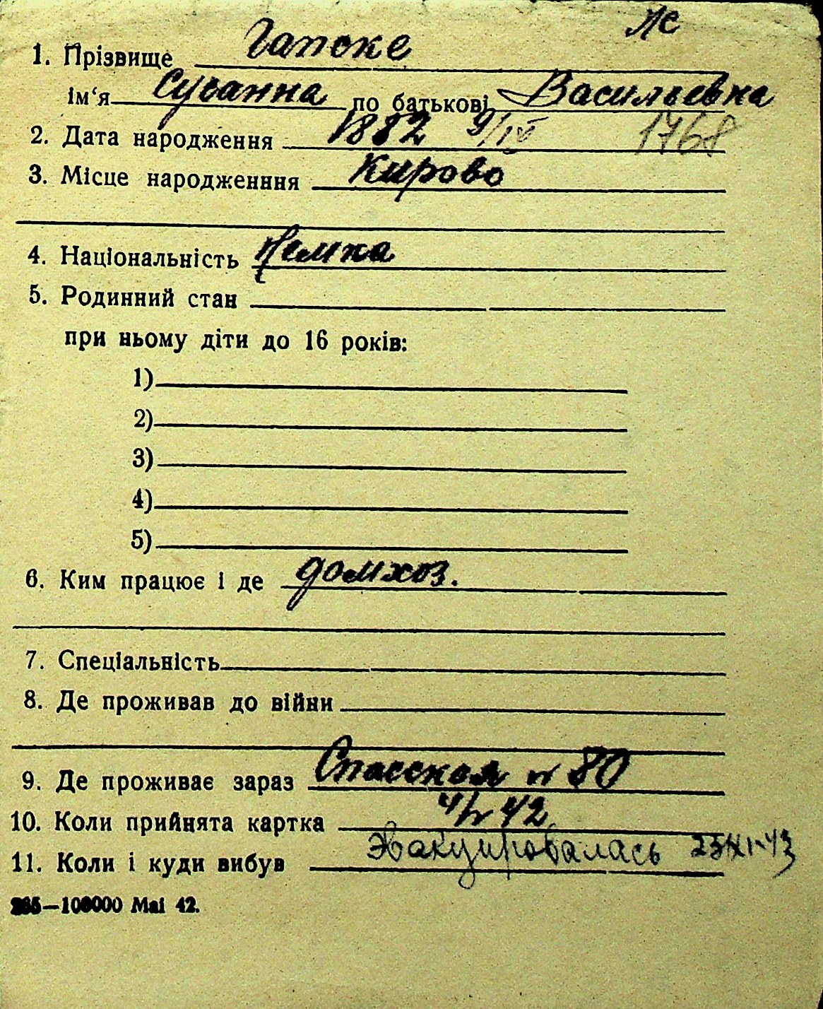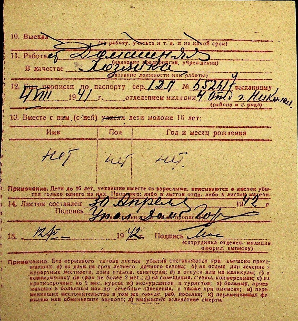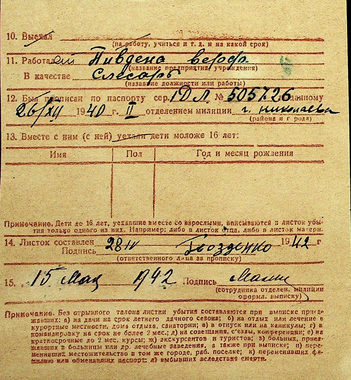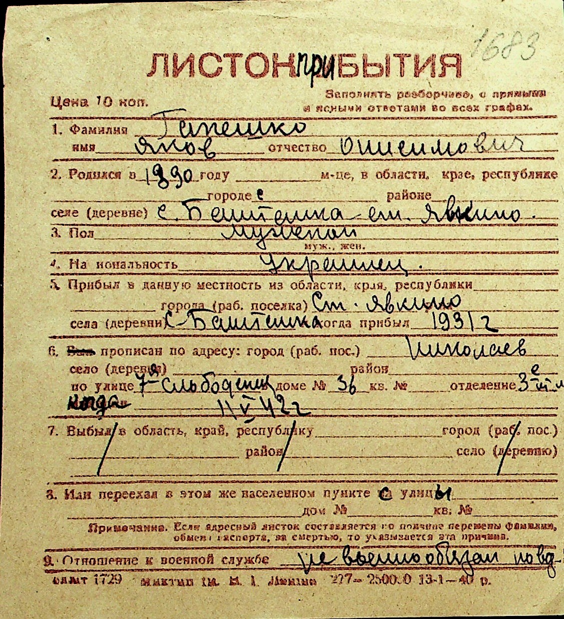 • • Перелік карток до фонду № Н-1016