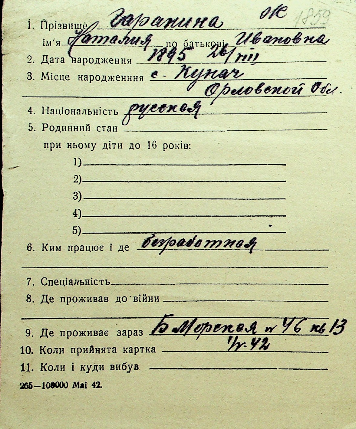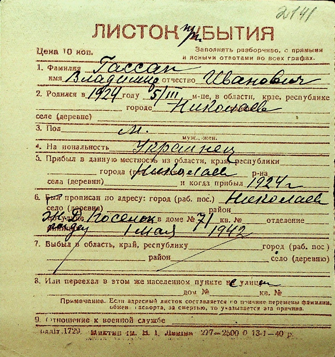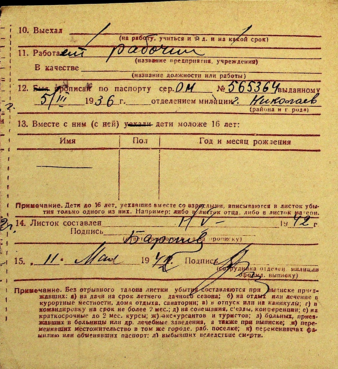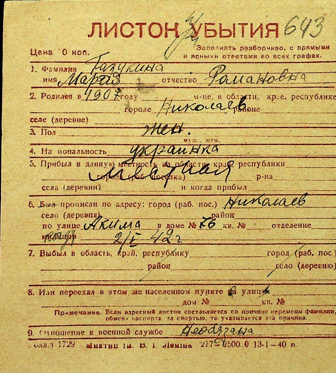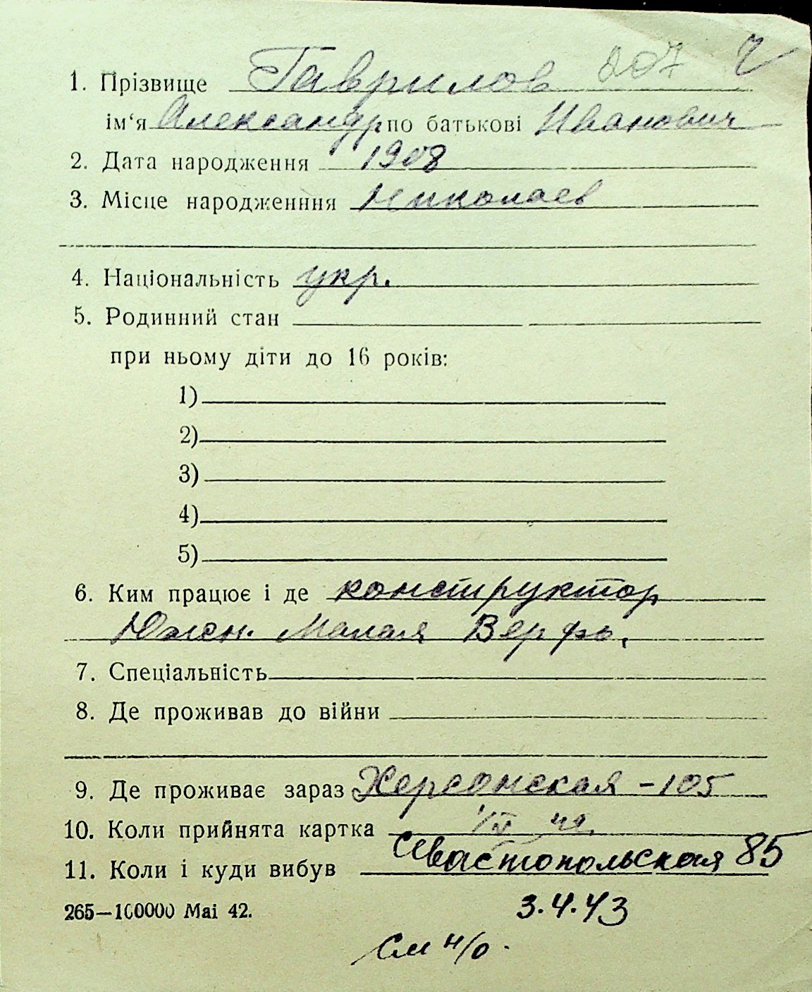 • • Перелік карток до фонду № Н-1016