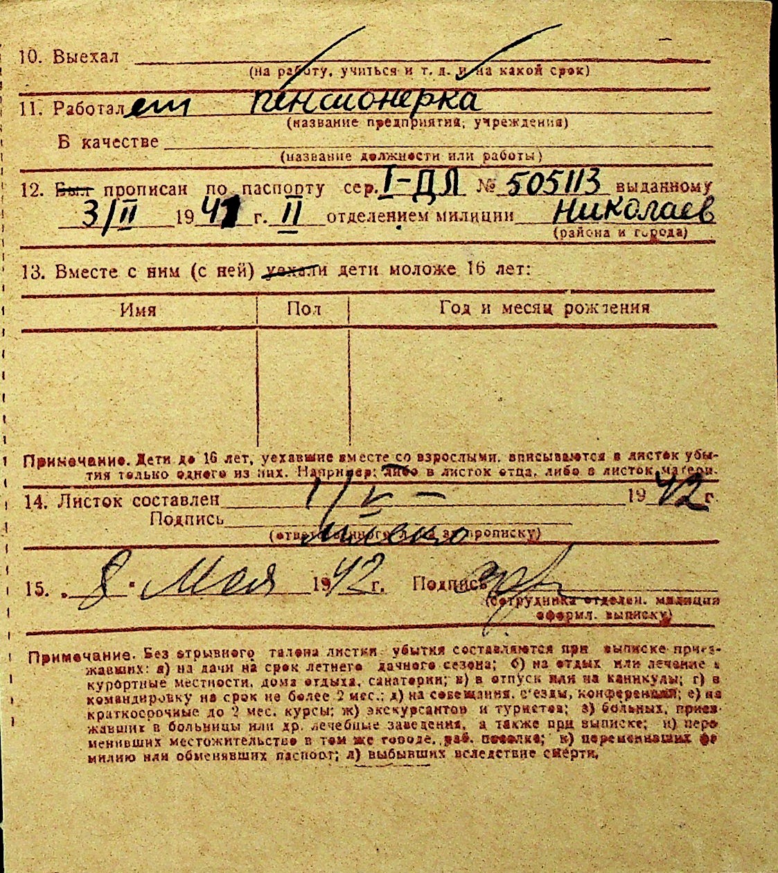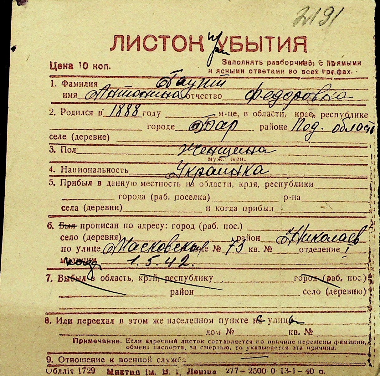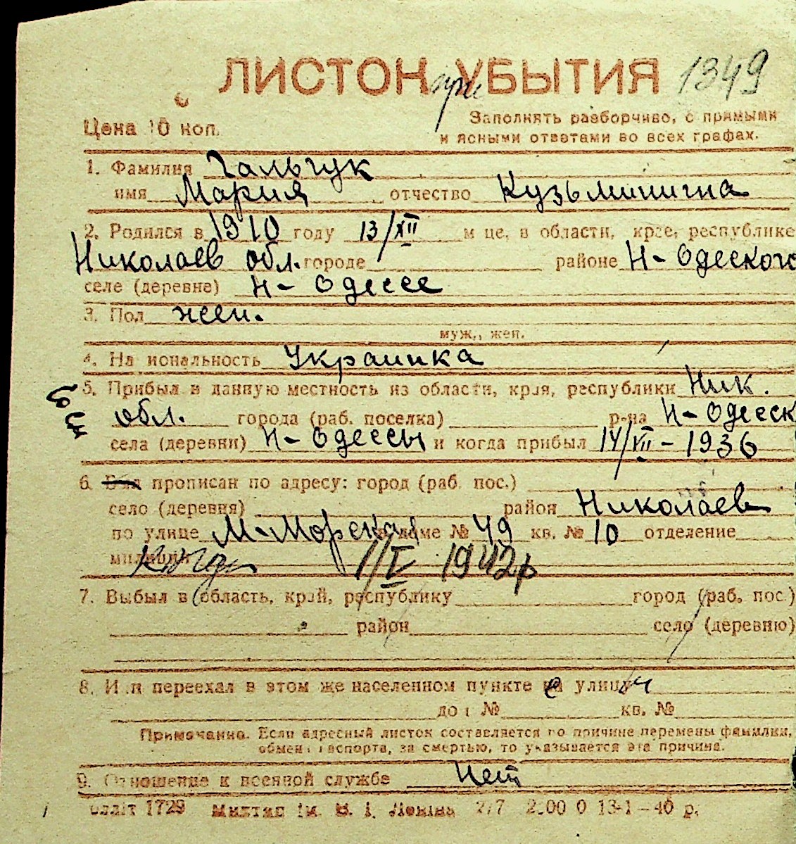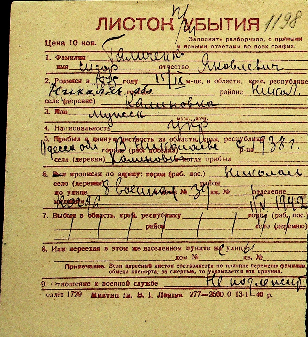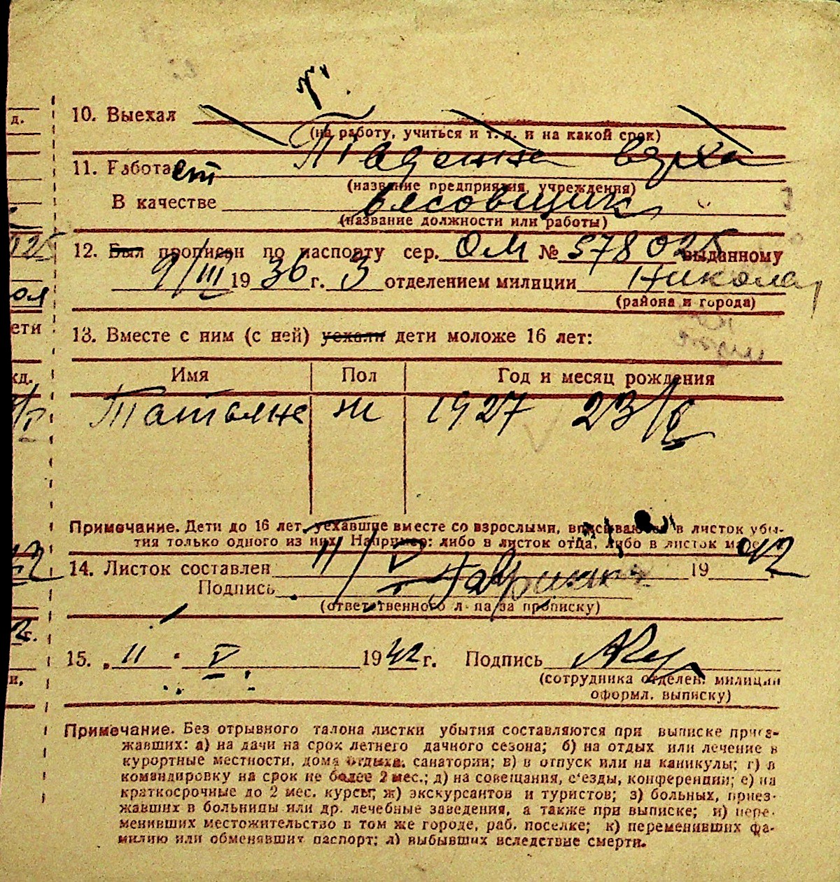 • • Перелік карток до фонду № Н-1016