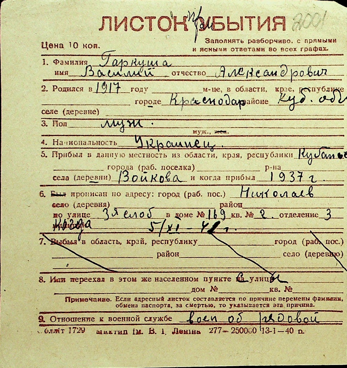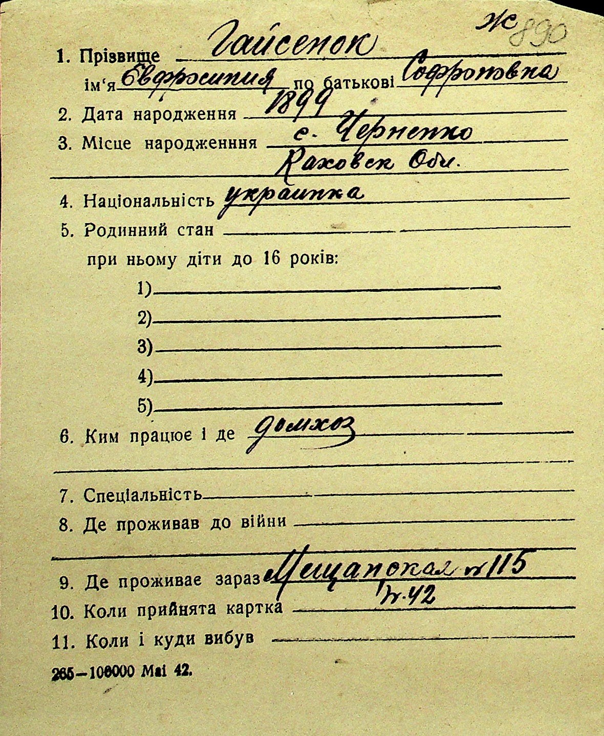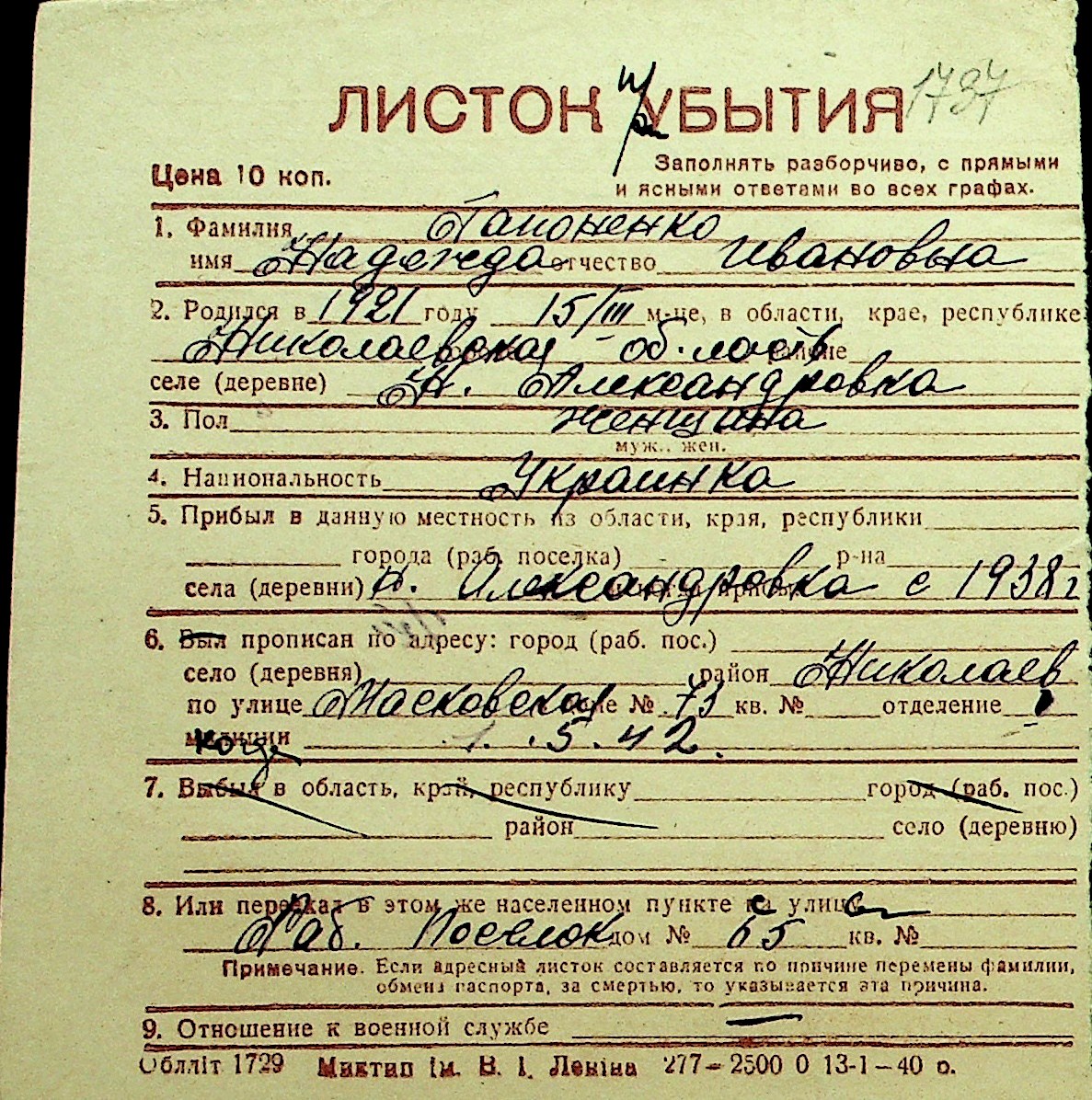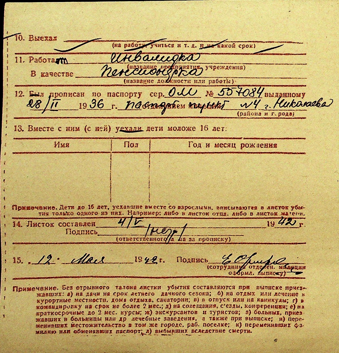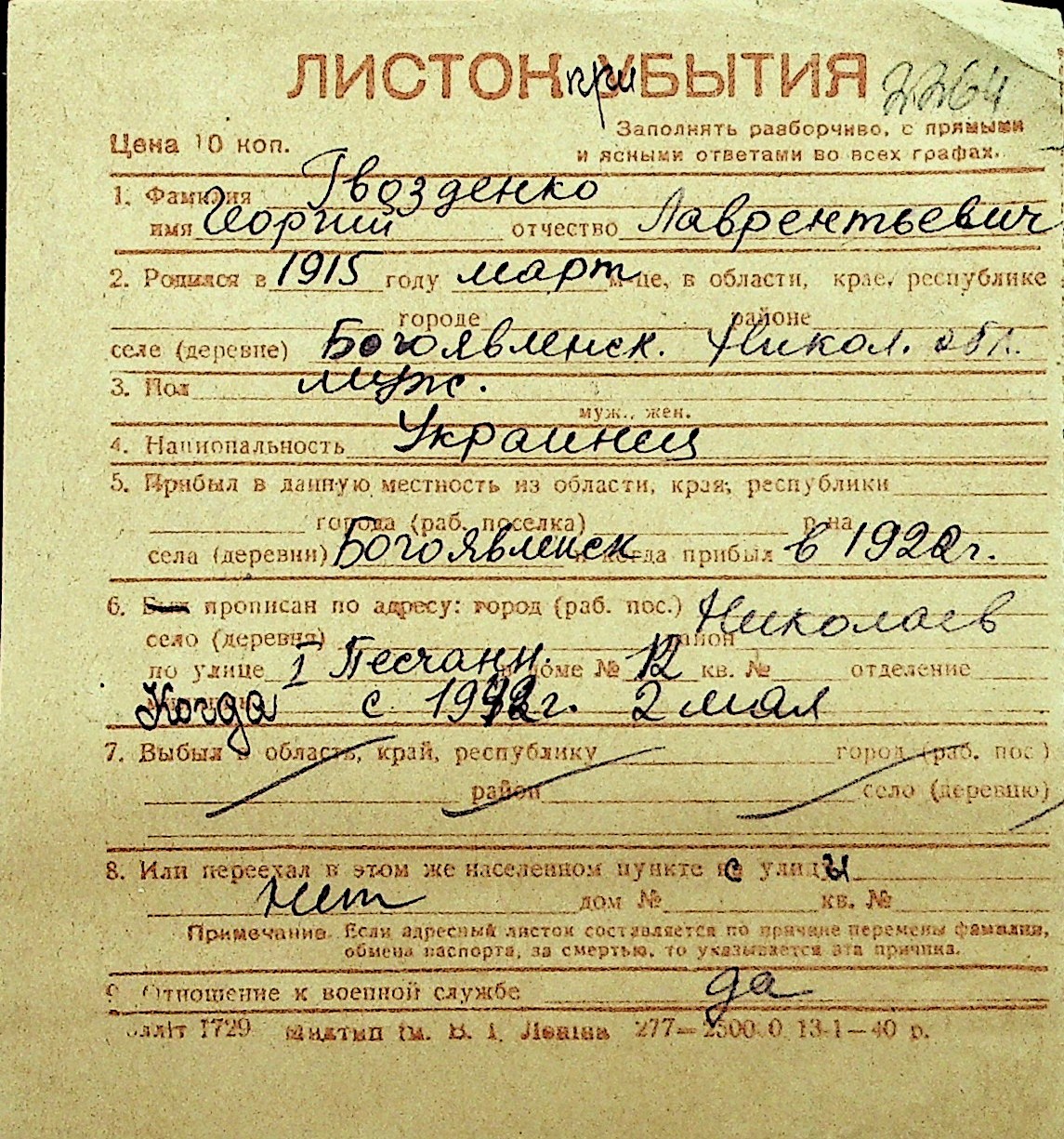 • • Перелік карток до фонду № Н-1016
