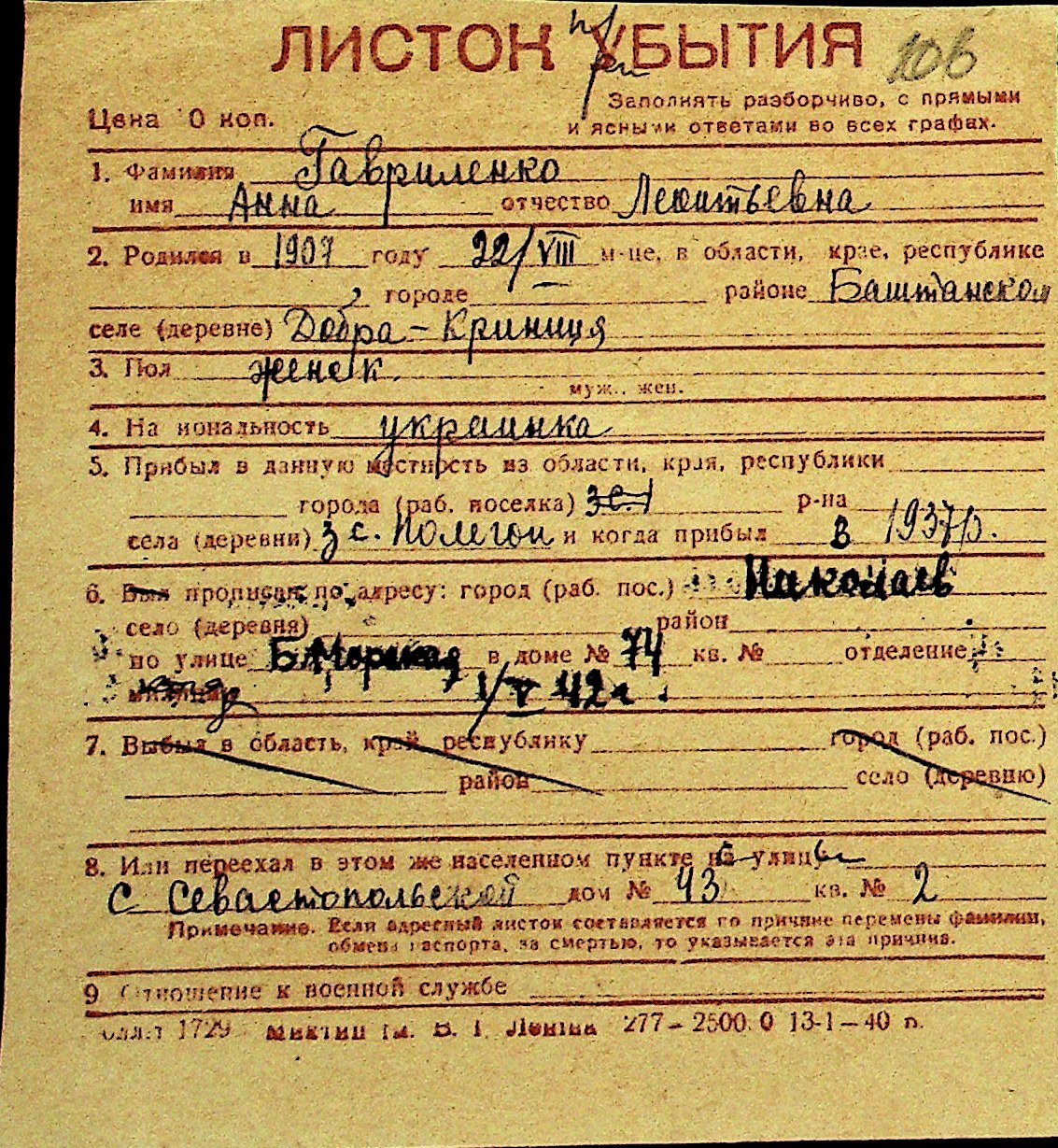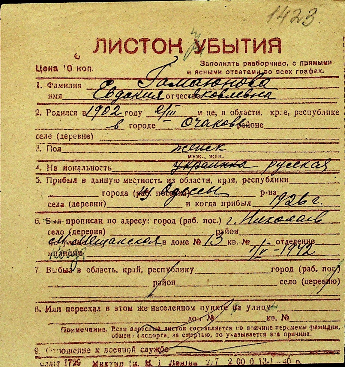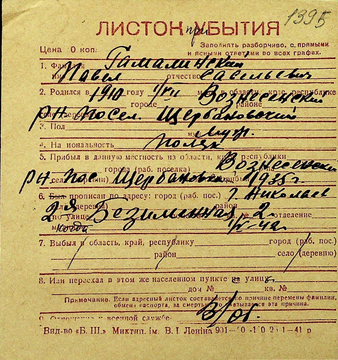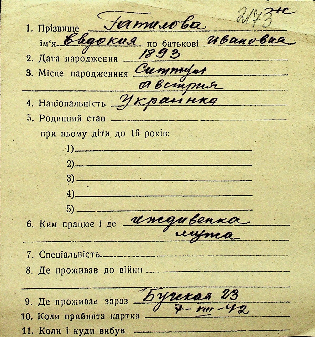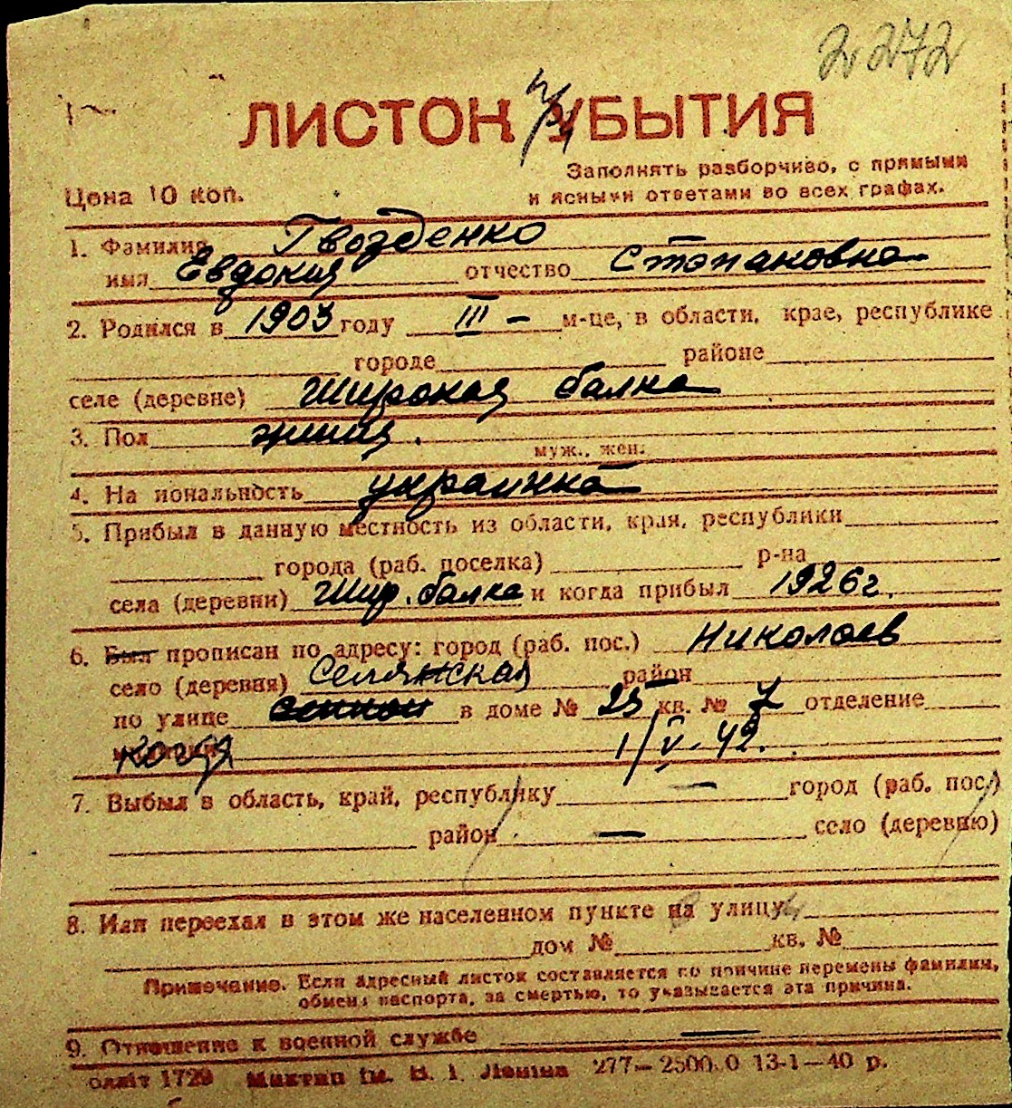 • • Перелік карток до фонду № Н-1016
