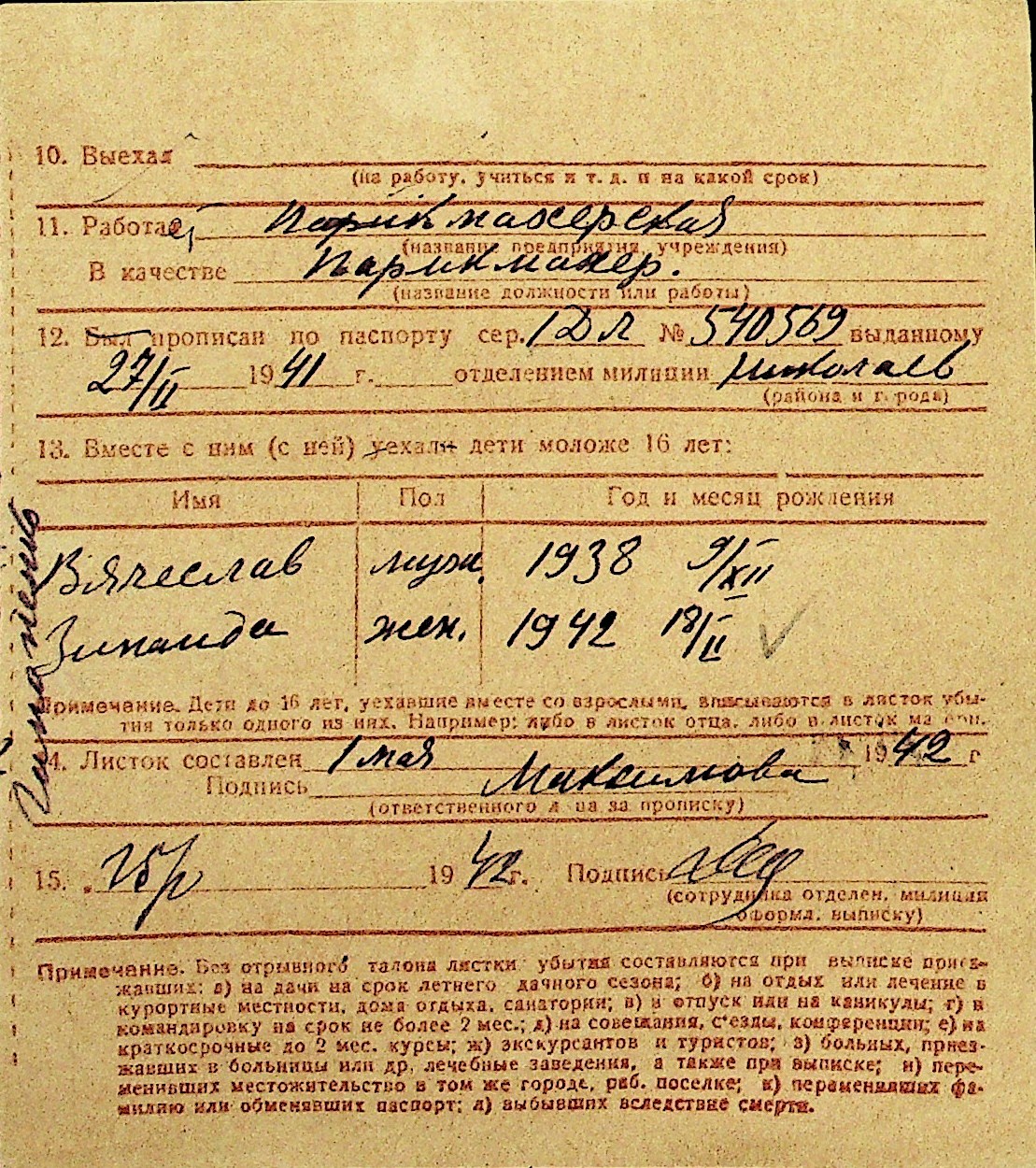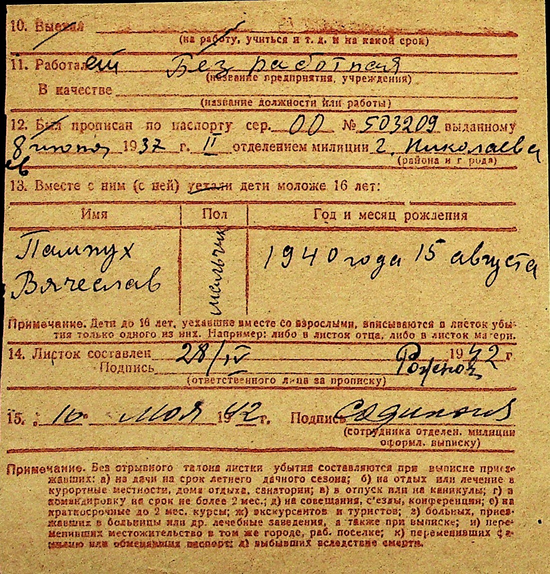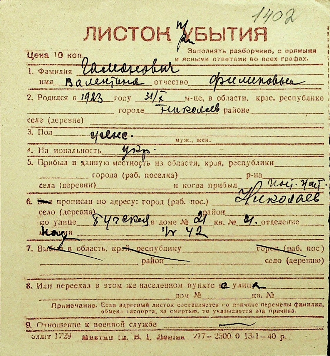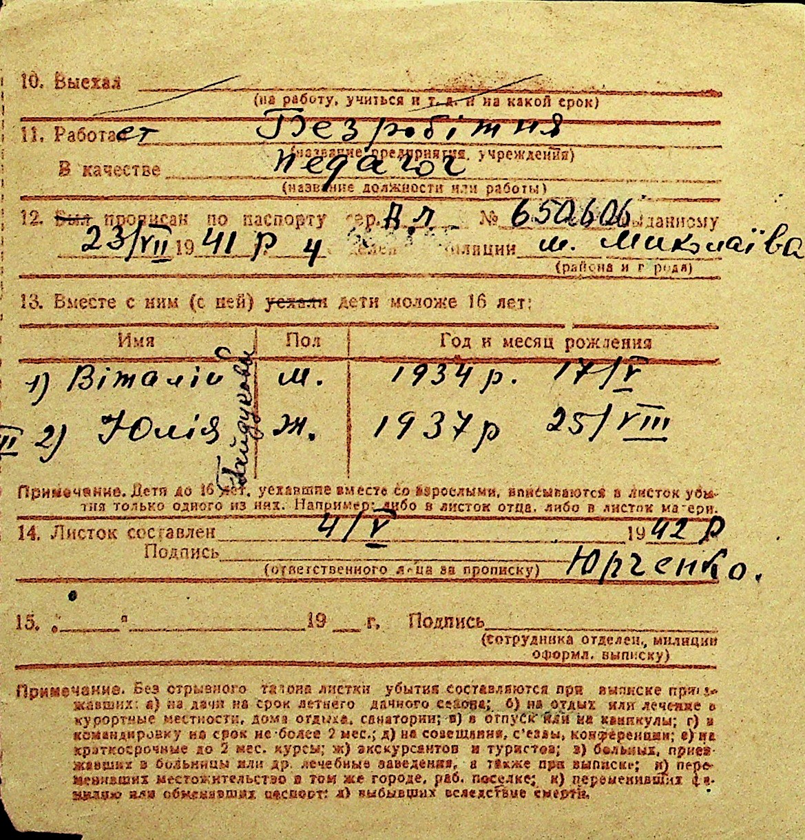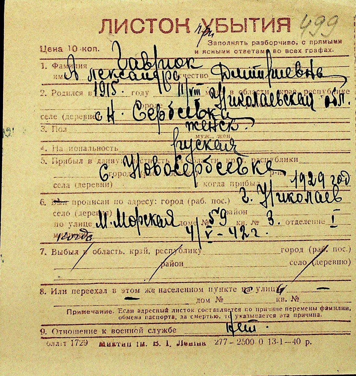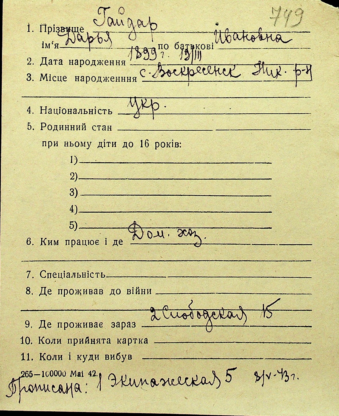 • • Перелік карток до фонду № Н-1016