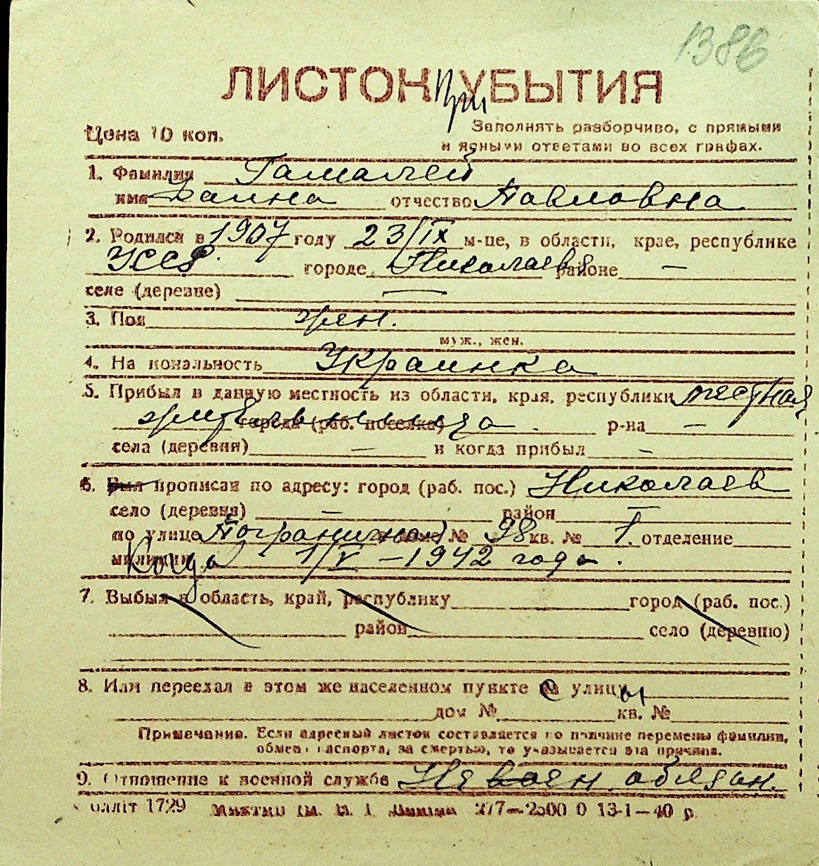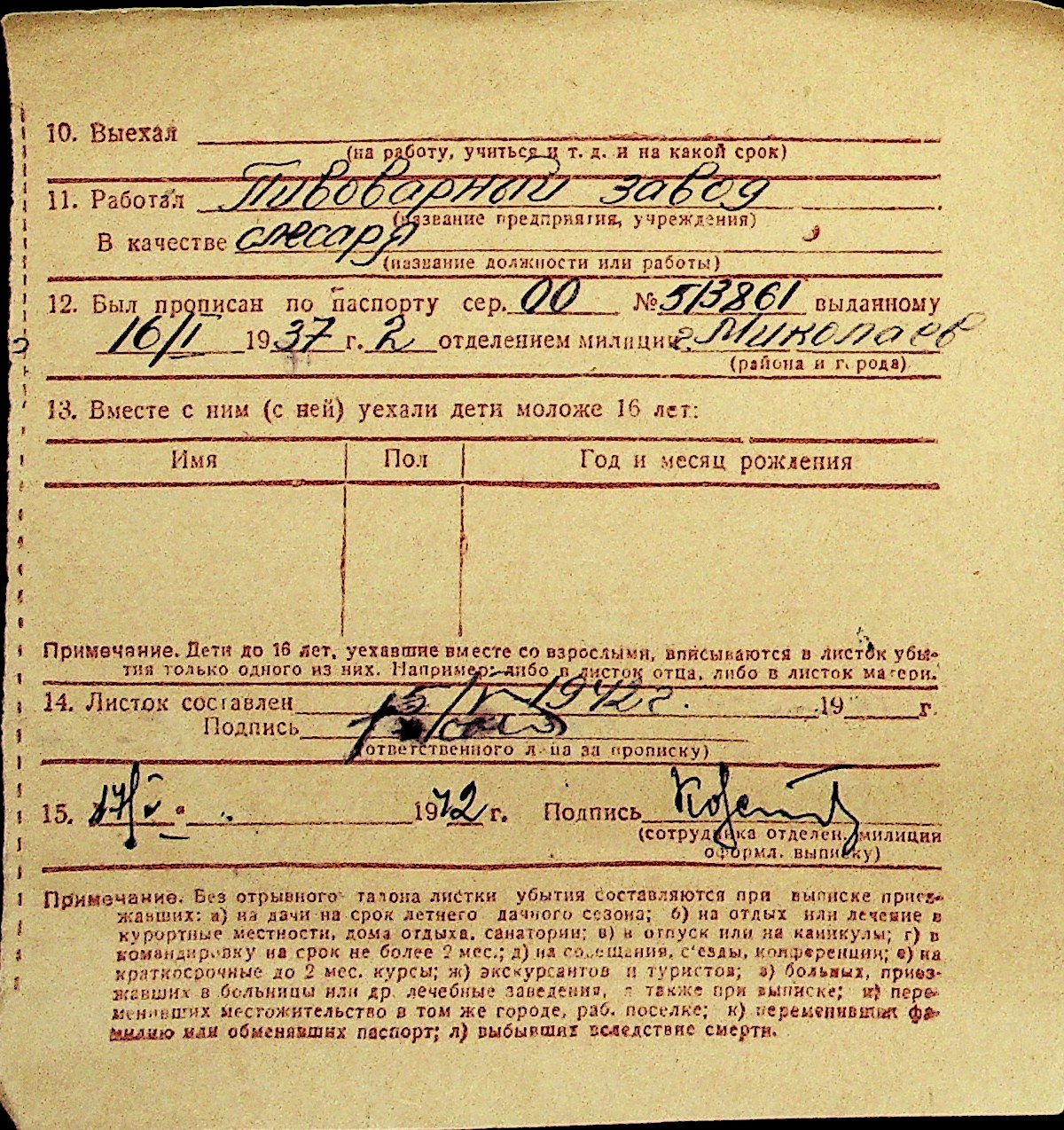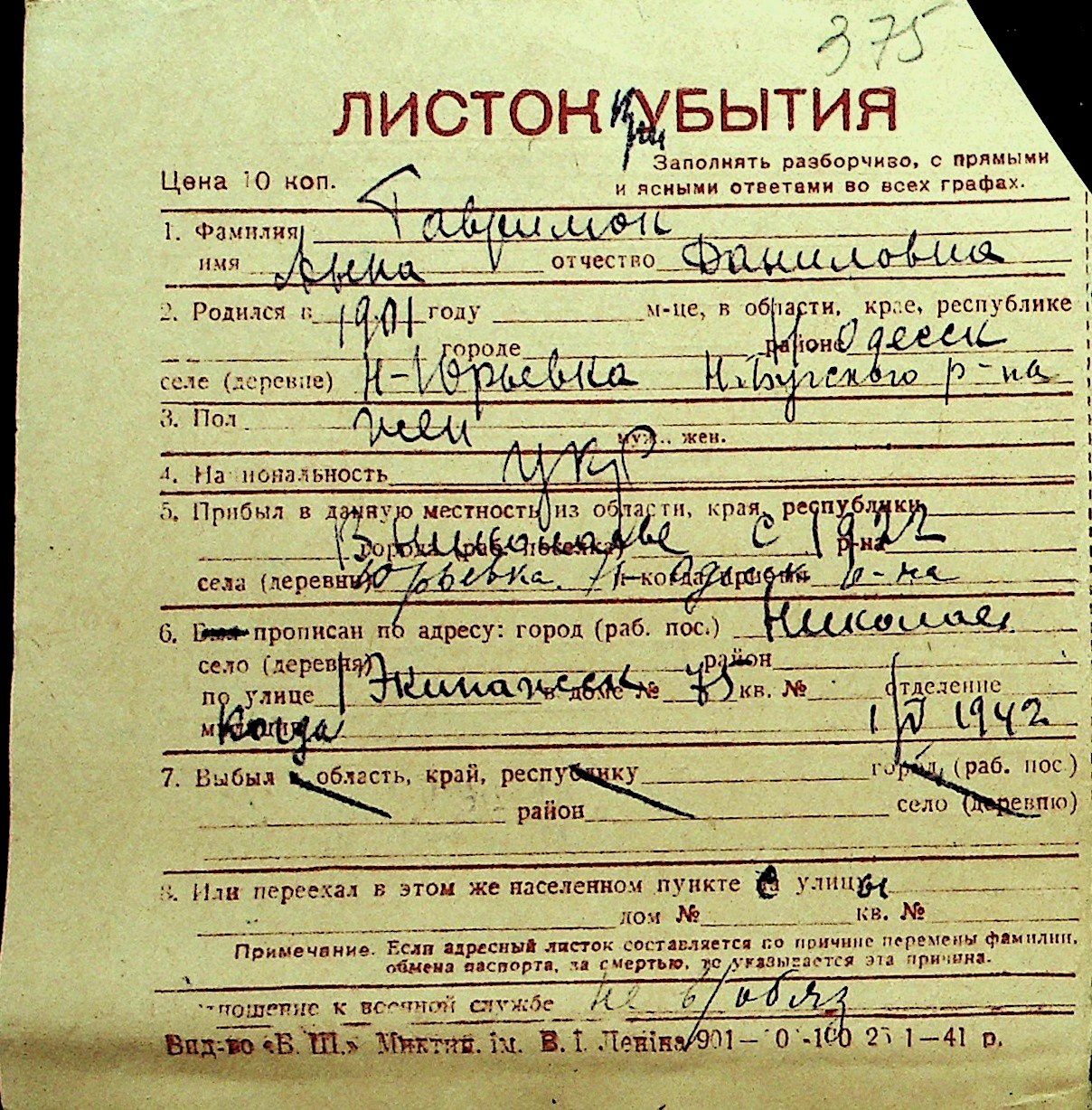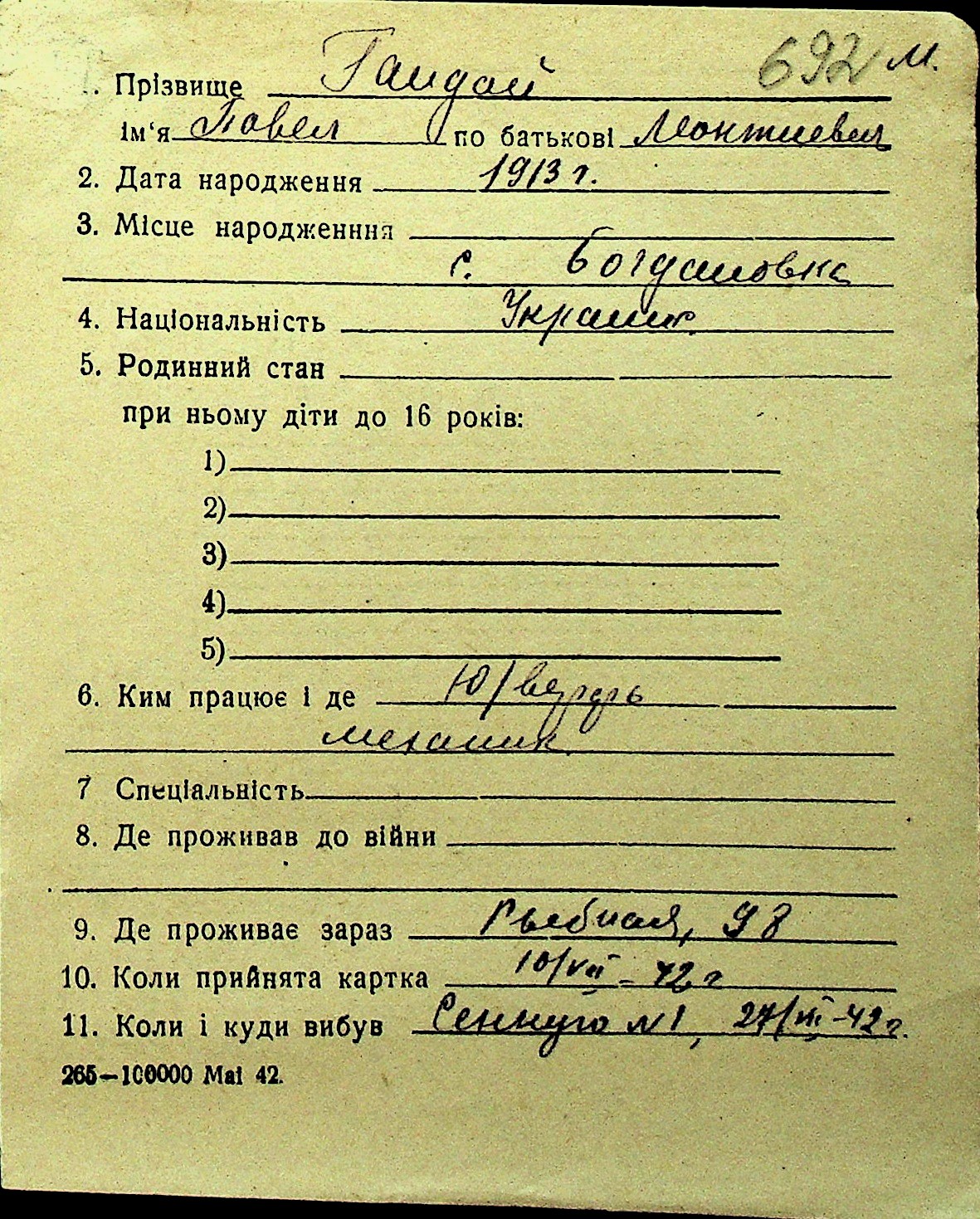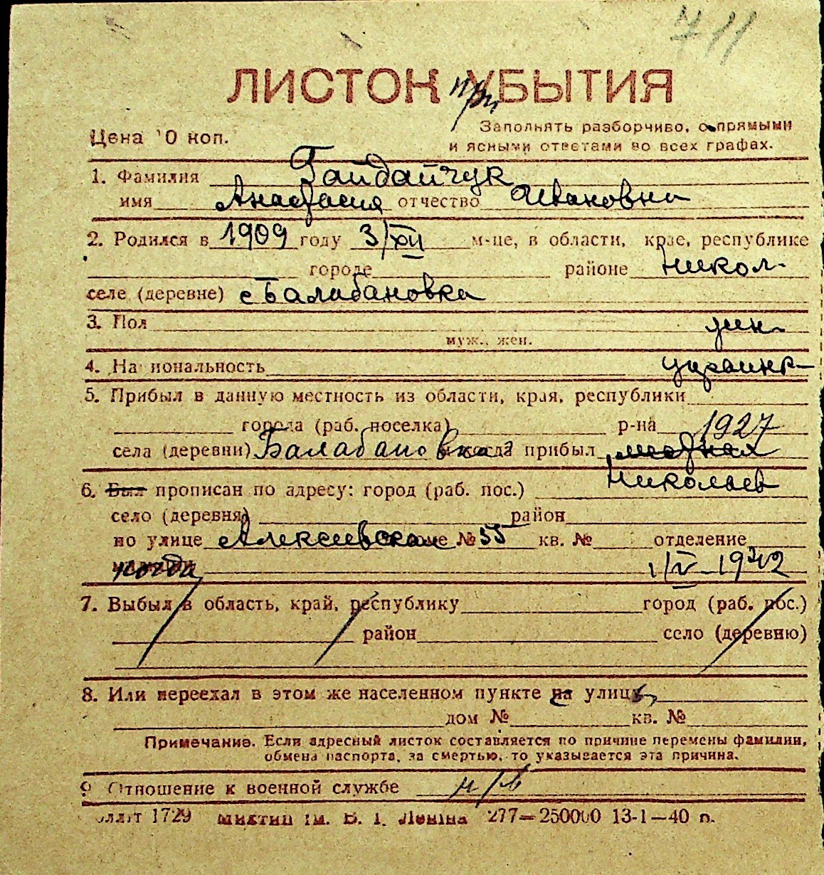 • • Перелік карток до фонду № Н-1016