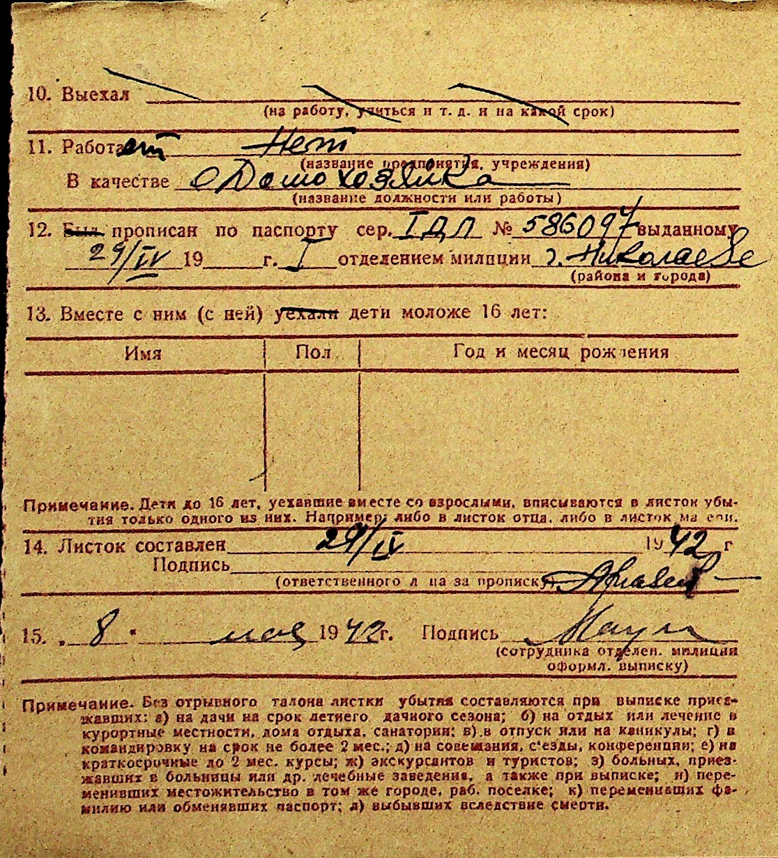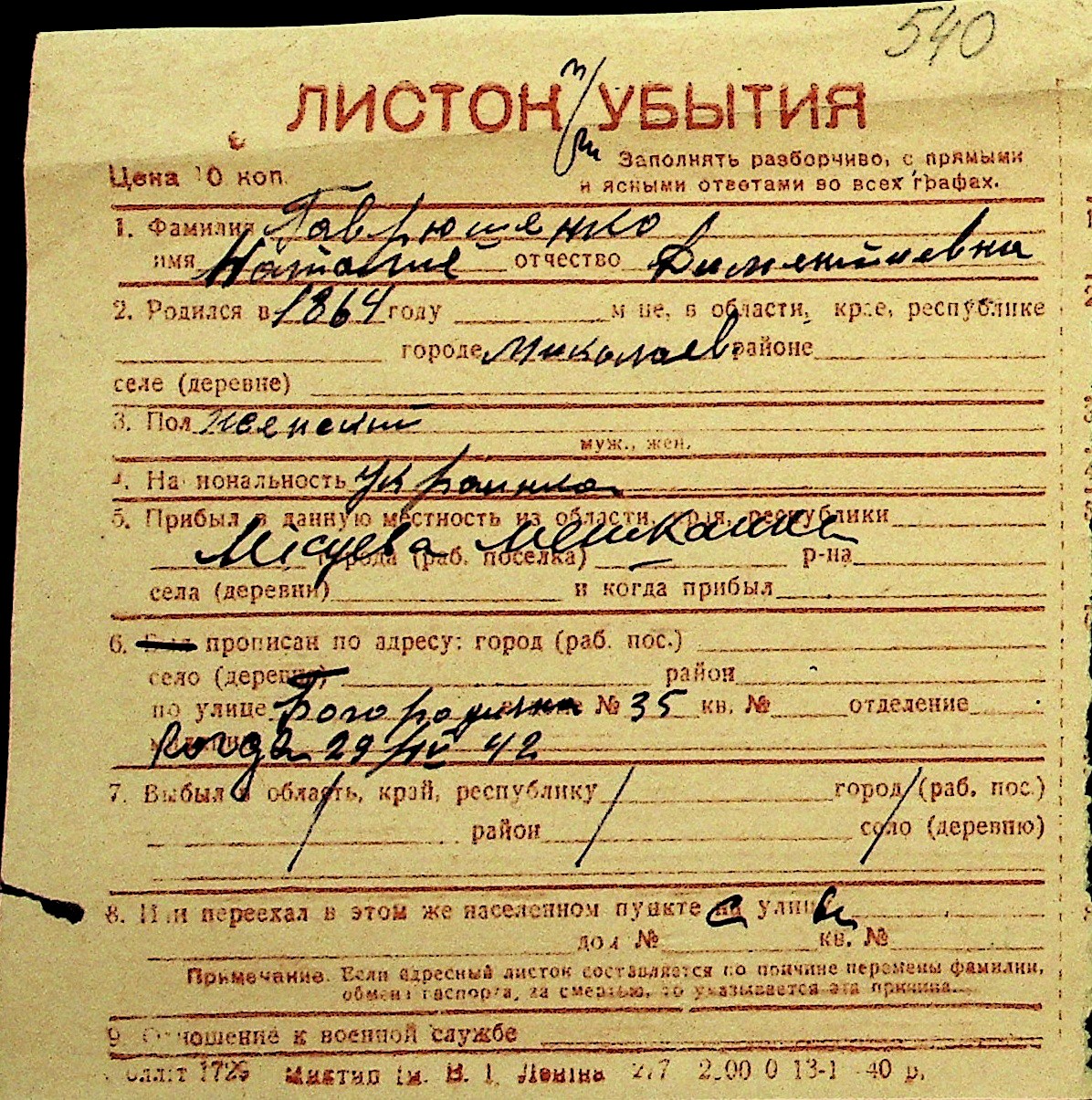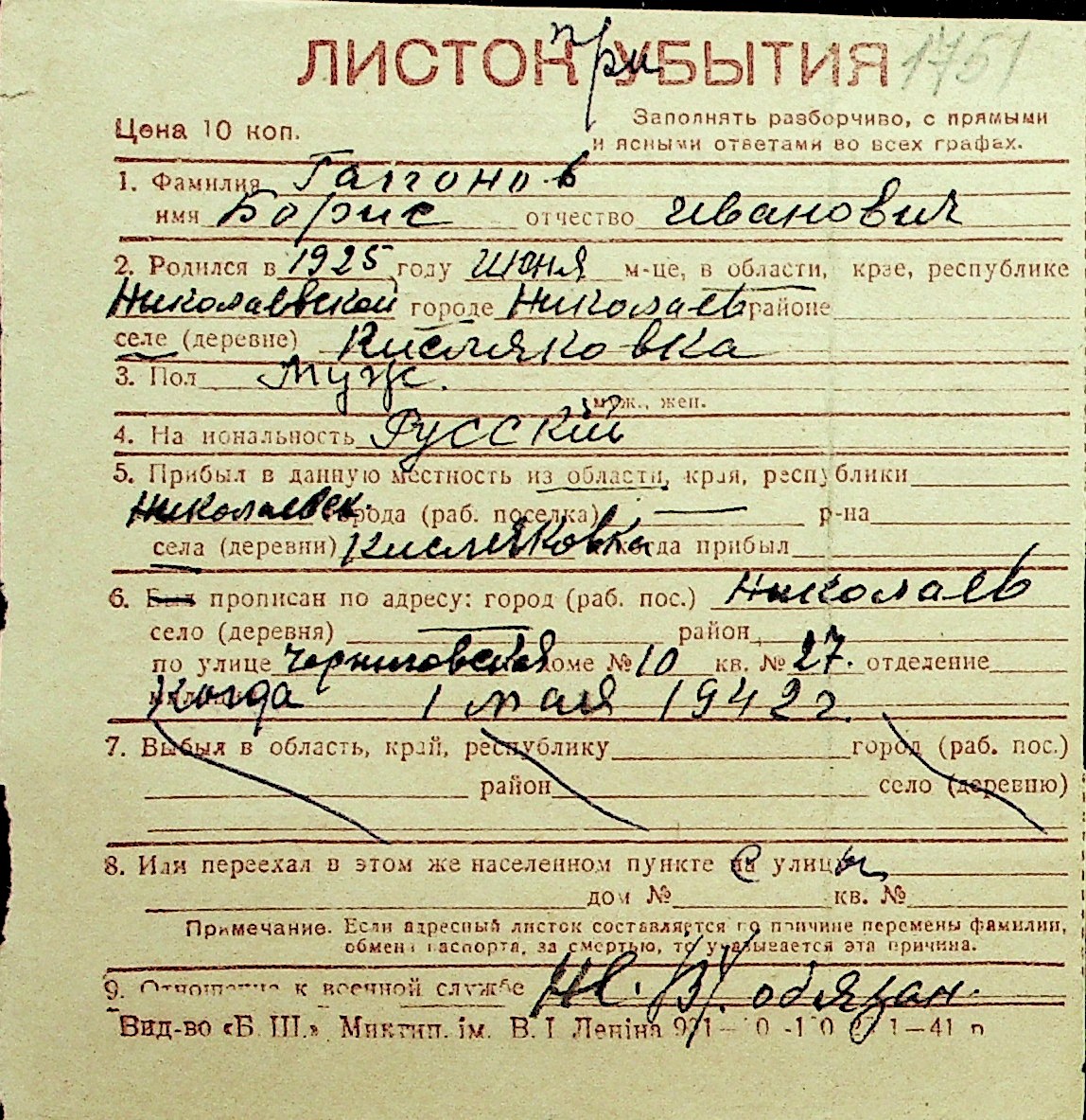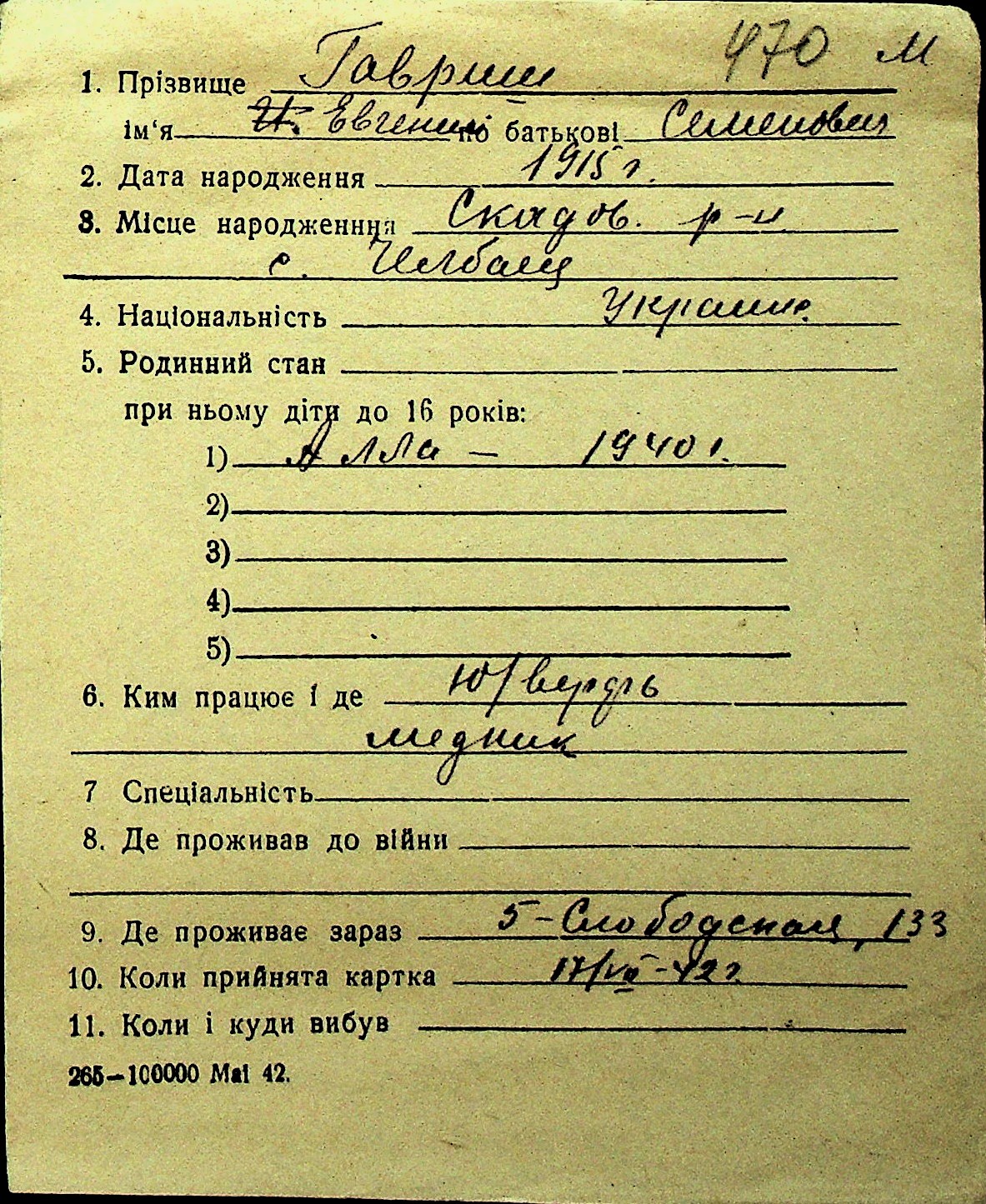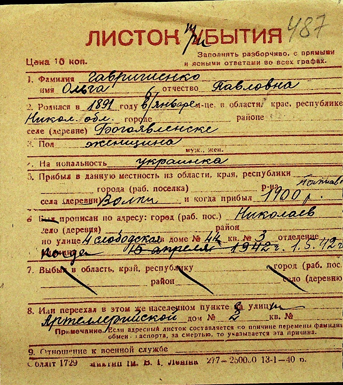 • • Перелік карток до фонду № Н-1016
