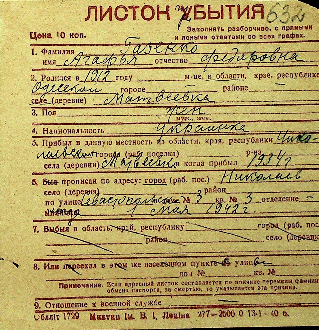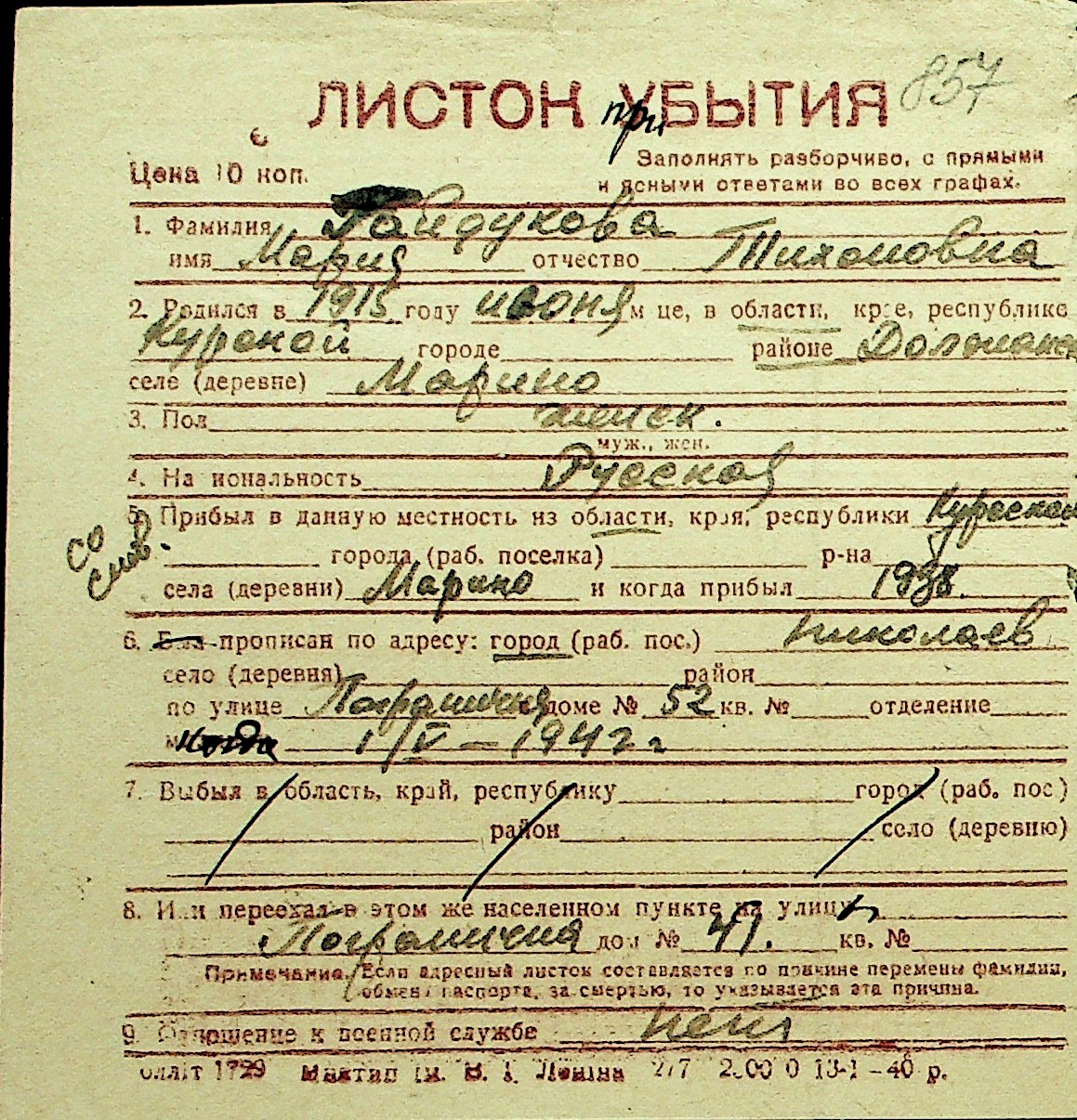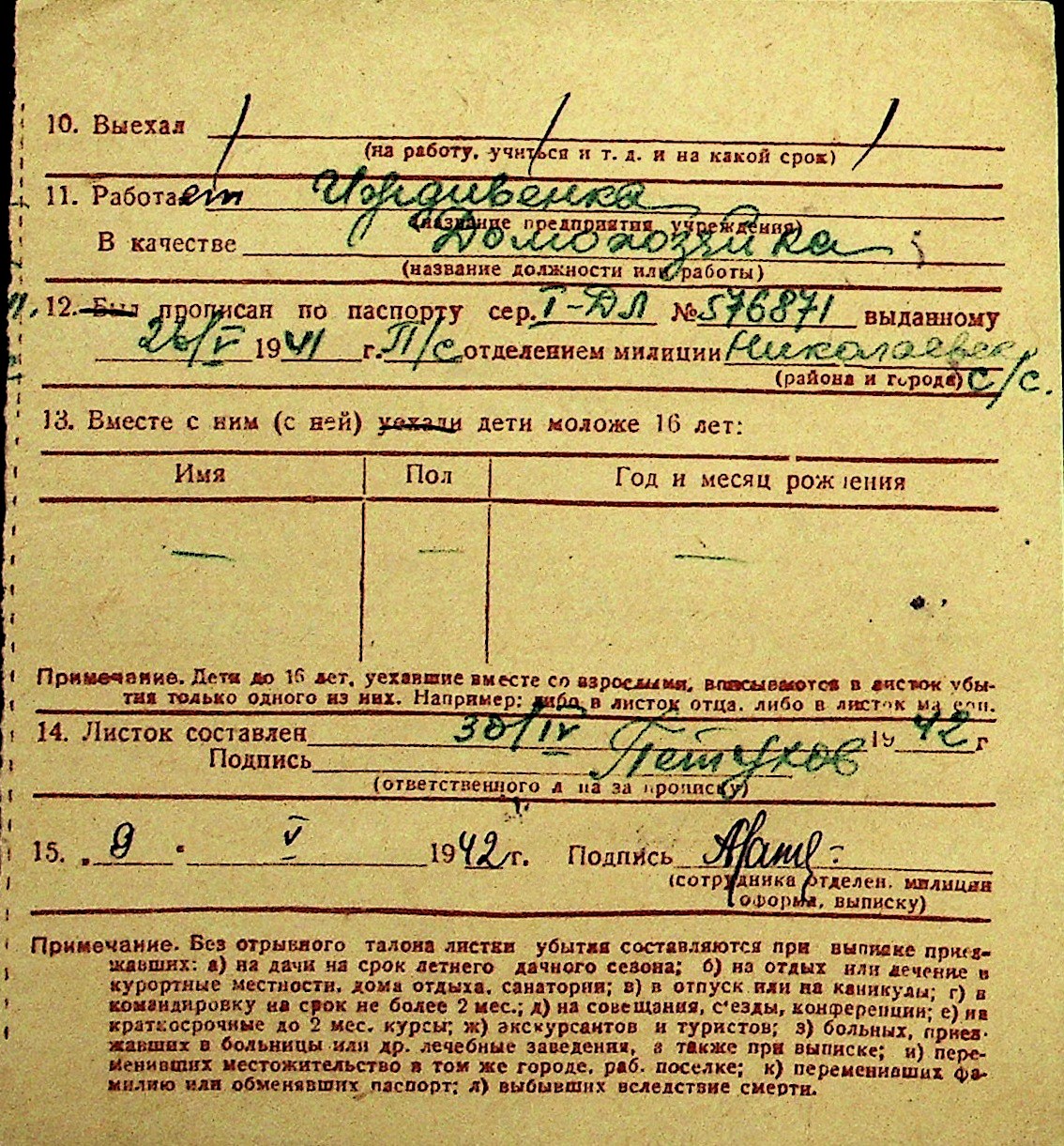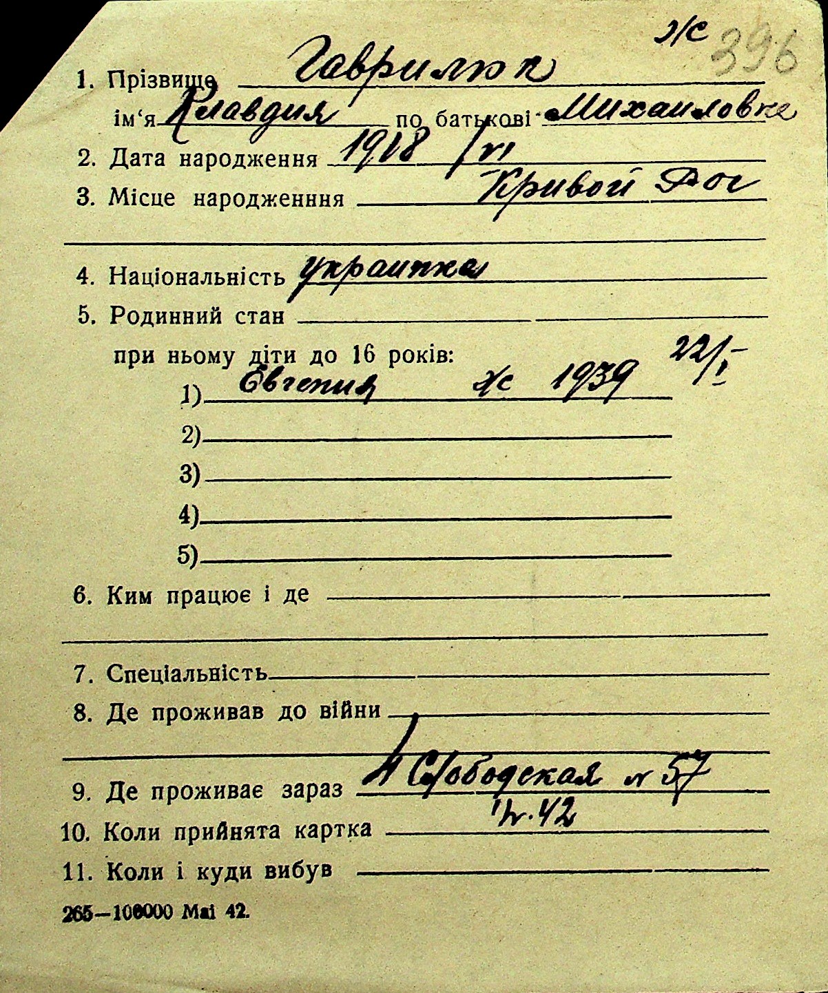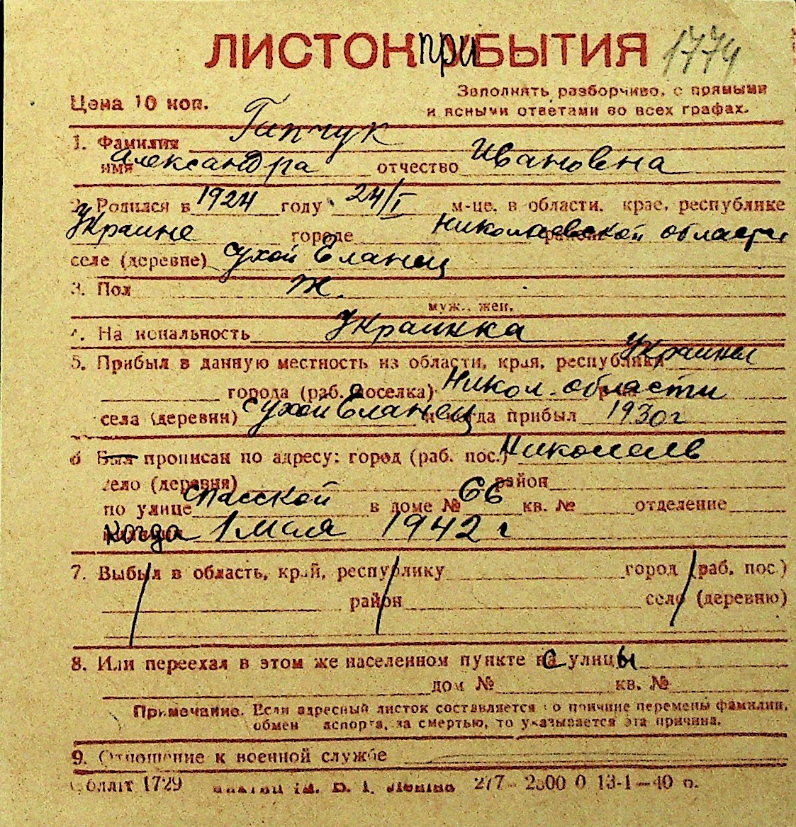 • • Перелік карток до фонду № Н-1016
