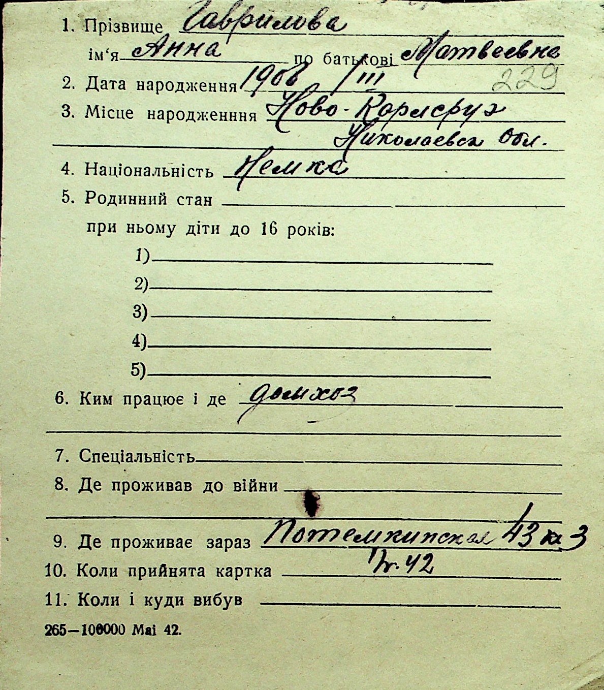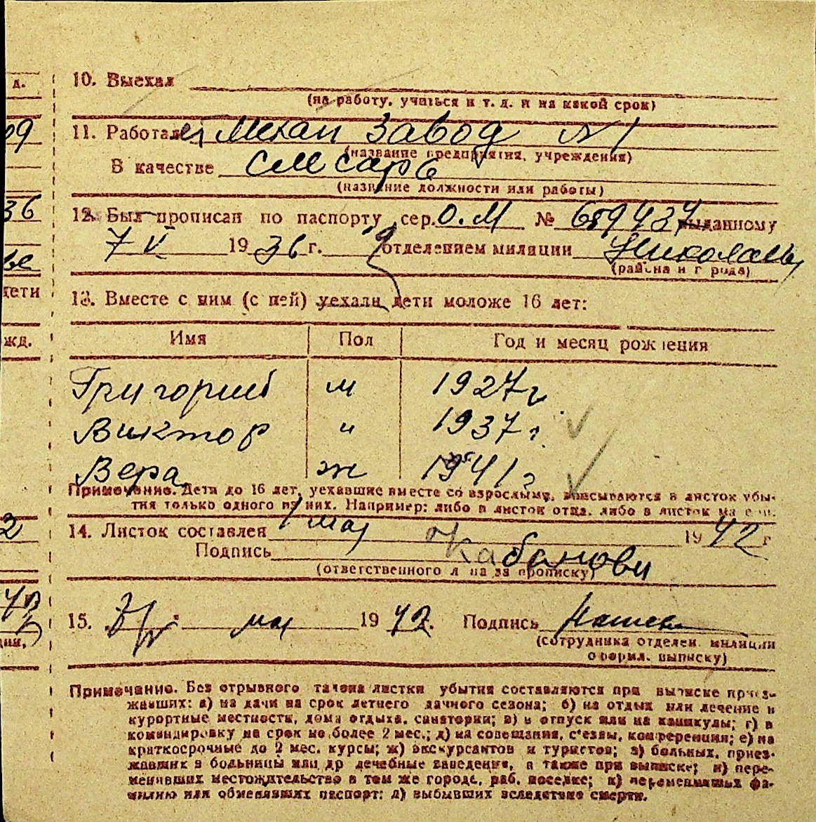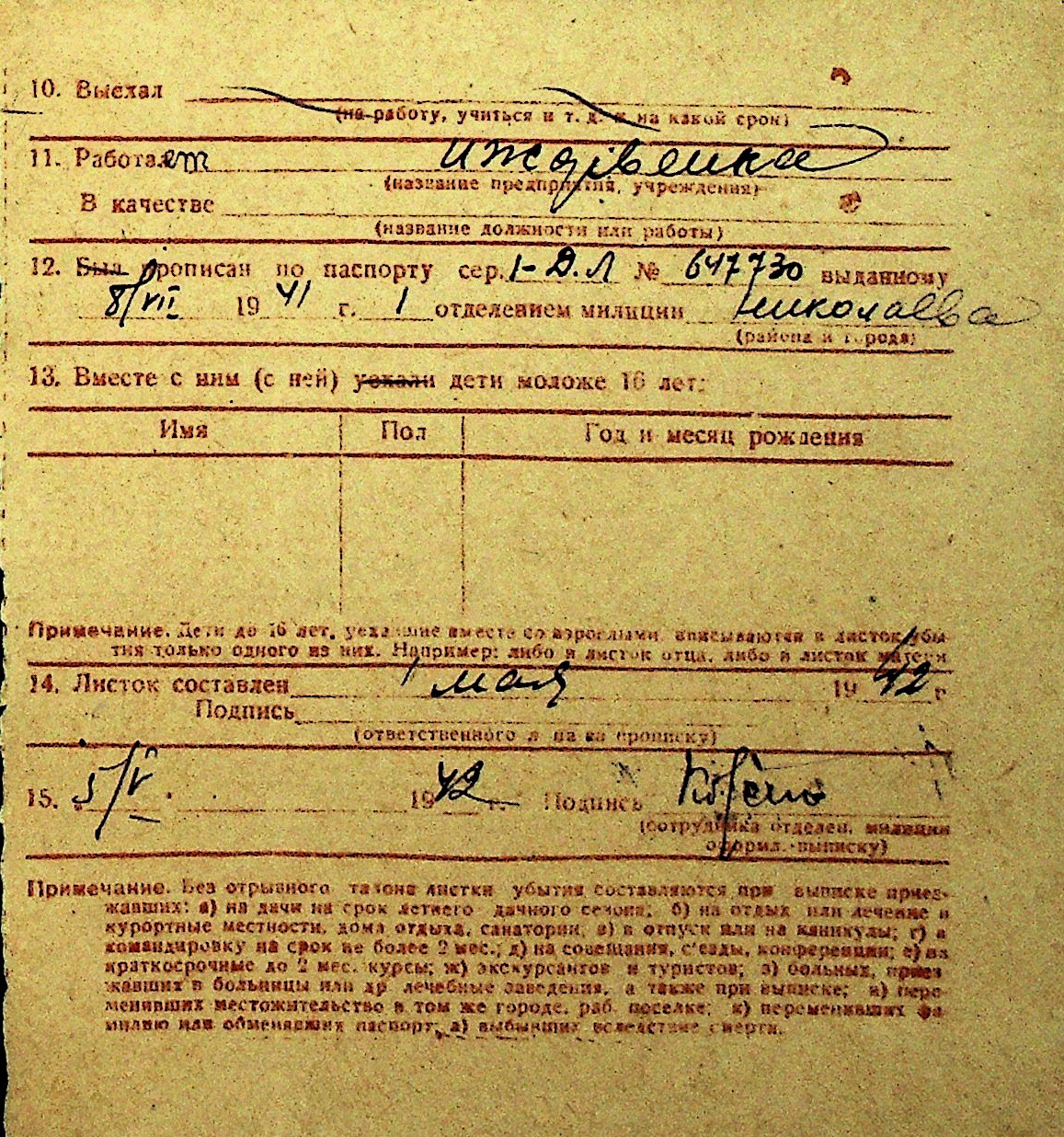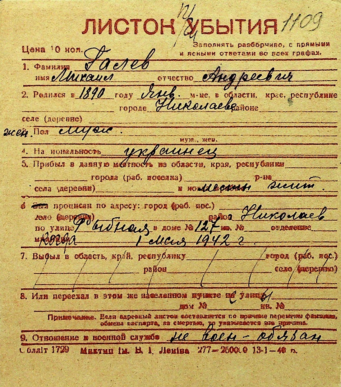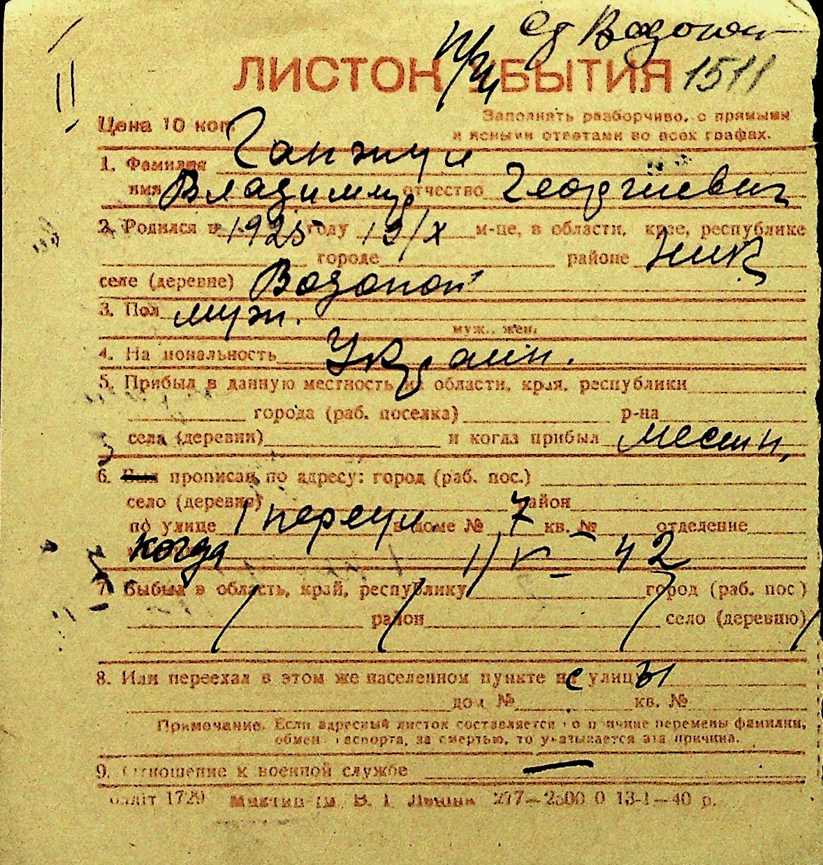 • • Перелік карток до фонду № Н-1016