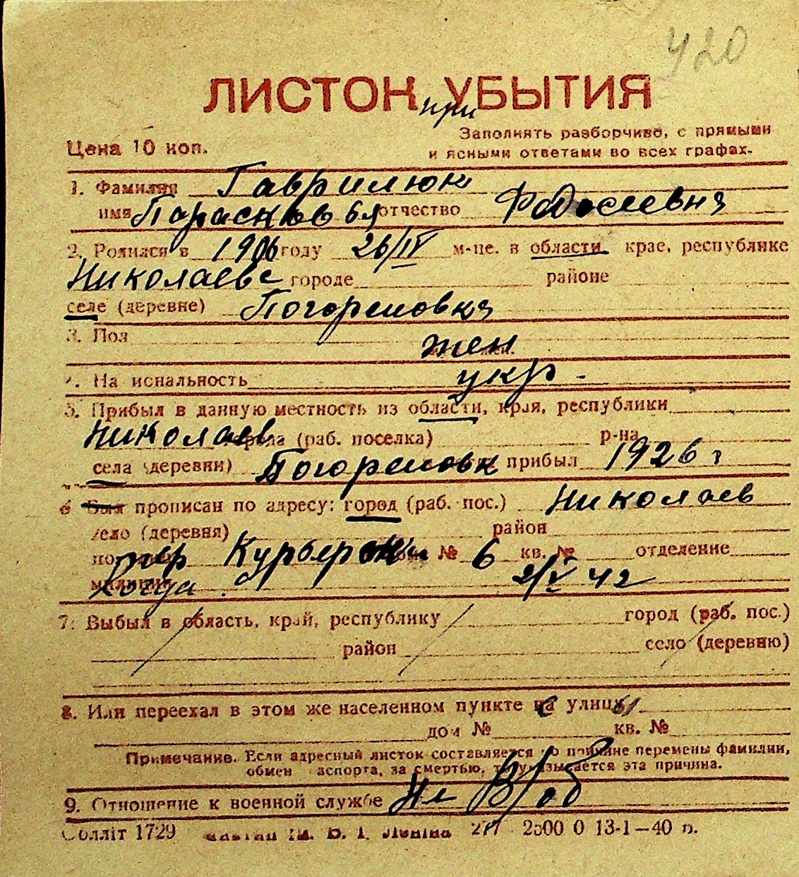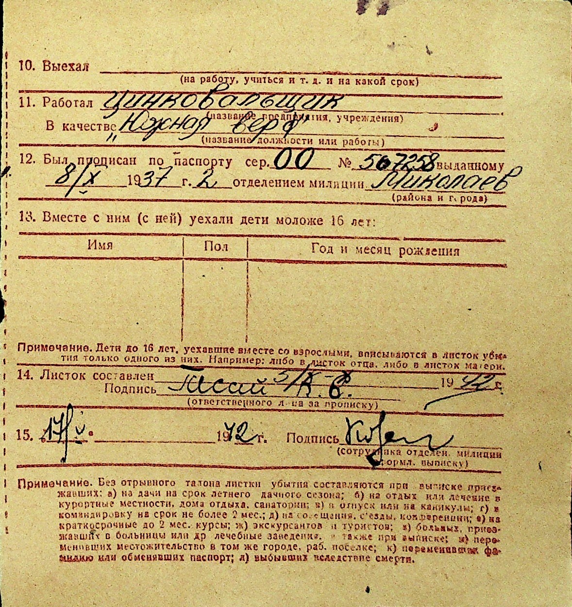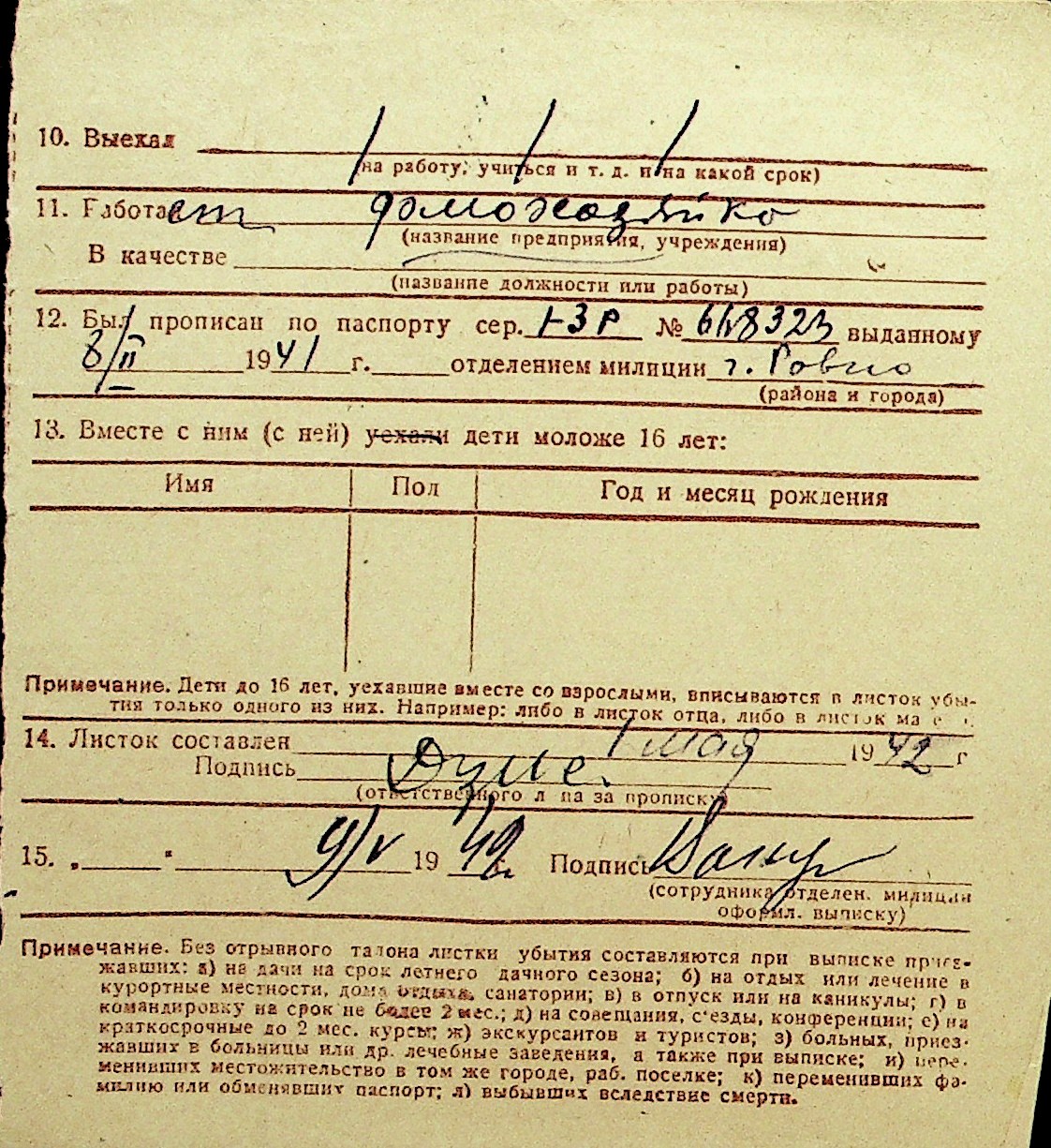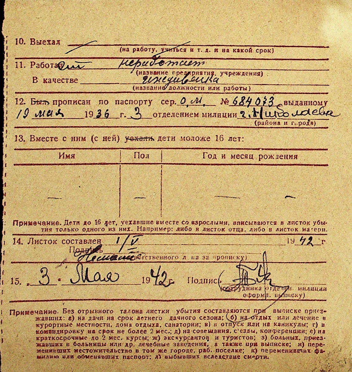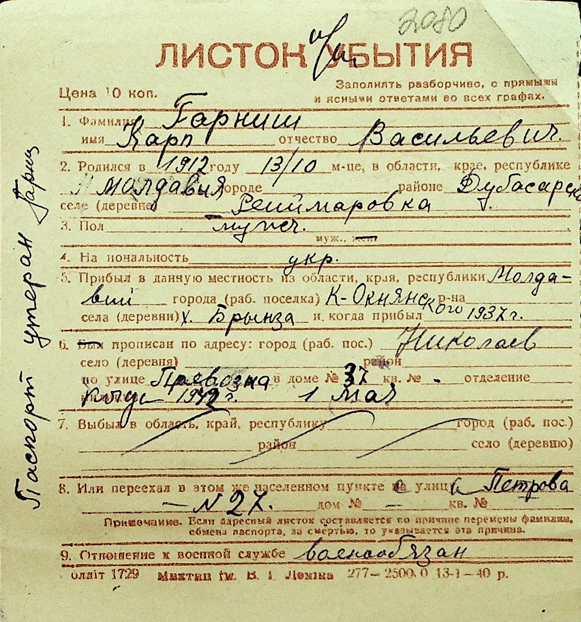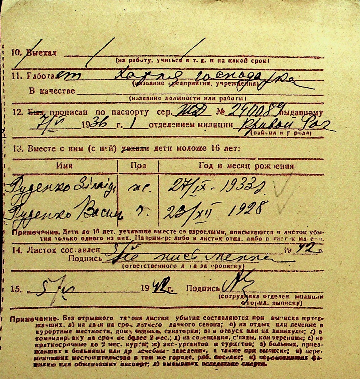 • • Перелік карток до фонду № Н-1016