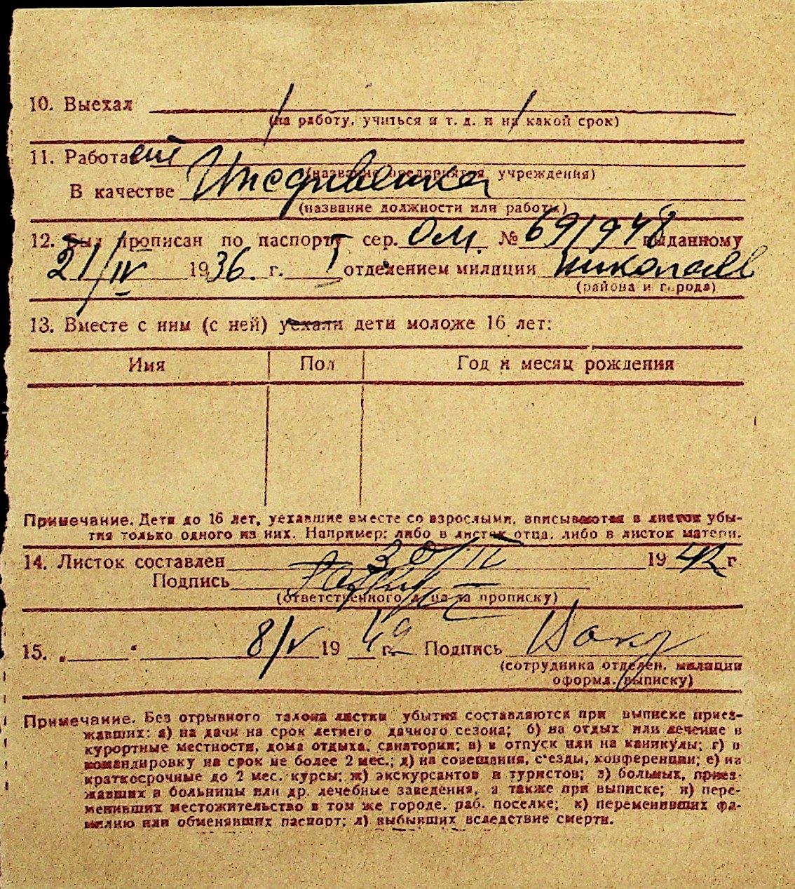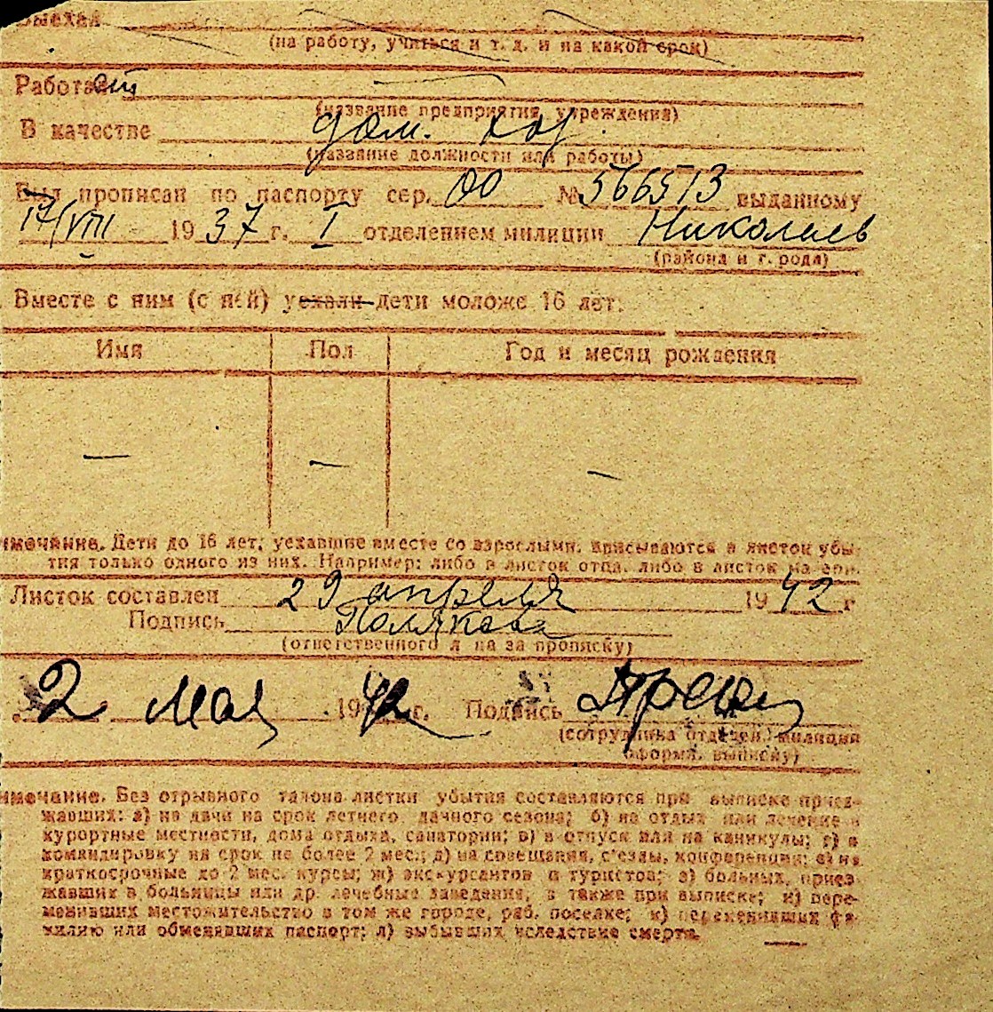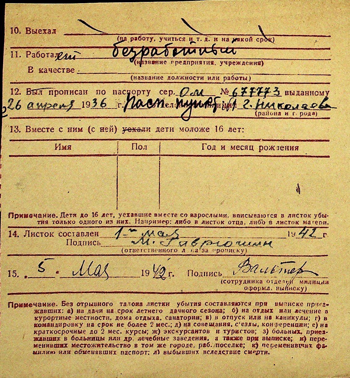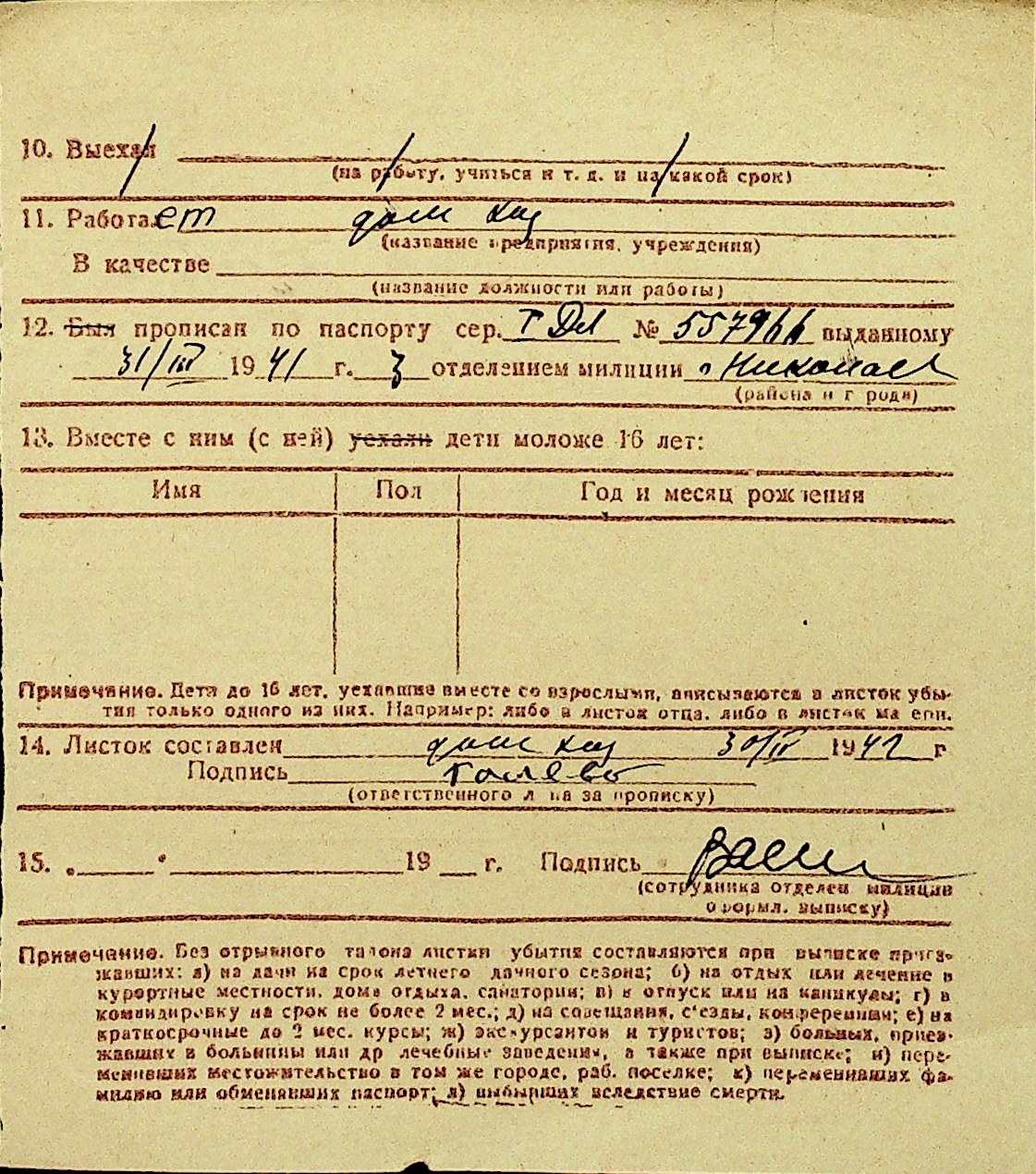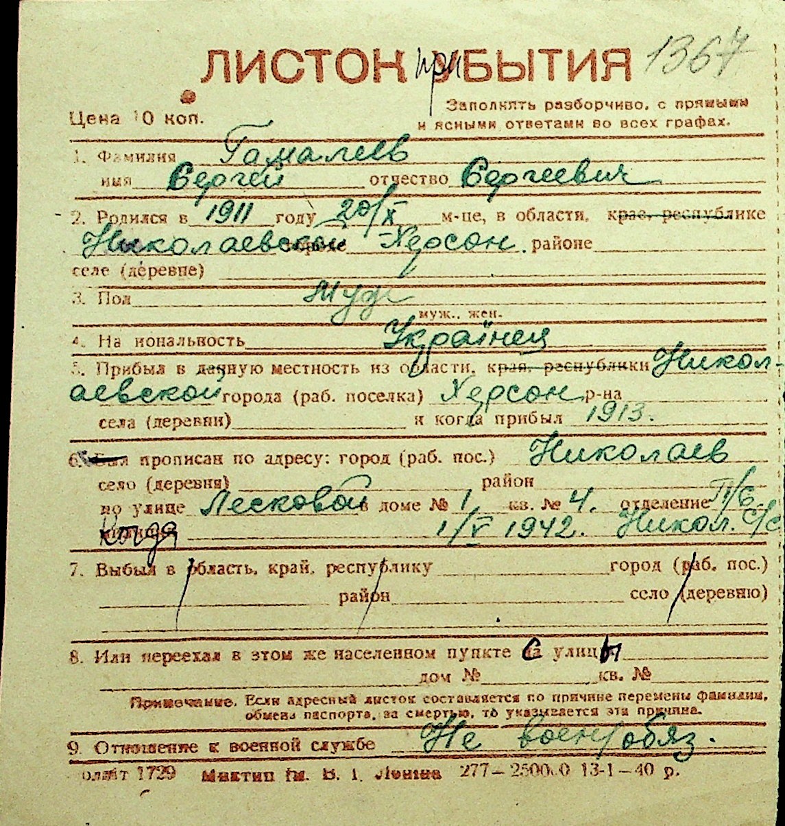 • • Перелік карток до фонду № Н-1016