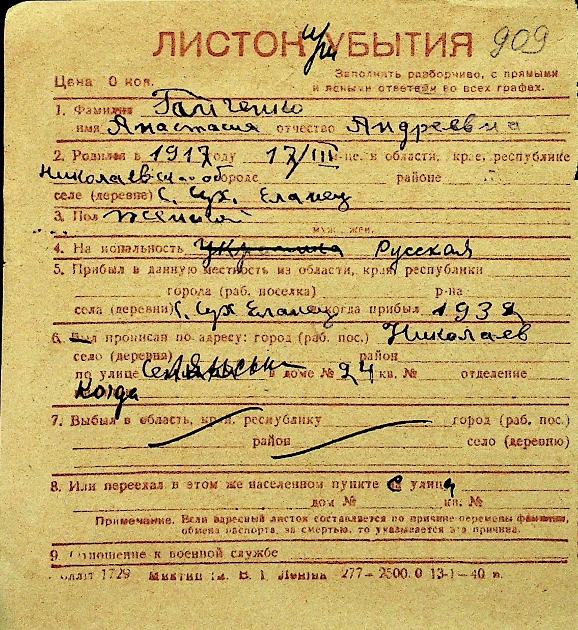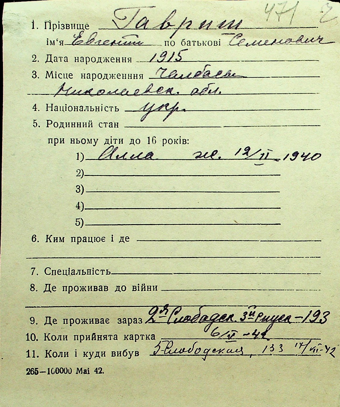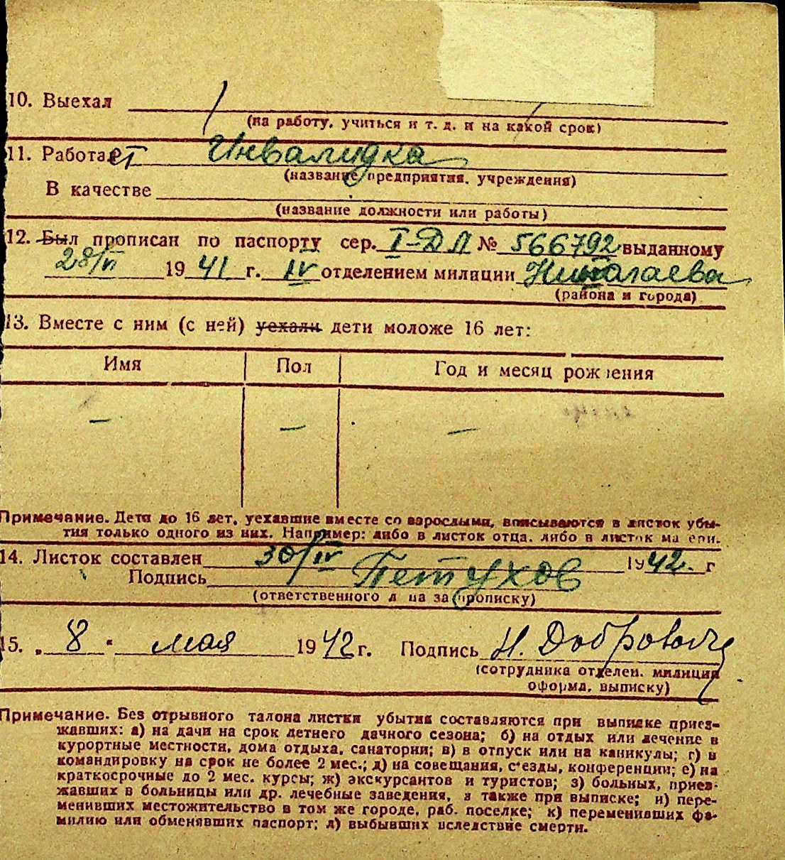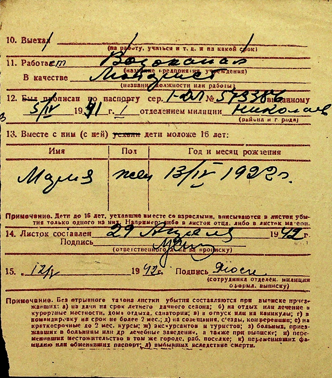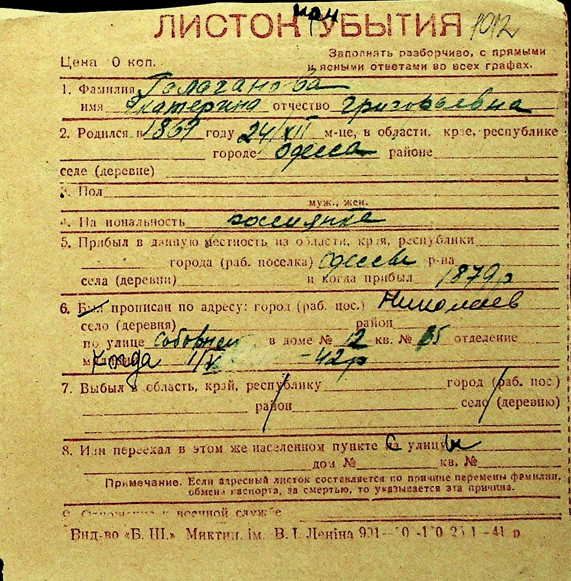 • • Перелік карток до фонду № Н-1016
