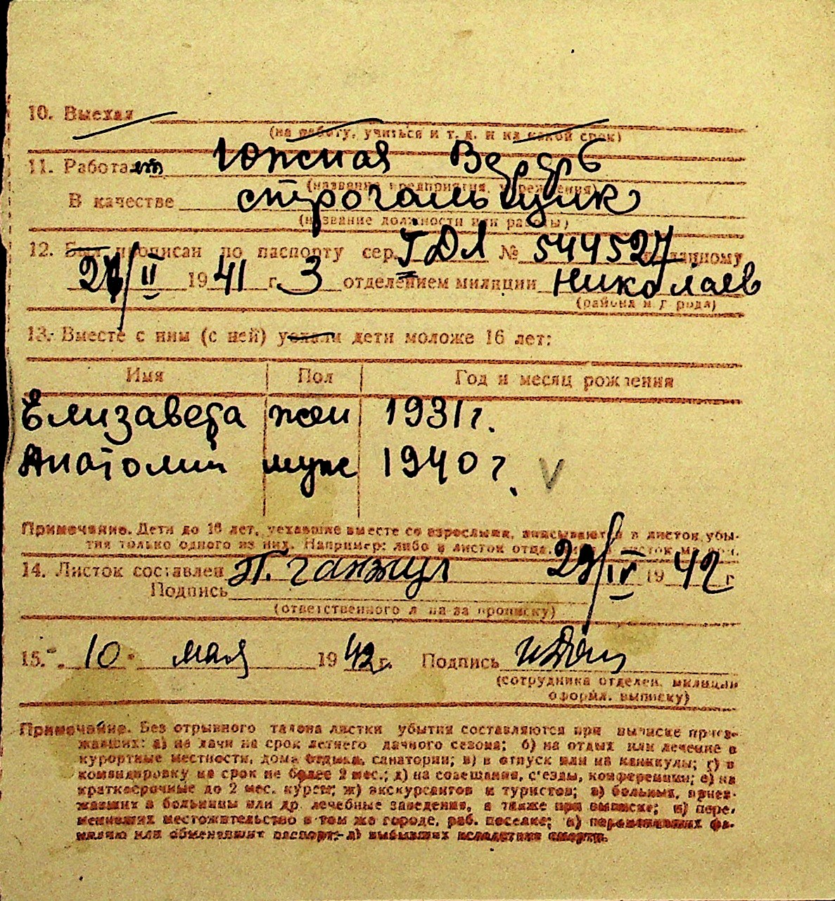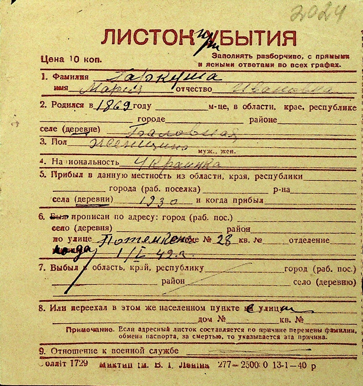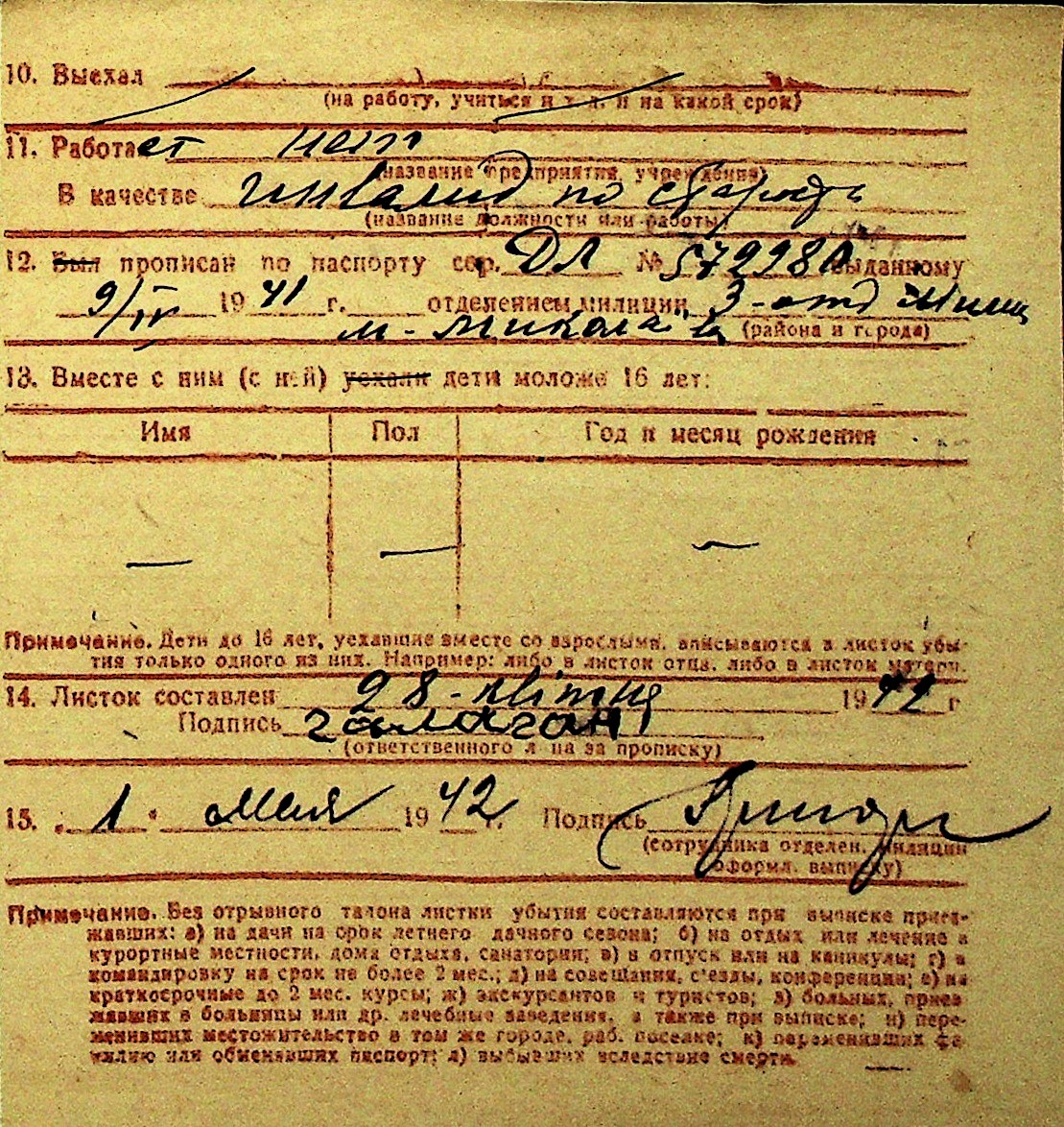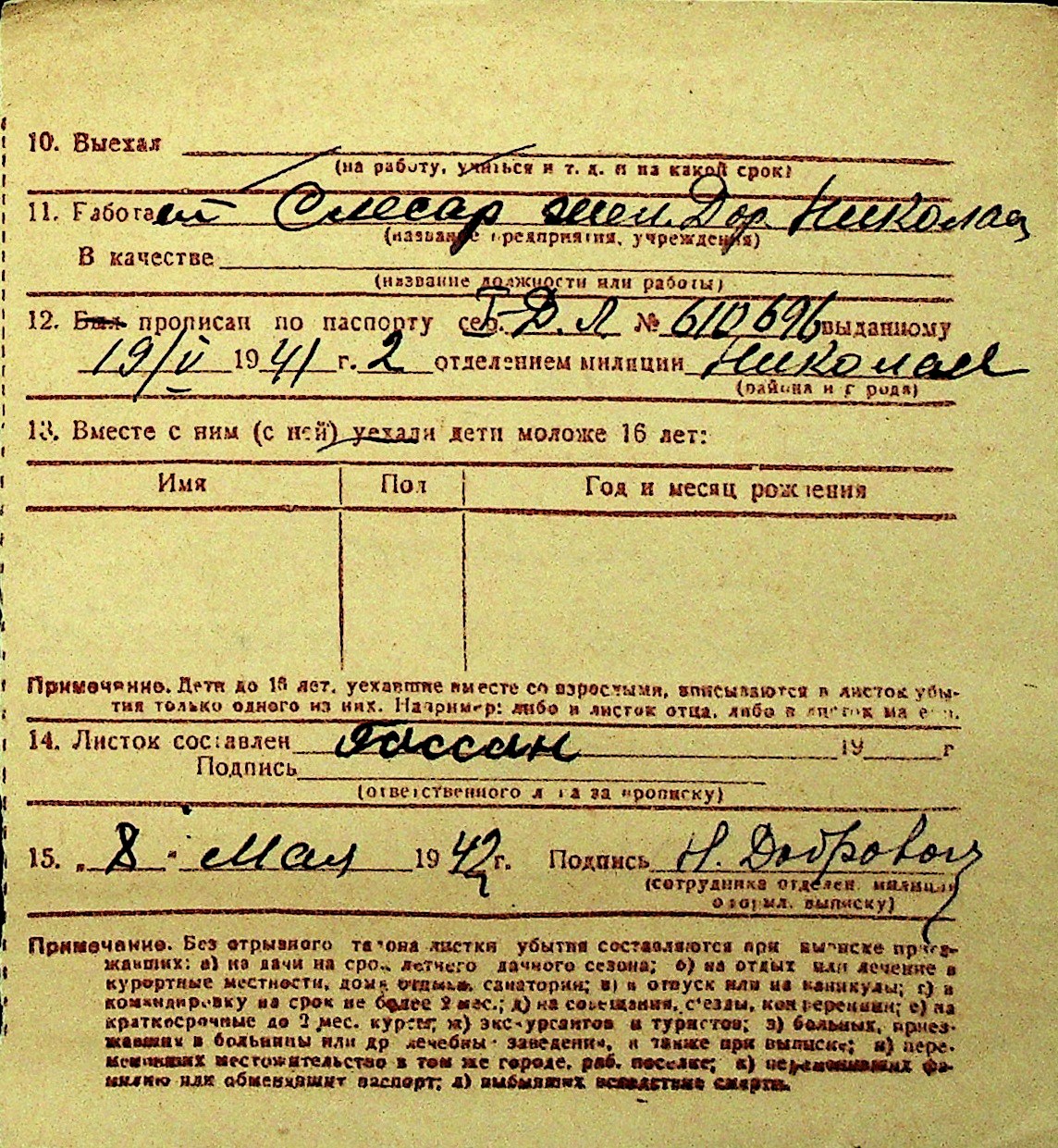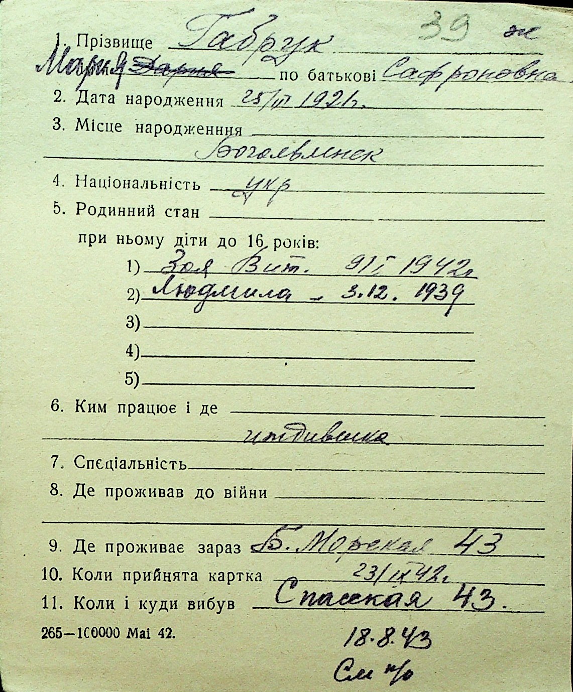 • • Перелік карток до фонду № Н-1016