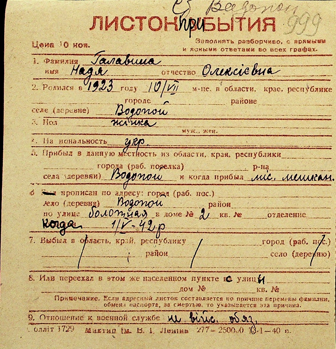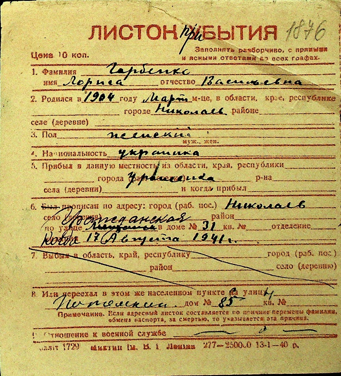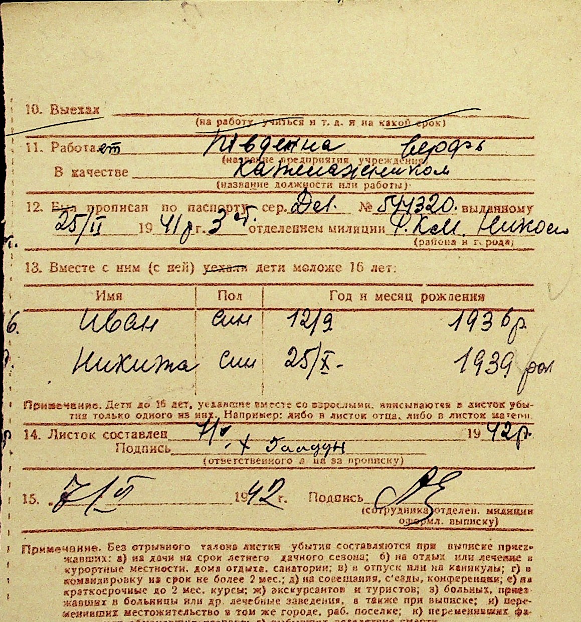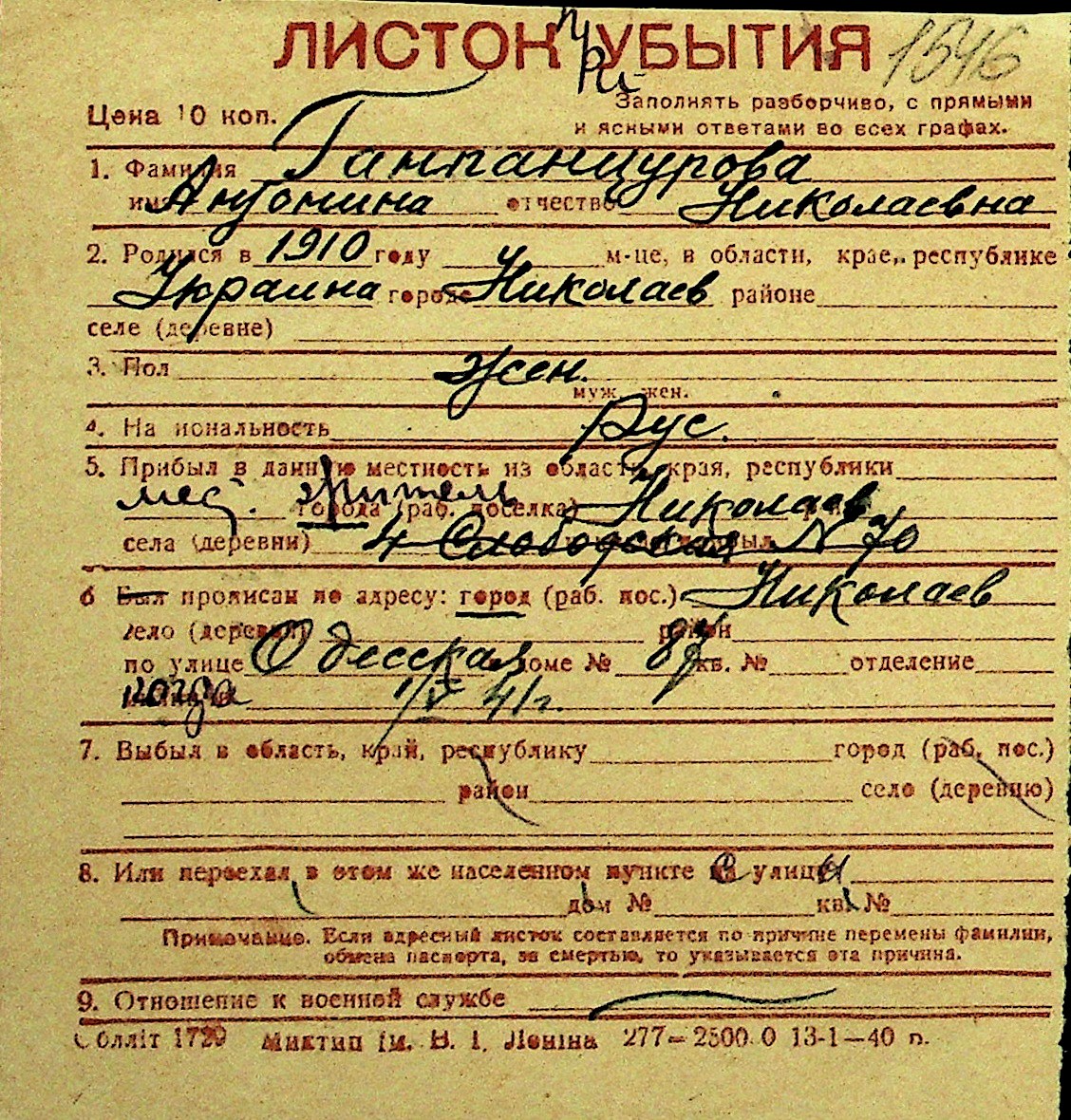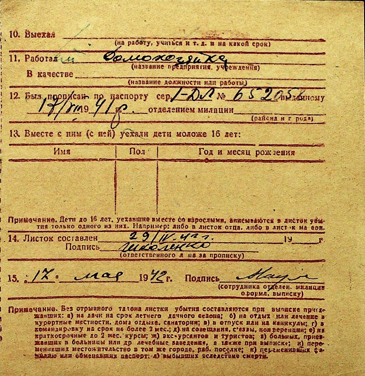 • • Перелік карток до фонду № Н-1016