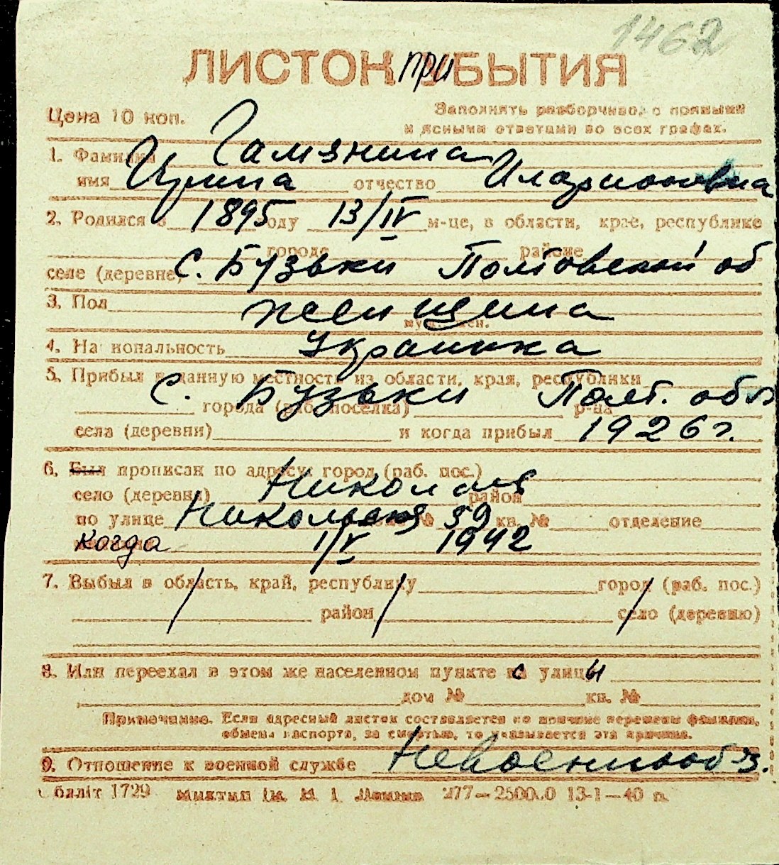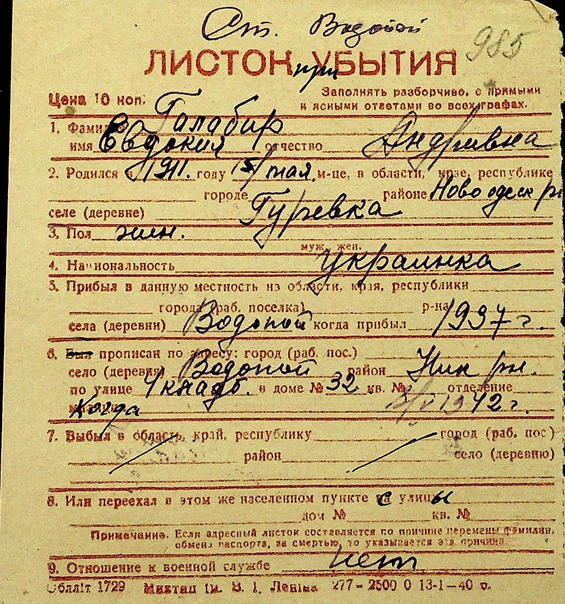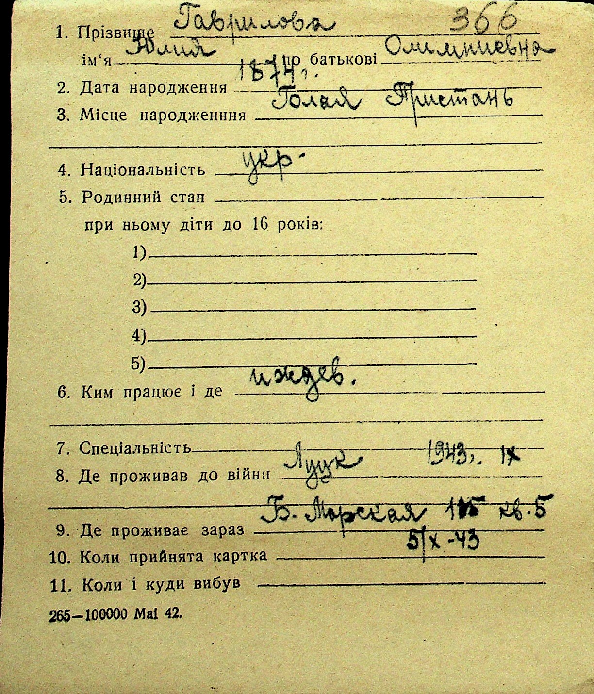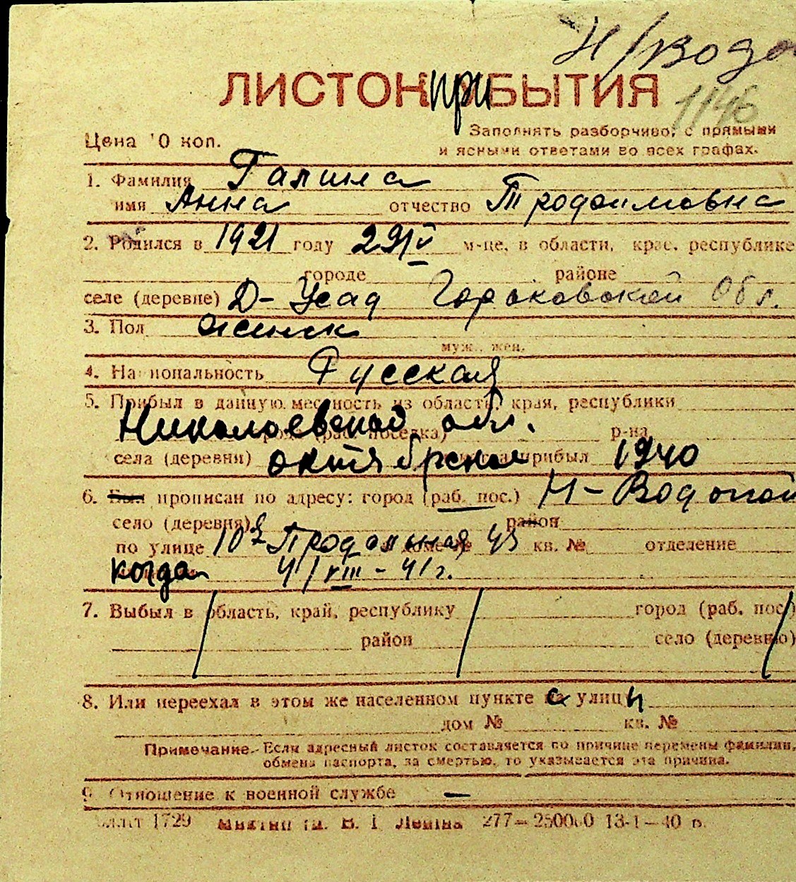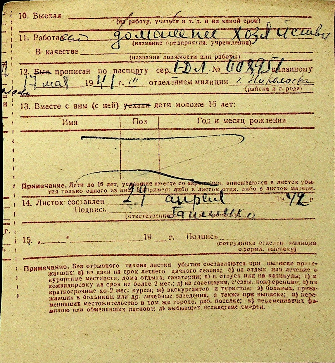 • • Перелік карток до фонду № Н-1016