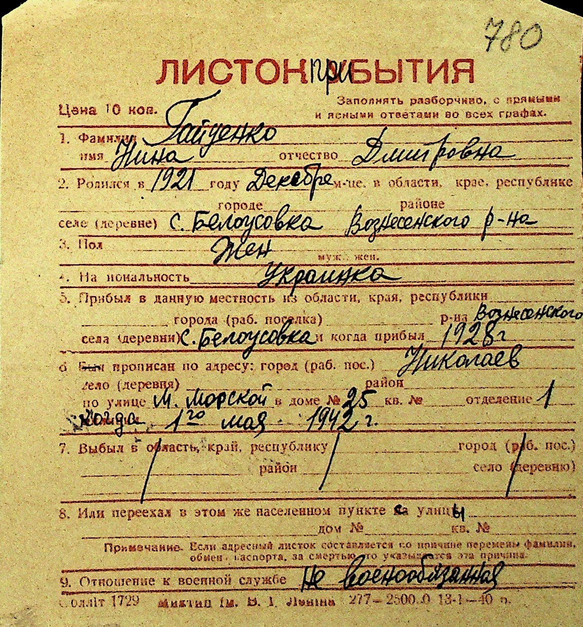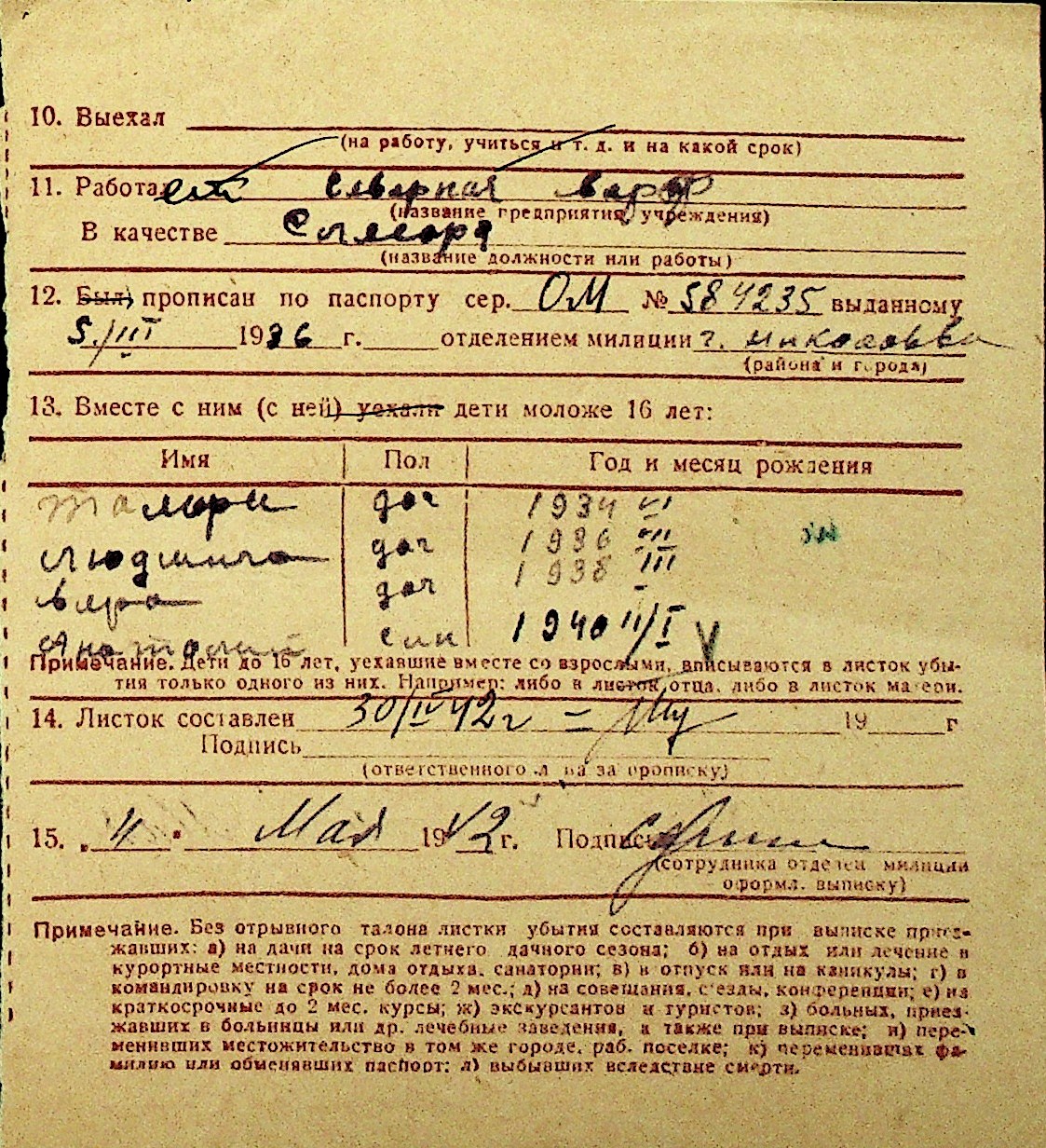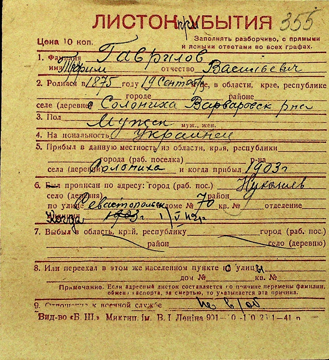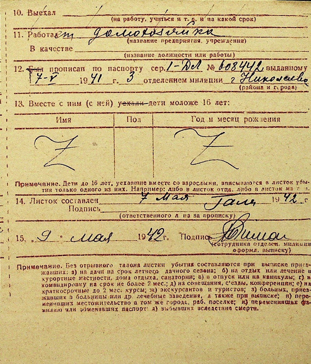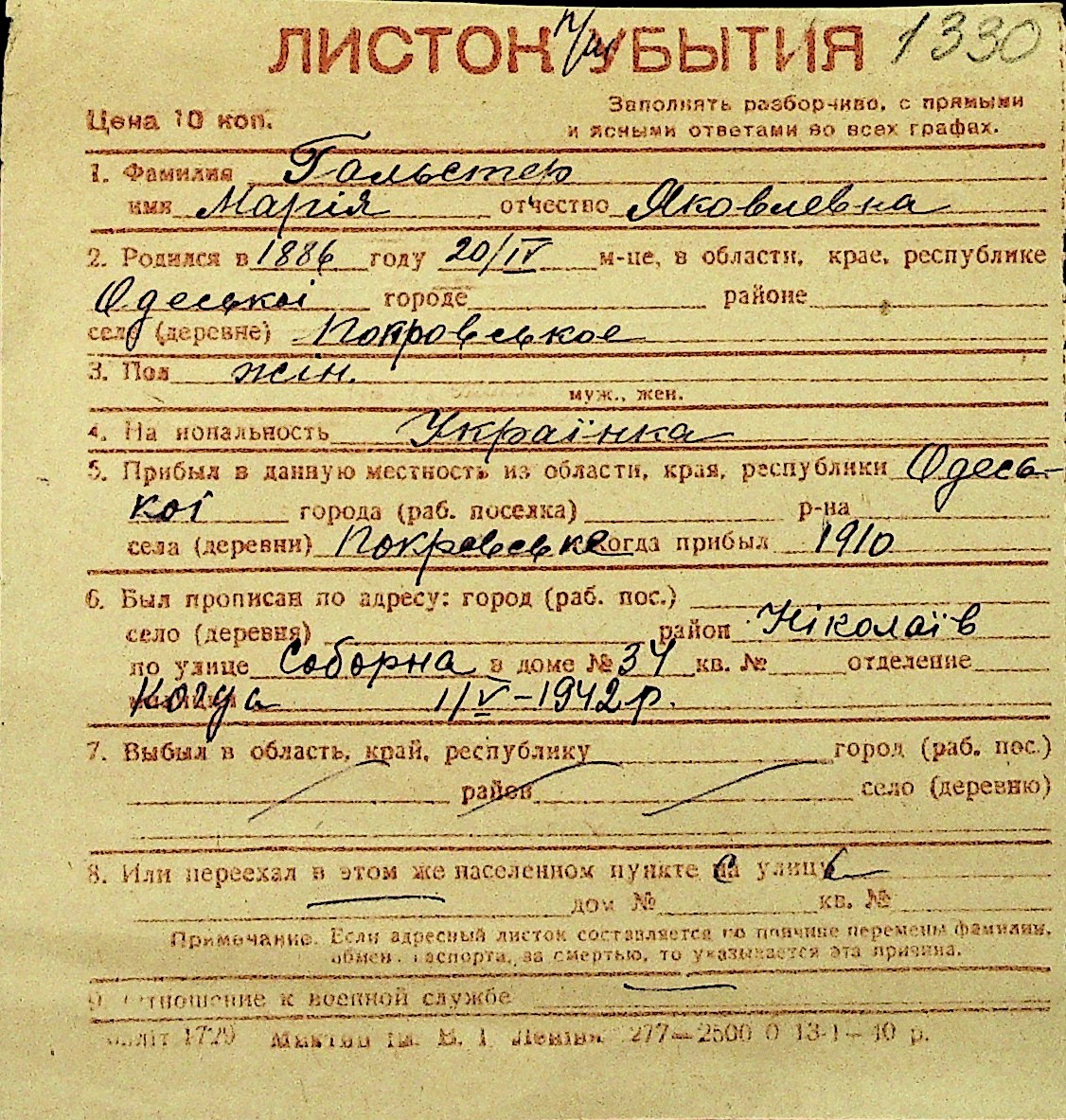 • • Перелік карток до фонду № Н-1016