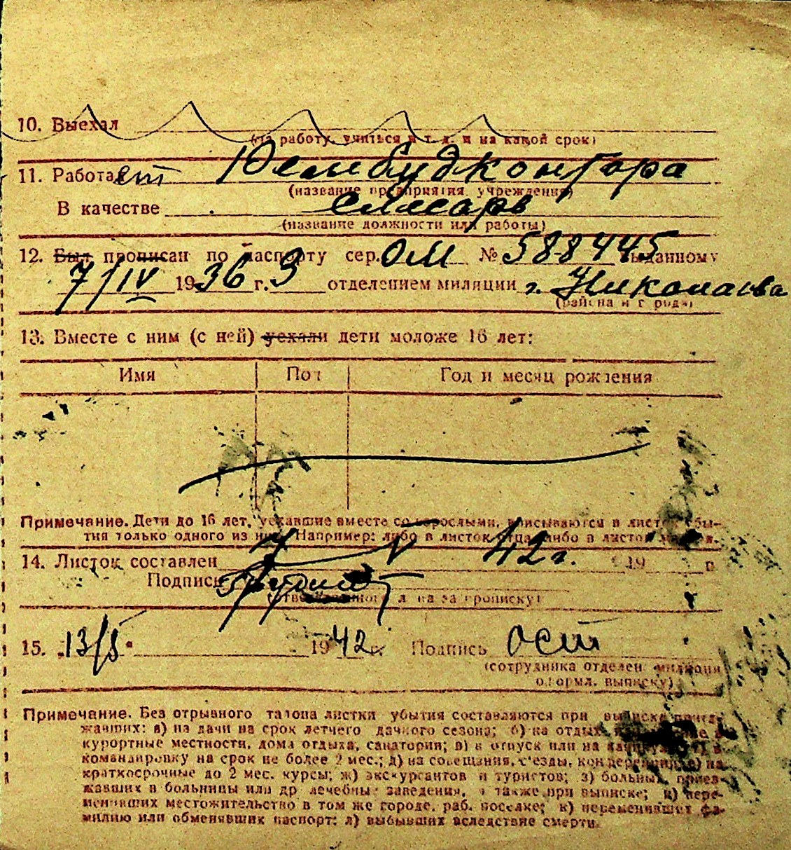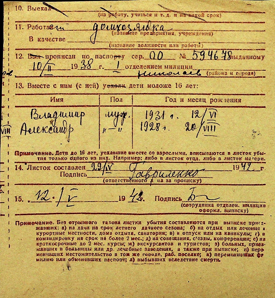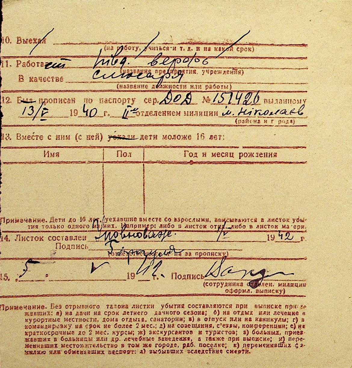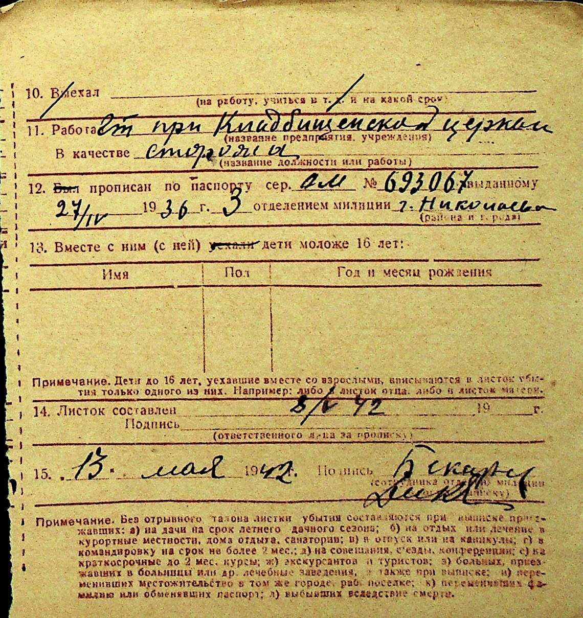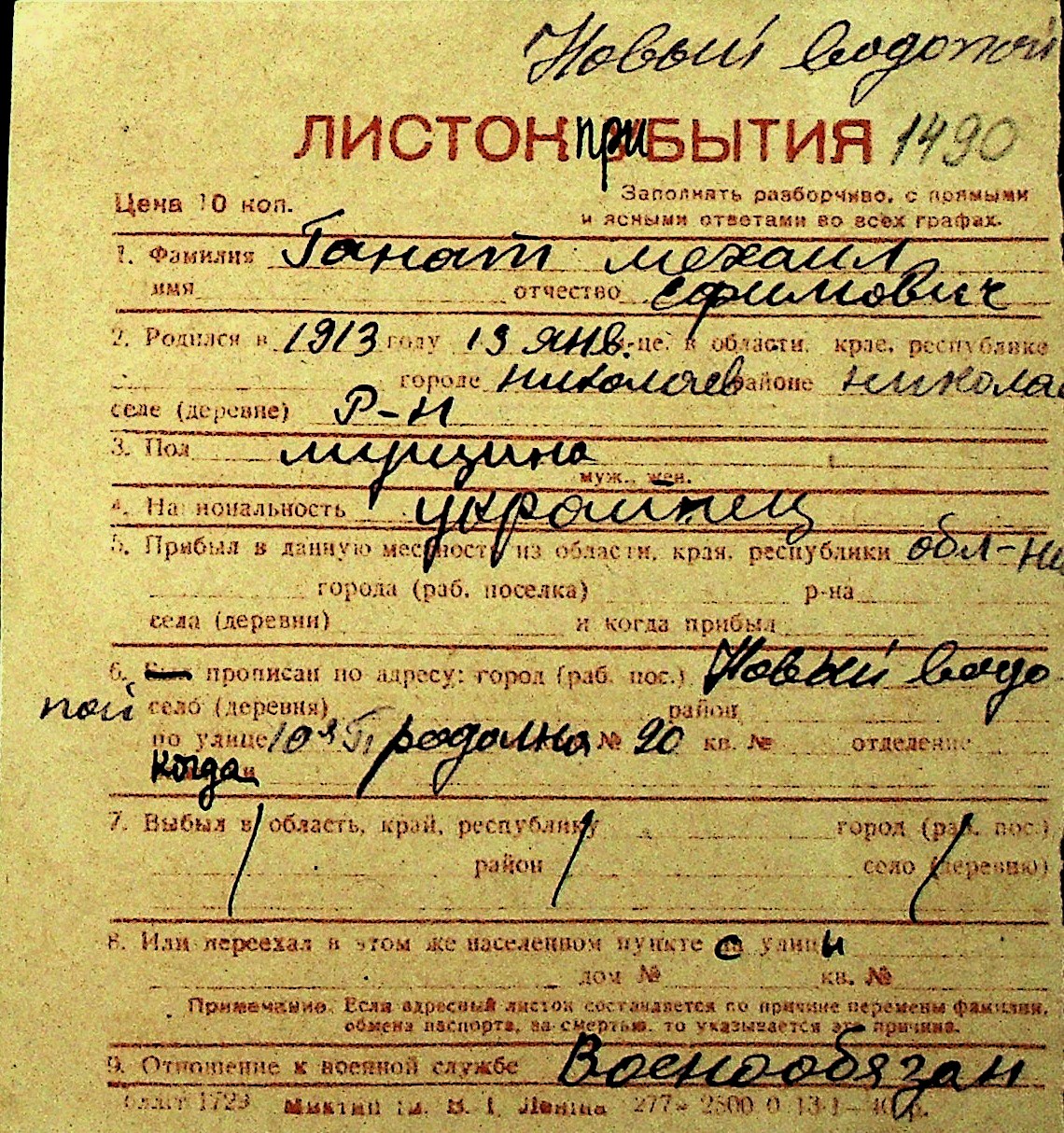 • • Перелік карток до фонду № Н-1016