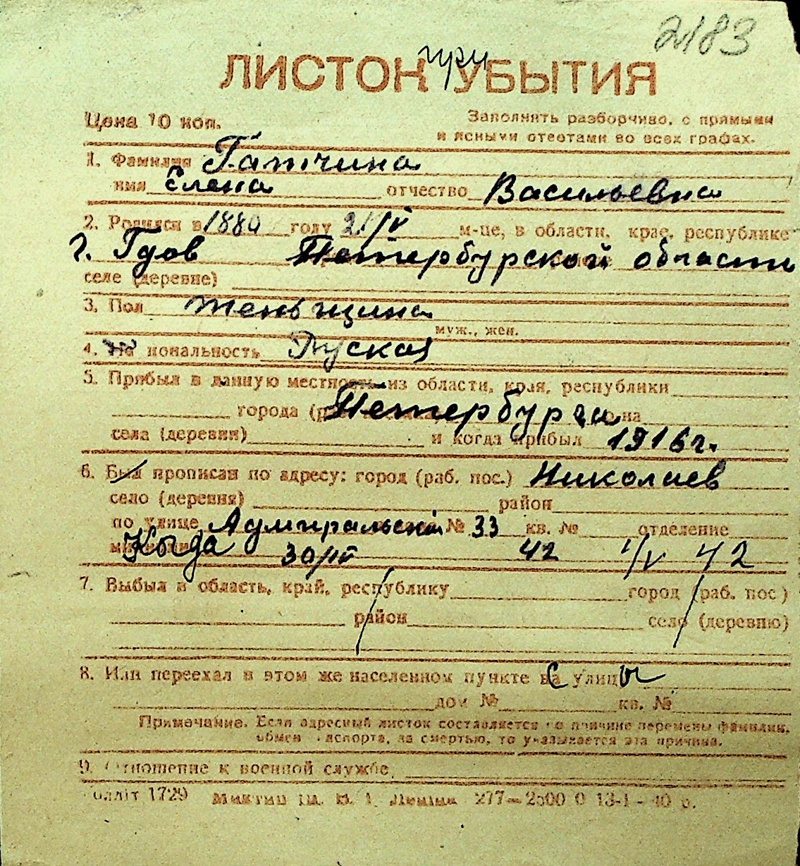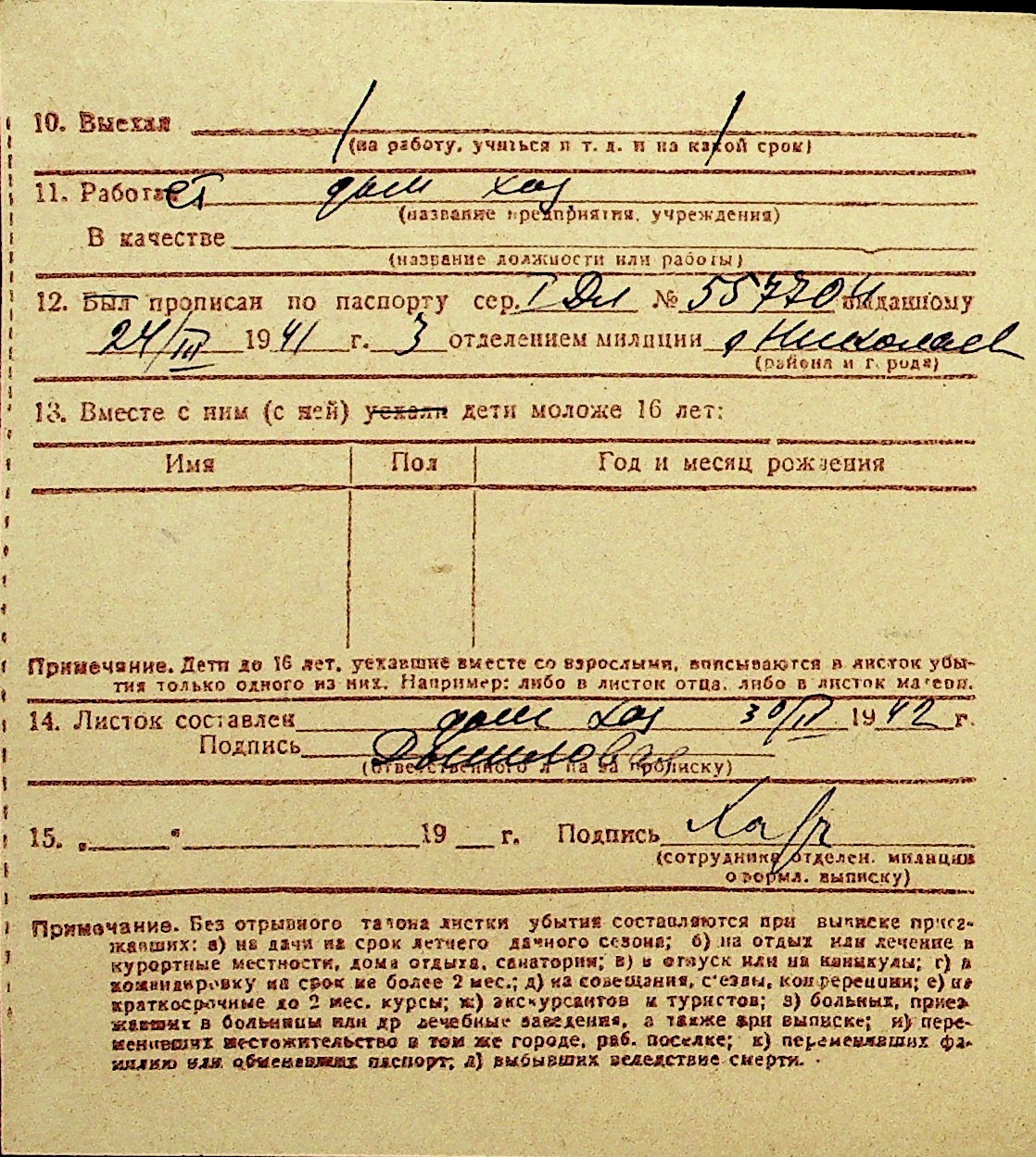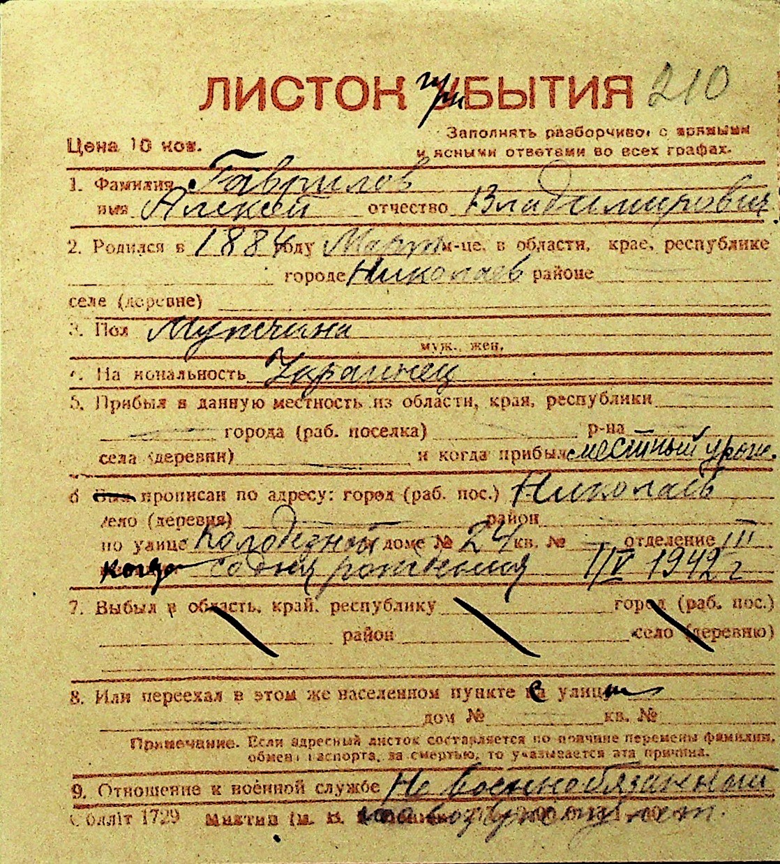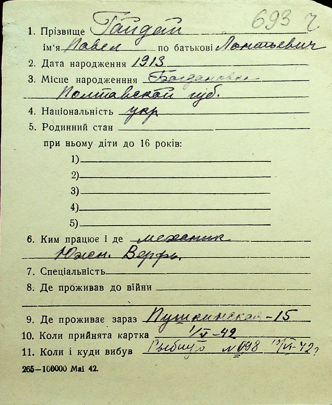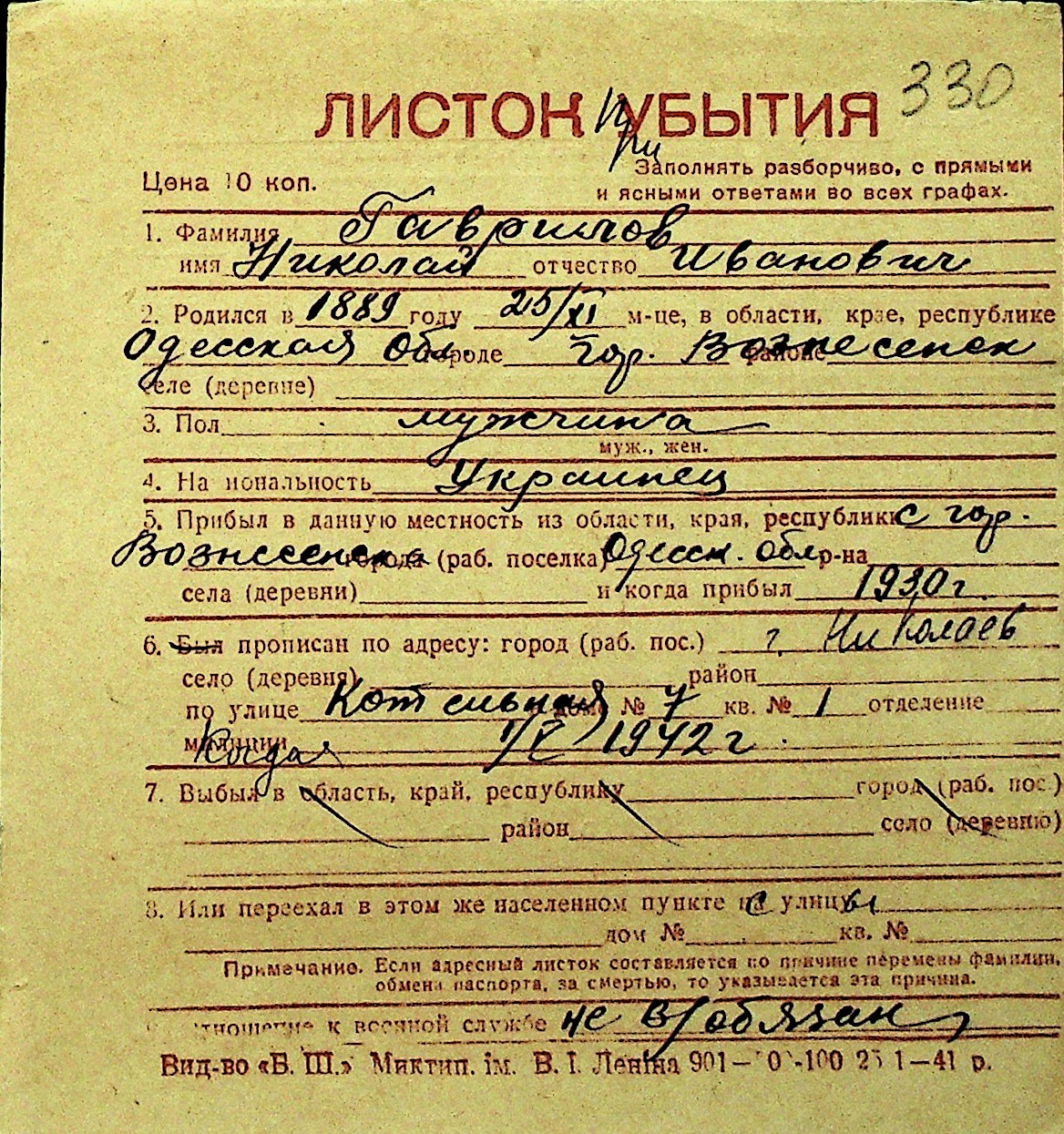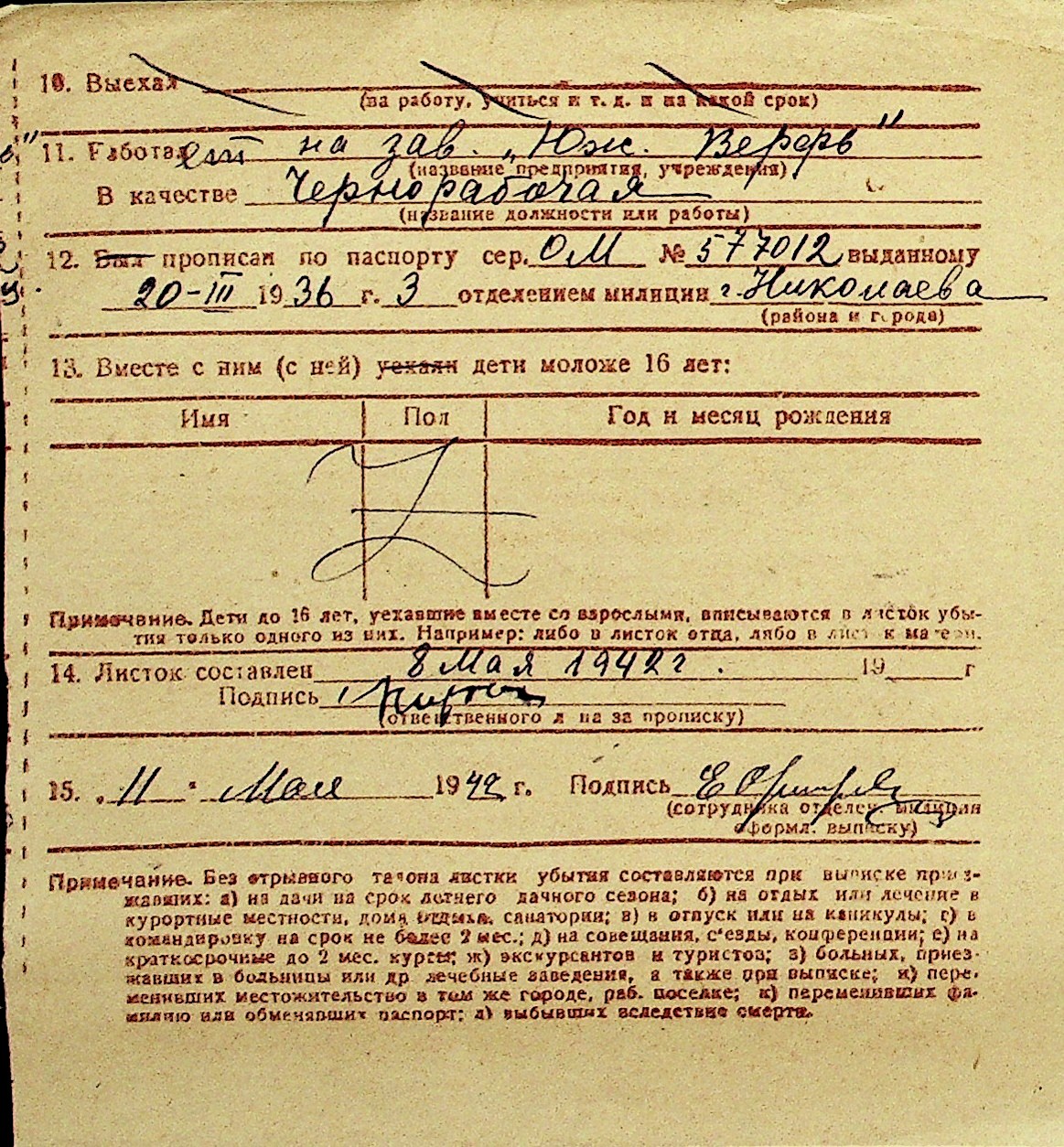 • • Перелік карток до фонду № Н-1016