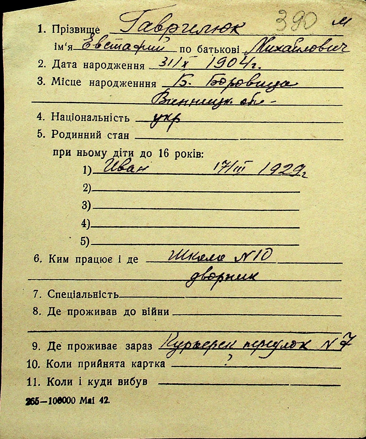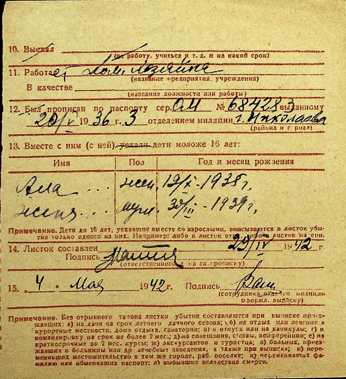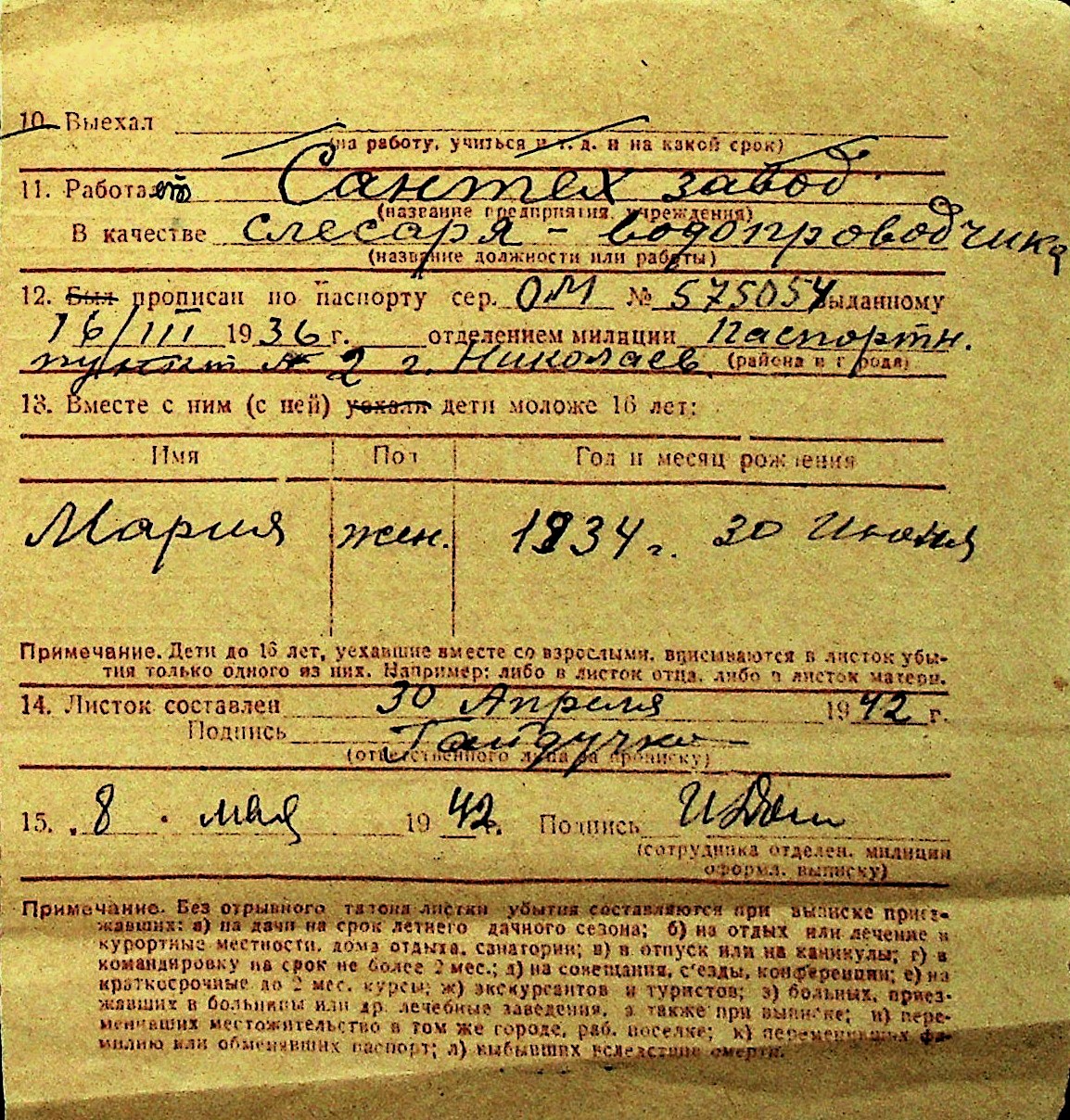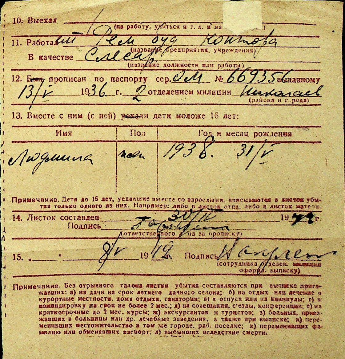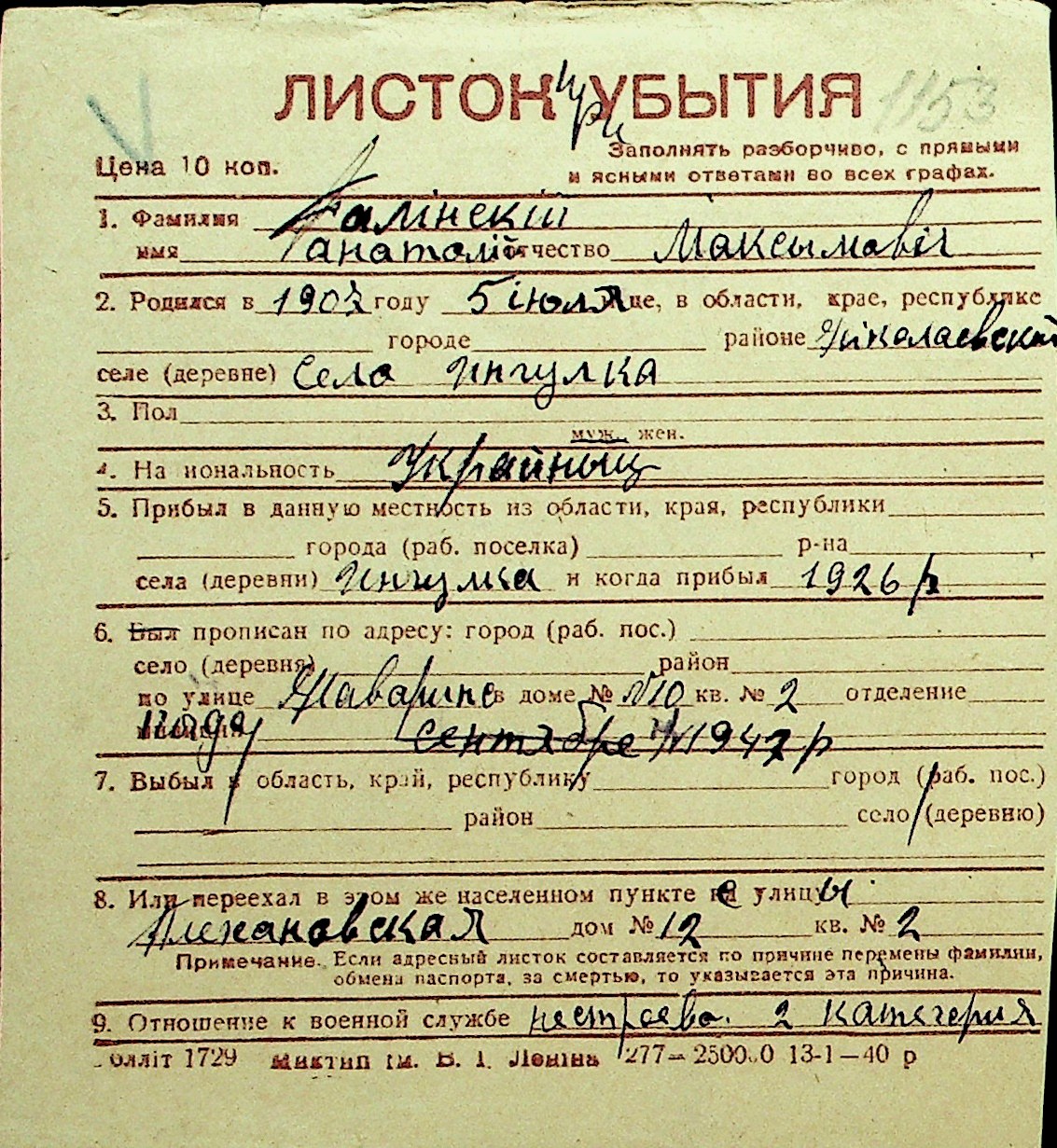 • • Перелік карток до фонду № Н-1016