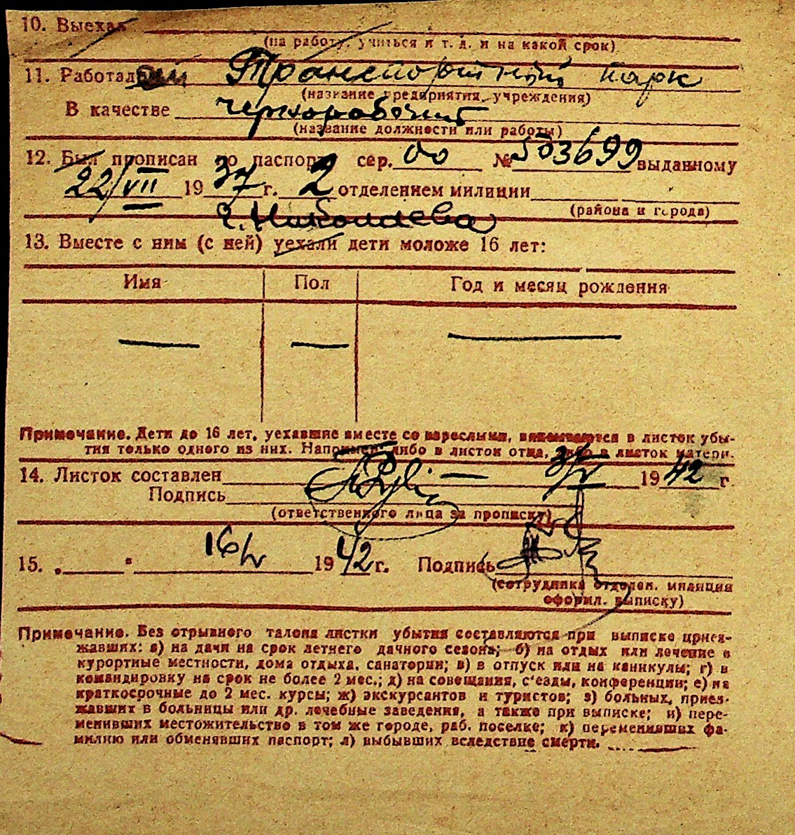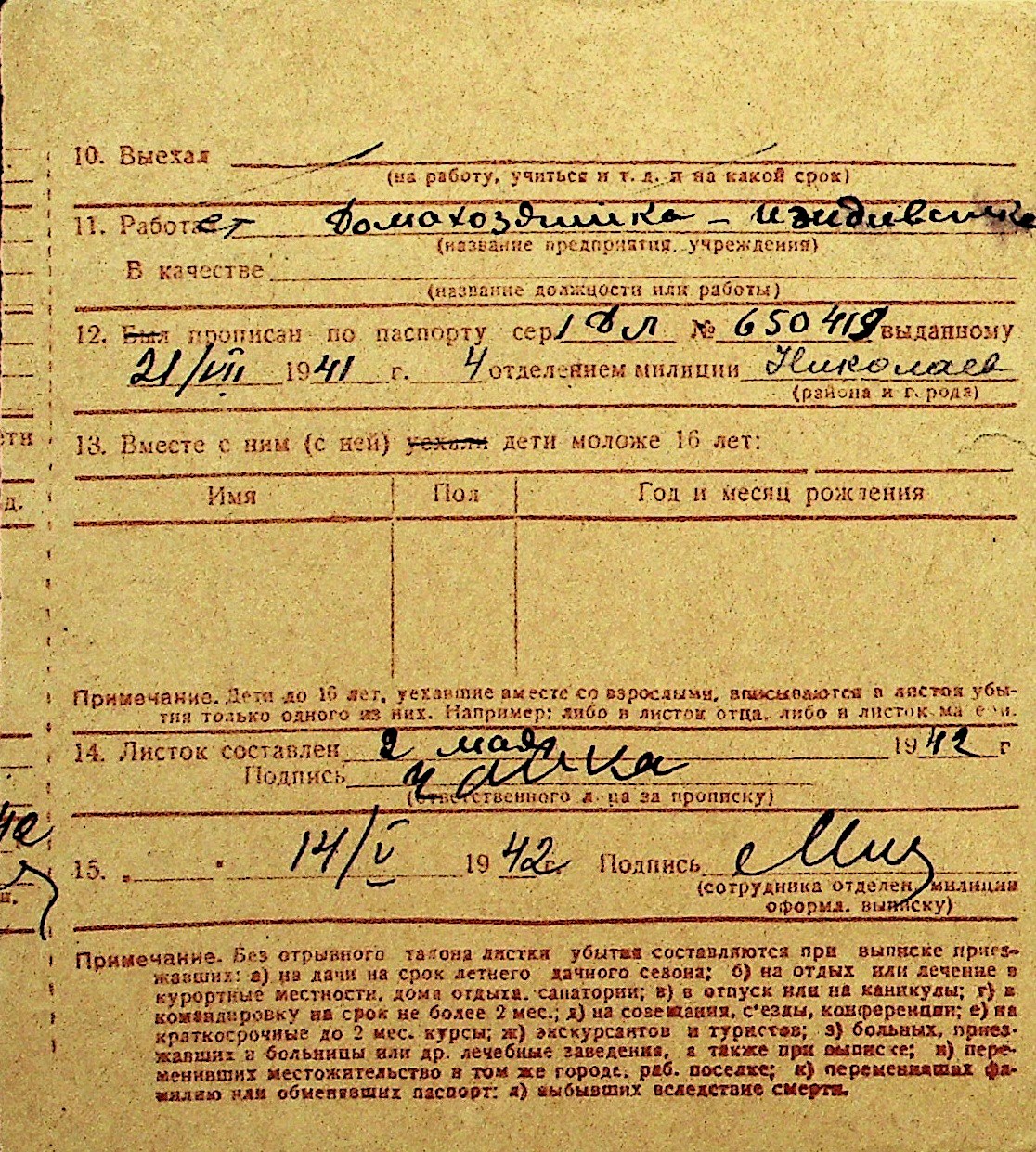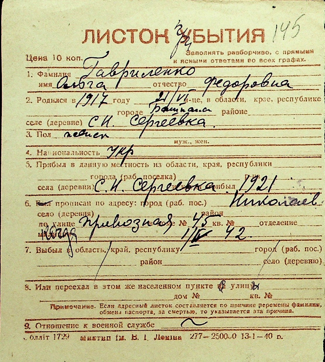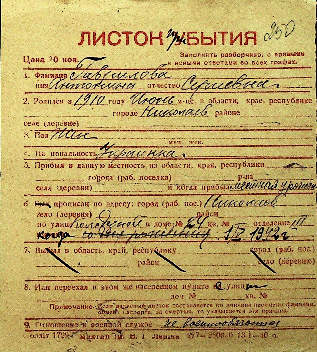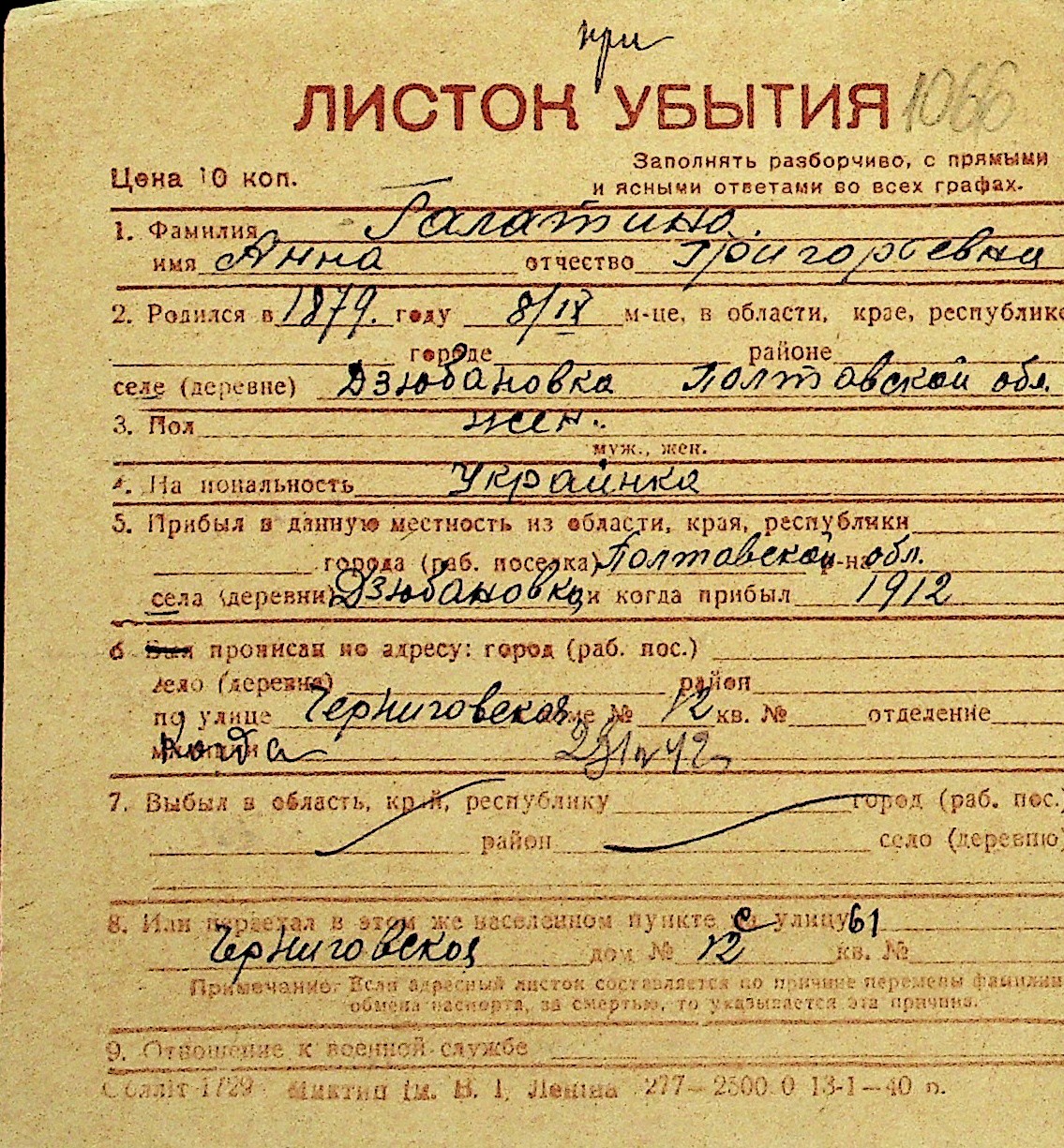• • Перелік карток до фонду № Н-1016