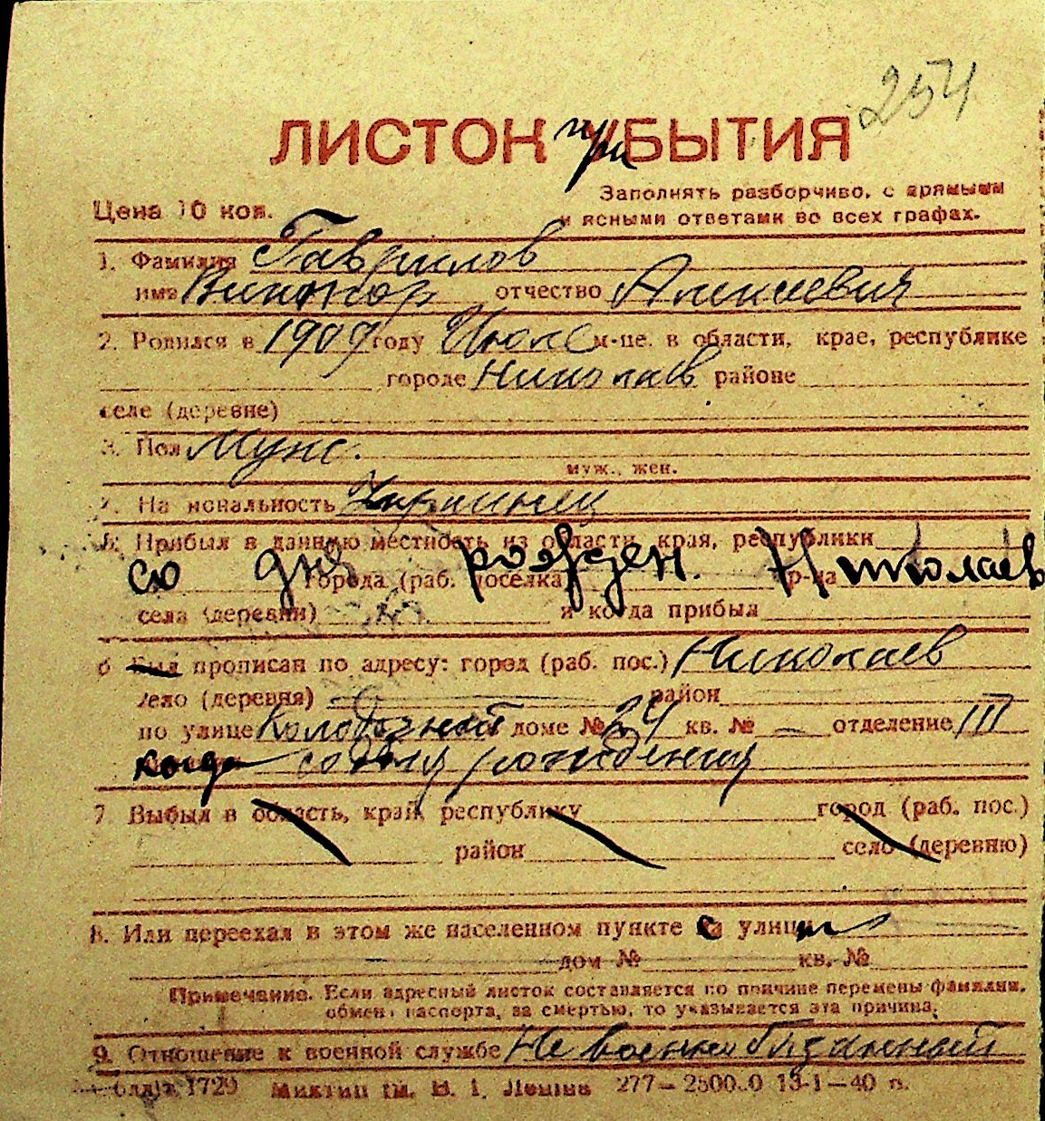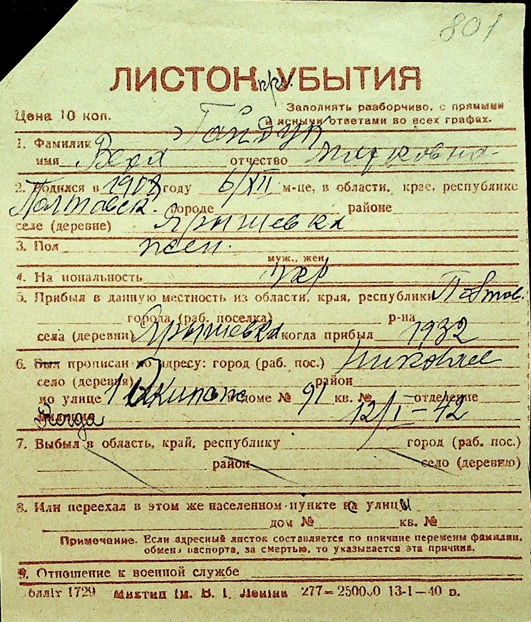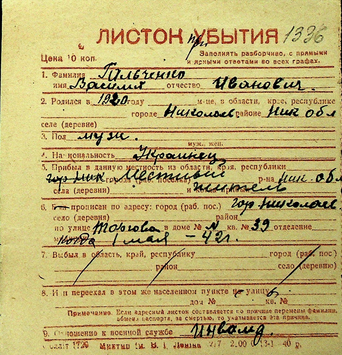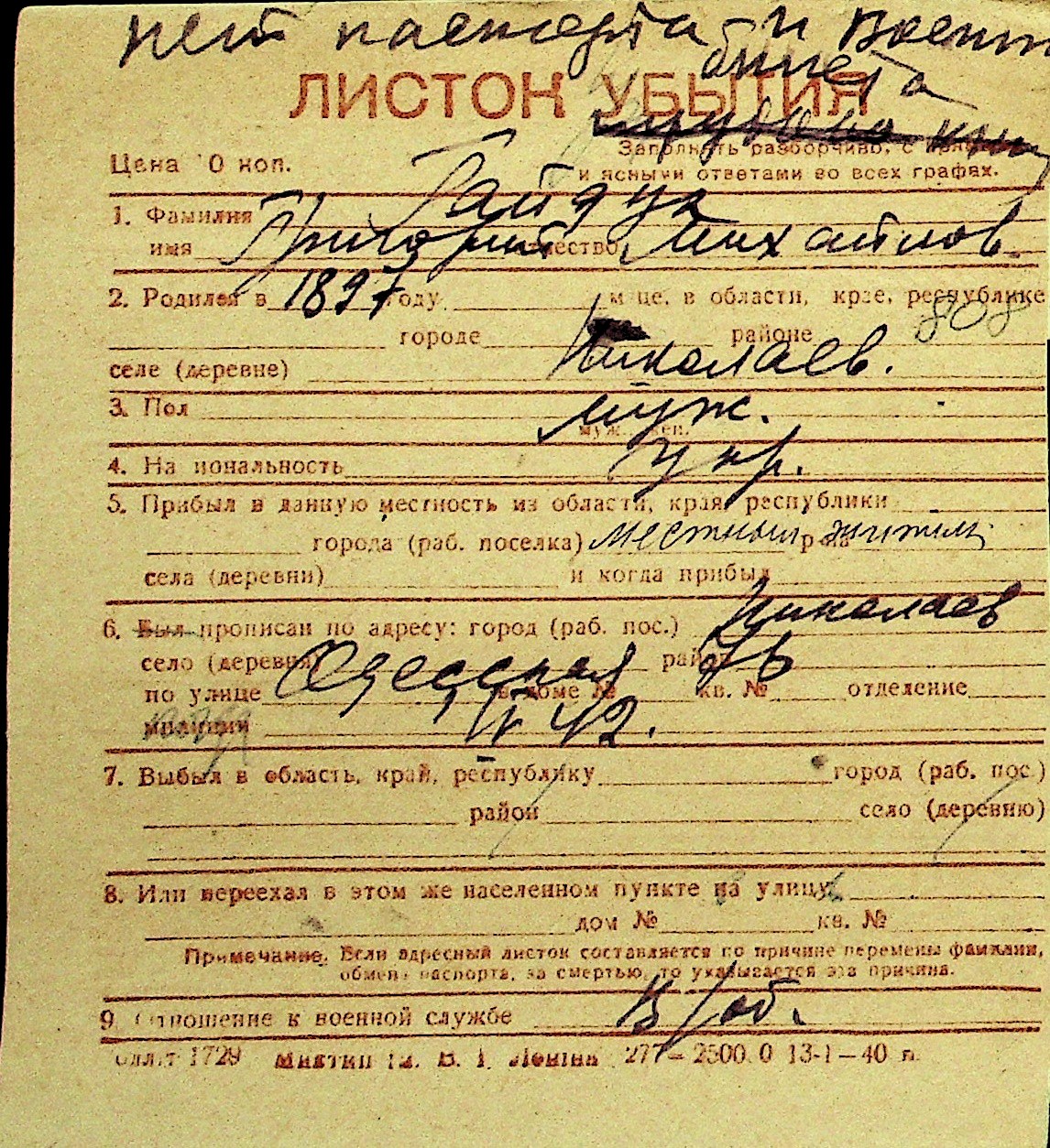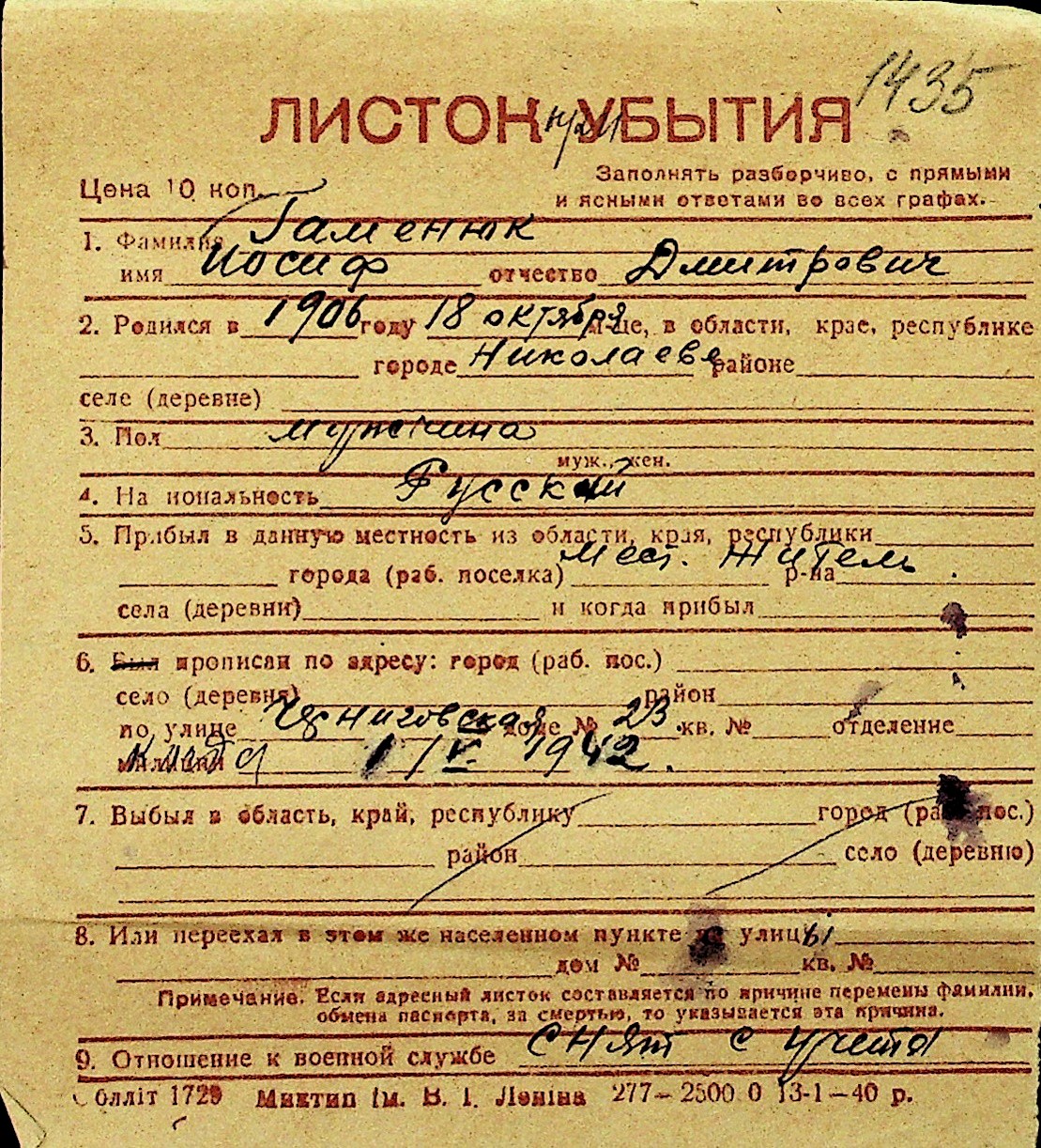 • • Перелік карток до фонду № Н-1016