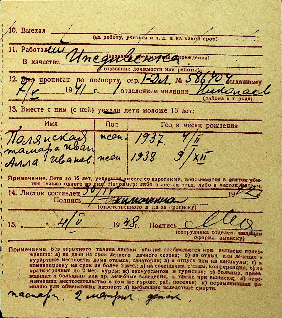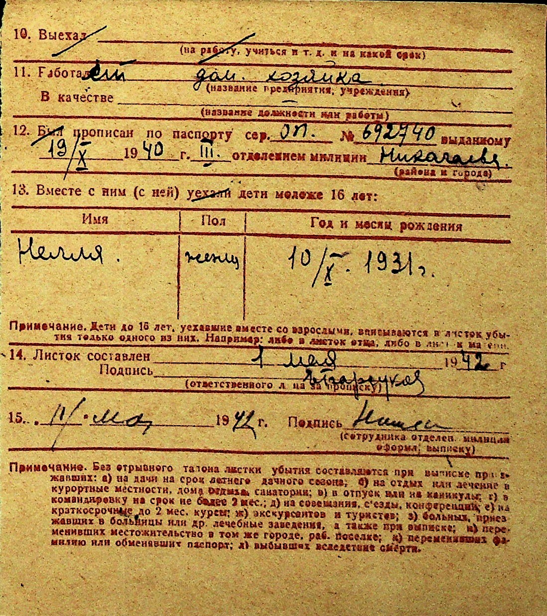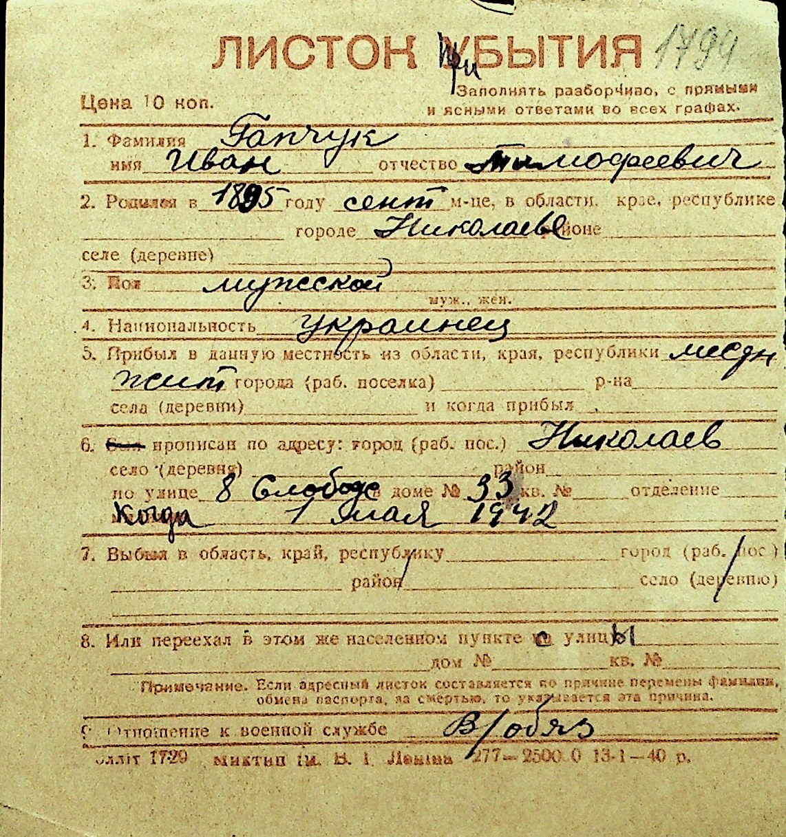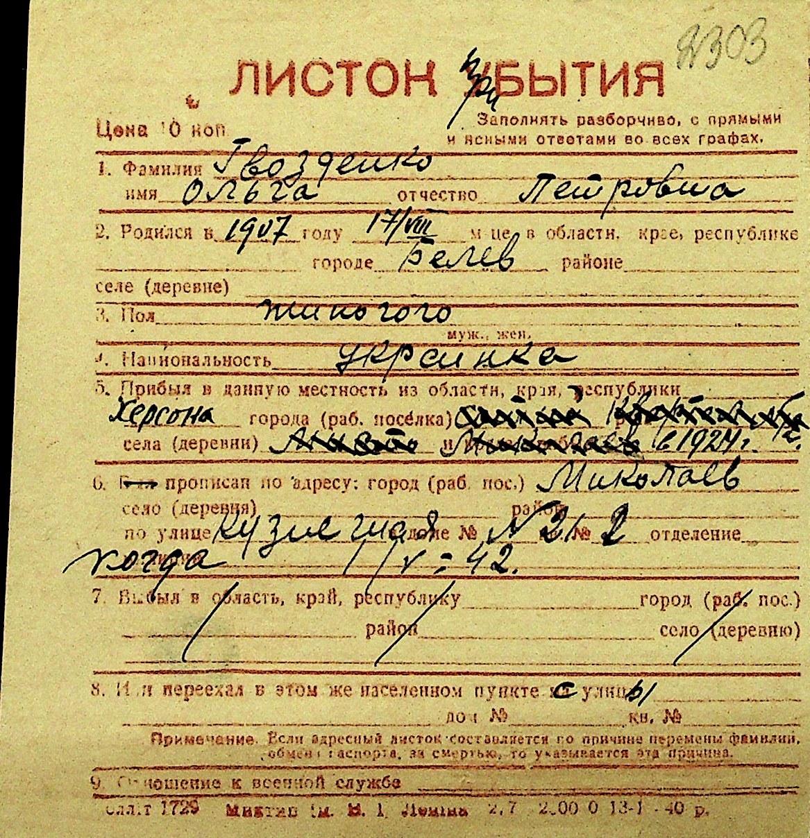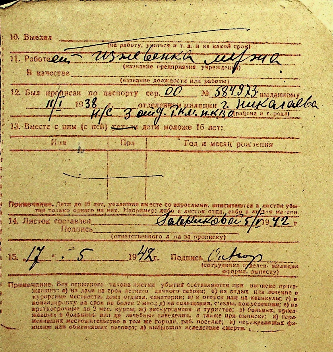 • • Перелік карток до фонду № Н-1016