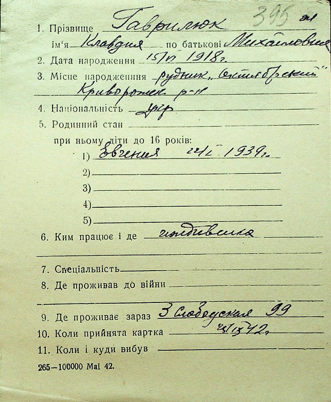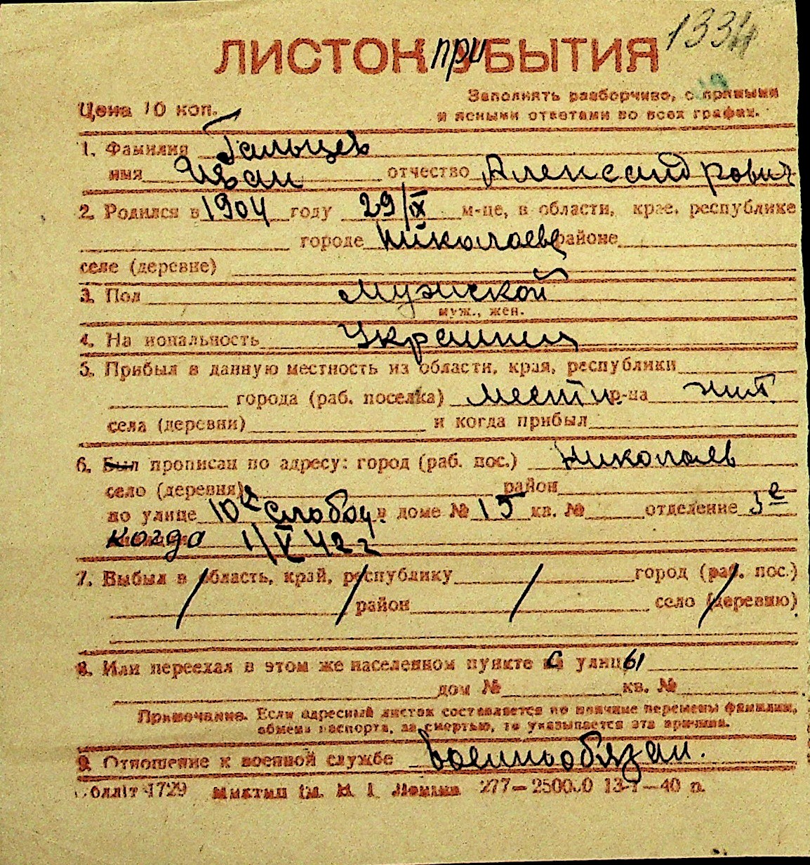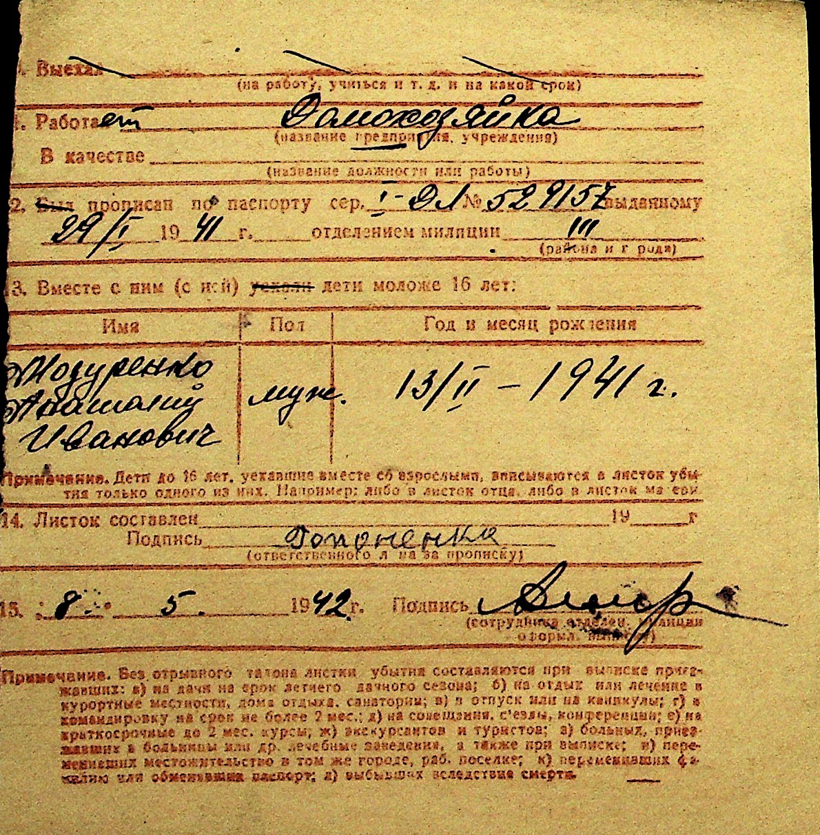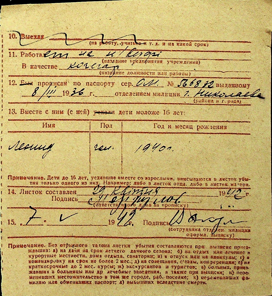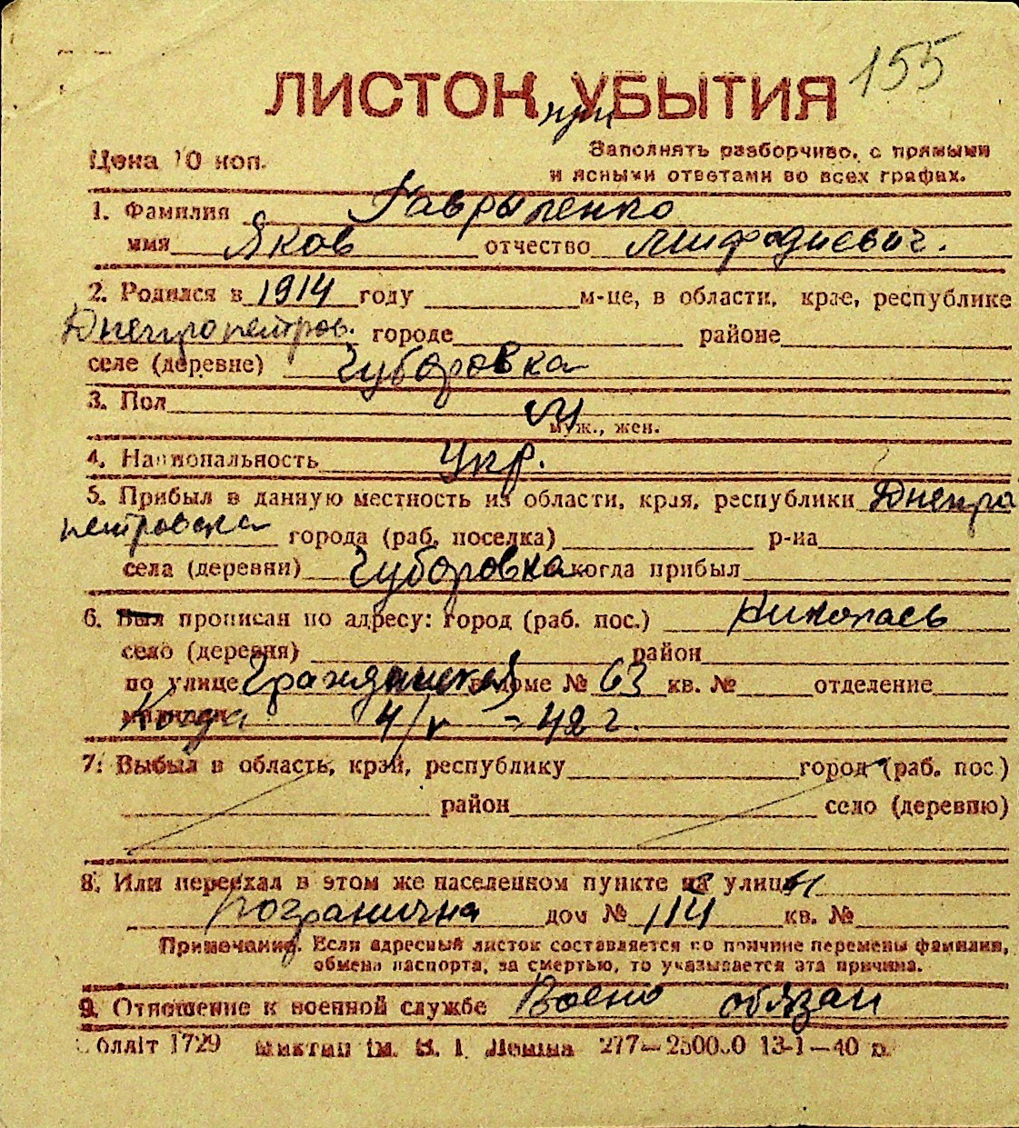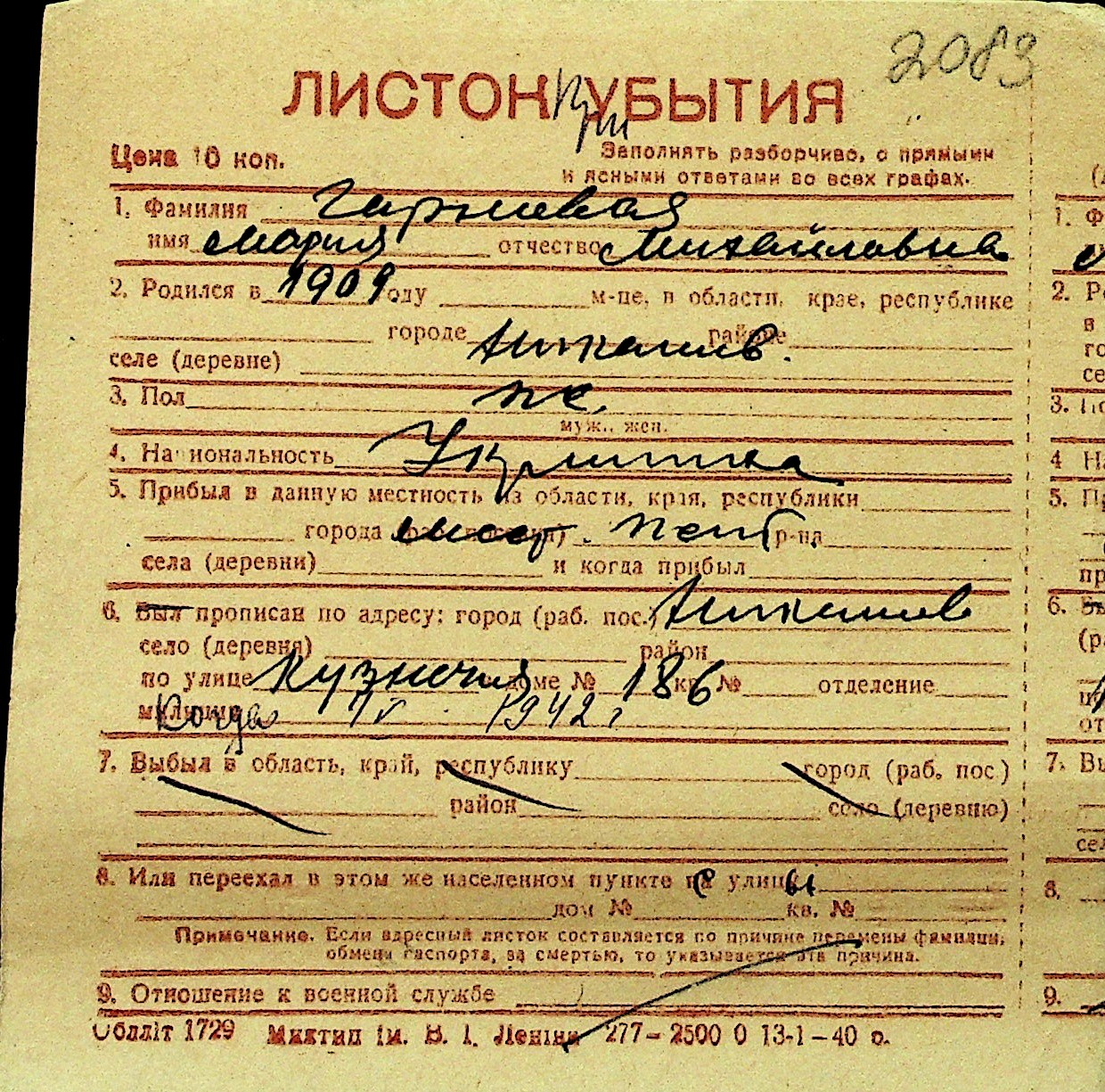 • • Перелік карток до фонду № Н-1016