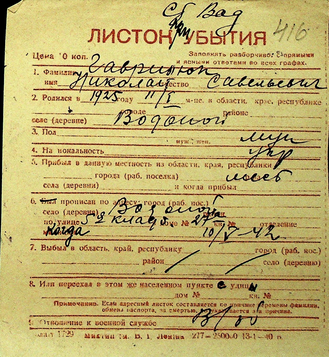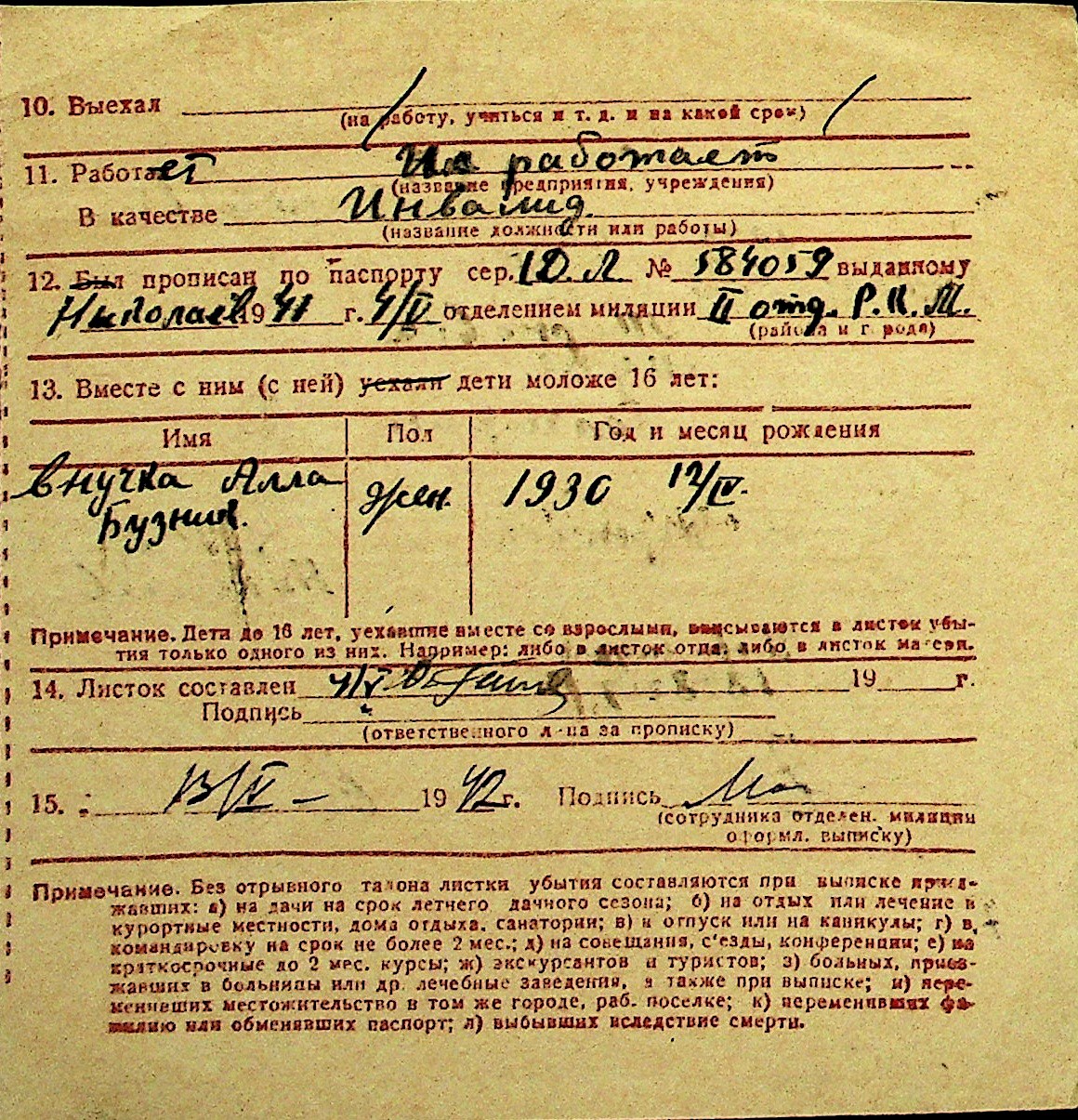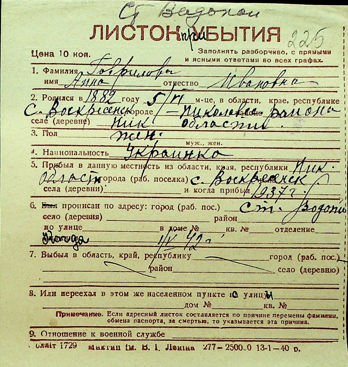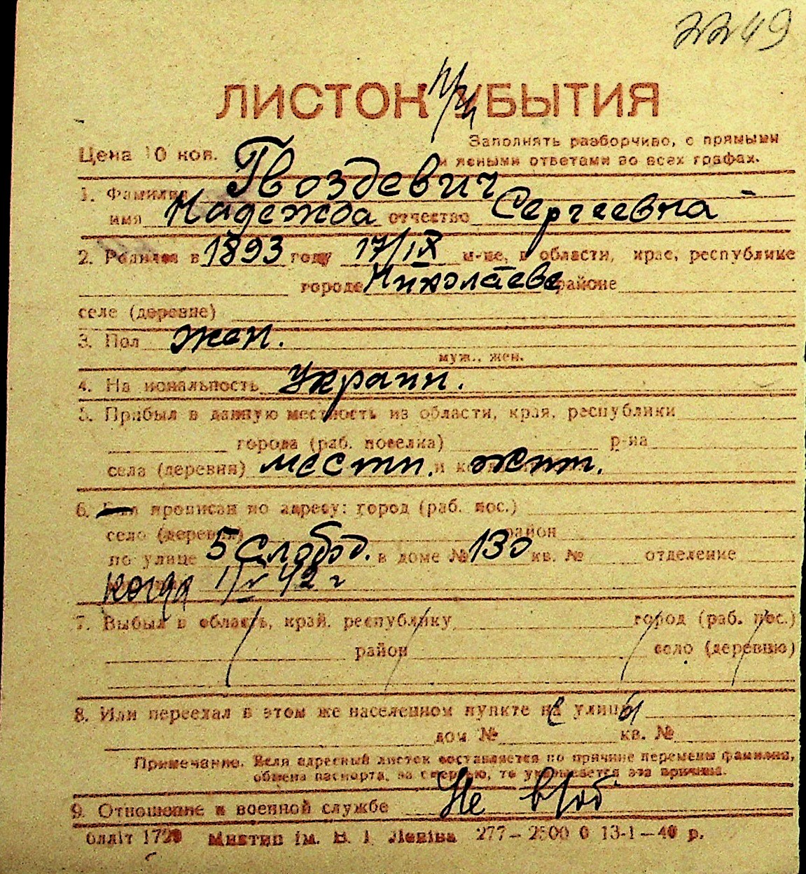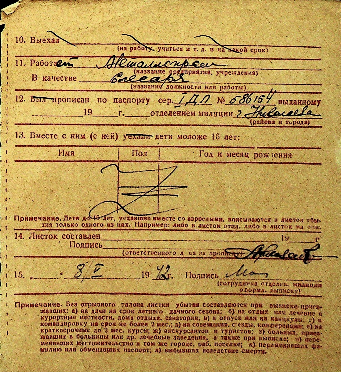 • • Перелік карток до фонду № Н-1016