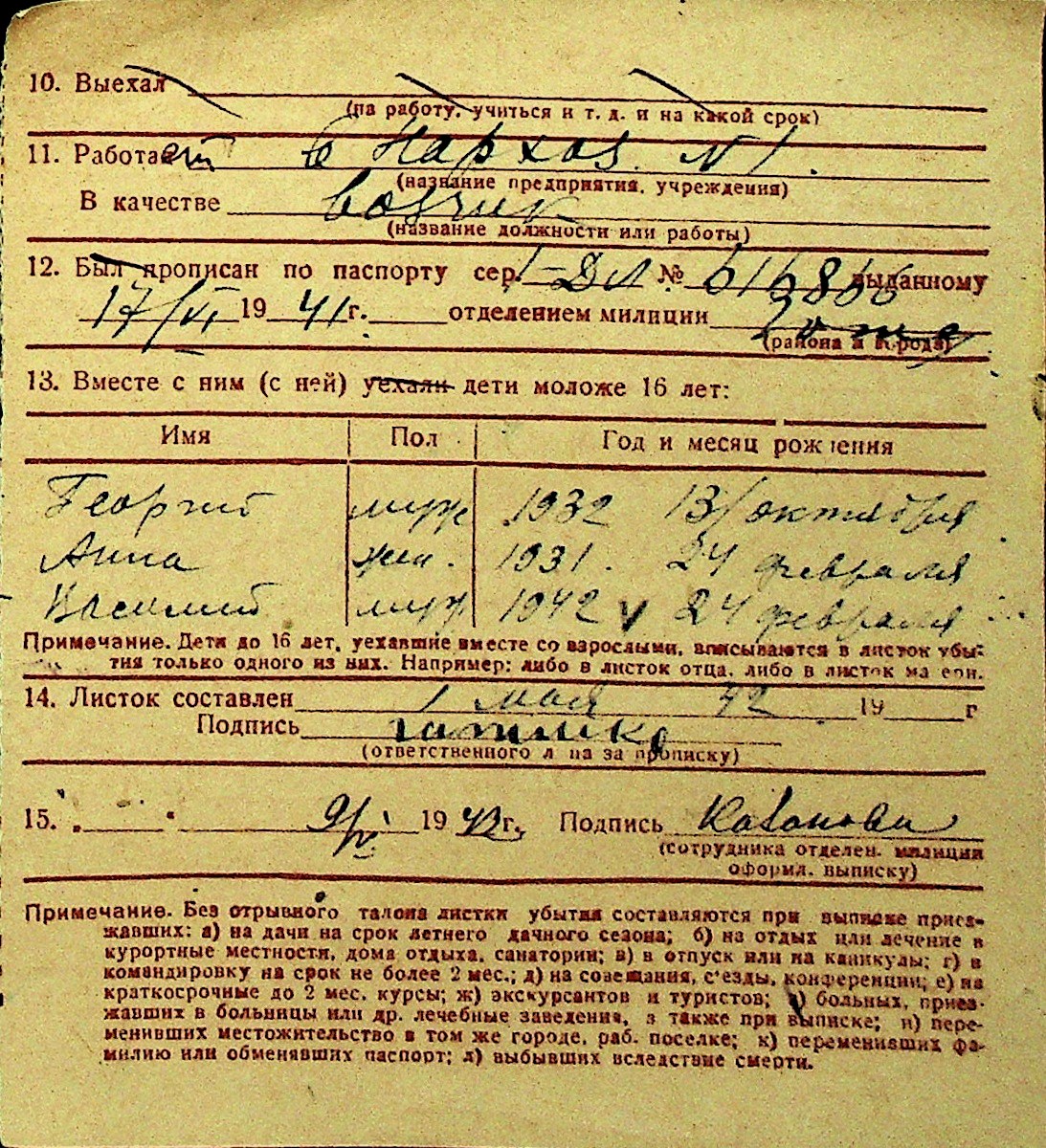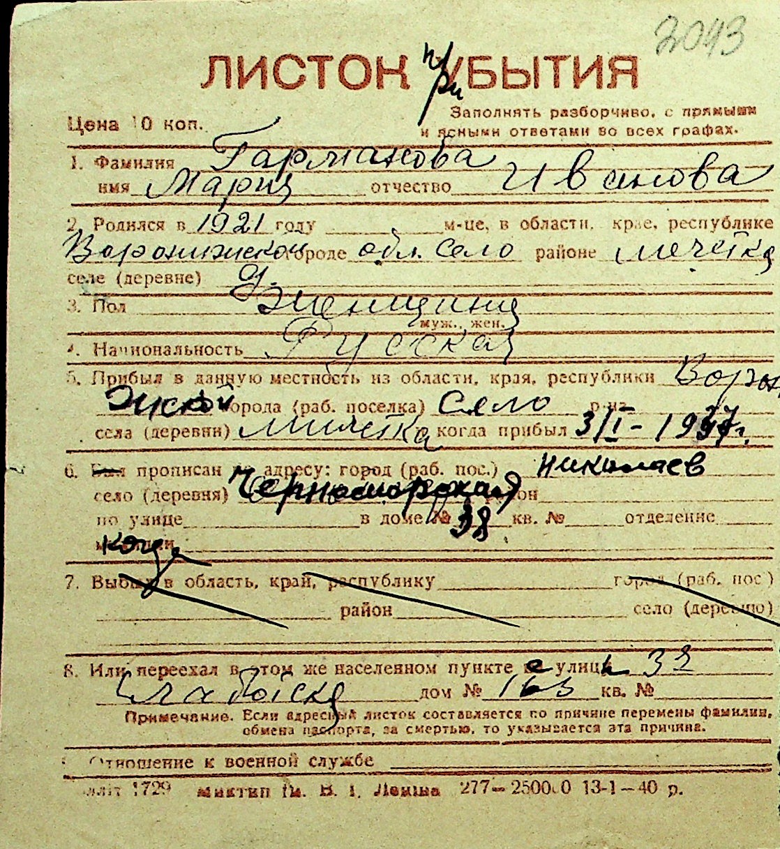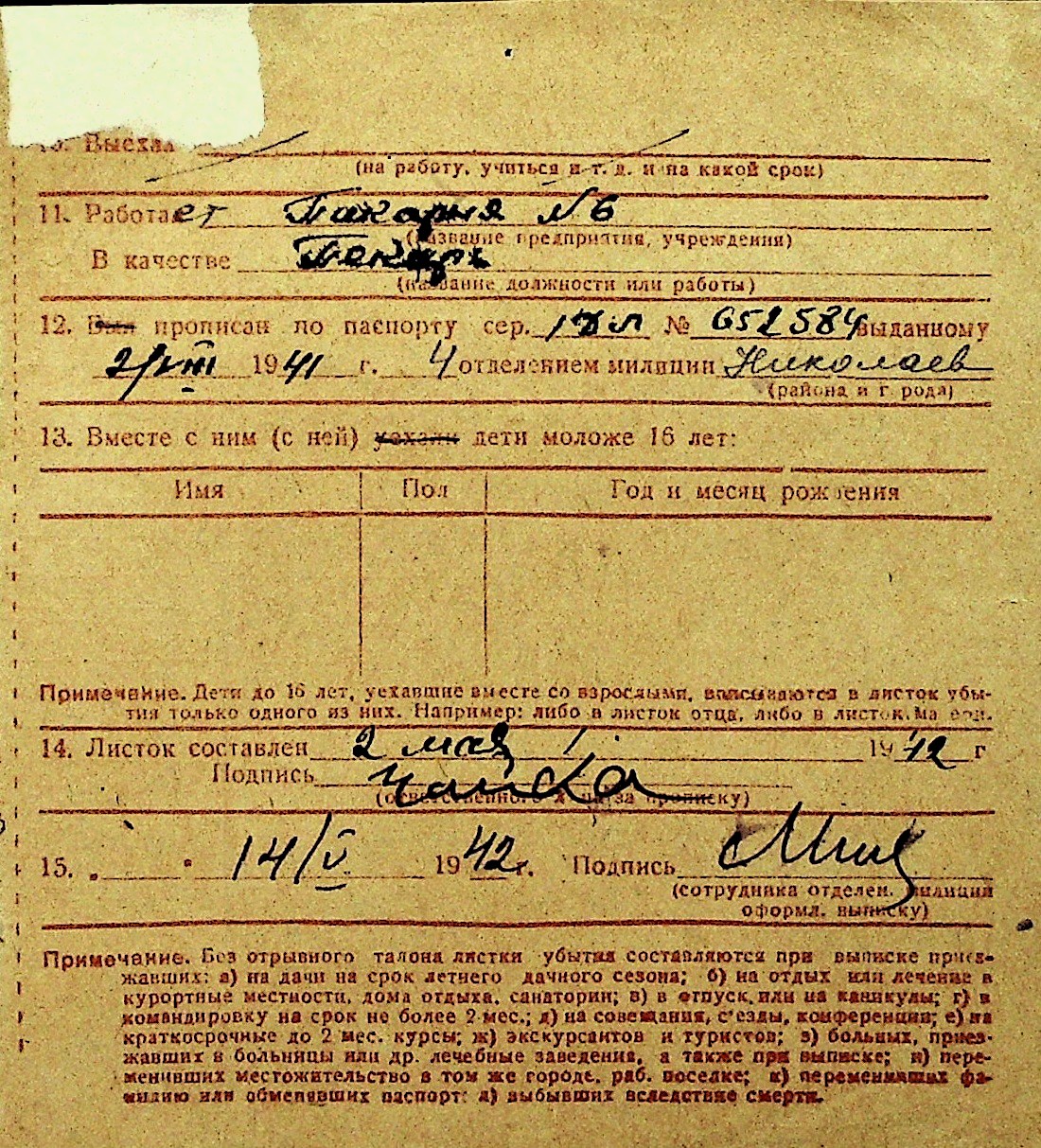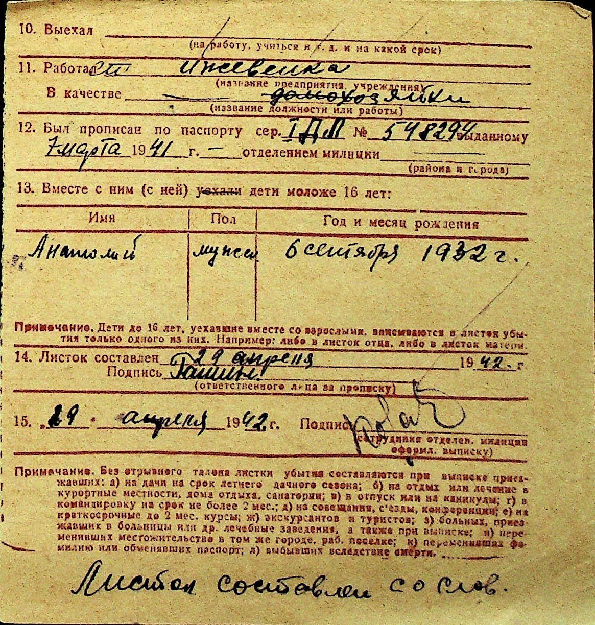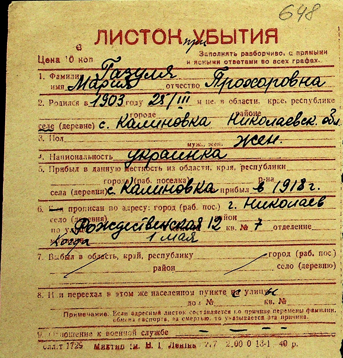 • • Перелік карток до фонду № Н-1016