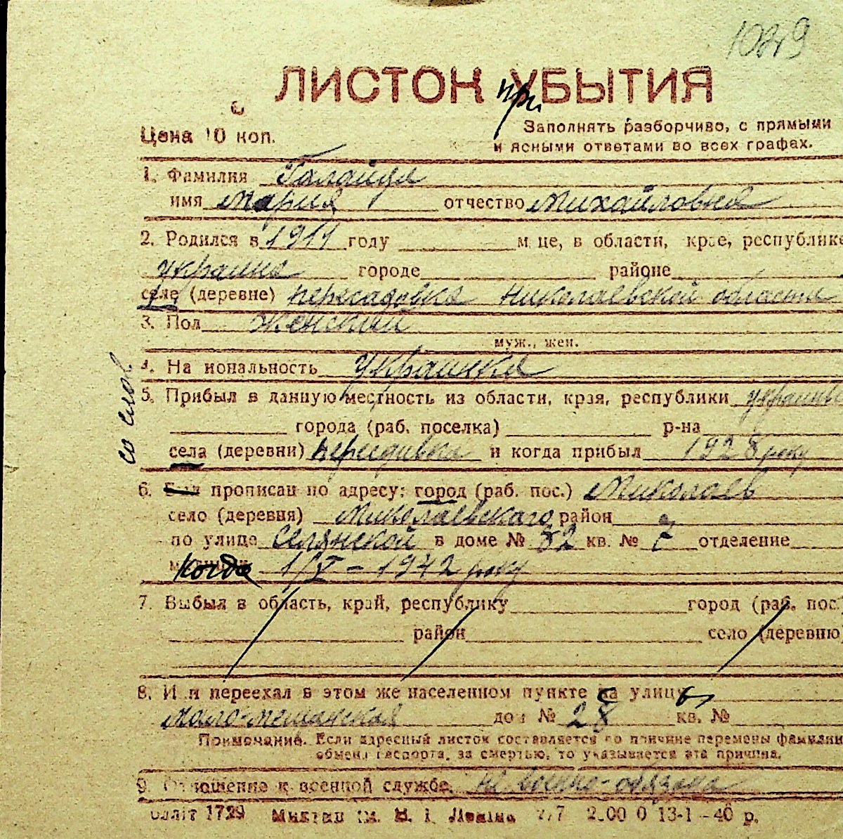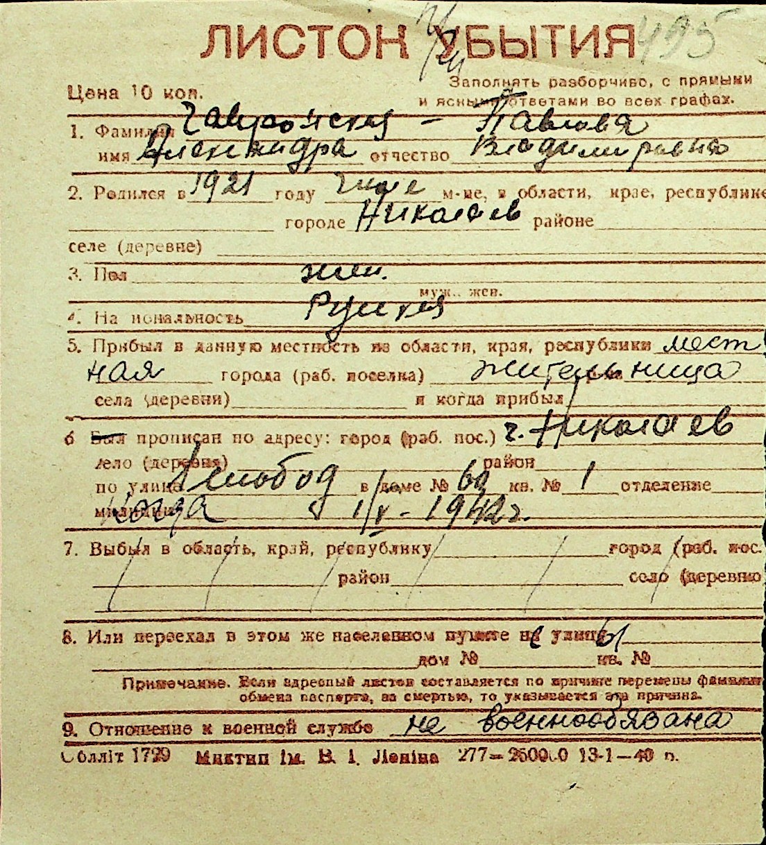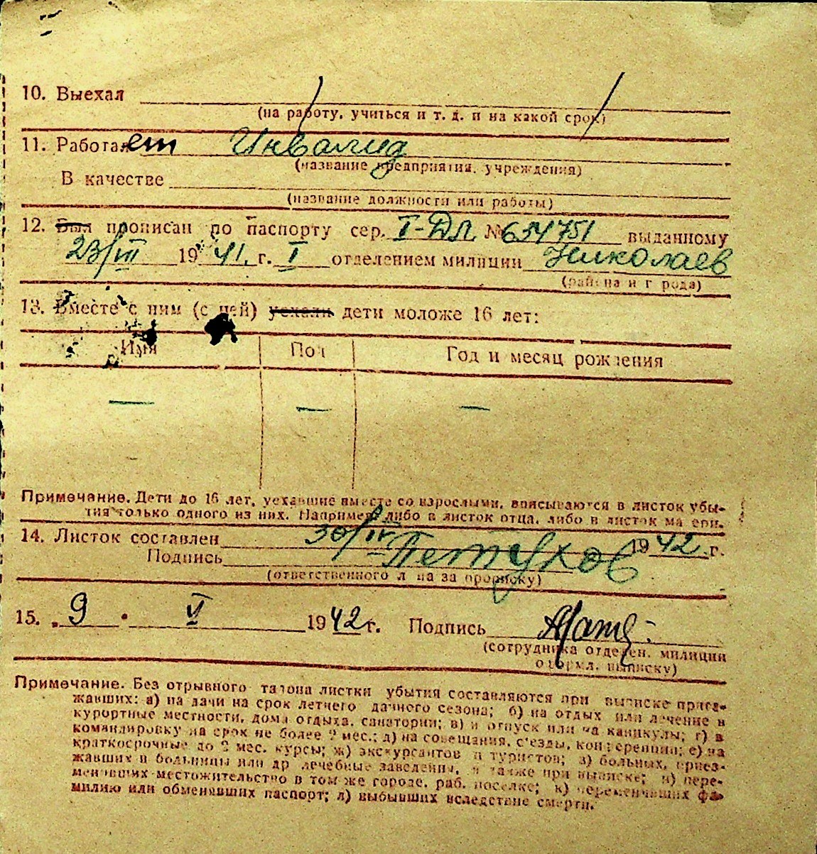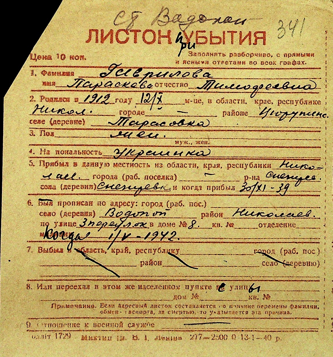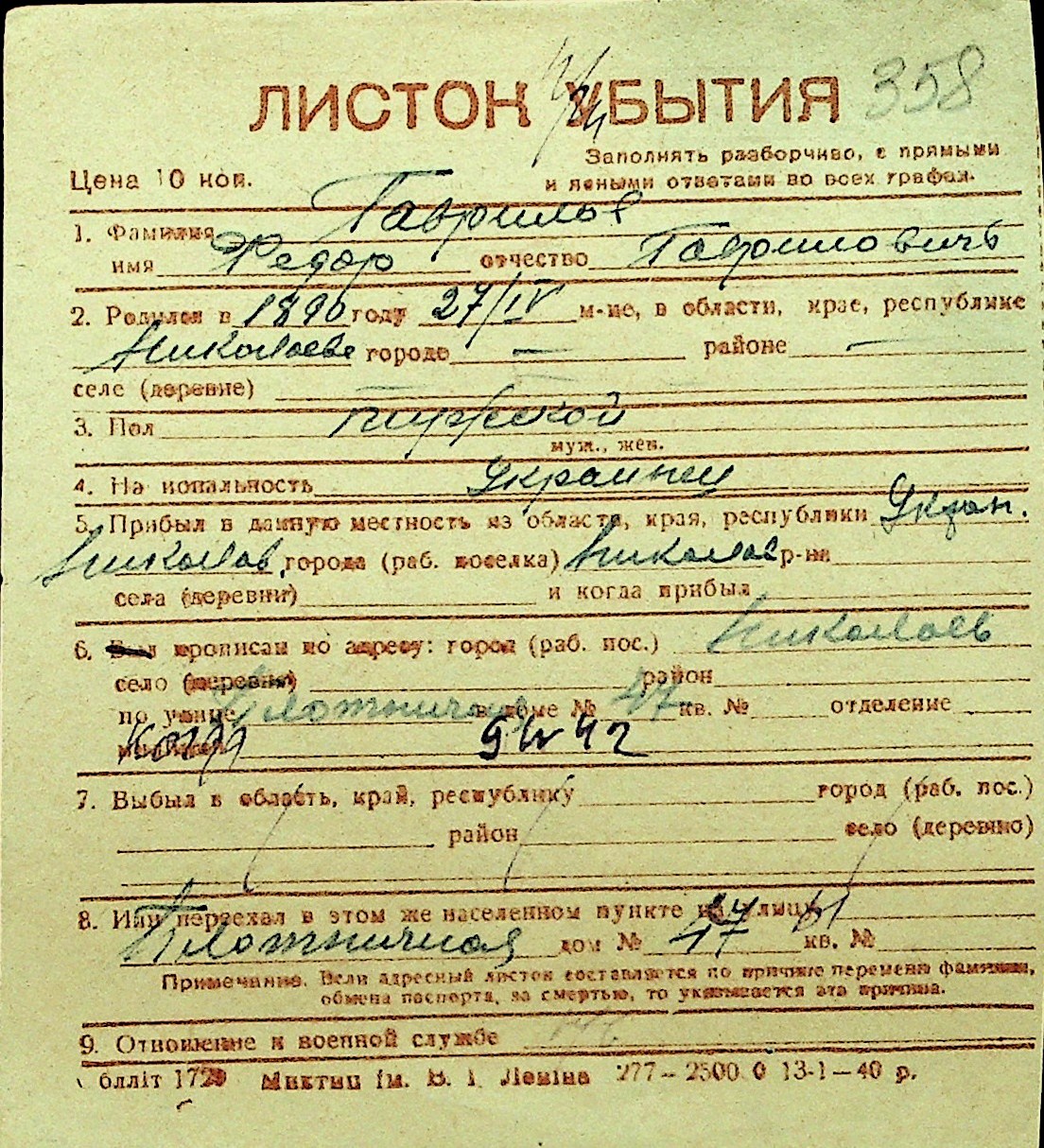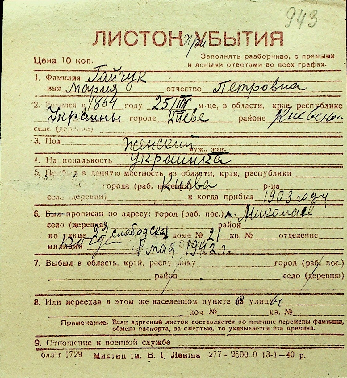 • • Перелік карток до фонду № Н-1016