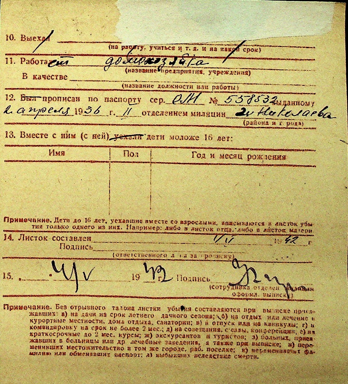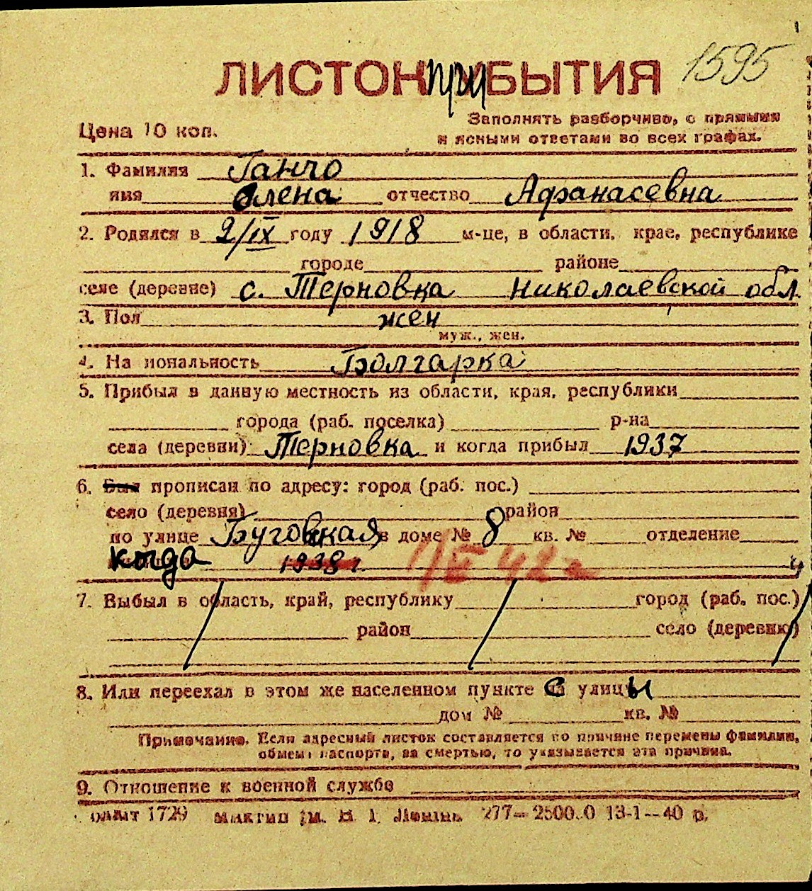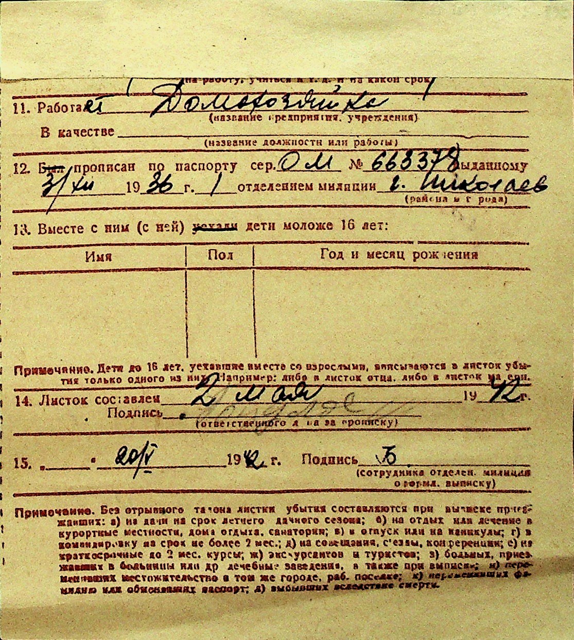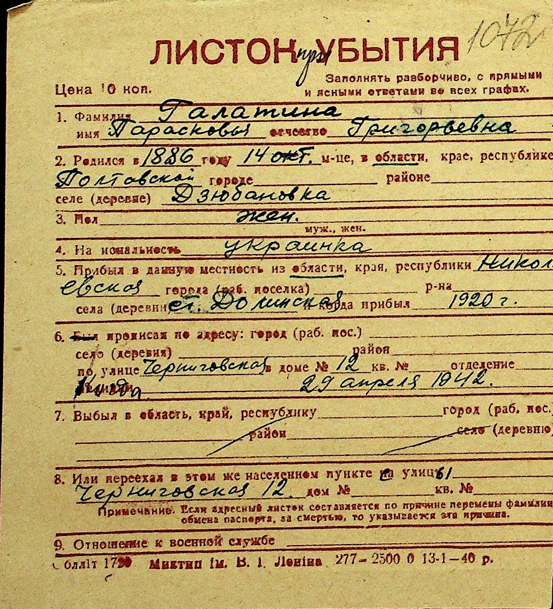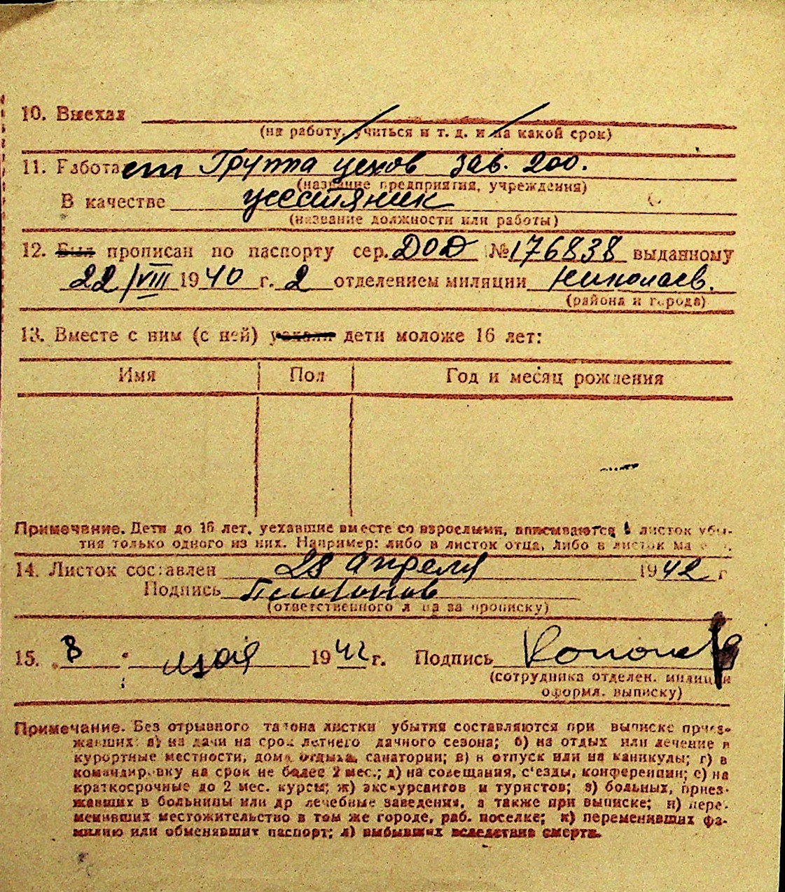 • • Перелік карток до фонду № Н-1016