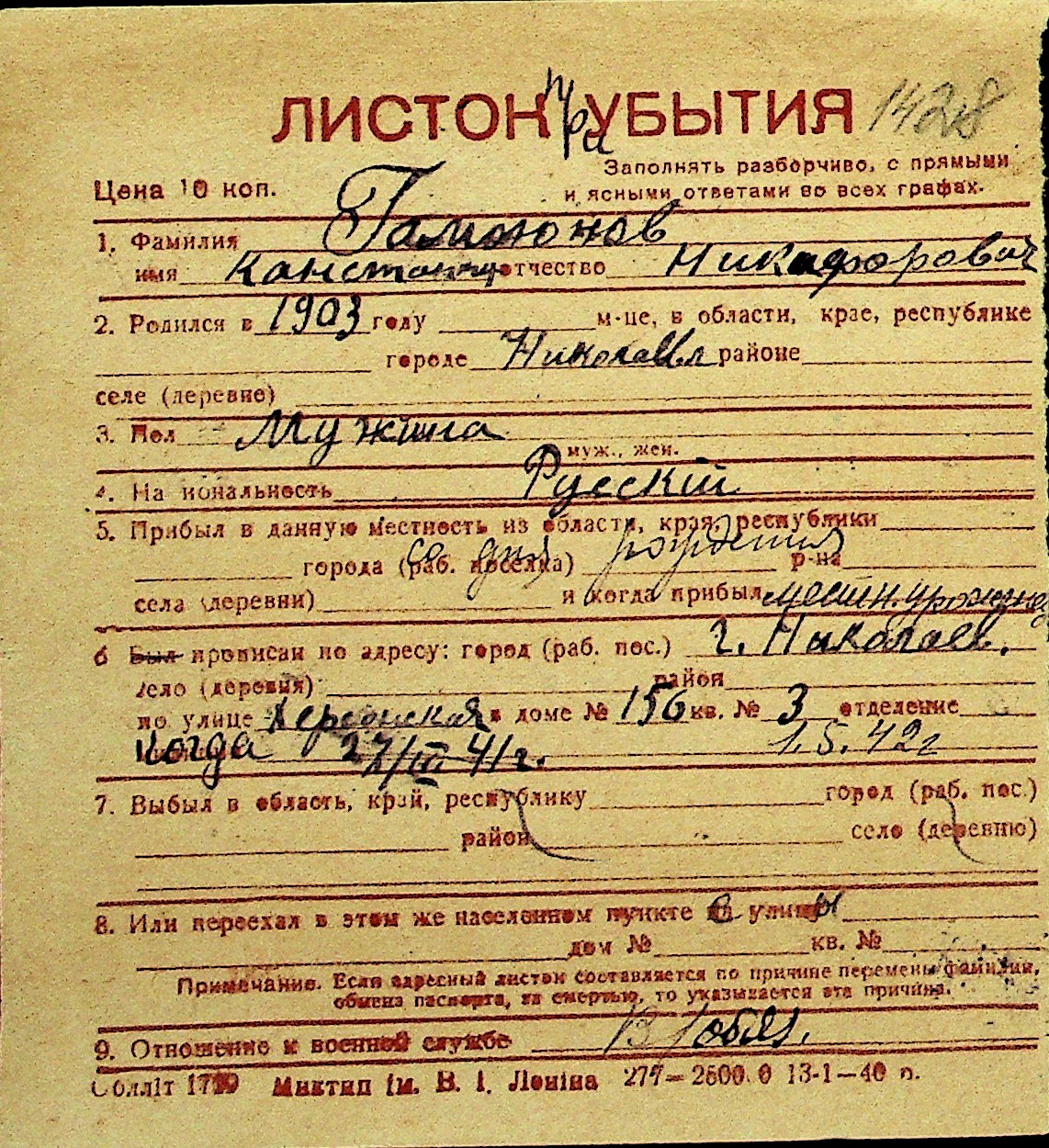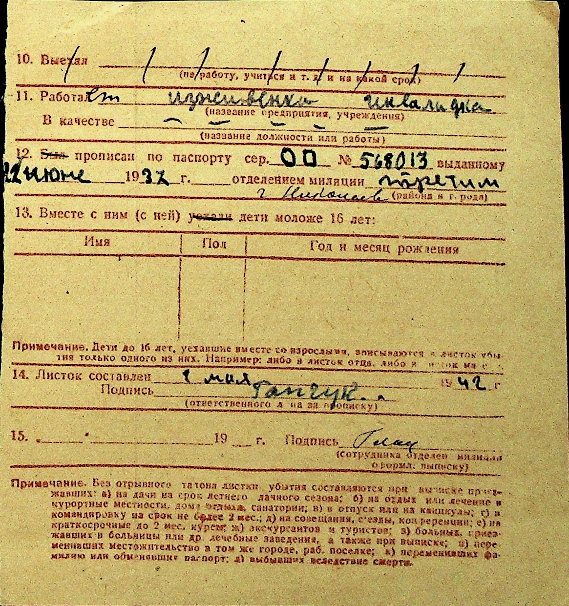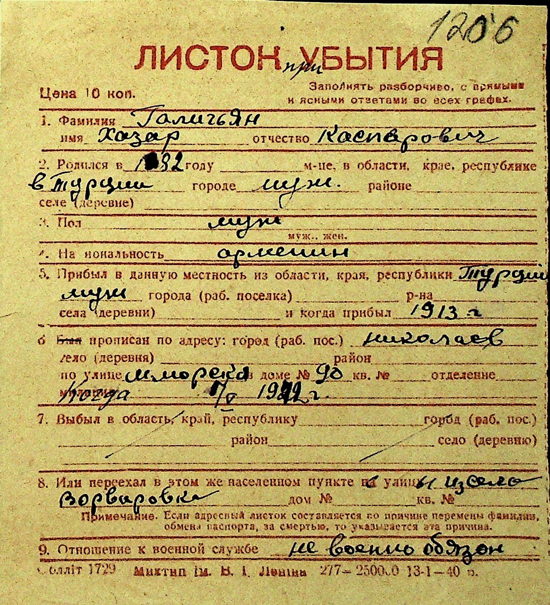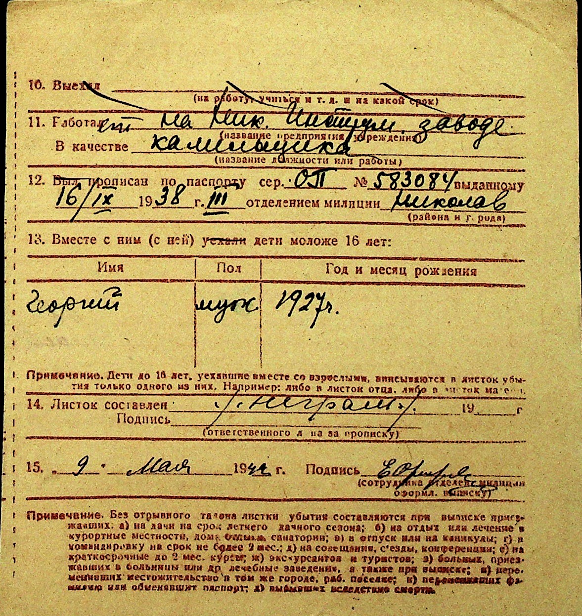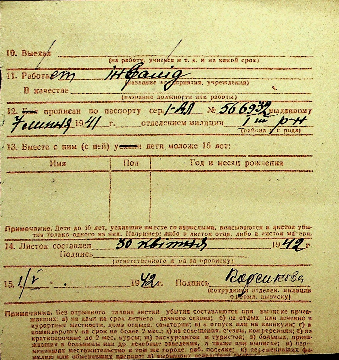 • • Перелік карток до фонду № Н-1016