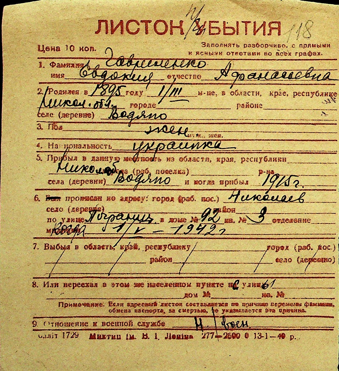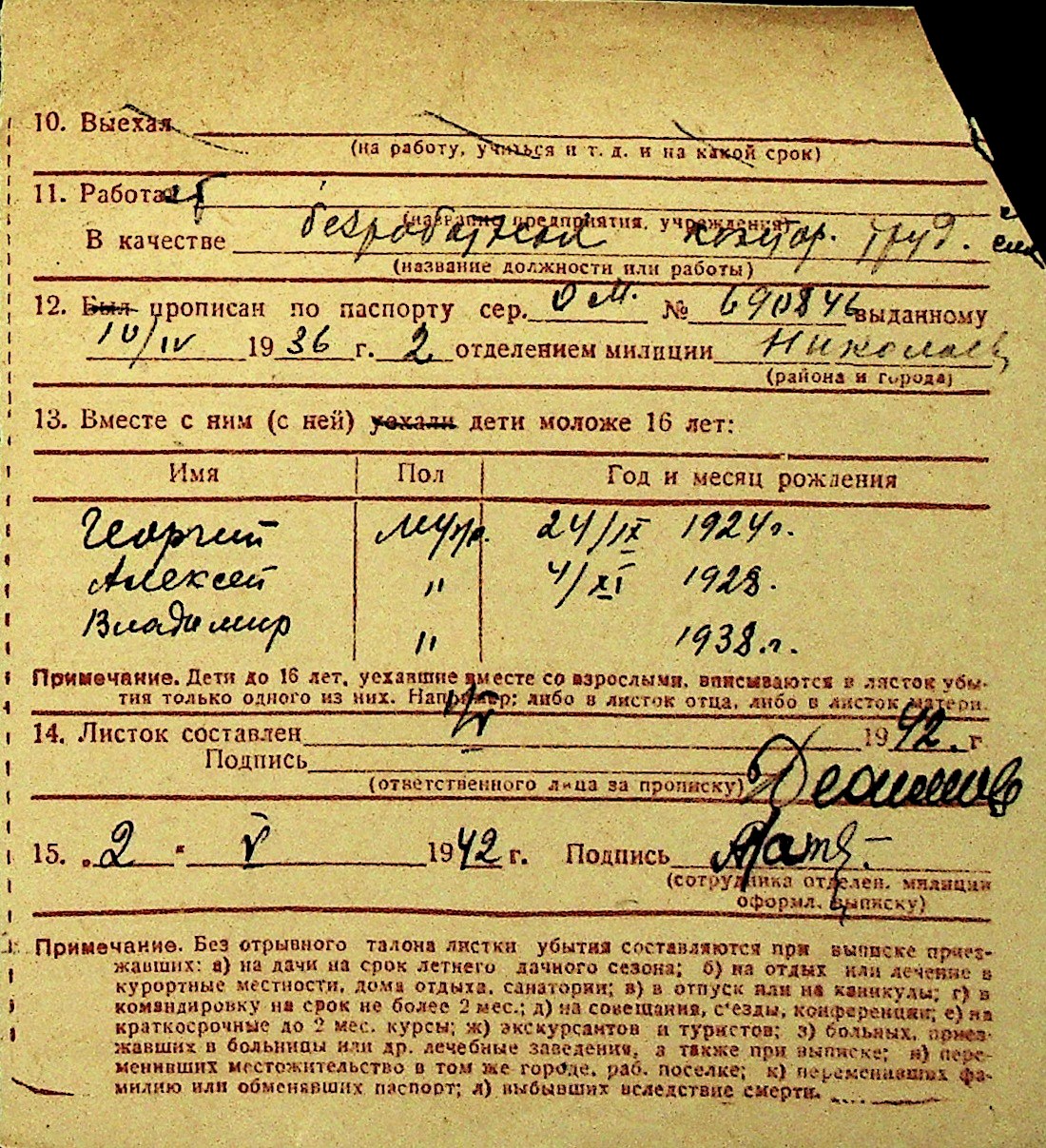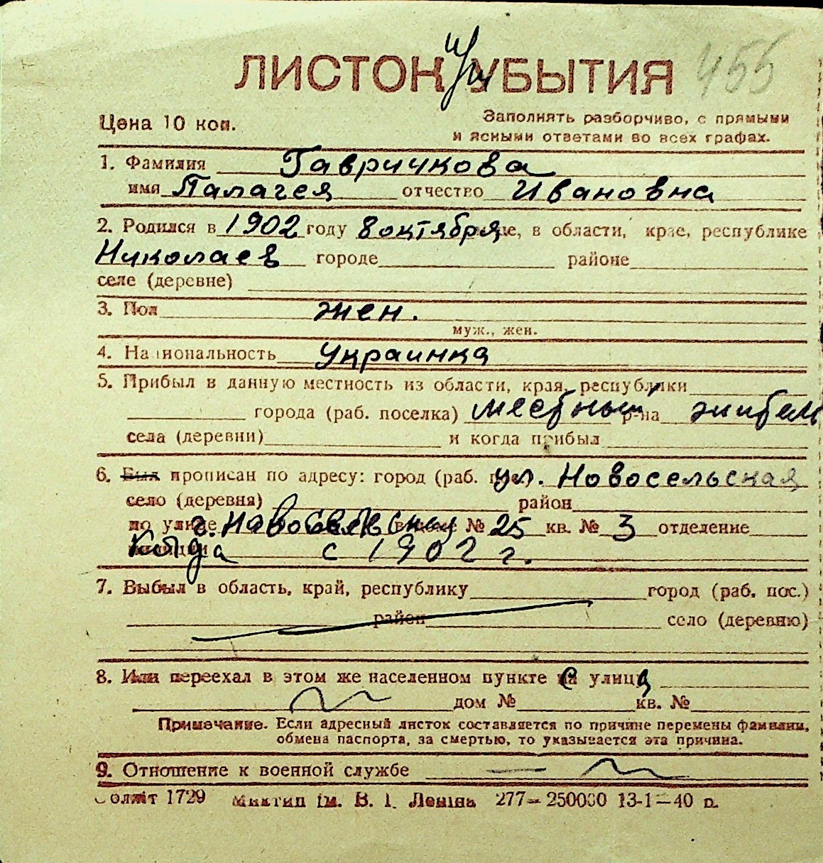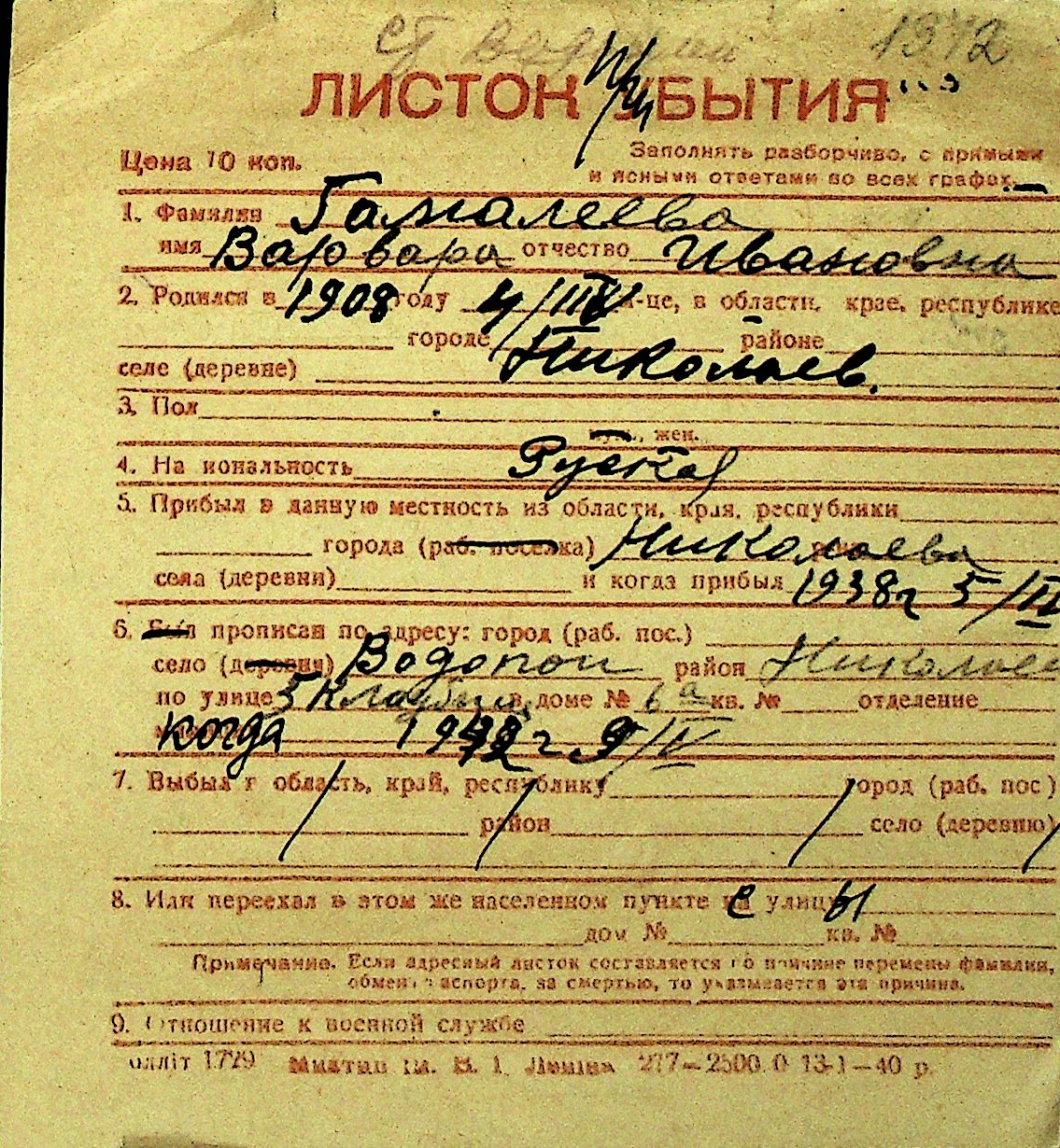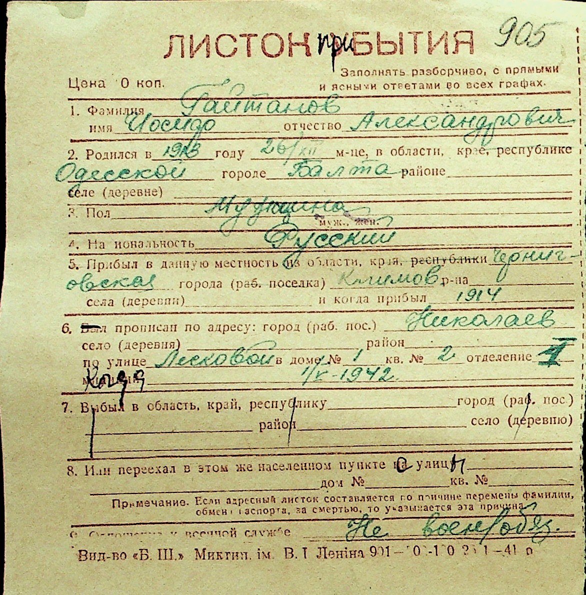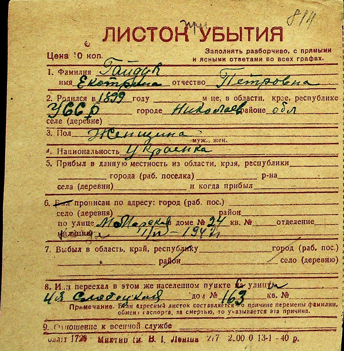 • • Перелік карток до фонду № Н-1016