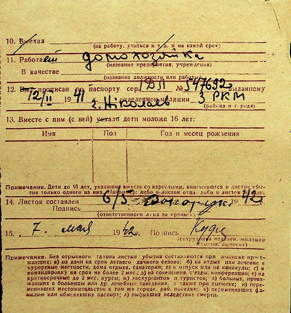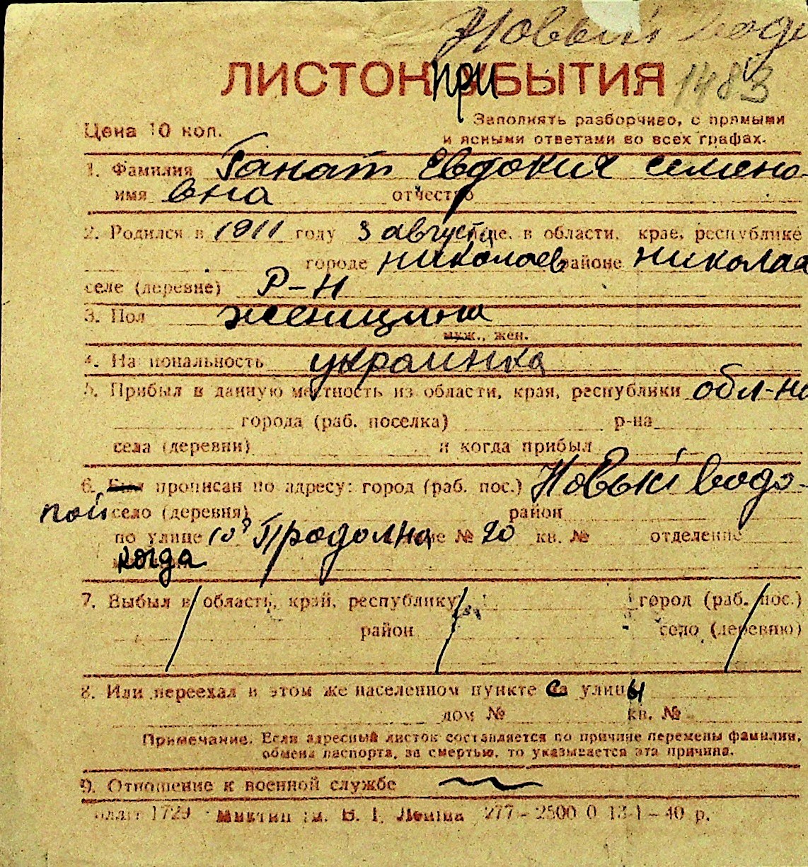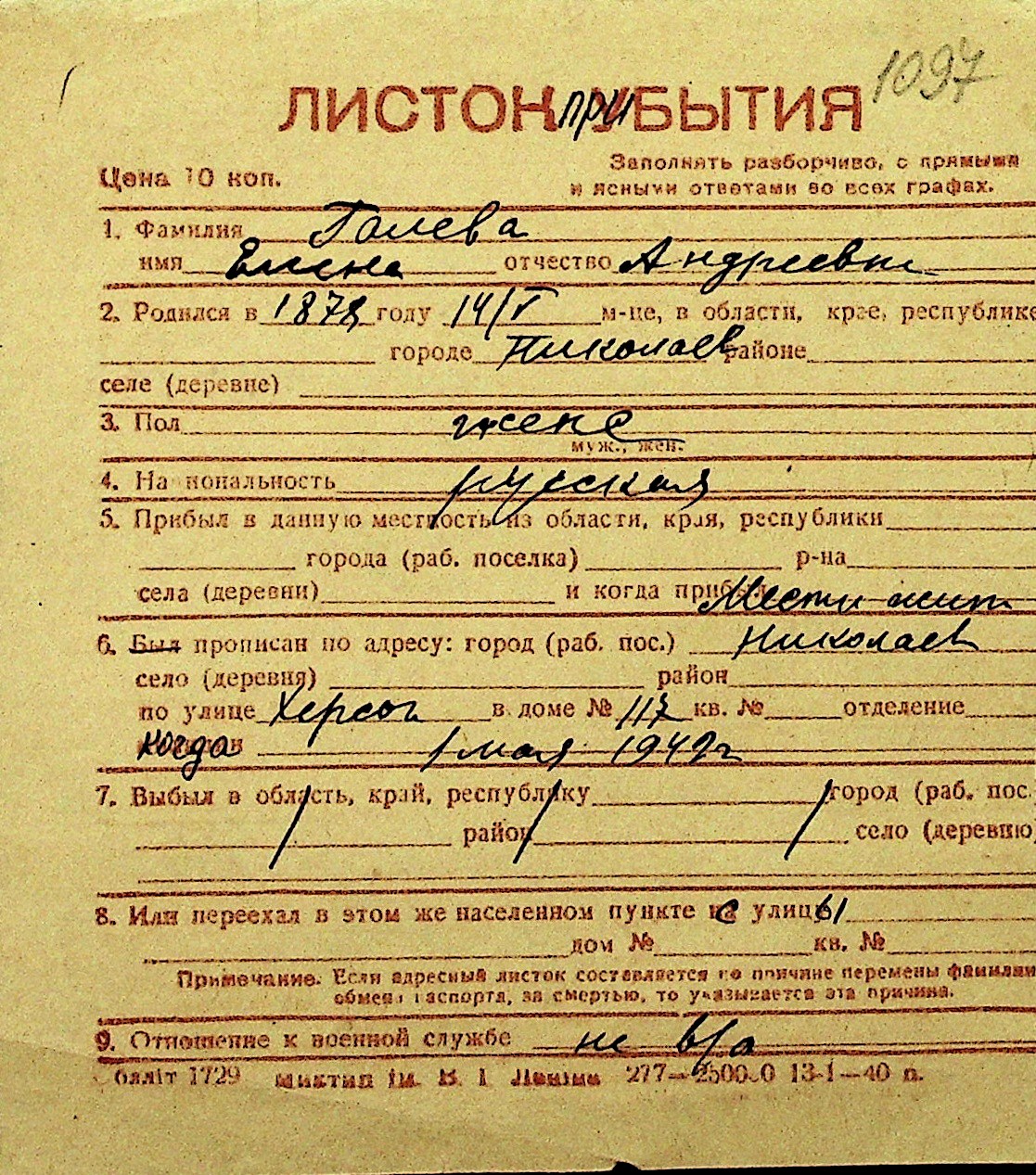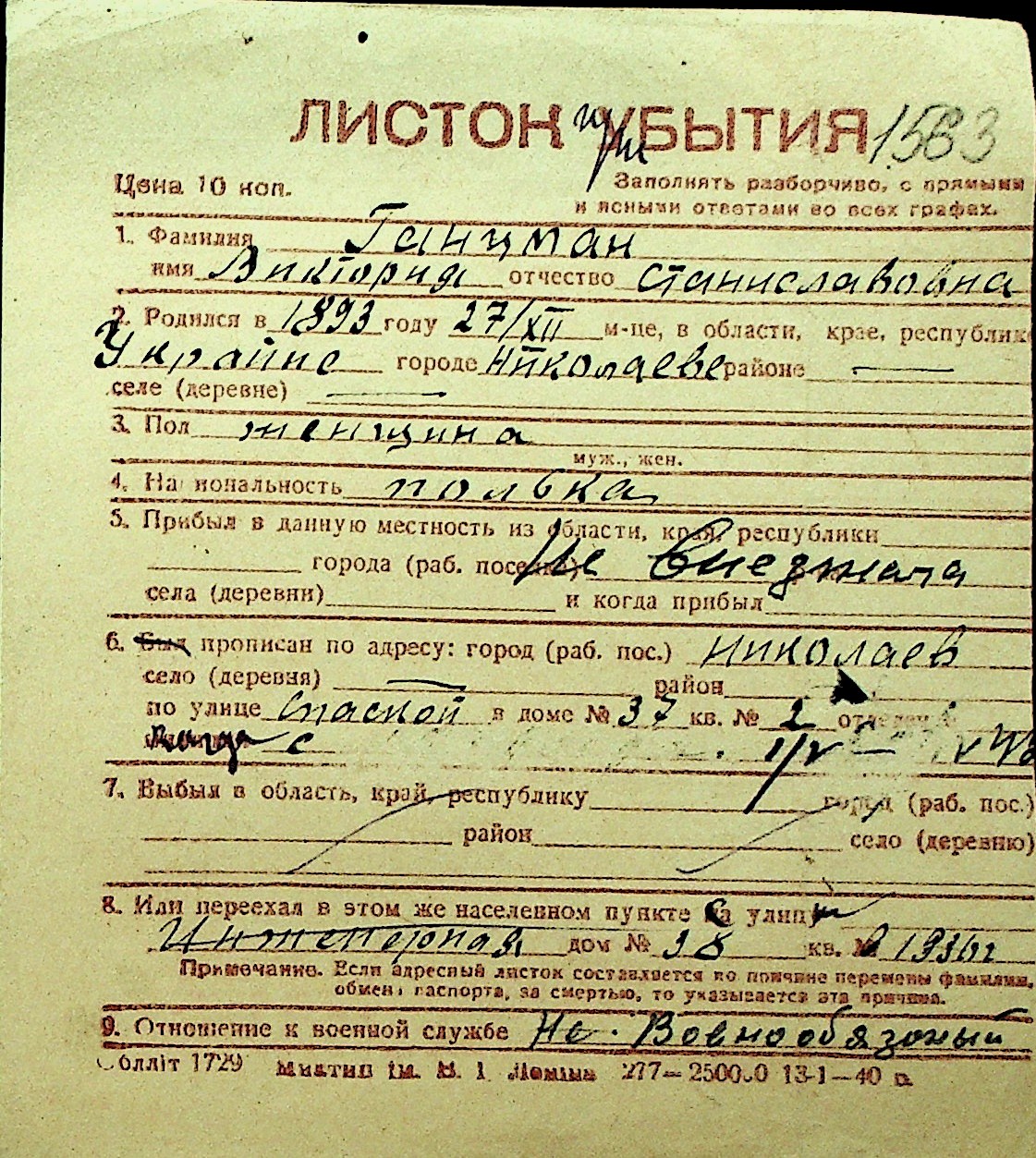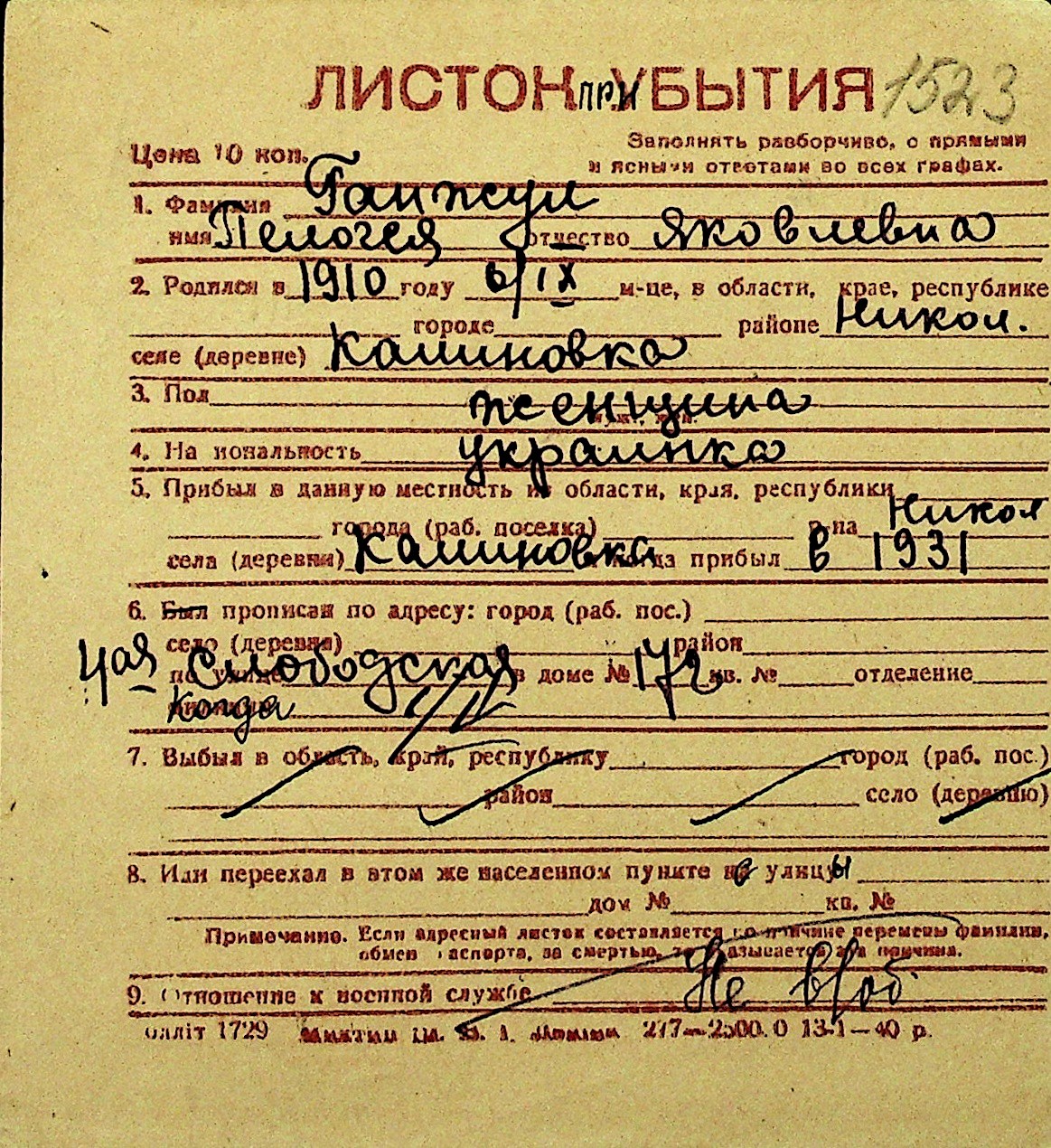 • • Перелік карток до фонду № Н-1016
