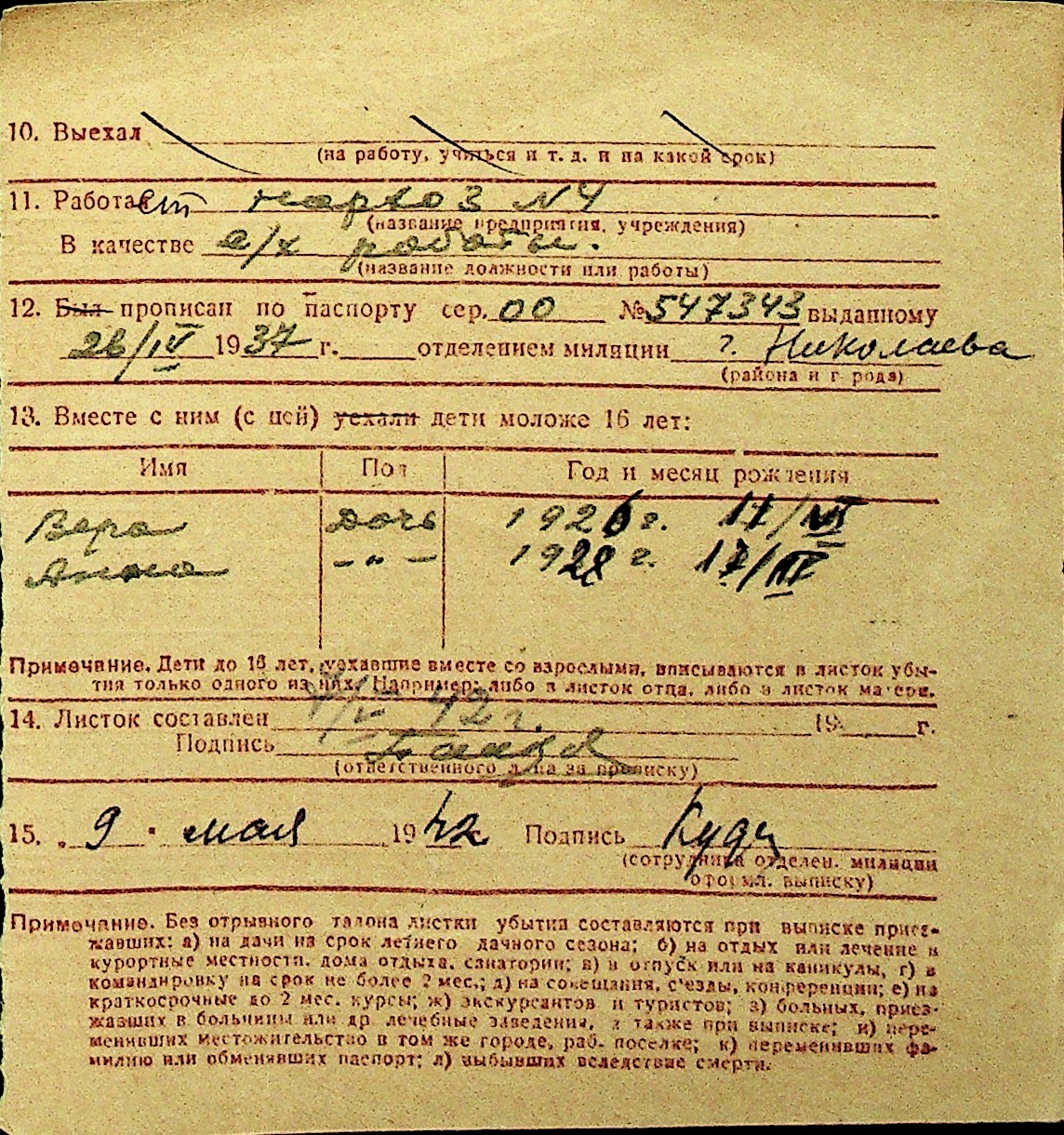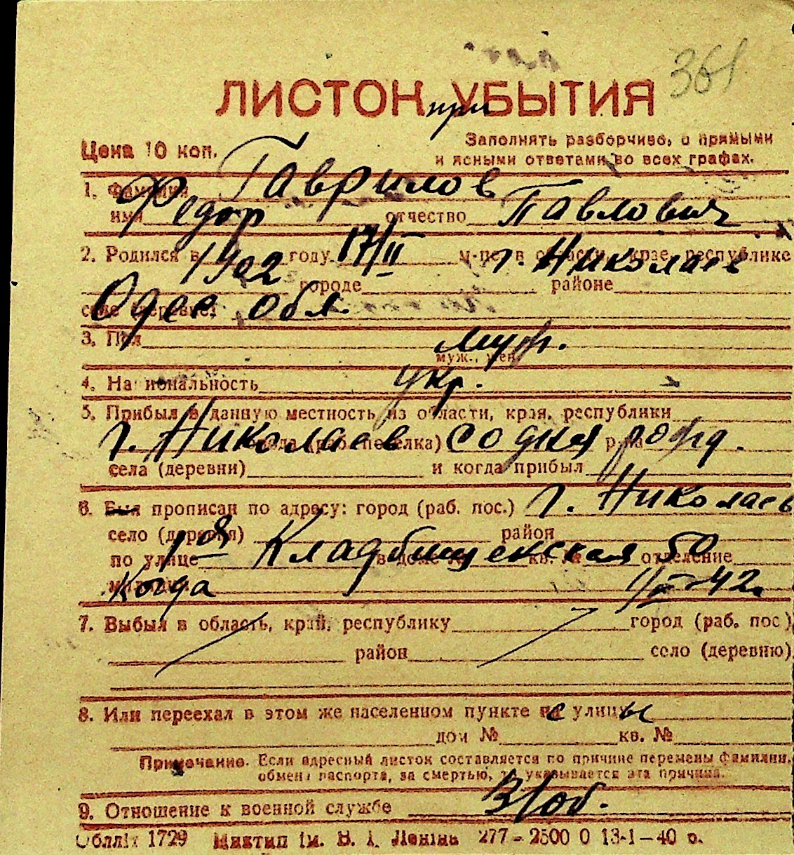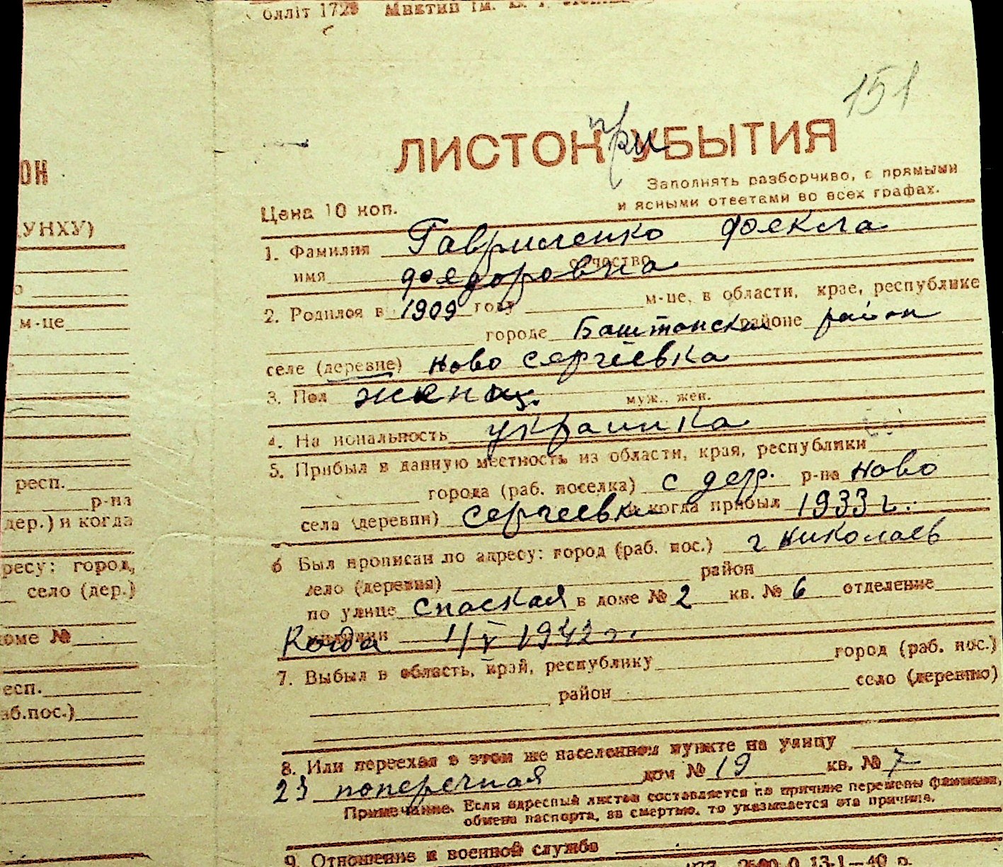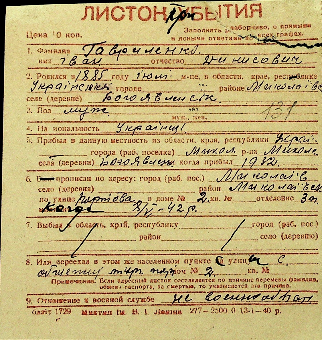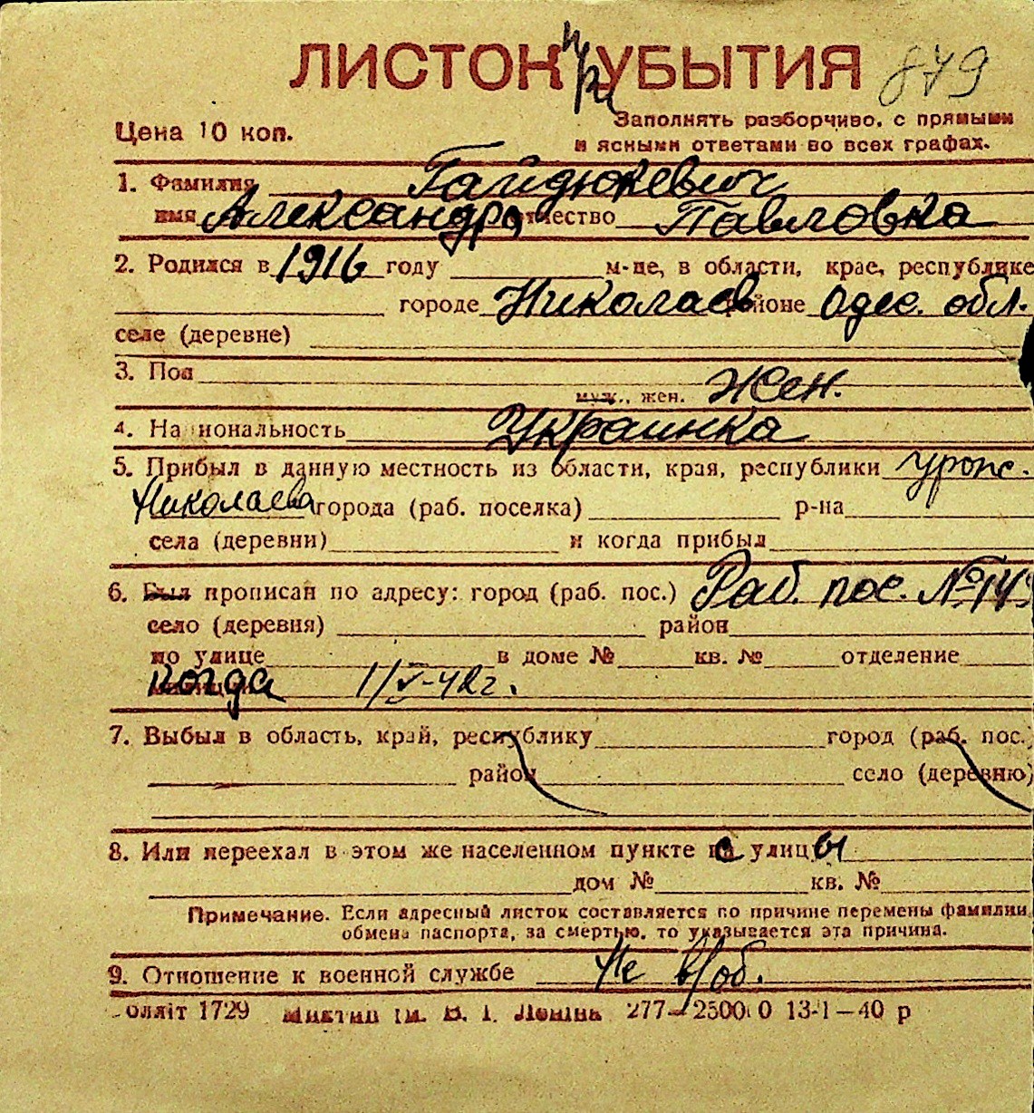 • • Перелік карток до фонду № Н-1016
