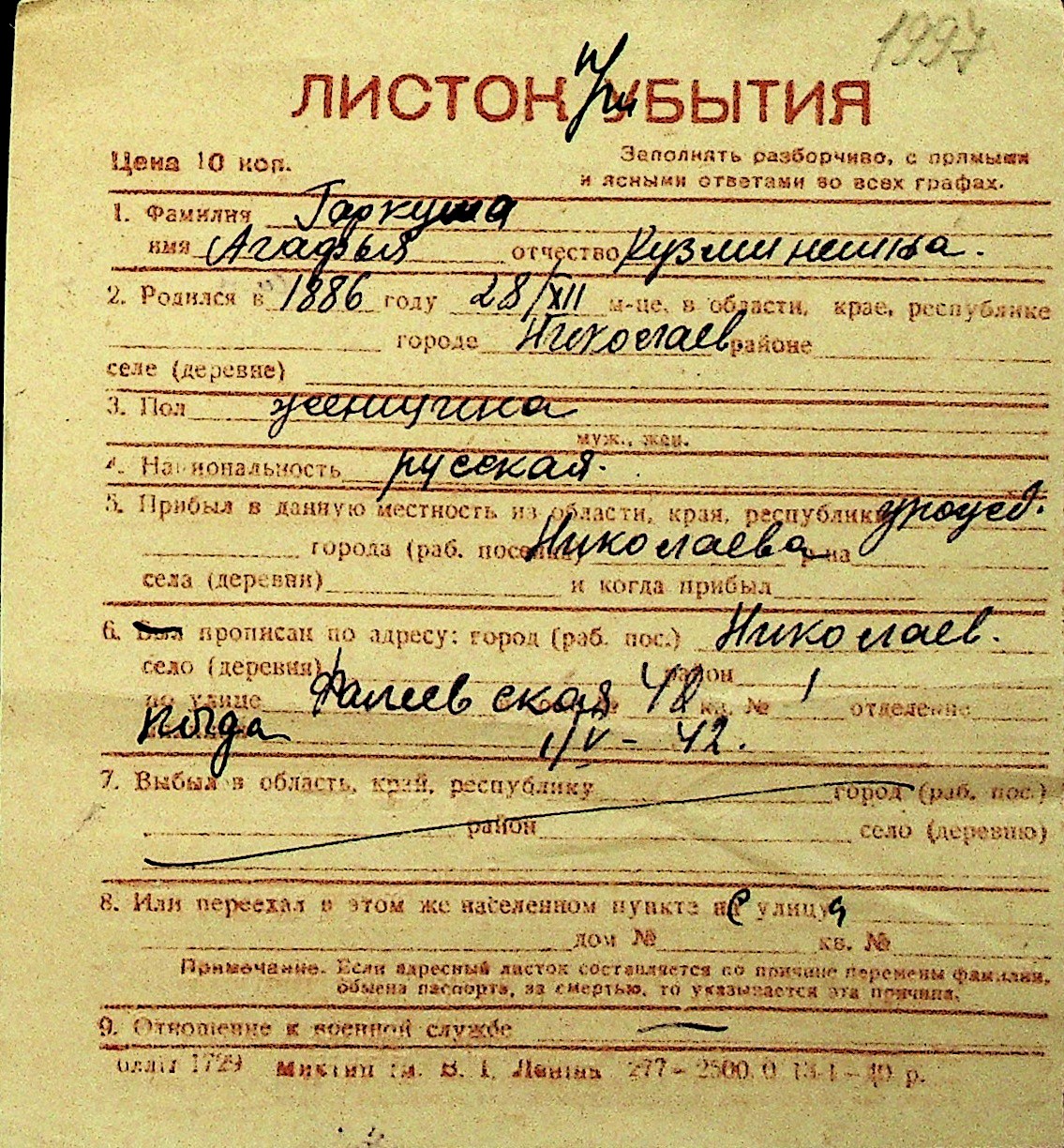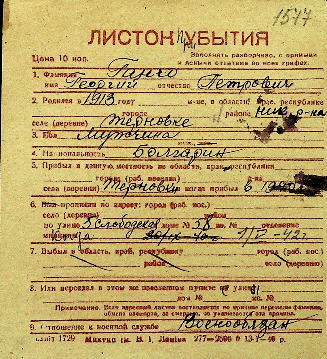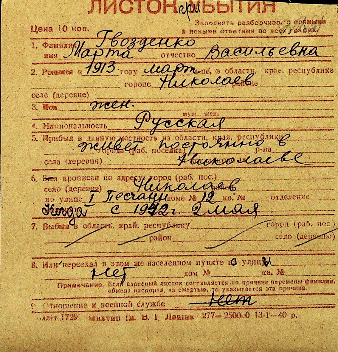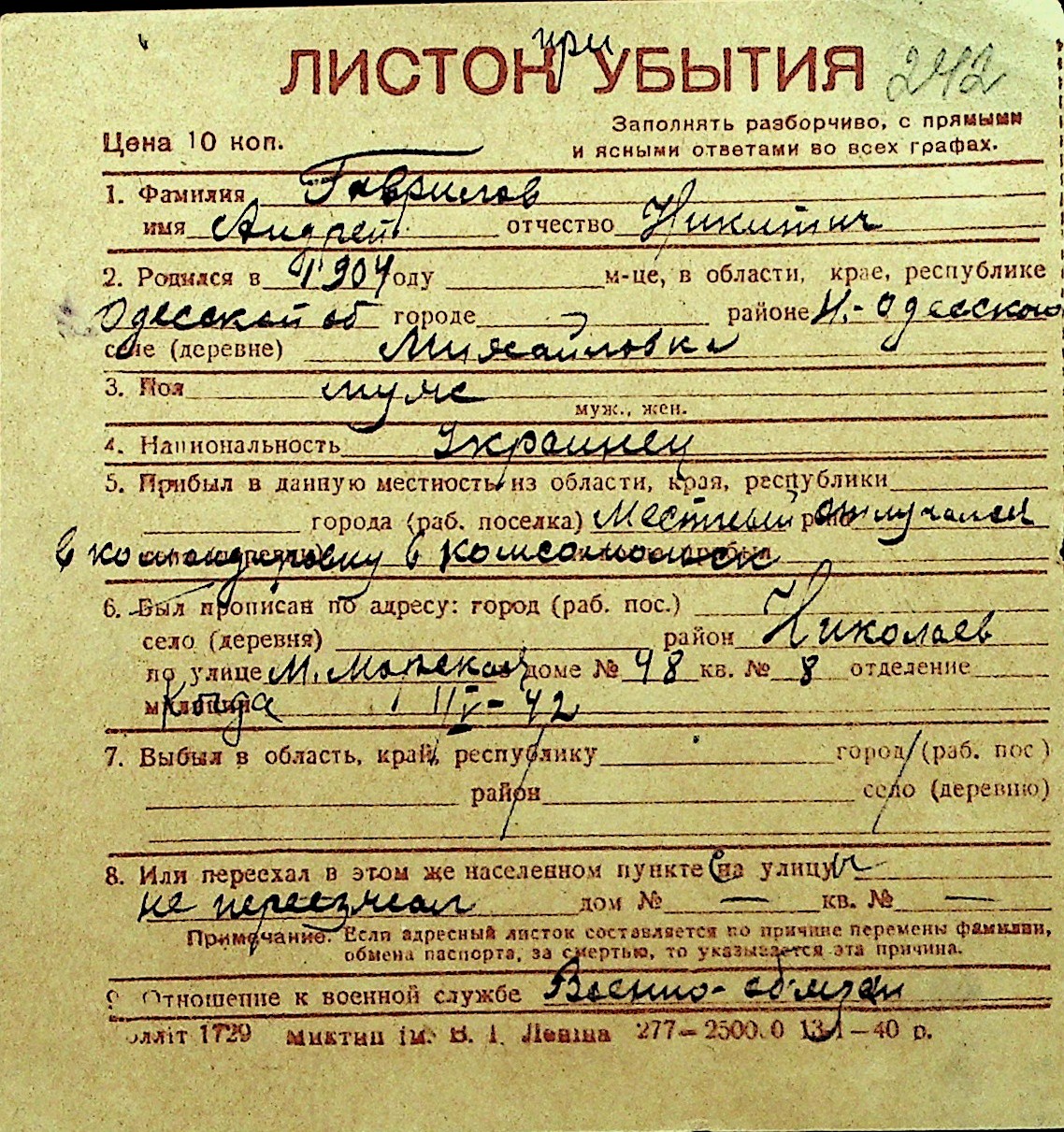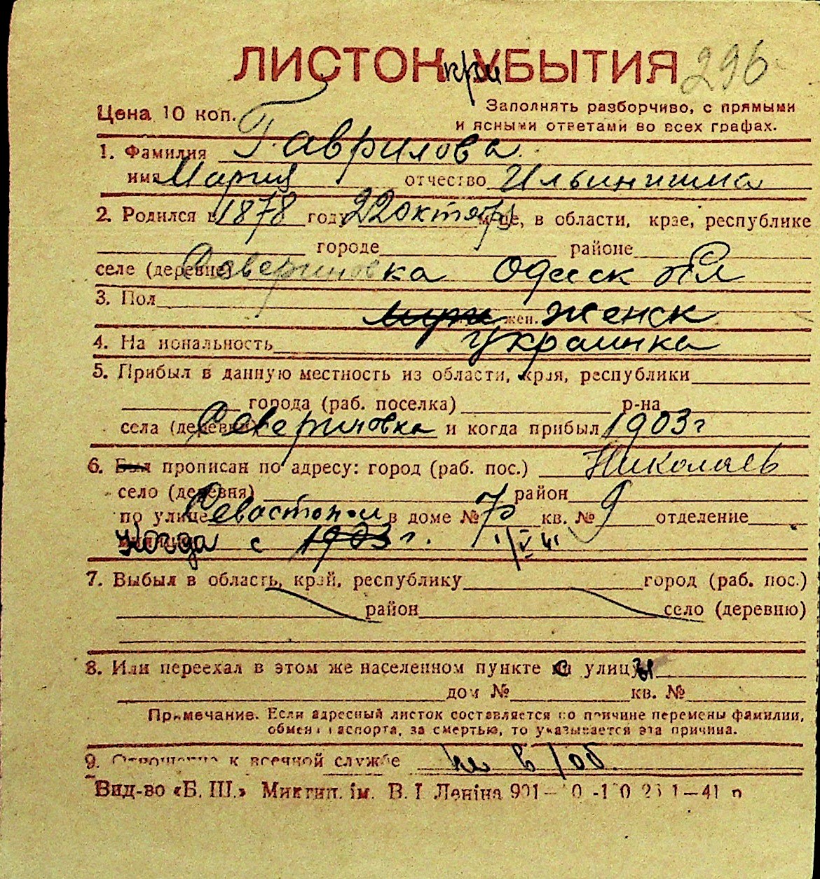 • • Перелік карток до фонду № Н-1016