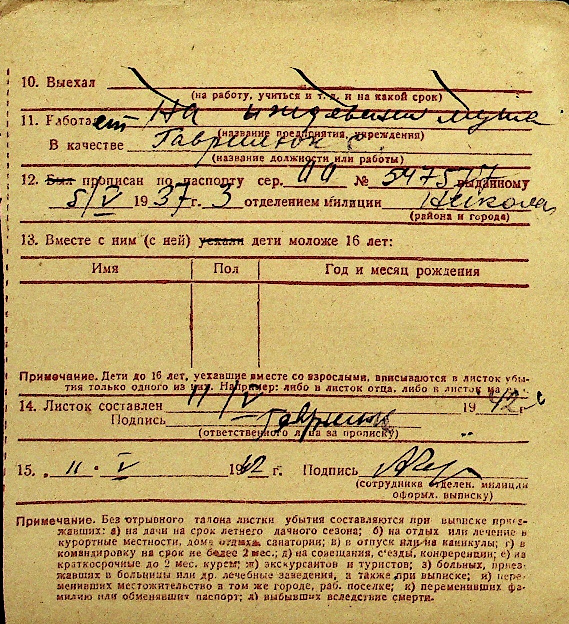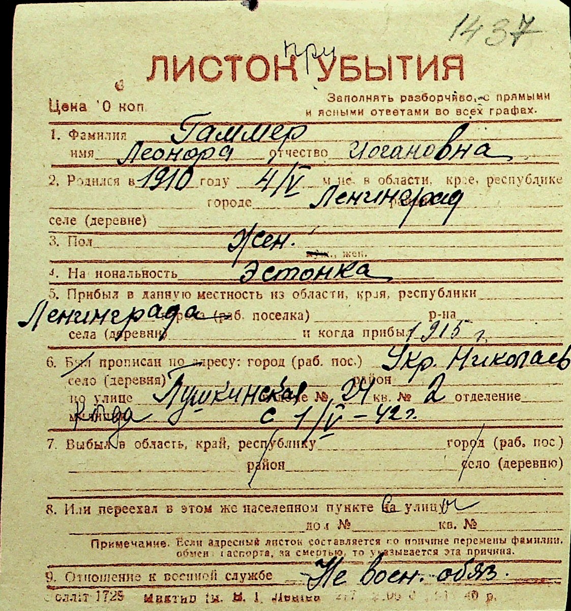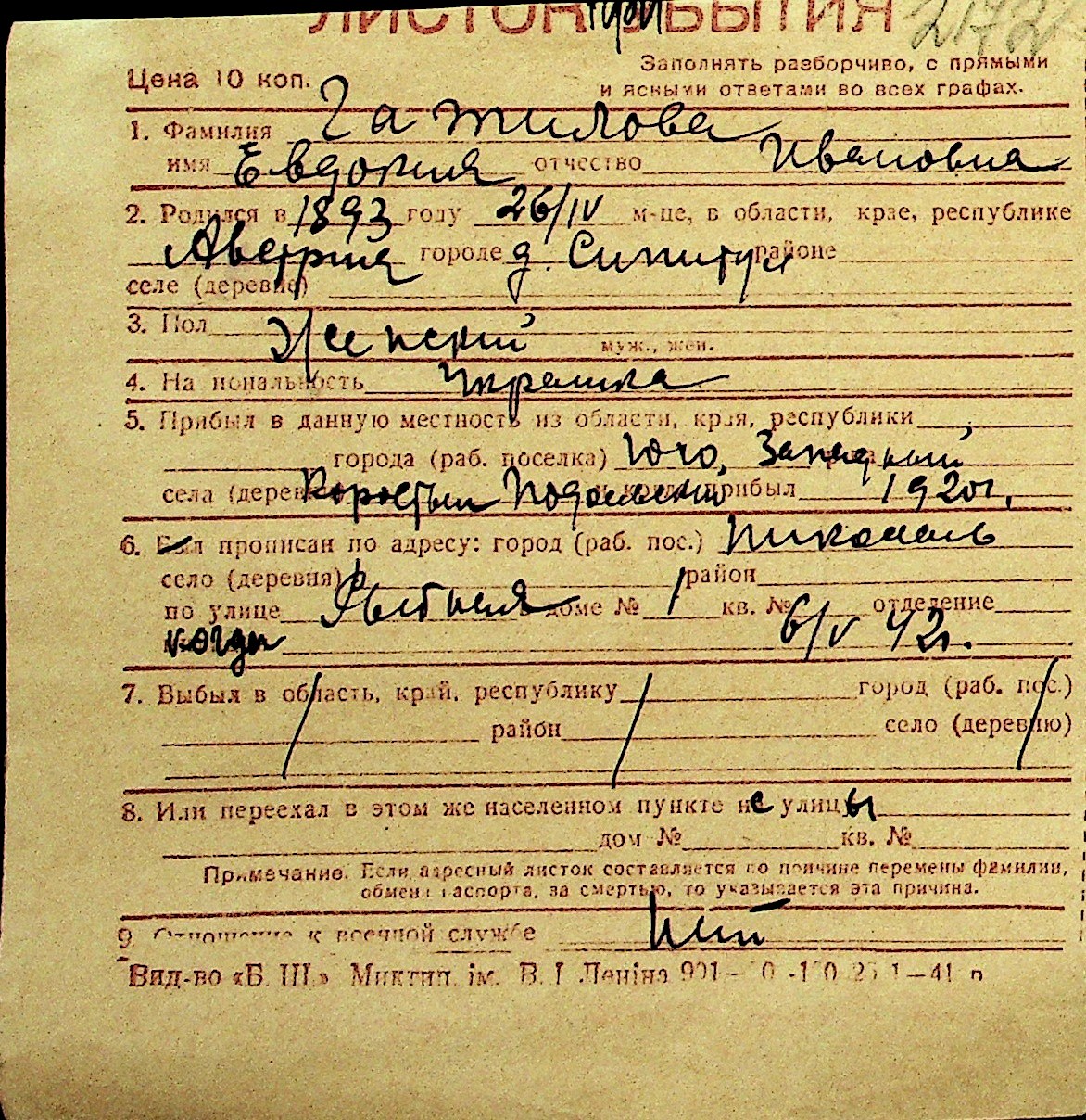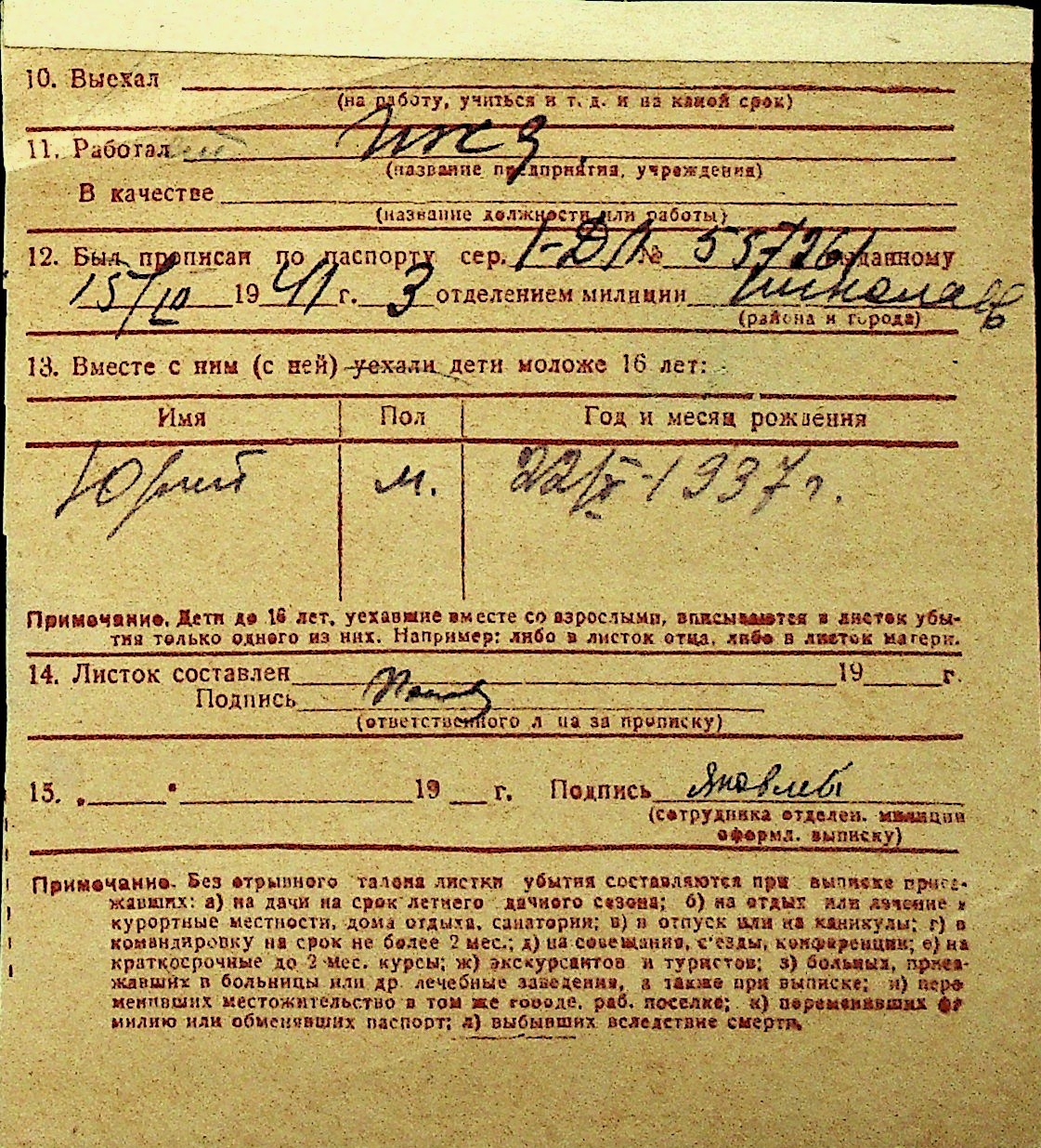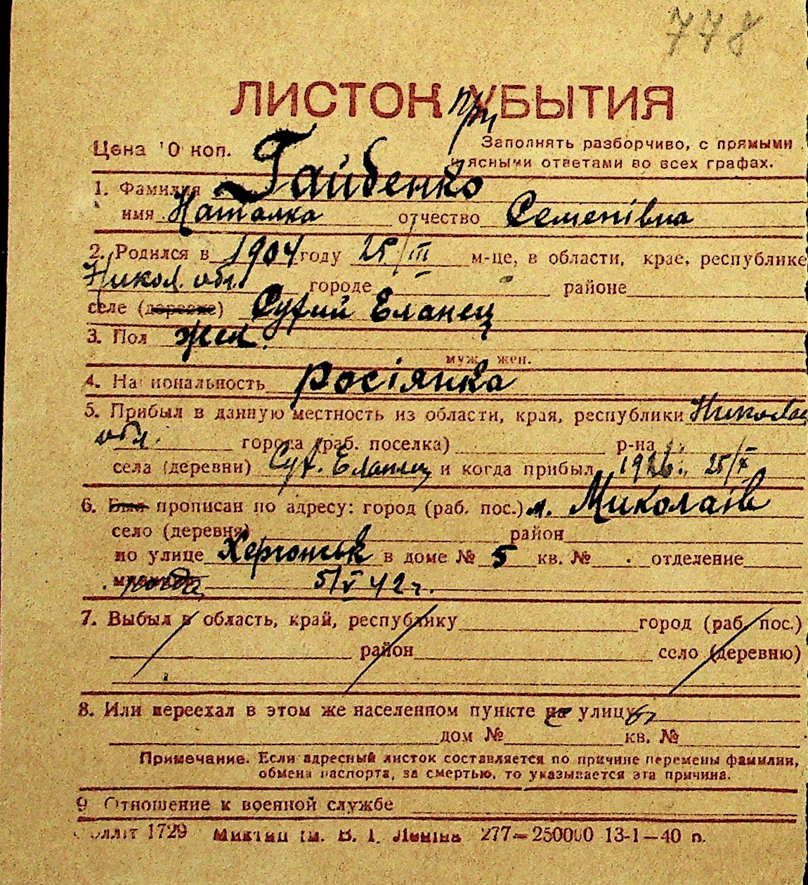 • • Перелік карток до фонду № Н-1016