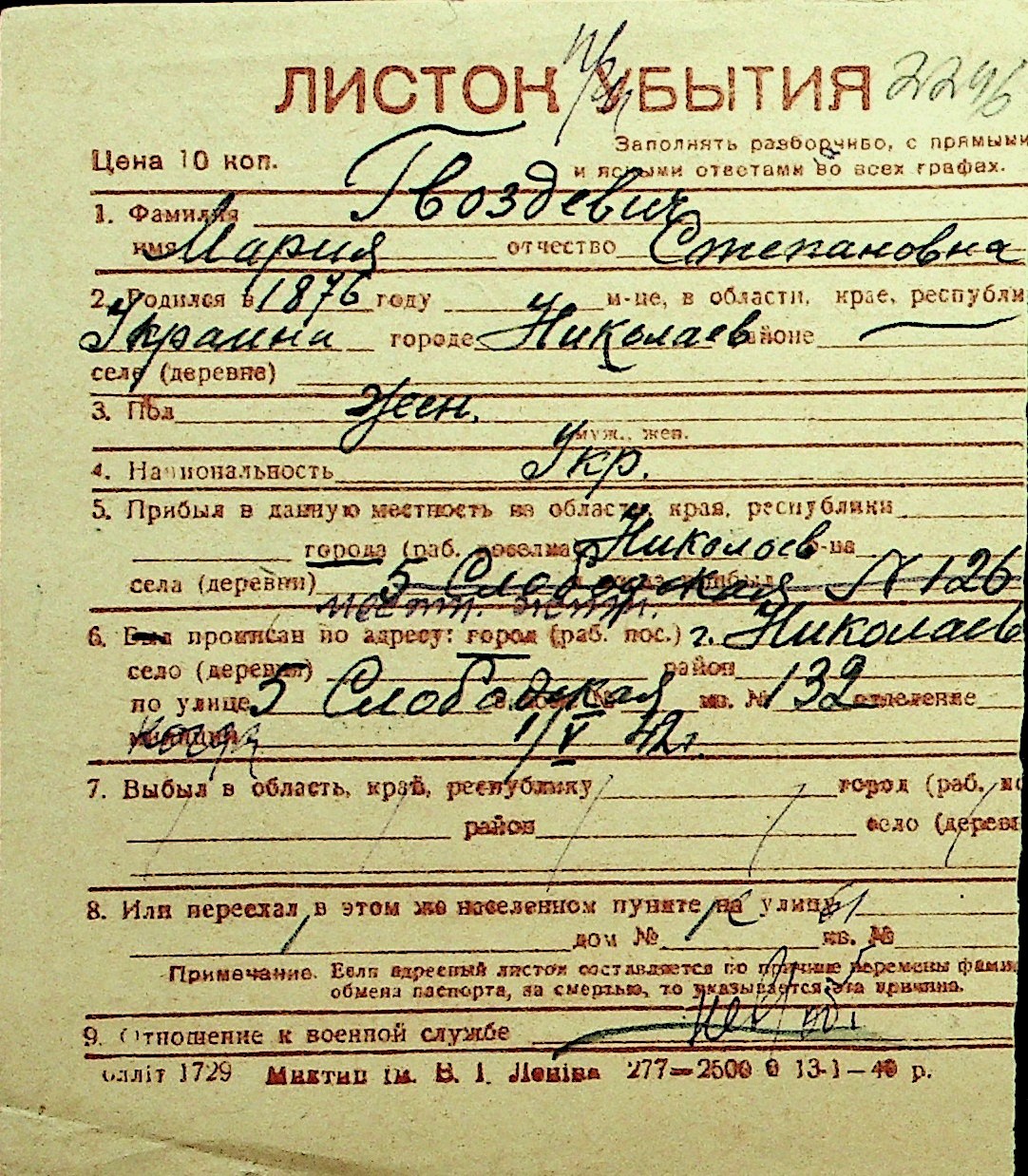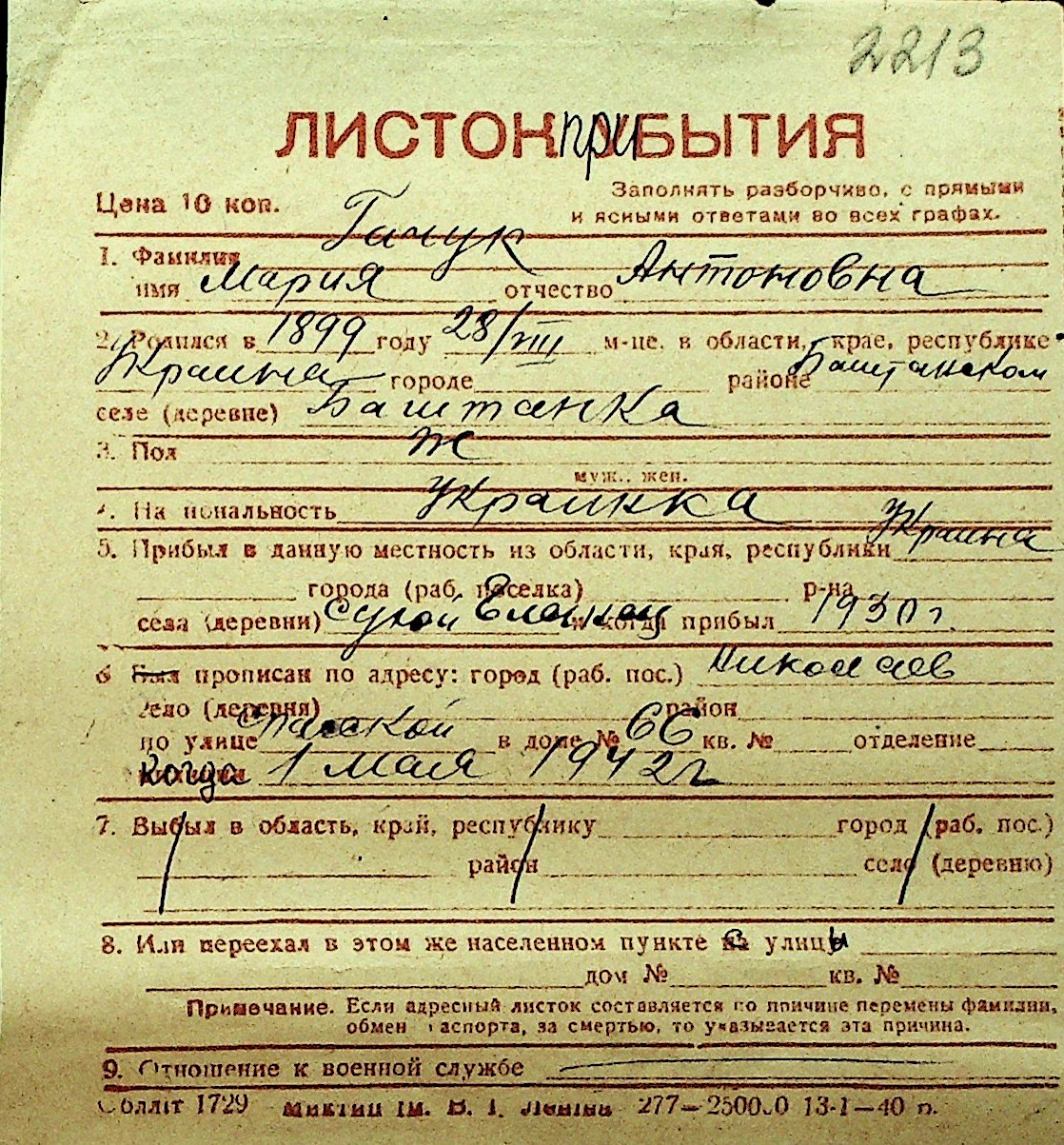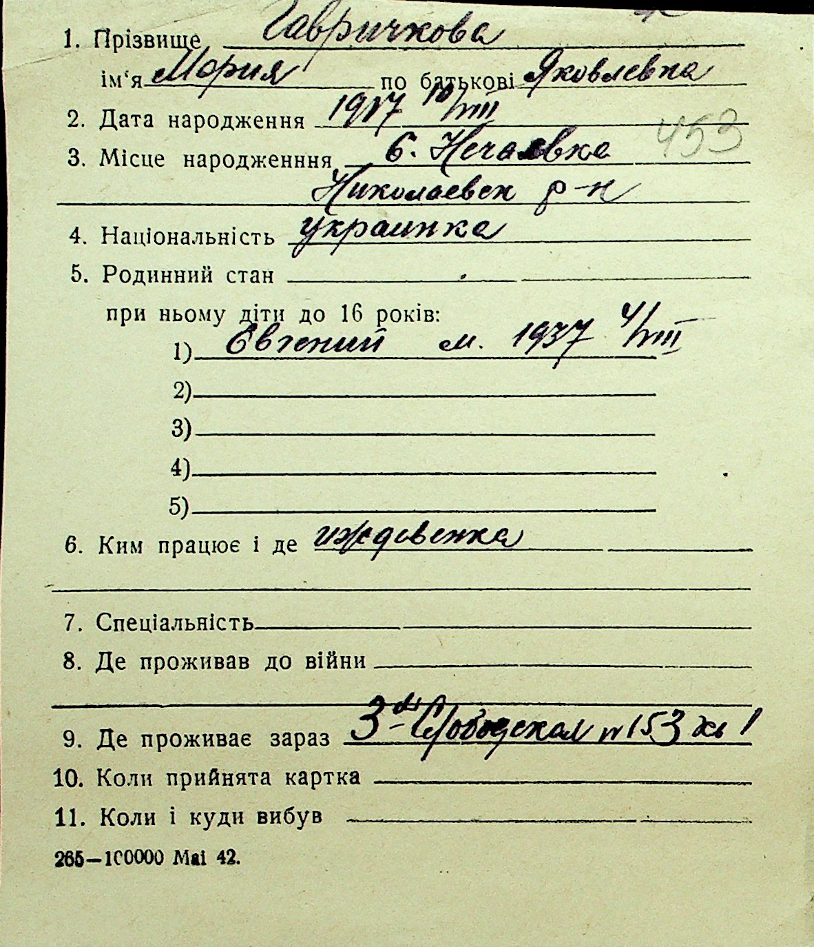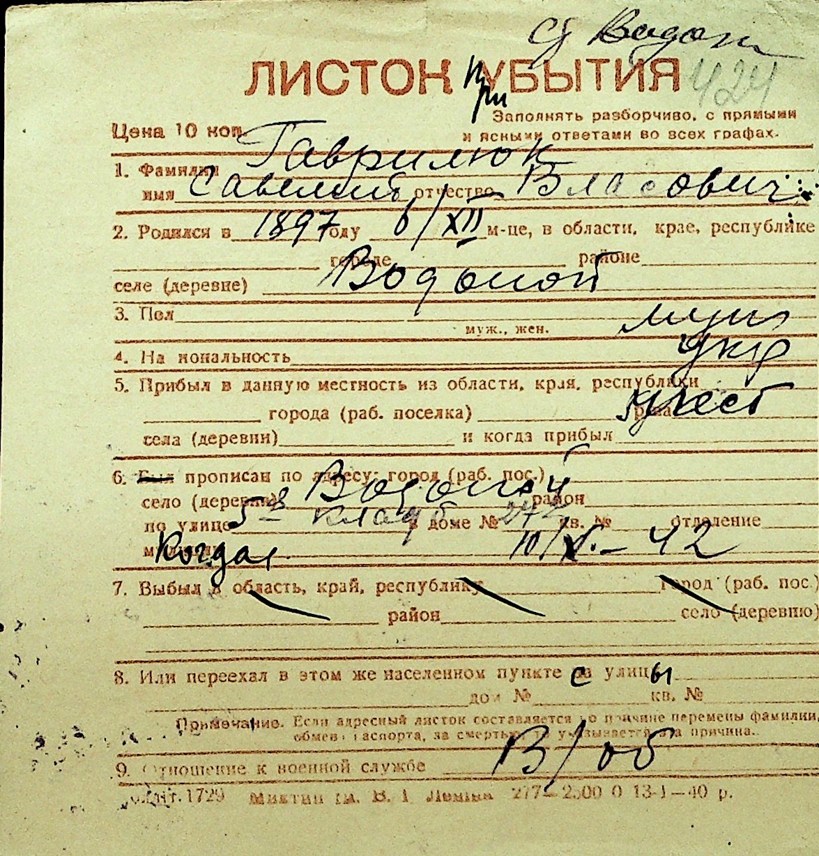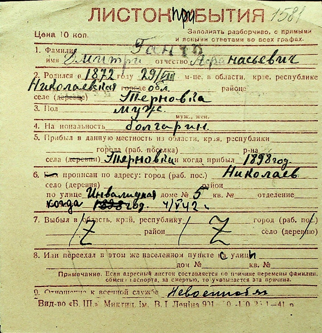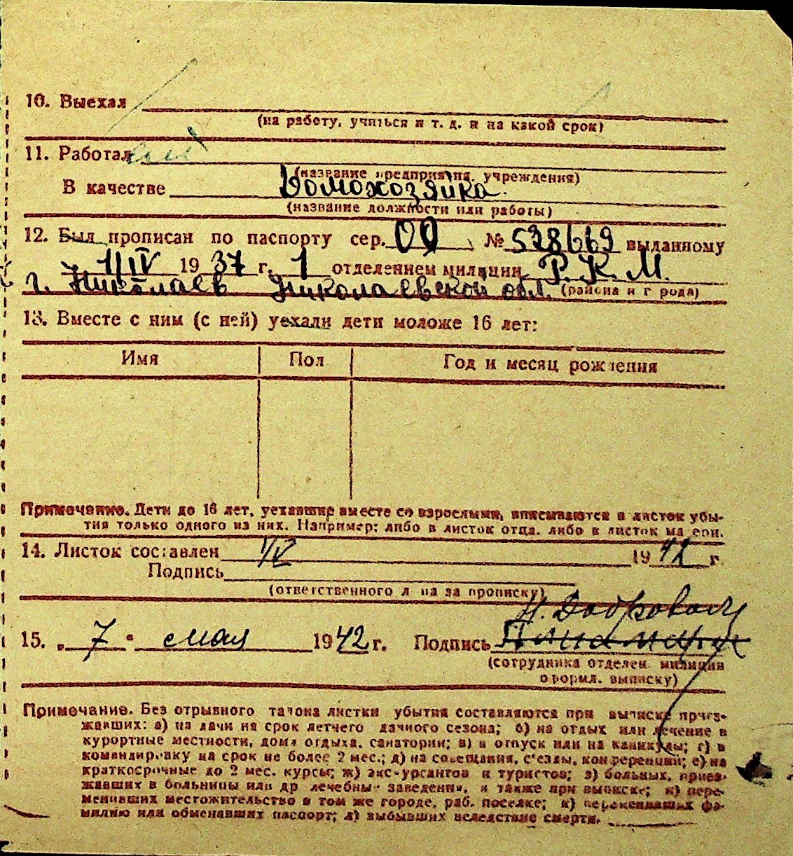 • • Перелік карток до фонду № Н-1016