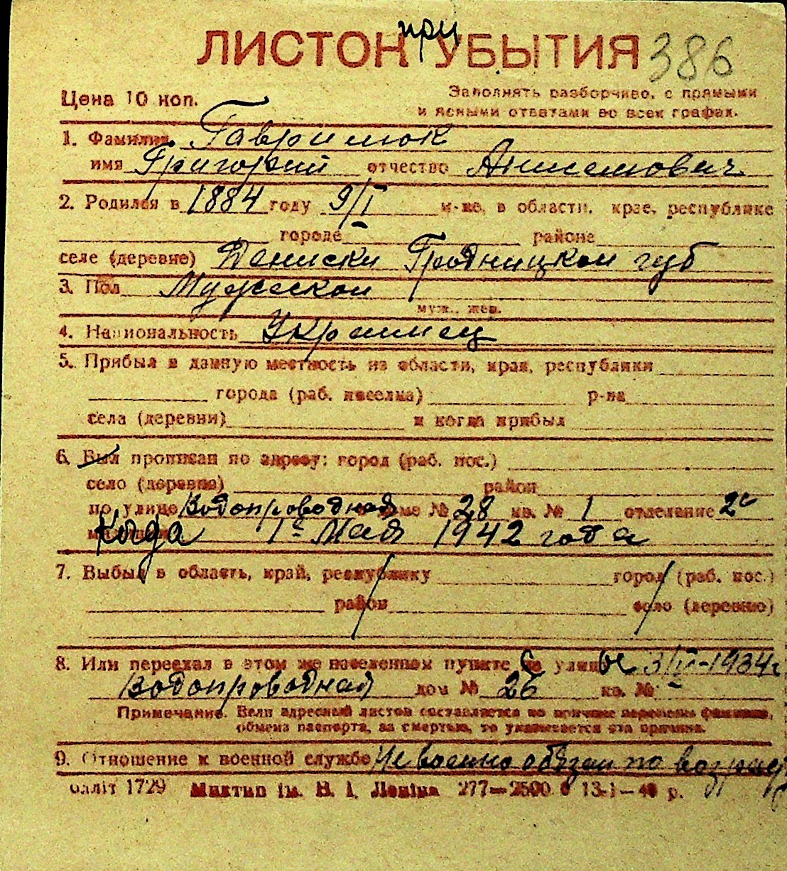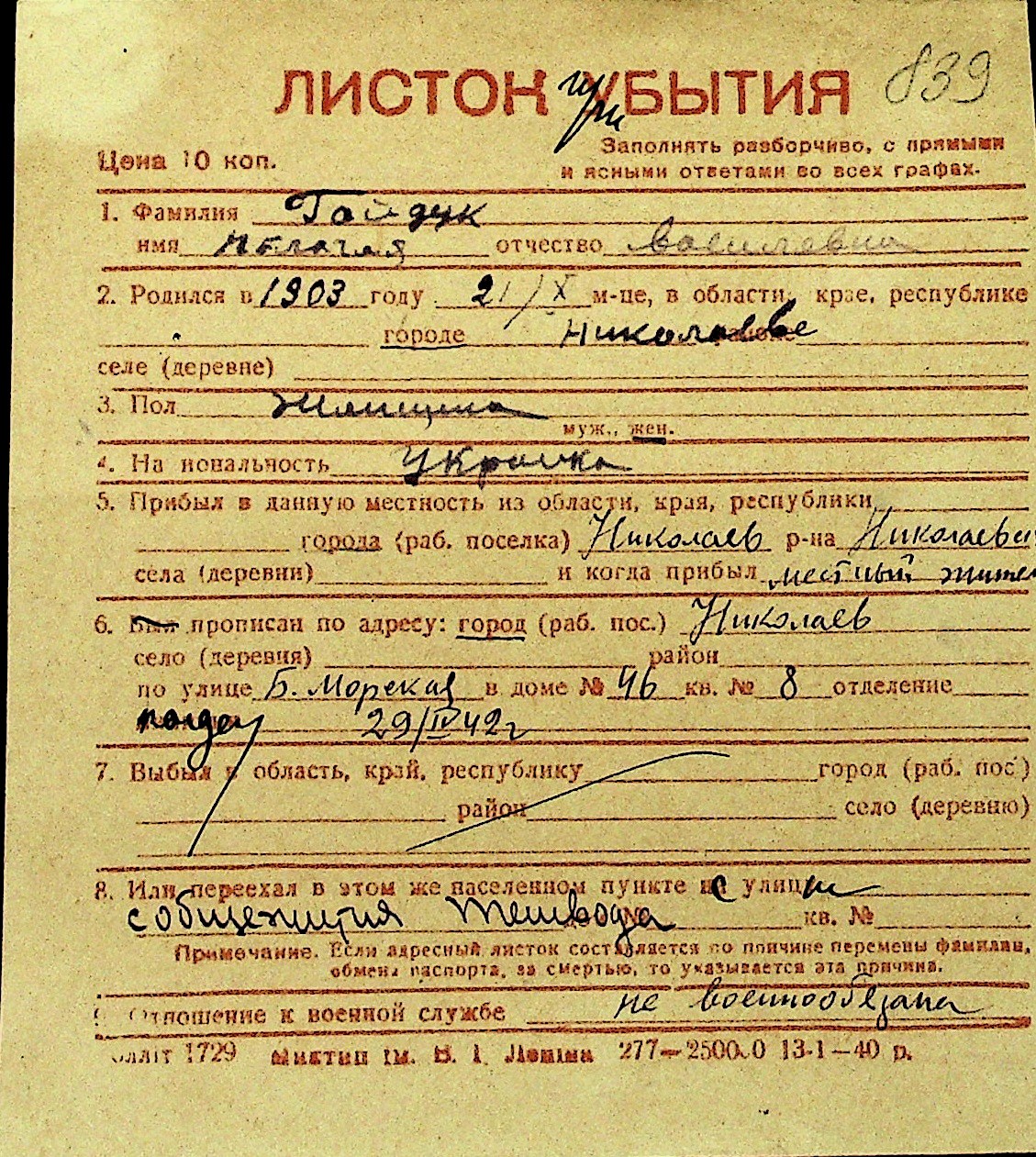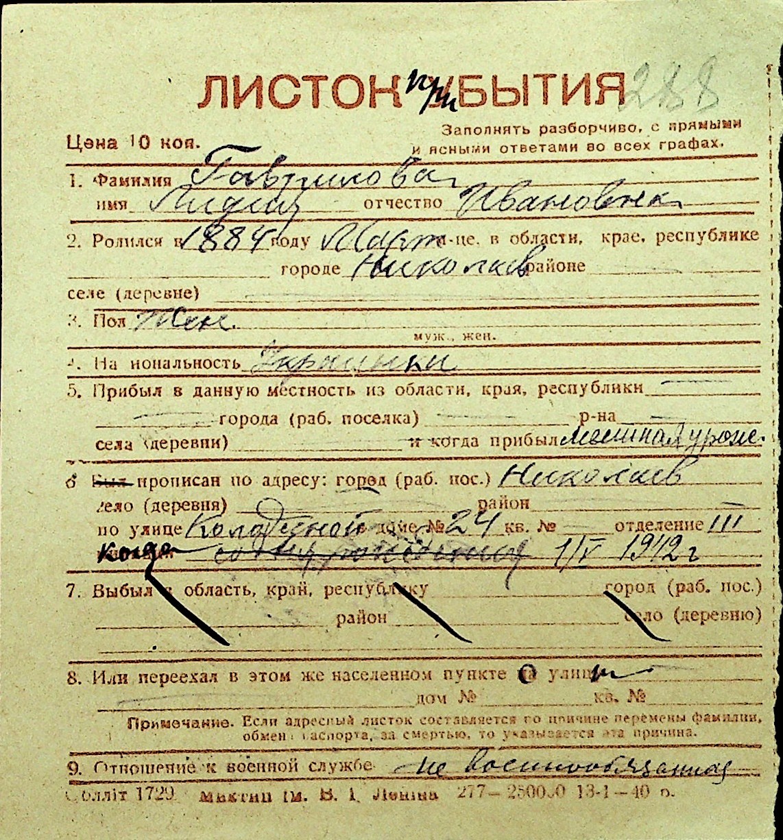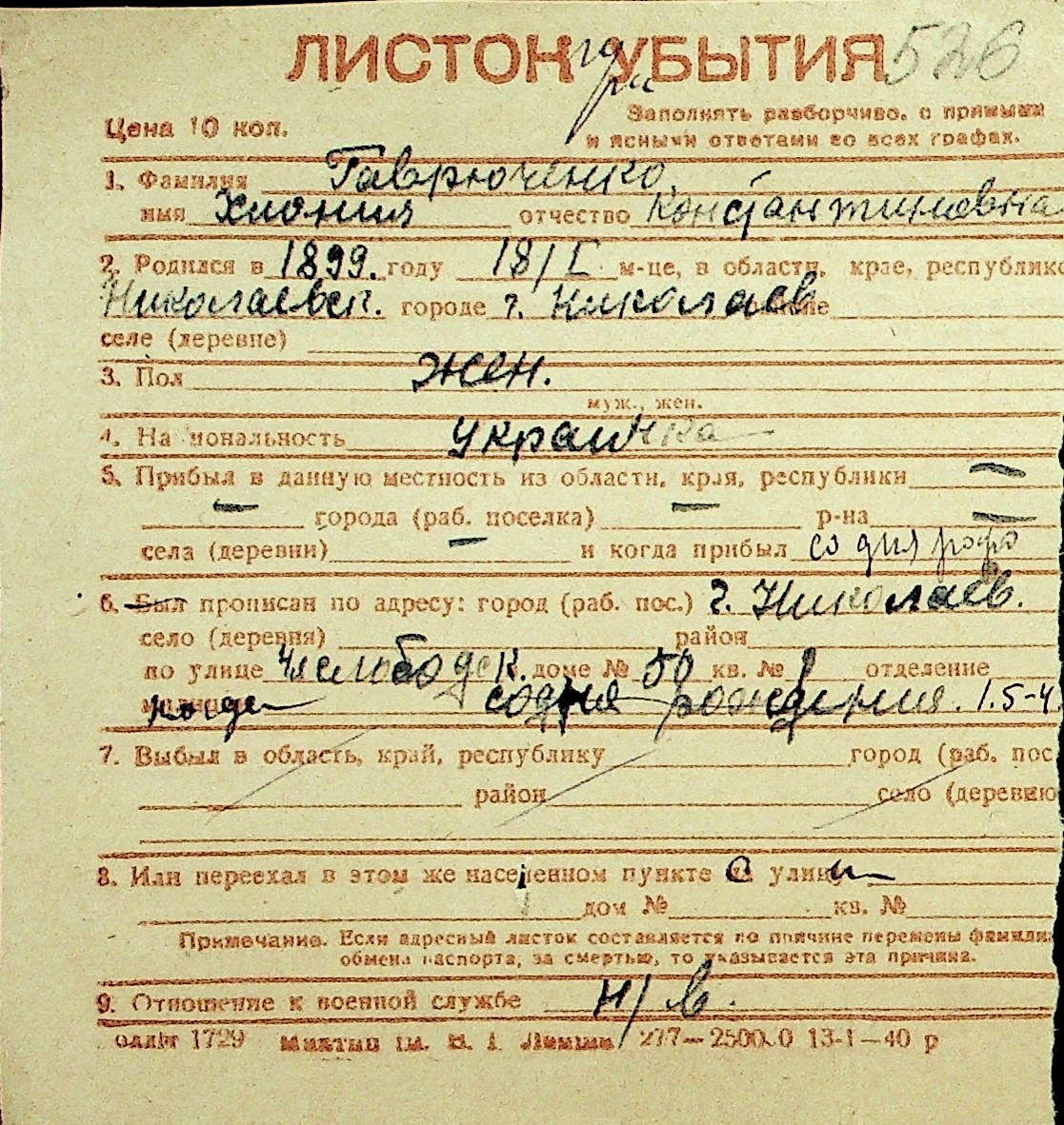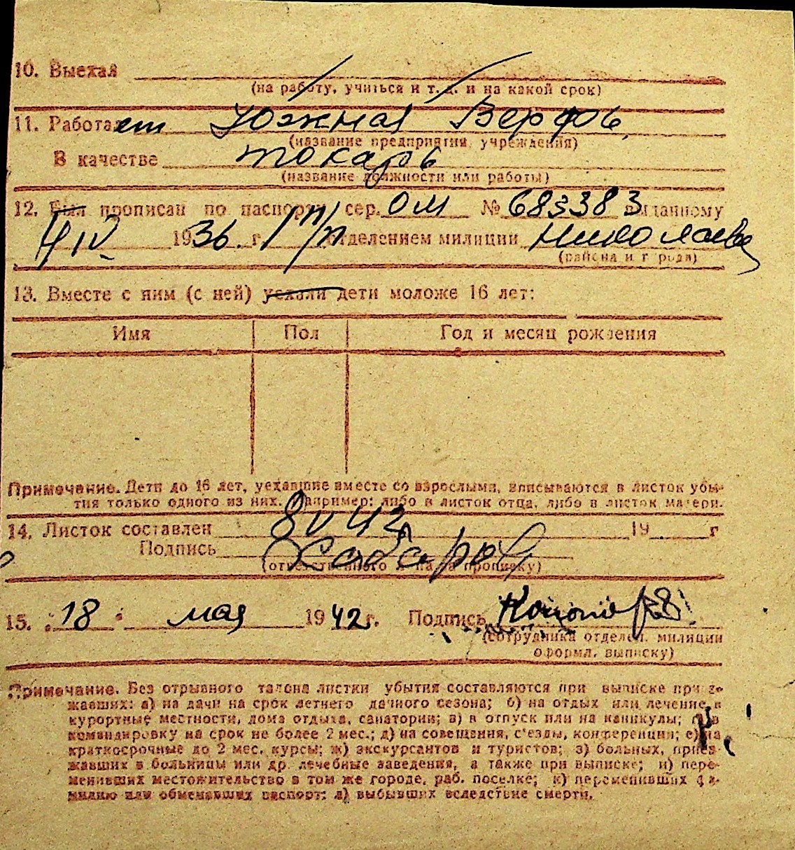 • • Перелік карток до фонду № Н-1016