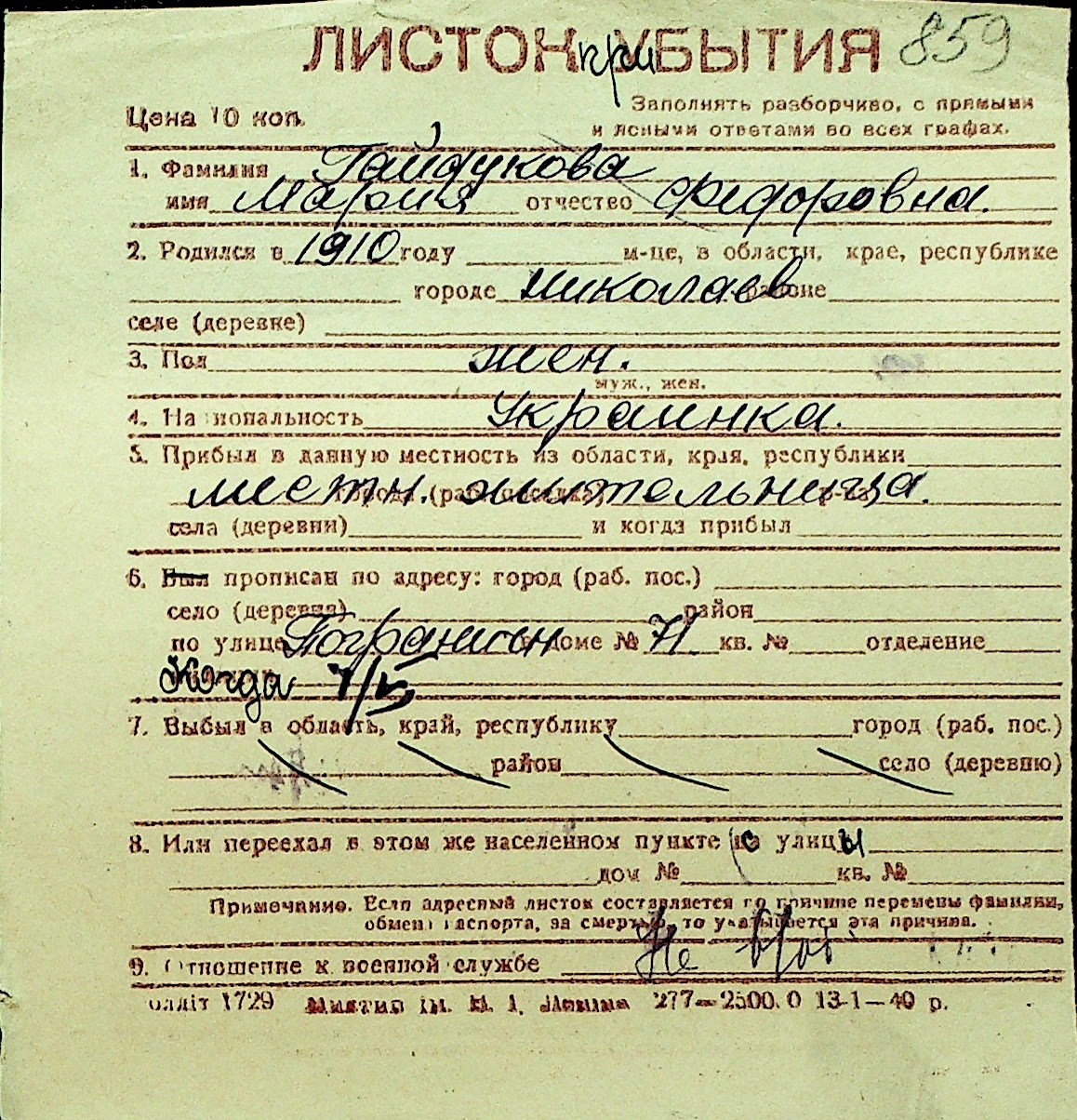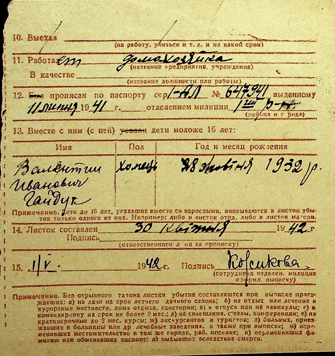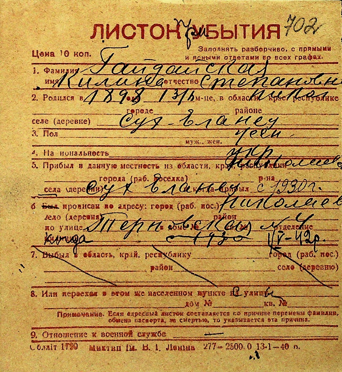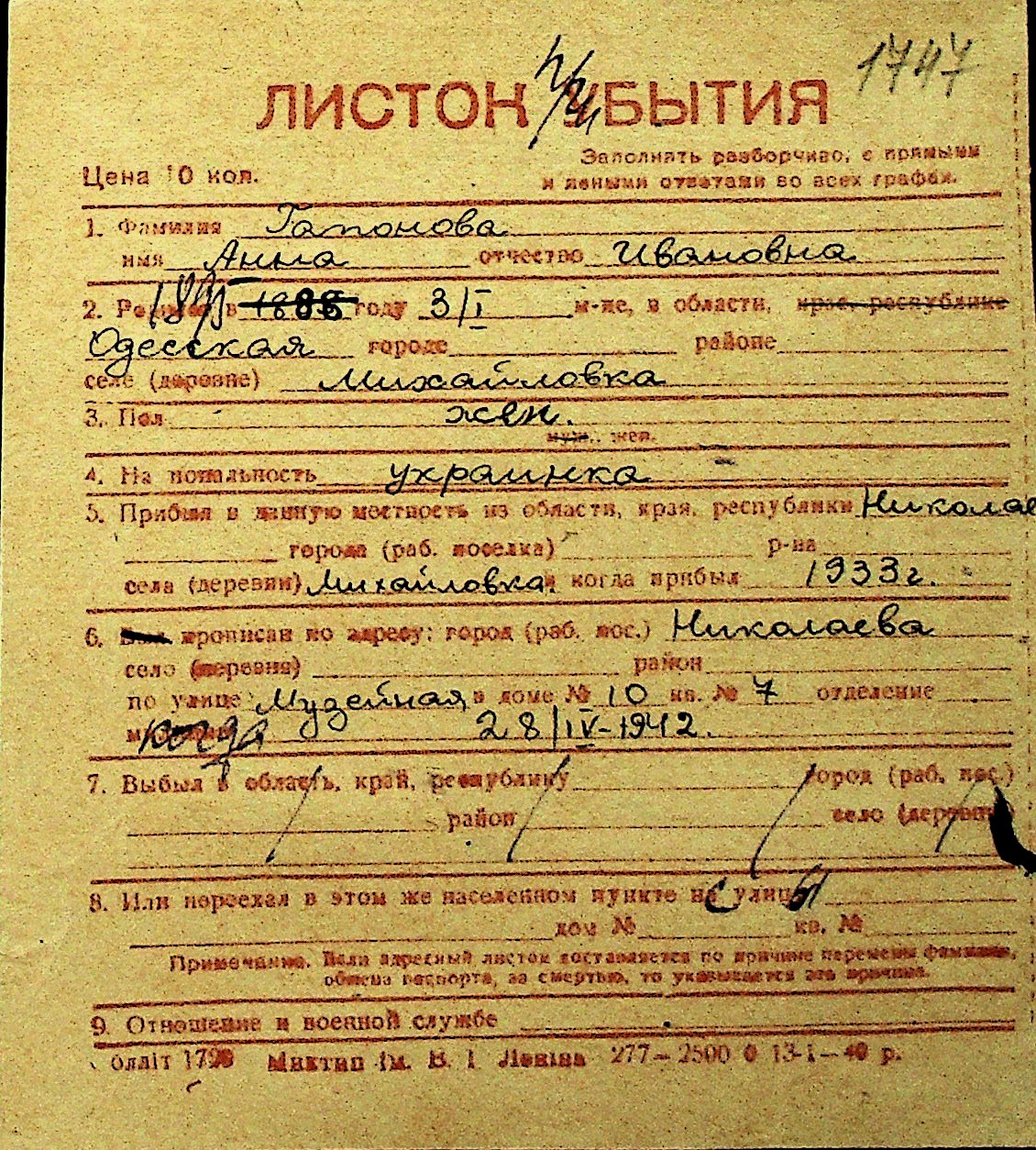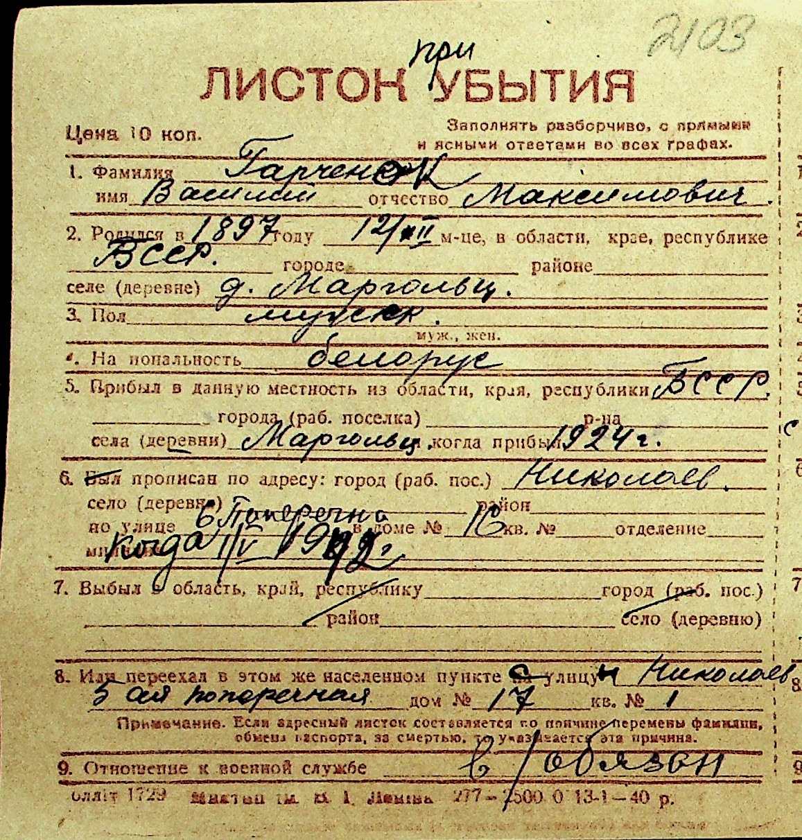 • • Перелік карток до фонду № Н-1016